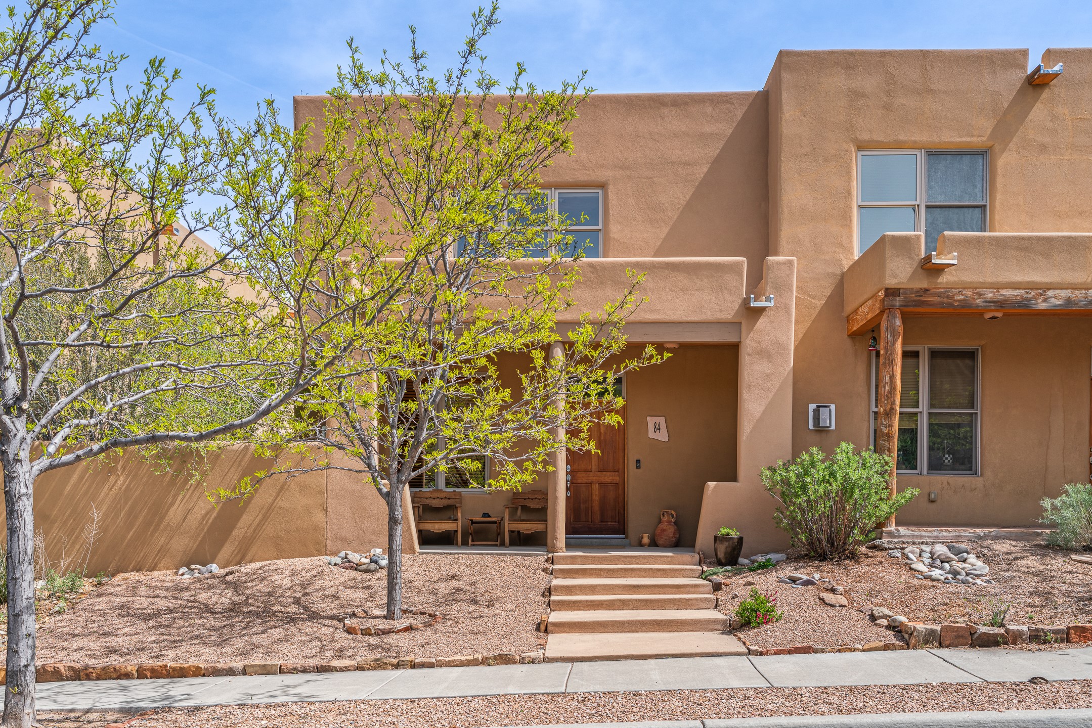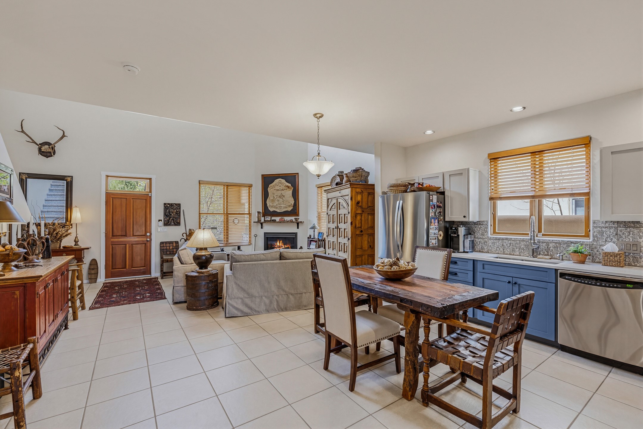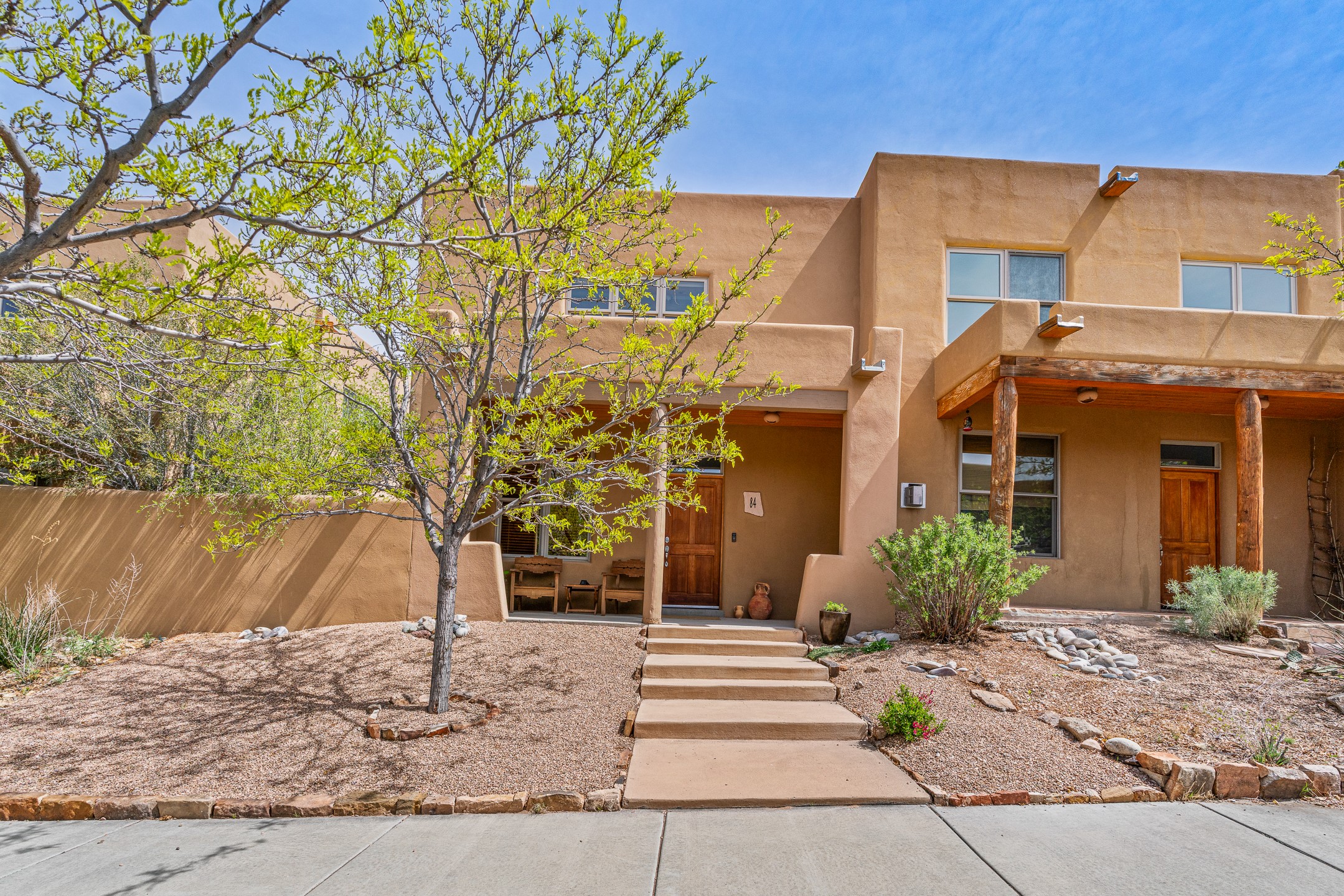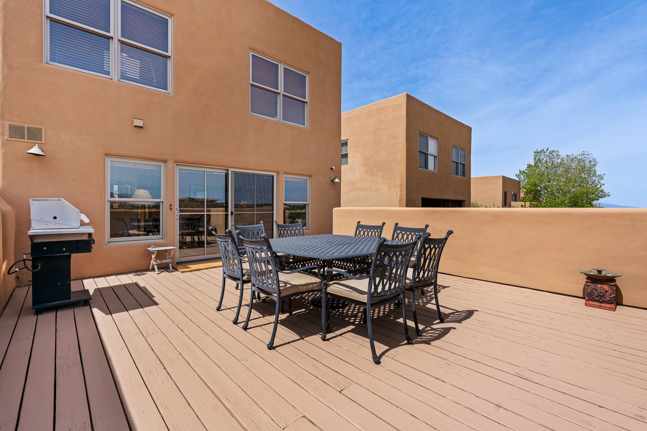Welcome to this light-filled 4-bedroom, 3-bath townhome nestled in the highly sought-after Aldea community -- where Santa Fe's natural beauty meets effortless, elegant living. With over 2,000 sq. ft. of thoughtfully designed space, this home impresses from the moment you step inside, featuring soaring ceilings with rustic vigas, rich tile floors, and a cozy gas fireplace that sets the perfect ambiance.The expanded sunroom and family room flow seamlessly onto a spacious deck, where breathtaking Sangre de Cristo mountain views steal the show -- an idyllic setting for morning coffee or sunset evenings with friends. The kitchen is equipped with stainless steel appliances and tile countertops, combining style and everyday functionality. A conveniently located main-level bedroom and full bath offer a private and welcoming guest suite or ideal in-law quarters.Enjoy the best of indoor/outdoor living with a welcoming covered front porch and a detached two-car garage. Recent upgrades provide true peace of mind: new roof (2020), new water heater (late 2024/early 2025), new refrigerator (2025), and a newer washer and dryer.Located just 8 minutes from the heart of downtown Santa Fe, Aldea offers a tranquil lifestyle with beautifully maintained surroundings, scenic community trails, and a genuine neighborhood charm that is truly hard to find.Home Highlights:Spacious 4-bed / 3-bath with an open, airy floor planExpanded sunroom flowing to a mountain-view deckHigh ceilings with vigas + gas fireplaceMain-level guest suite with full bathDetached two-car garageNew roof, water heater, refrigerator, and washer/dryerQuiet, well-maintained community minutes from downtownThis is Santa Fe living at its finest -- serene, stylish, and perfectly situated.