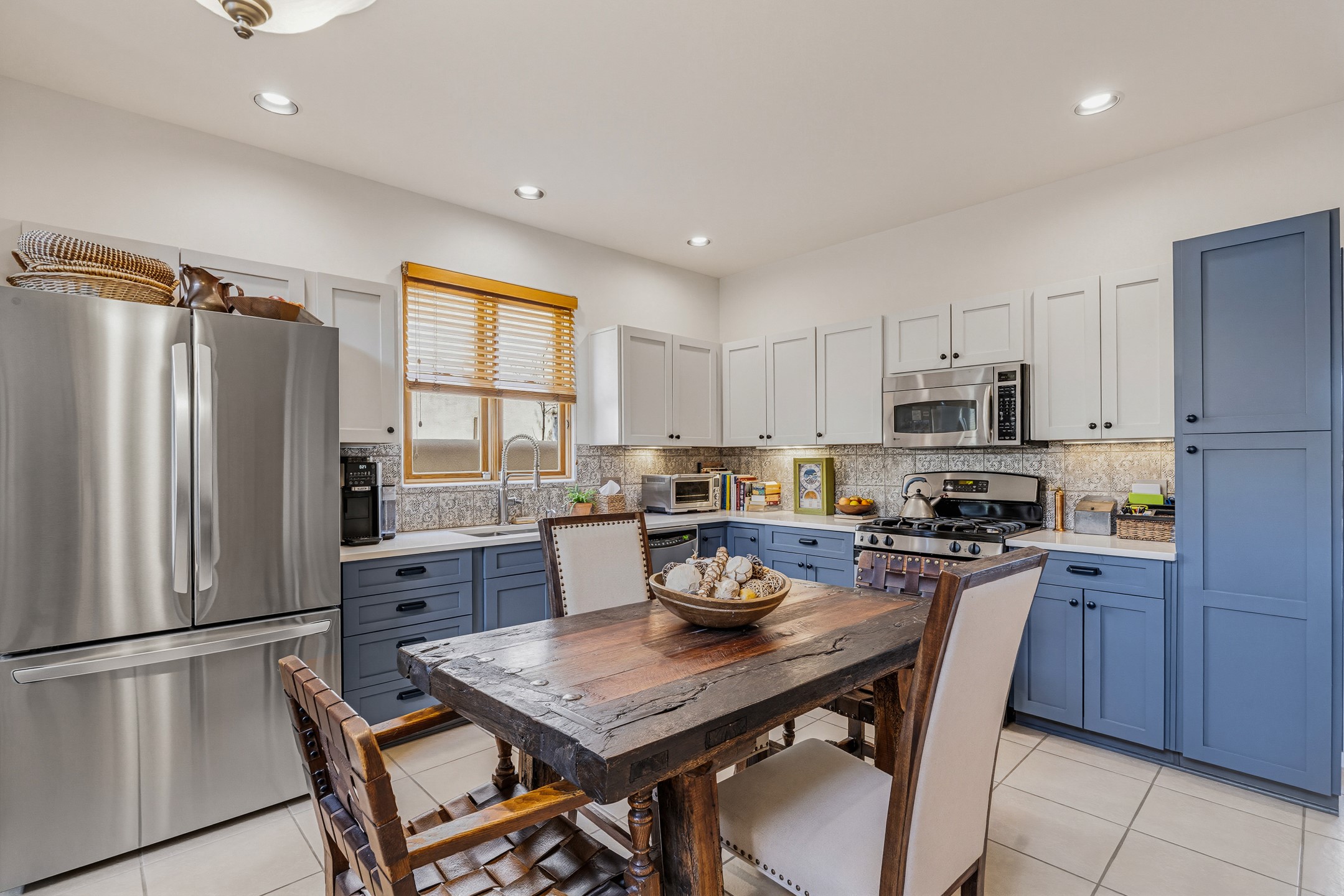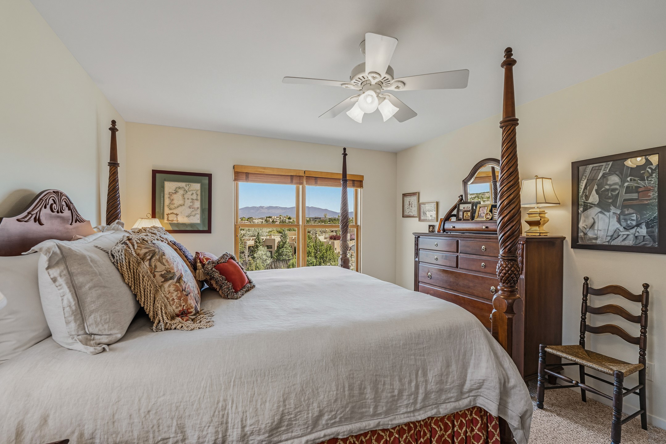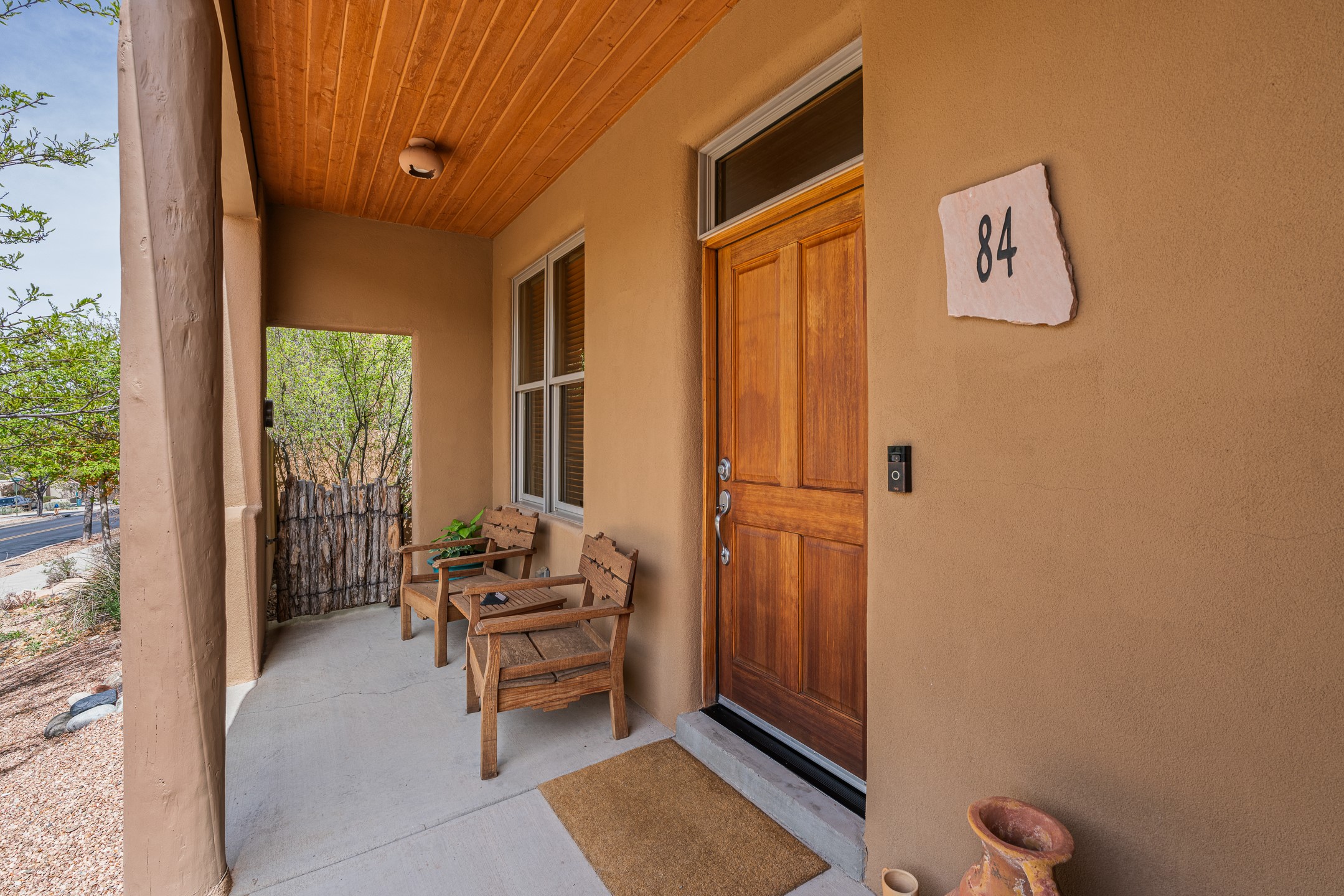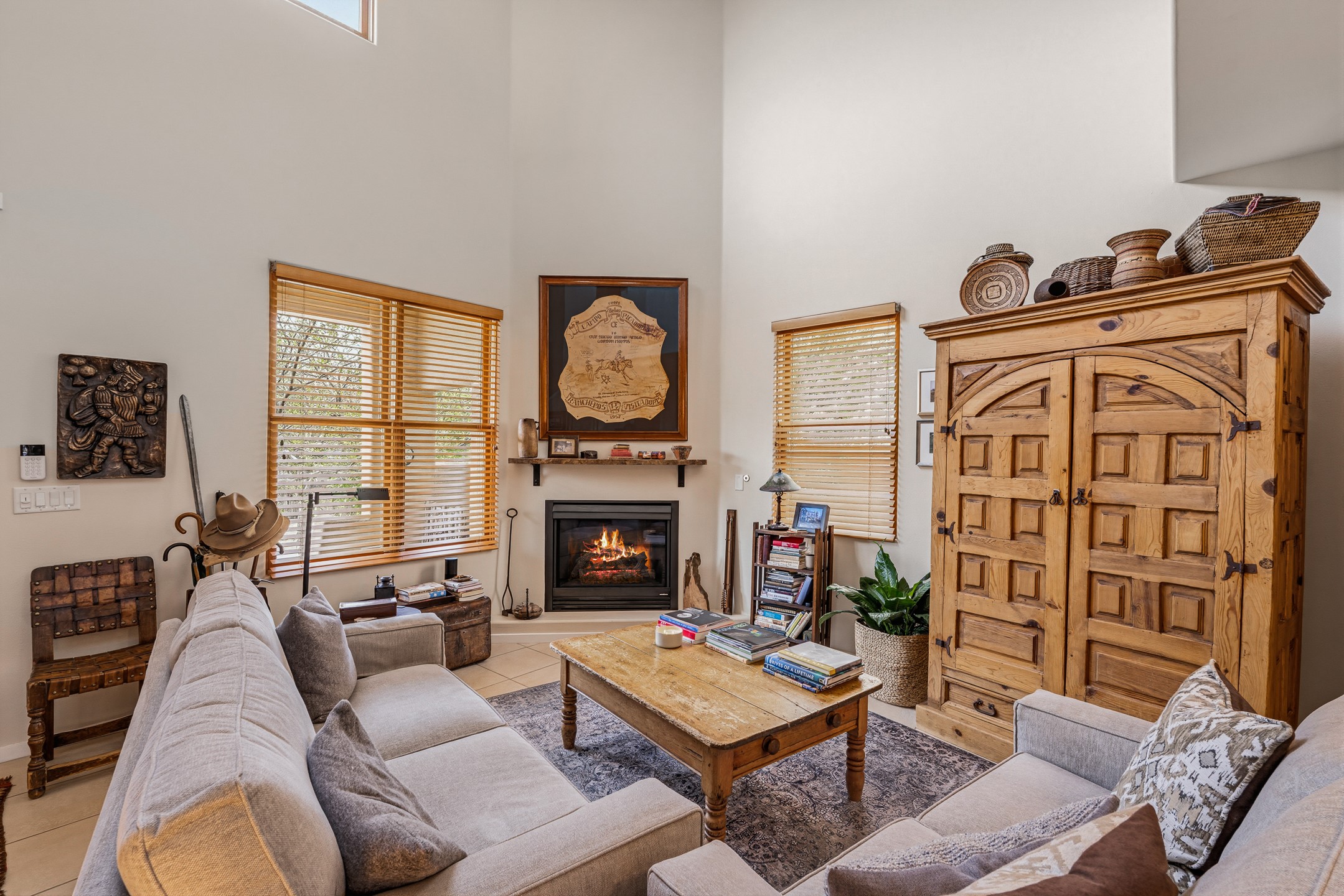 Welcome to this light-filled 4-bedroom, 3-bath townhome nestled in the highly sought-after Aldea community -- where Santa Fe's natural beauty meets effortless, elegant living. With over 2,000 sq. ft. of thoughtfully designed space, this home impresses from the moment you step inside, featuring soaring ceilings with rustic vigas, rich tile floors, and a cozy gas fireplace that sets the perfect ambiance.The expanded sunroom and family room flow seamlessly onto a spacious deck, where breathtaking Sangre de Cristo mountain views steal the show -- an idyllic setting for morning coffee or sunset evenings with friends. The kitchen is equipped with stainless steel appliances and tile countertops, combining style and everyday functionality. A conveniently located main-level bedroom and full bath offer a private and welcoming guest suite or ideal in-law quarters.Enjoy the best of indoor/outdoor living with a welcoming covered front porch and a detached two-car garage. Recent upgrades provide true peace of mind: new roof (2020), new water heater (late 2024/early 2025), new refrigerator (2025), and a newer washer and dryer.Located just 8 minutes from the heart of downtown Santa Fe, Aldea offers a tranquil lifestyle with beautifully maintained surroundings, scenic community trails, and a genuine neighborhood charm that is truly hard to find.Home Highlights:Spacious 4-bed / 3-bath with an open, airy floor planExpanded sunroom flowing to a mountain-view deckHigh ceilings with vigas + gas fireplaceMain-level guest suite with full bathDetached two-car garageNew roof, water heater, refrigerator, and washer/dryerQuiet, well-maintained community minutes from downtownThis is Santa Fe living at its finest -- serene, stylish, and perfectly situated.