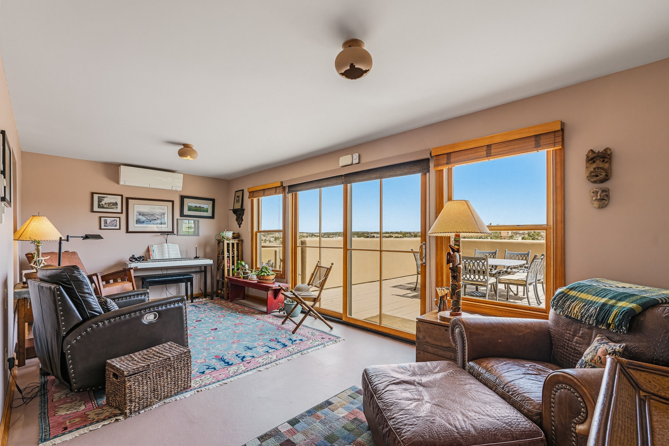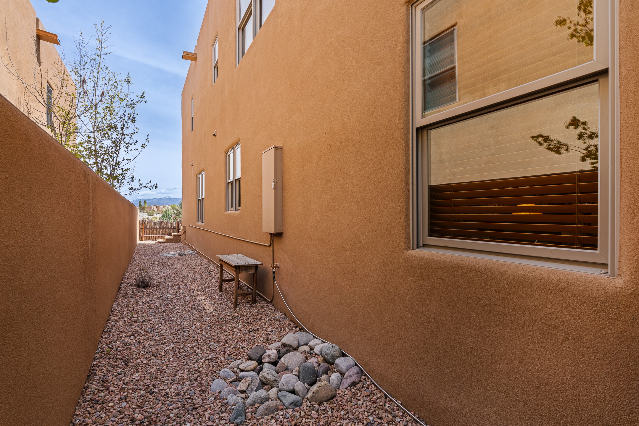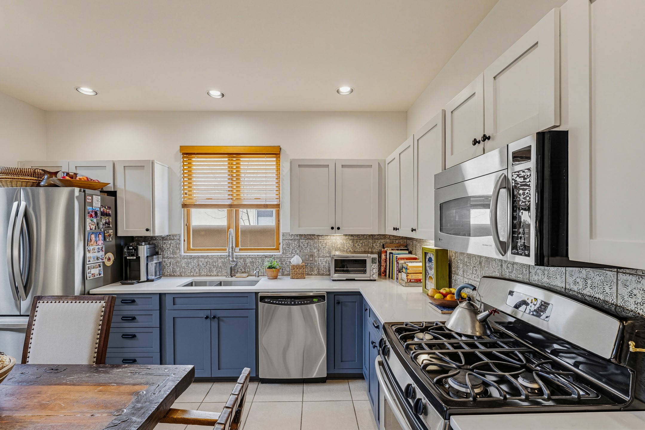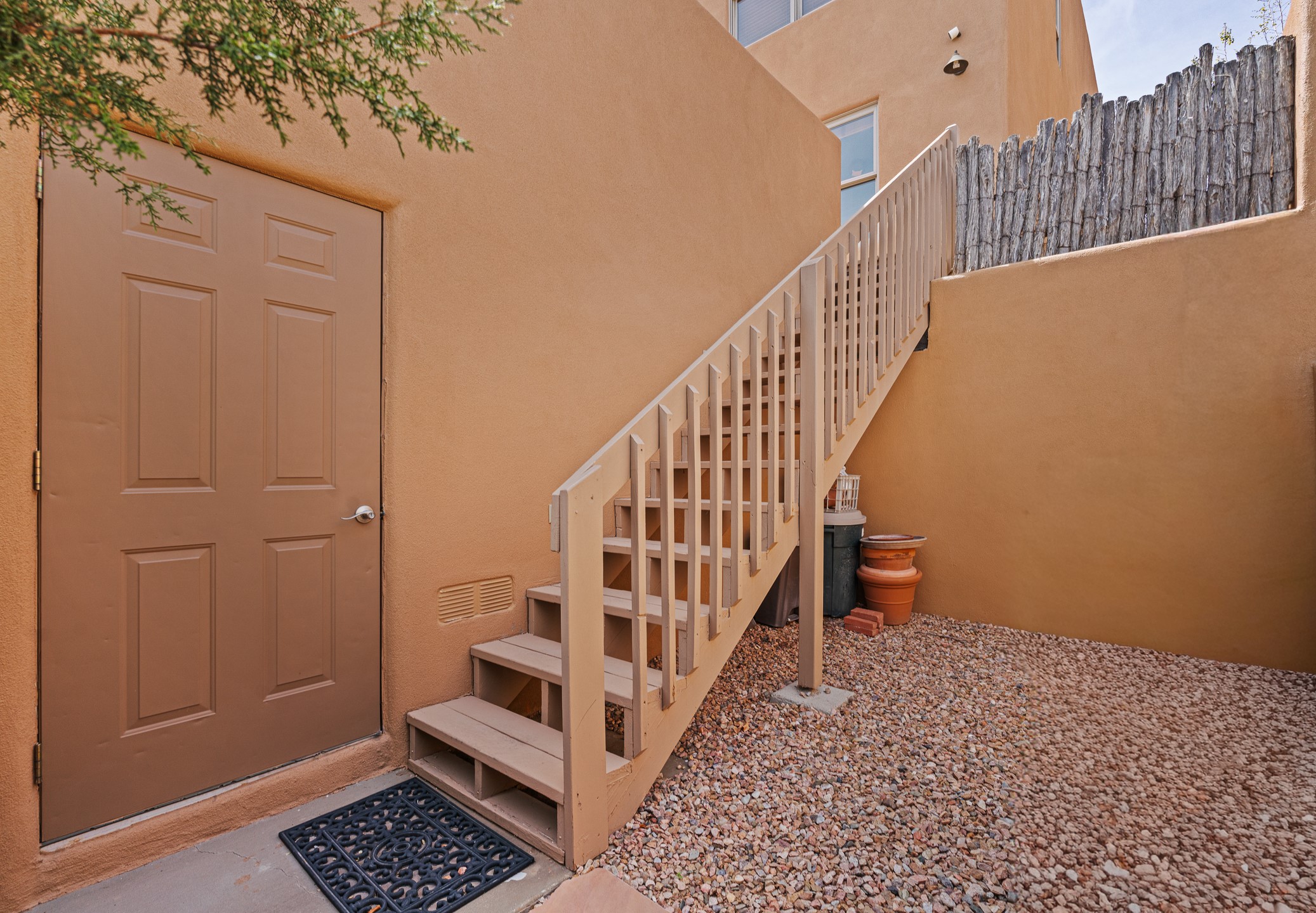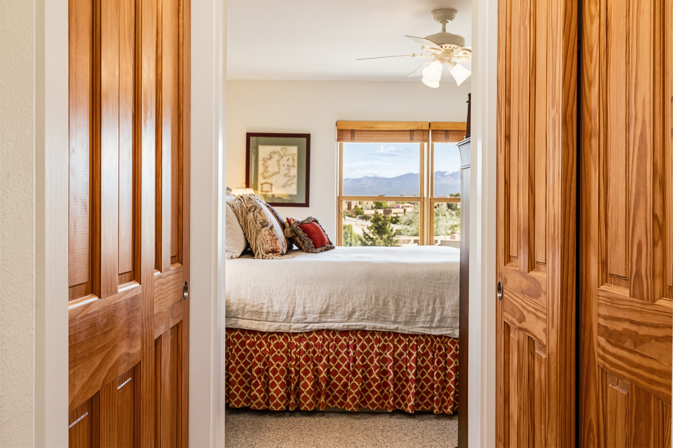 Welcome to this light-filled 4-bedroom, 3-bath townhome nestled in the highly sought-after Aldea community -- where Santa Fe's natural beauty meets effortless, elegant living. With over 2,000 sq. ft. of thoughtfully designed space, this home impresses from the moment you step inside, featuring soaring ceilings with rustic vigas, rich tile floors, and a cozy gas fireplace that sets the perfect ambiance.The expanded sunroom and family room flow seamlessly onto a spacious deck, where breathtaking Sangre de Cristo mountain views steal the show -- an idyllic setting for morning coffee or sunset evenings with friends. The kitchen is equipped with stainless steel appliances and tile countertops, combining style and everyday functionality. A conveniently located main-level bedroom and full bath offer a private and welcoming guest suite or ideal in-law quarters.Enjoy the best of indoor/outdoor living with a welcoming covered front porch and a detached two-car garage. Recent upgrades provide true peace of mind: new roof (2020), new water heater (late 2024/early 2025), new refrigerator (2025), and a newer washer and dryer.Located just 8 minutes from the heart of downtown Santa Fe, Aldea offers a tranquil lifestyle with beautifully maintained surroundings, scenic community trails, and a genuine neighborhood charm that is truly hard to find.Home Highlights:Spacious 4-bed / 3-bath with an open, airy floor planExpanded sunroom flowing to a mountain-view deckHigh ceilings with vigas + gas fireplaceMain-level guest suite with full bathDetached two-car garageNew roof, water heater, refrigerator, and washer/dryerQuiet, well-maintained community minutes from downtownThis is Santa Fe living at its finest -- serene, stylish, and perfectly situated.