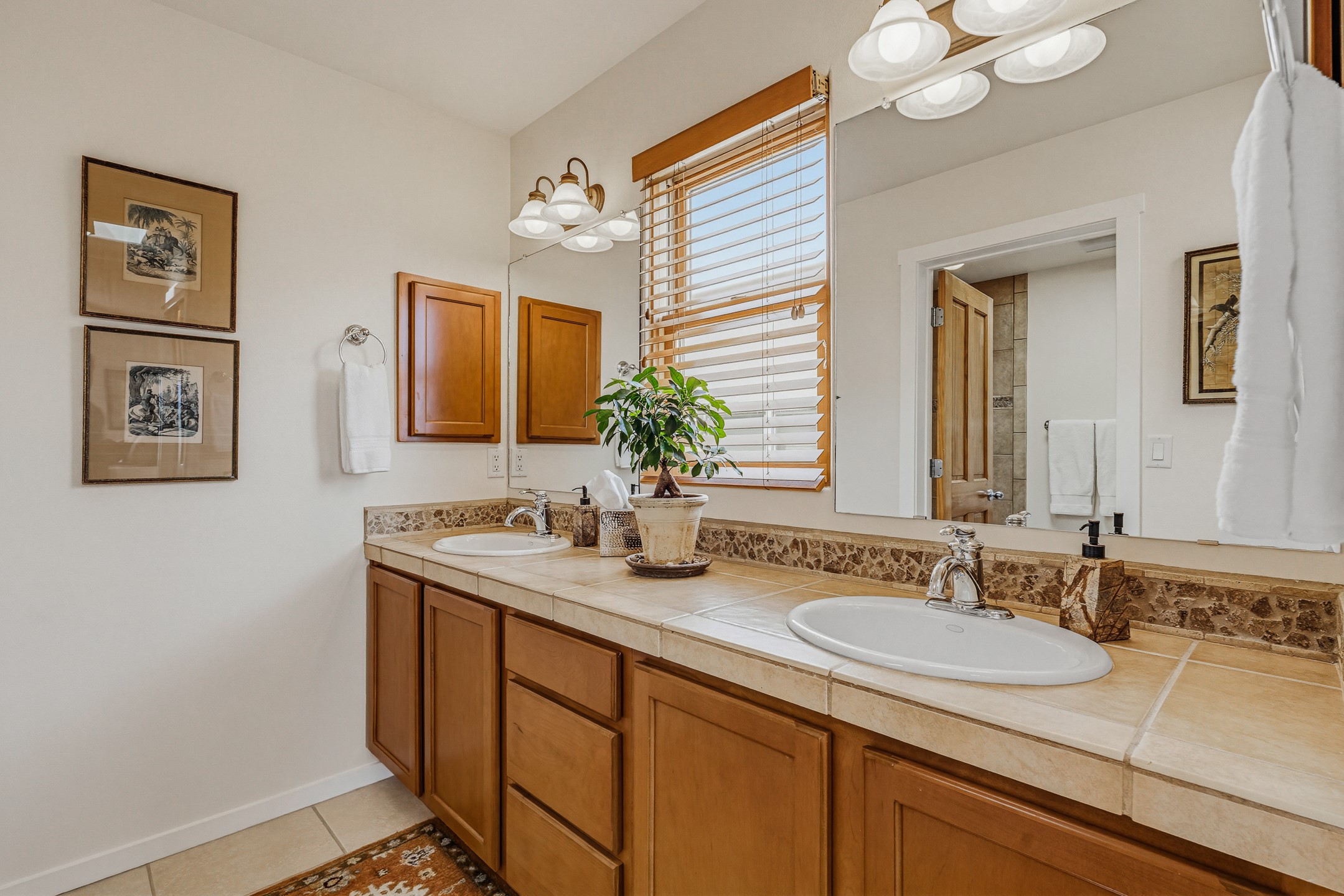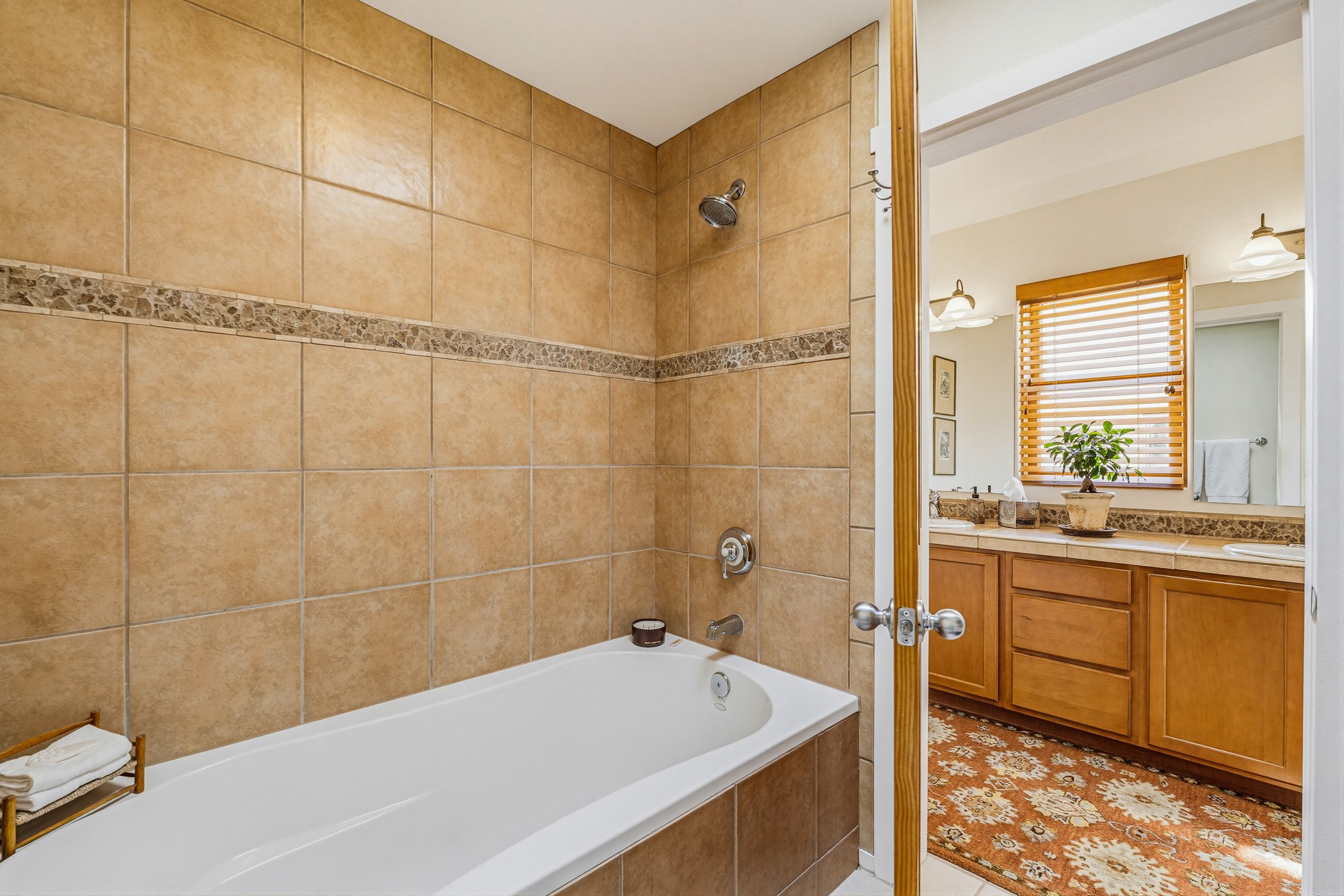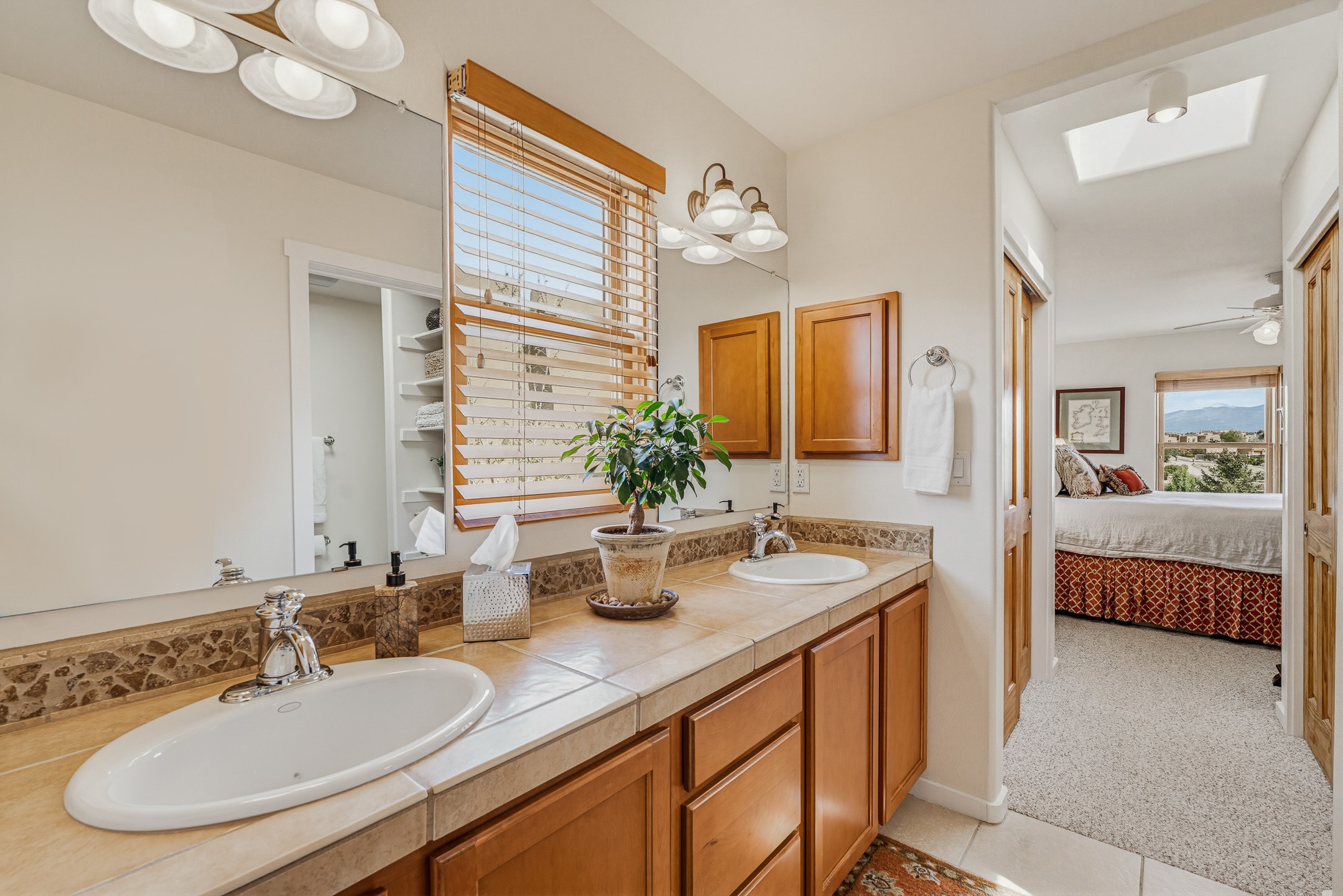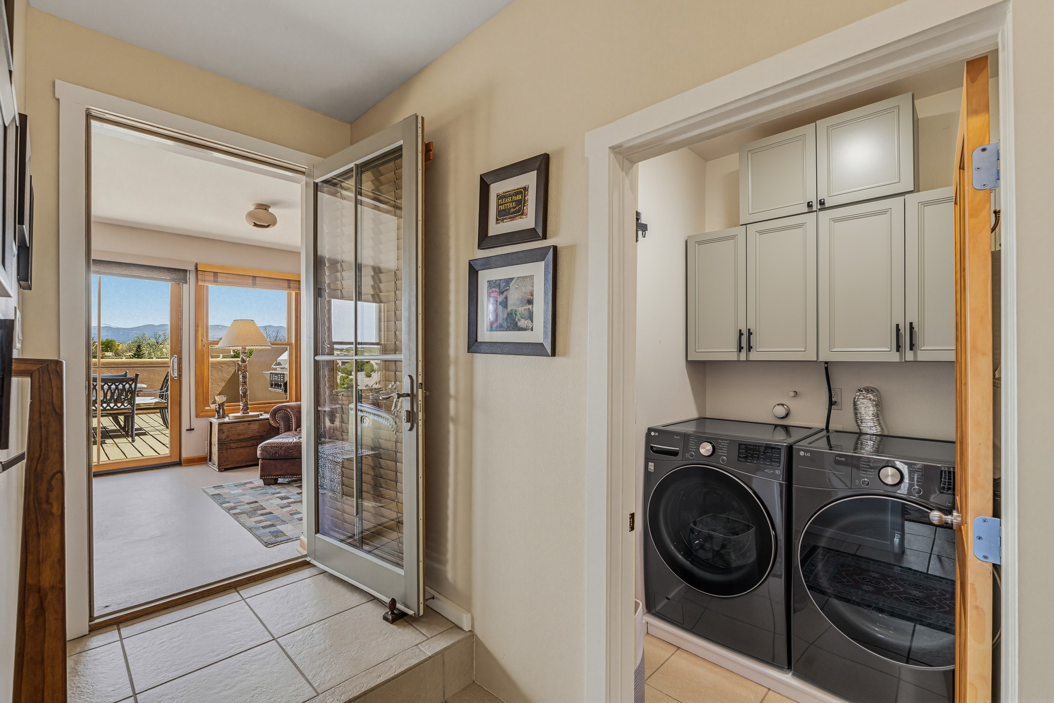 Welcome to this light-filled 4-bedroom, 3-bath townhome nestled in the highly sought-after Aldea community -- where Santa Fe's natural beauty meets effortless, elegant living. With over 2,000 sq. ft. of thoughtfully designed space, this home impresses from the moment you step inside, featuring soaring ceilings with rustic vigas, rich tile floors, and a cozy gas fireplace that sets the perfect ambiance.The expanded sunroom and family room flow seamlessly onto a spacious deck, where breathtaking Sangre de Cristo mountain views steal the show -- an idyllic setting for morning coffee or sunset evenings with friends. The kitchen is equipped with stainless steel appliances and tile countertops, combining style and everyday functionality. A conveniently located main-level bedroom and full bath offer a private and welcoming guest suite or ideal in-law quarters.Enjoy the best of indoor/outdoor living with a welcoming covered front porch and a detached two-car garage. Recent upgrades provide true peace of mind: new roof (2020), new water heater (late 2024/early 2025), new refrigerator (2025), and a newer washer and dryer.Located just 8 minutes from the heart of downtown Santa Fe, Aldea offers a tranquil lifestyle with beautifully maintained surroundings, scenic community trails, and a genuine neighborhood charm that is truly hard to find.Home Highlights:Spacious 4-bed / 3-bath with an open, airy floor planExpanded sunroom flowing to a mountain-view deckHigh ceilings with vigas + gas fireplaceMain-level guest suite with full bathDetached two-car garageNew roof, water heater, refrigerator, and washer/dryerQuiet, well-maintained community minutes from downtownThis is Santa Fe living at its finest -- serene, stylish, and perfectly situated.