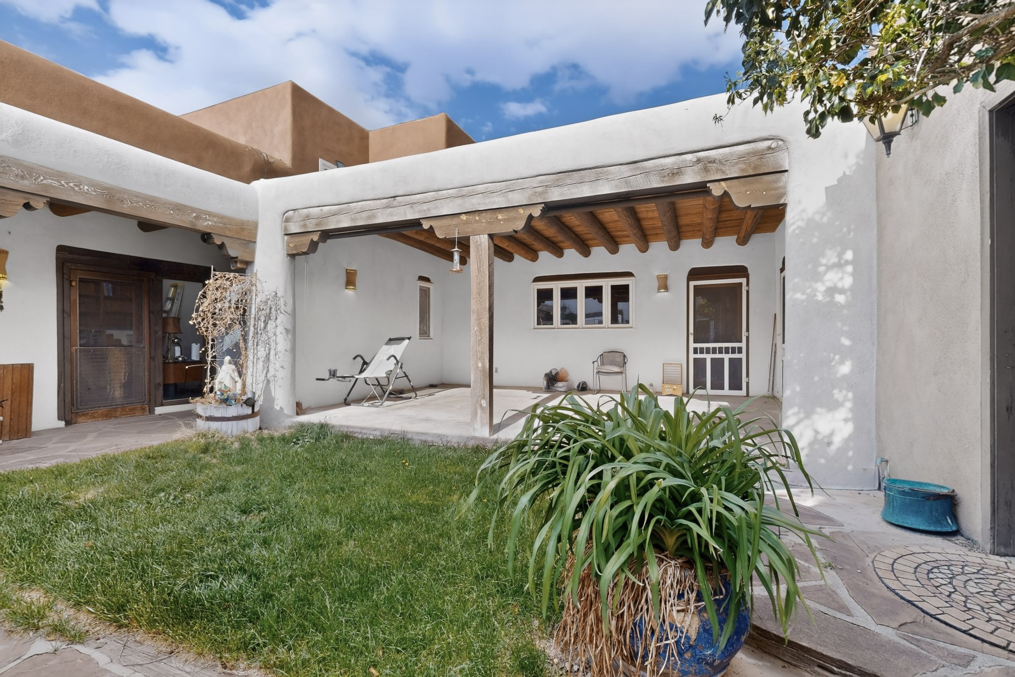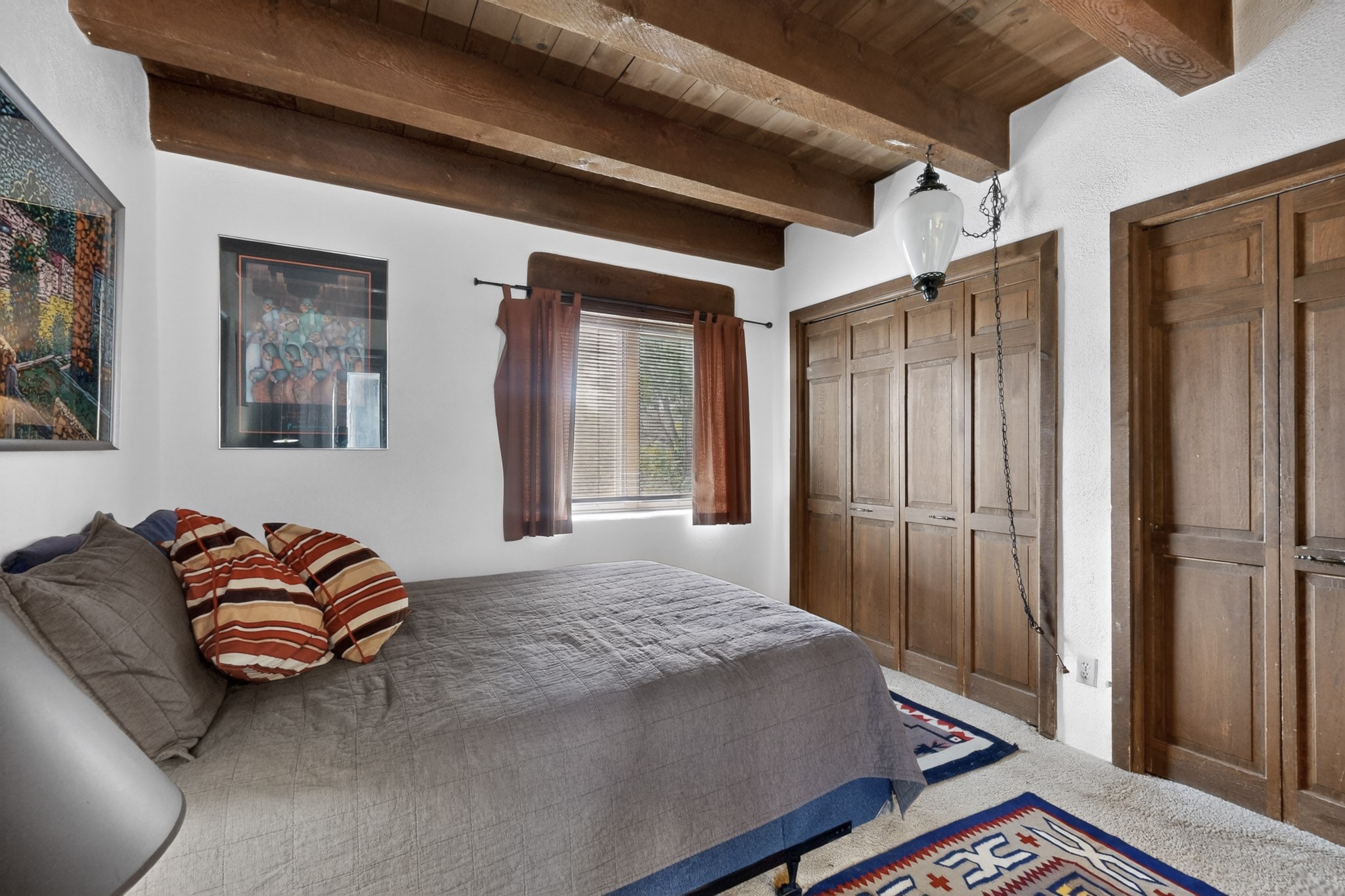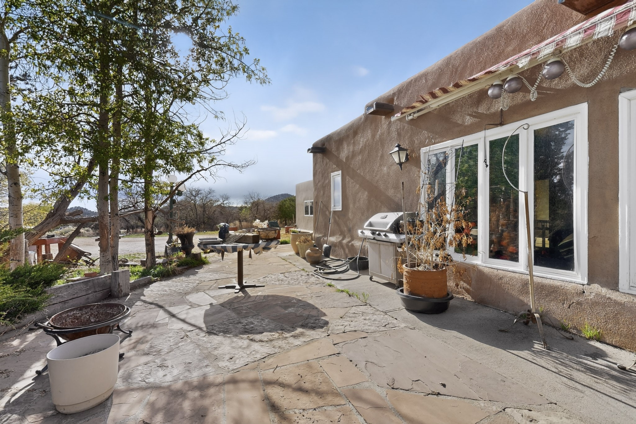 Bring your horses to this pinon and juniper covered Santa Fe County property close to town! The 10 acre parcel in Los Cerros Negros includes a main house, guest quarters, horse facility and is only 8 miles to the Santa Fe Plaza. The Southwest inspired house and guest quarters feature beautifully handcrafted wood throughout. The air conditioned main house has 3 bedrooms, 3 bathrooms and a sun room. The guest quarters has 2 bedrooms, 1 bathroom and an office. Your green thumb will be delighted with the large sun room in the main house where something can be blooming year round. The guest house could be a mother in law quarters or even an income producing property since it has its own entrance. There is abundant storage with many closets, a pantry, storage area off the covered portal and additional storage in the oversized well house.The horse barn situated away from the house includes a tack room, hay storage and 4 large stalls. Despite the country setting you are minutes away from Harry's Road House, Jambo Bobcat Bite, Cafe Fina and the Eldorado Supermarket. Just down the road is historical Santa Fe with its many dining options, art galleries and museums.
