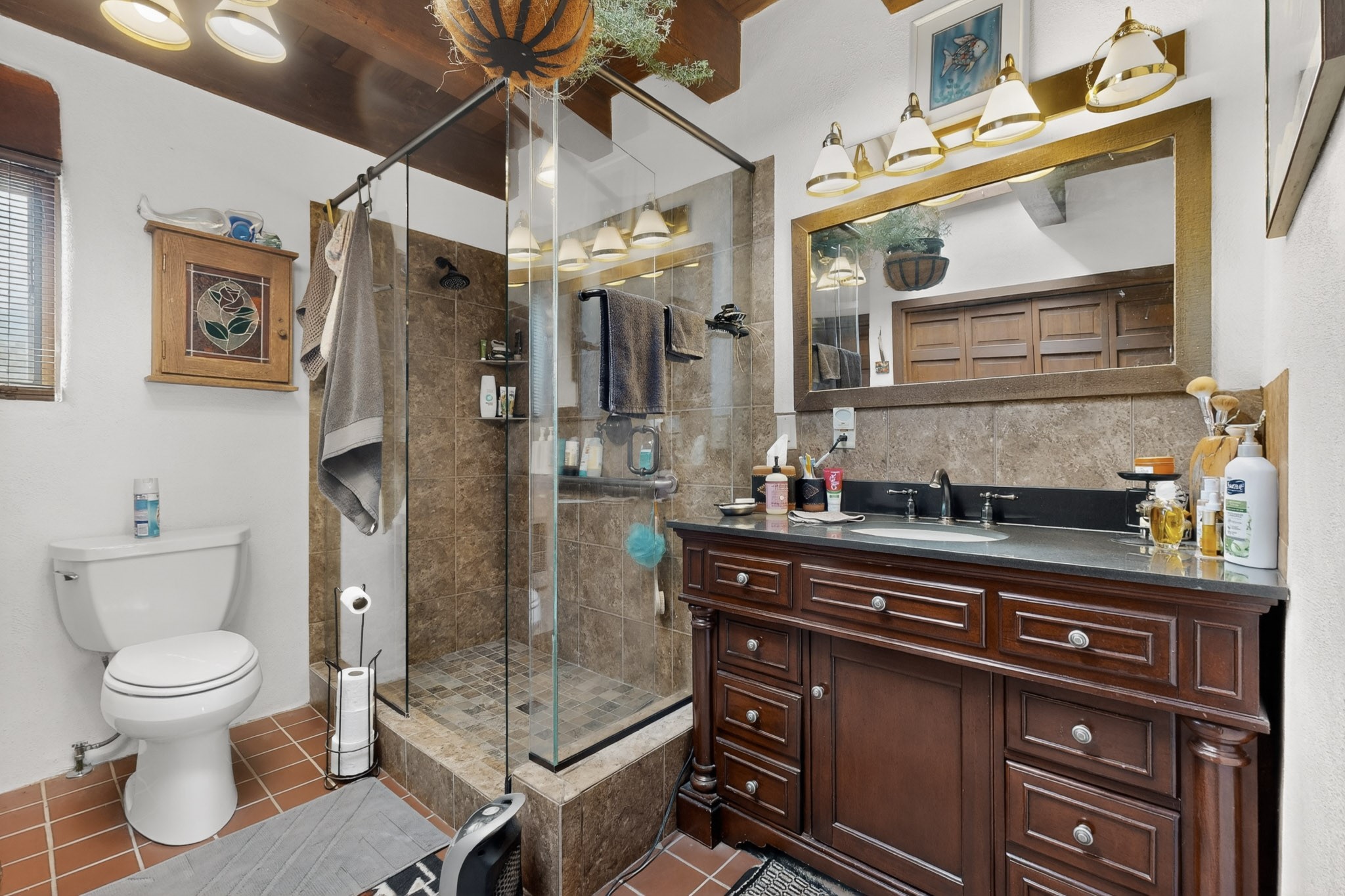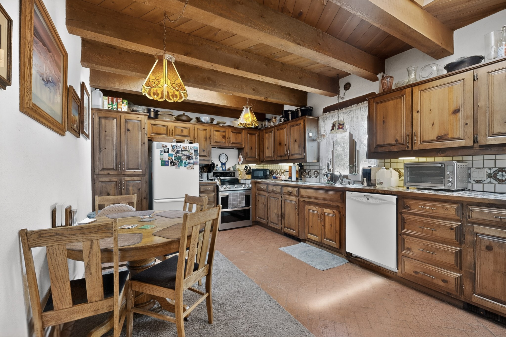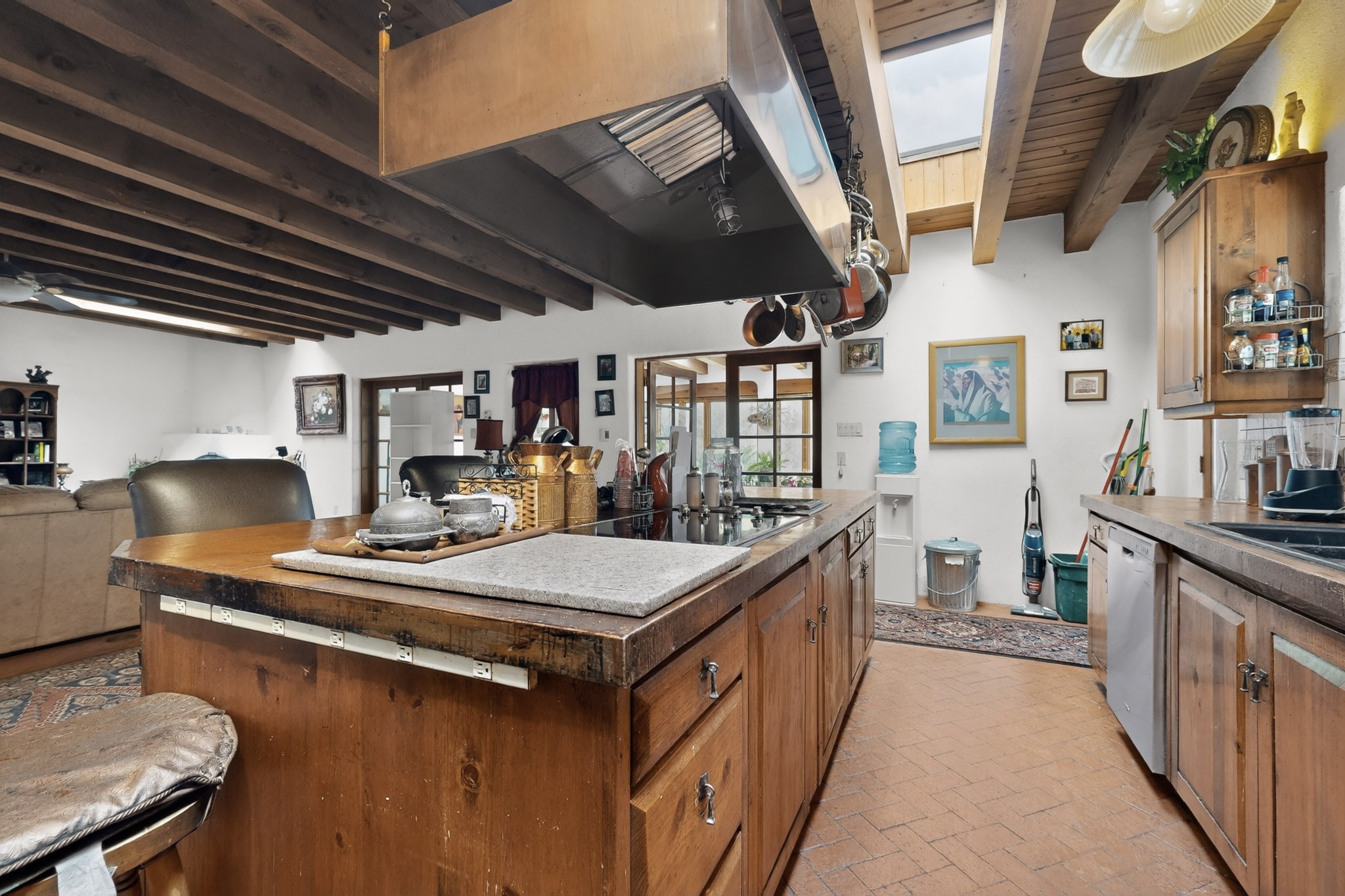 Bring your horses to this pinon and juniper covered Santa Fe County property close to town! The 10 acre parcel in Los Cerros Negros includes a main house, guest quarters, horse facility and is only 8 miles to the Santa Fe Plaza. The Southwest inspired house and guest quarters feature beautifully handcrafted wood throughout. The air conditioned main house has 3 bedrooms, 3 bathrooms and a sun room. The guest quarters has 2 bedrooms, 1 bathroom and an office. Your green thumb will be delighted with the large sun room in the main house where something can be blooming year round. The guest house could be a mother in law quarters or even an income producing property since it has its own entrance. There is abundant storage with many closets, a pantry, storage area off the covered portal and additional storage in the oversized well house.The horse barn situated away from the house includes a tack room, hay storage and 4 large stalls. Despite the country setting you are minutes away from Harry's Road House, Jambo Bobcat Bite, Cafe Fina and the Eldorado Supermarket. Just down the road is historical Santa Fe with its many dining options, art galleries and museums.