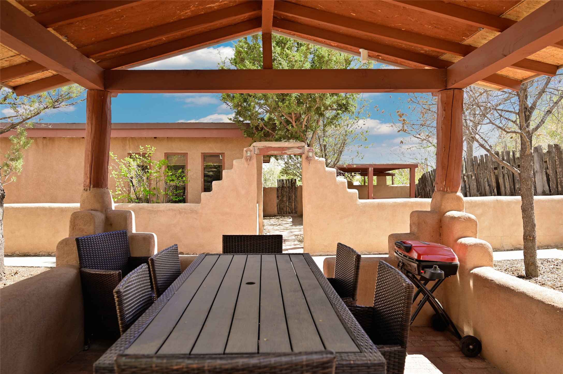 Ready to call home ia this charming, well-maintained residence nestled in a highly coveted West Alameda location. Situated on a generous .24-acre lot, this home offers the perfect blend of comfort and convenience, located just minutes from the vibrant energy of the historic Santa Fe Plaza.Built in 1997, this home features a thoughtful, functional floor plan. It offers three comfortable bedrooms and two full bathrooms, providing plenty of room for relaxation or a home office. Additionally, it has a spacious living room and formal dining plus a flex space for tv, family area or office. Gorgeous Vinyl plank flooring and tile for easy care. Newer forced air heat and cooling provide comfort year around.The very private back area offers your own private retreat highlighted by a lovely pergola, perfect for enjoying Santa Fe's legendary seasons, hosting summer barbecues, or simply unwinding in your own peaceful oasis.Additional features include a one-car garage, offering secure parking and extra storage space.Don't miss the opportunity to own a piece of Santa Fe in such a desirable, accessible location. This home is ready to call your own. 1031 Exchange transaction with no effect on buyer.