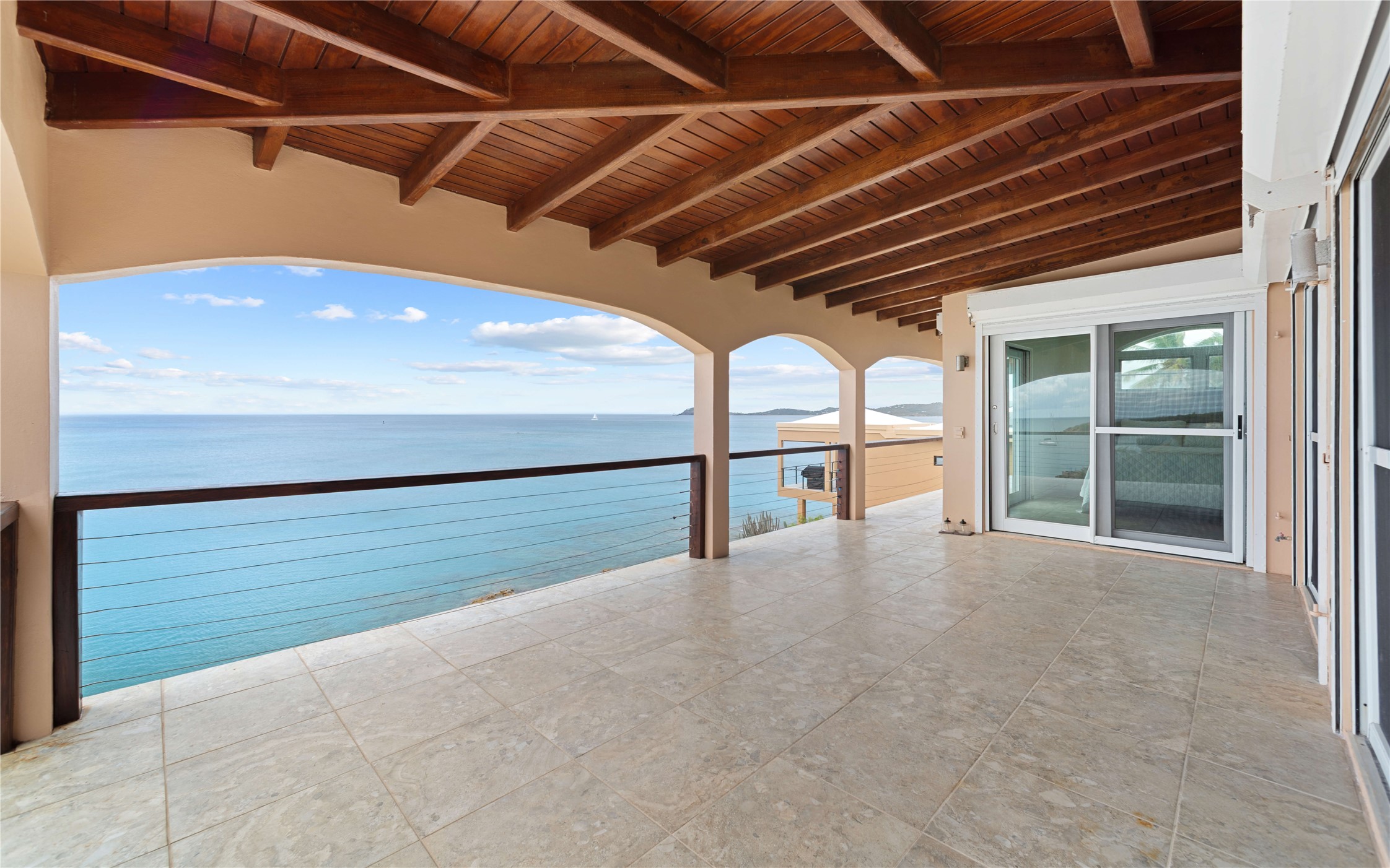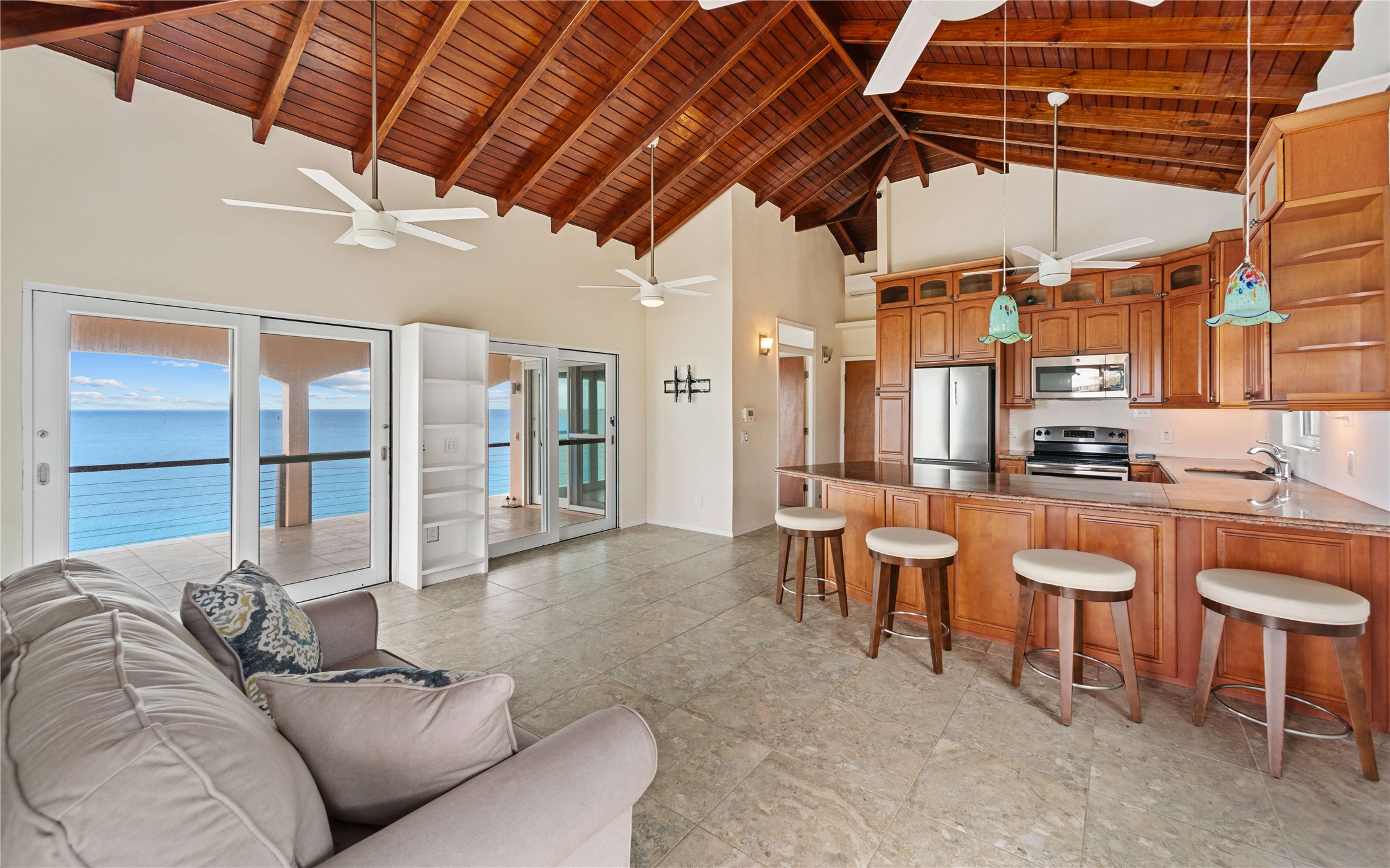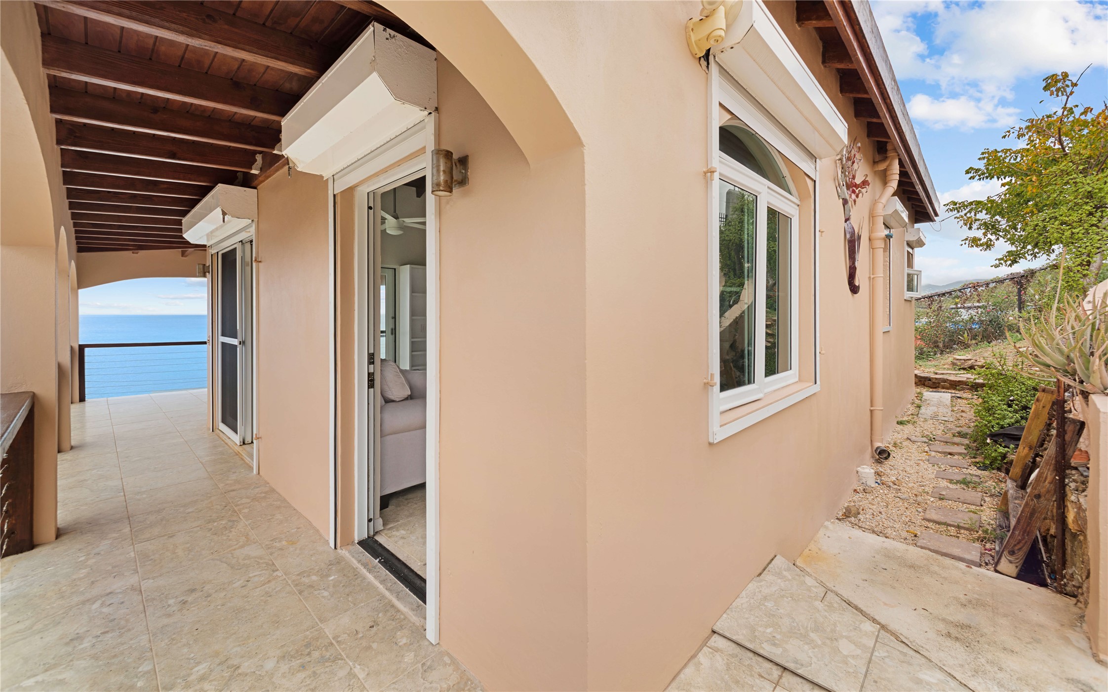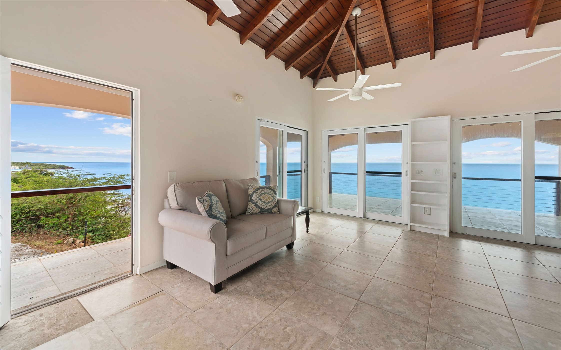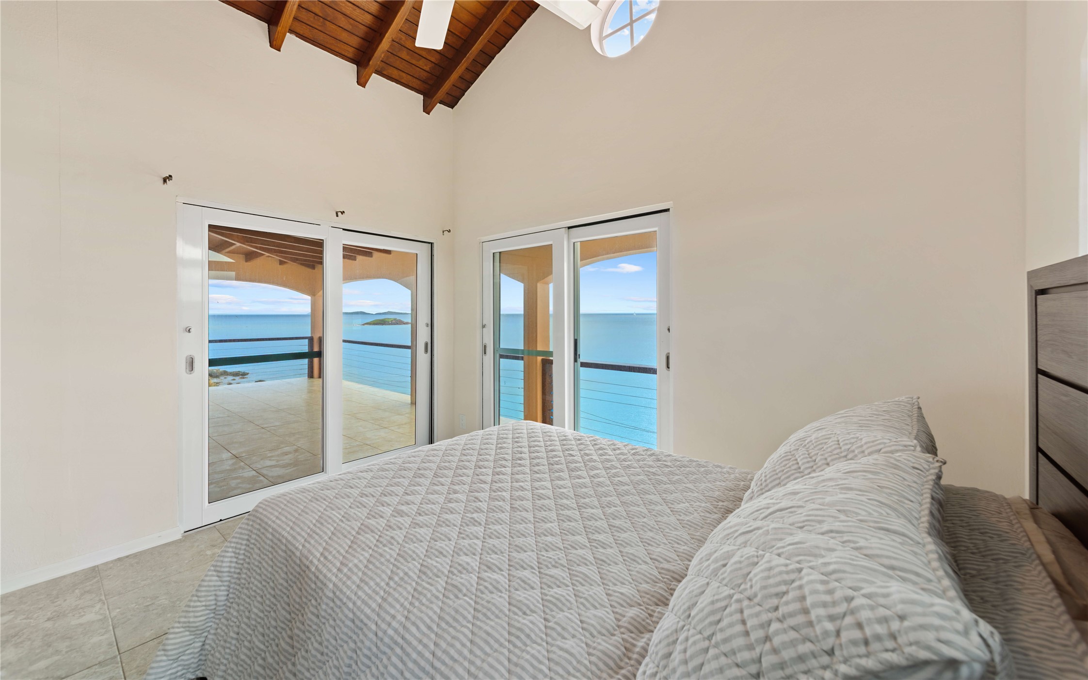 Absolutely STUNNING! This is truly a one of a kind waterfront property on St Thomas, US Virgin Islands! Imagine... a charming cottage...on a gated parcel... room to expand...with your pool literally built out into the ocean! There's just no better place than floating in your pool at sea level! The cottage is solid masonry construction featuring a beautiful kitchen, open concept living surrounded by sliding doors opening to expansive ocean view decks. Vaulted tongue and groove ceilings throughout. Full one bedroom/one bath on the main level. The lower level offers second bedroom space with a full bath. Original plan was to live in the cottage while building your dream villa on the remainder of the generous parcel. It's beautifully imagined as is too. The pool... what's not to love! The best of island living.