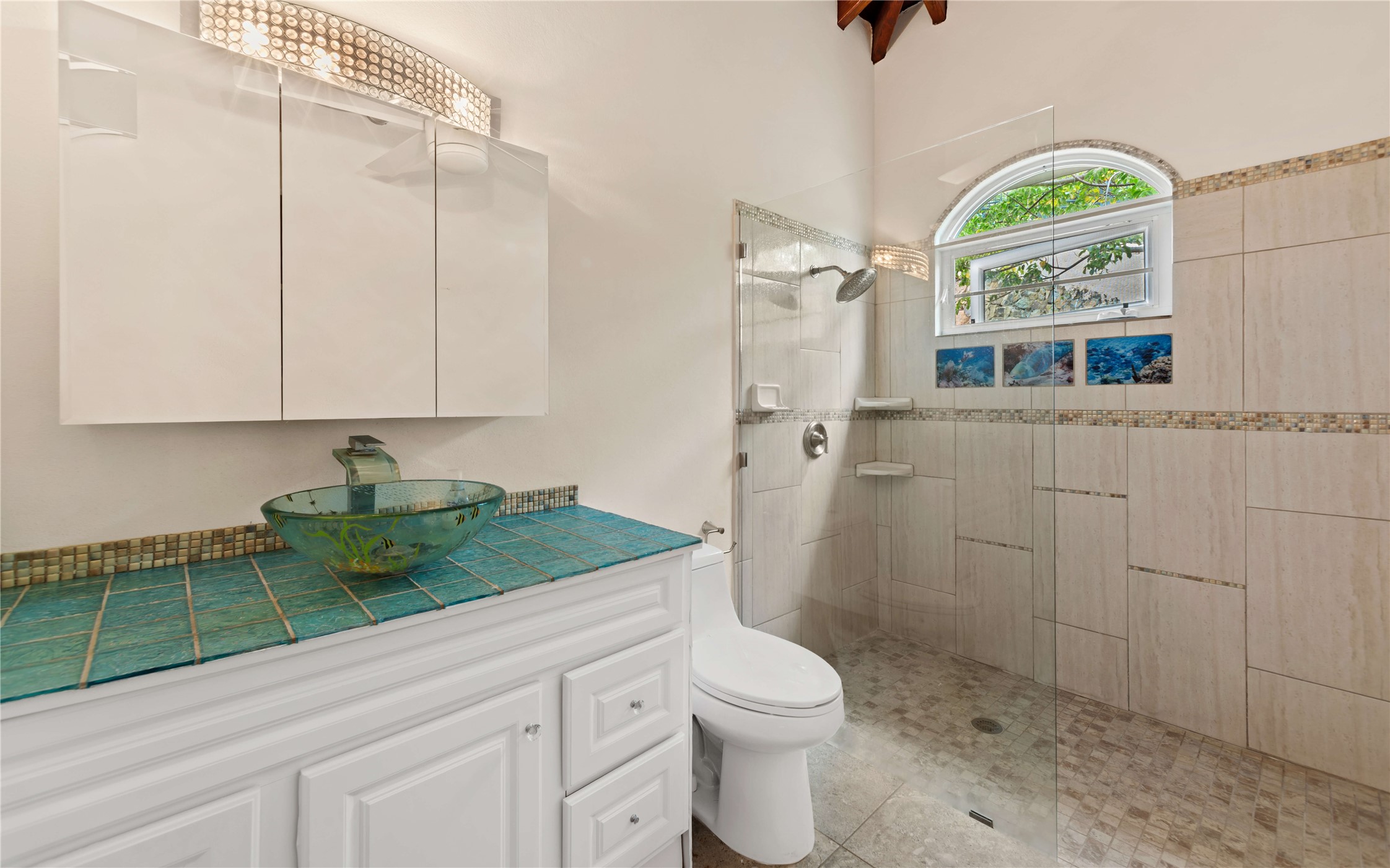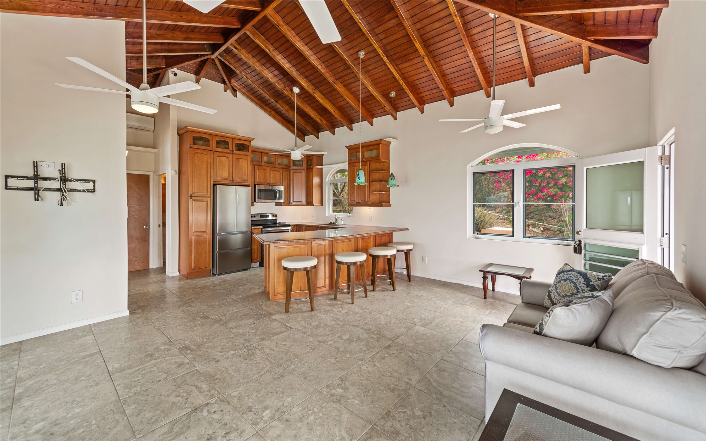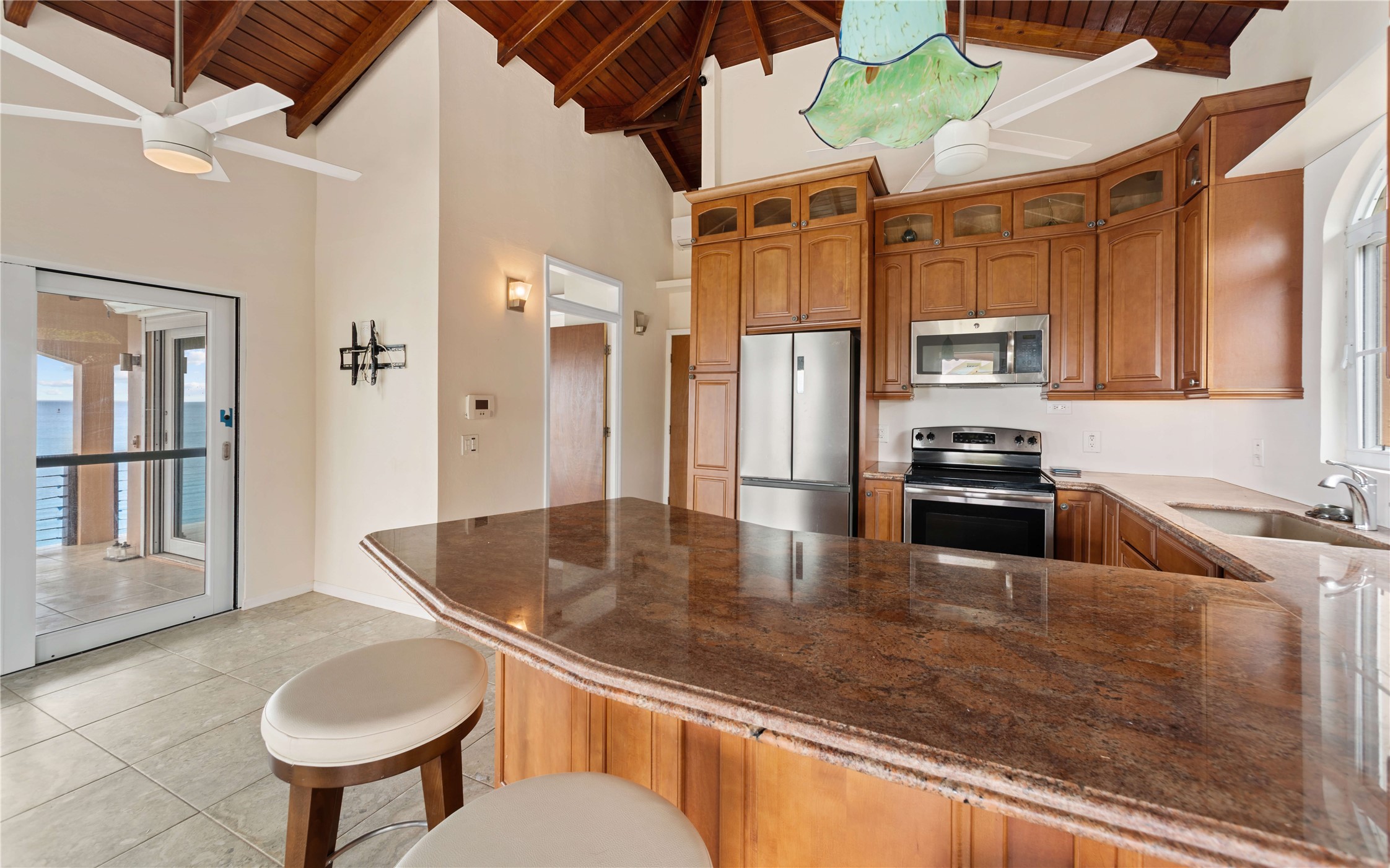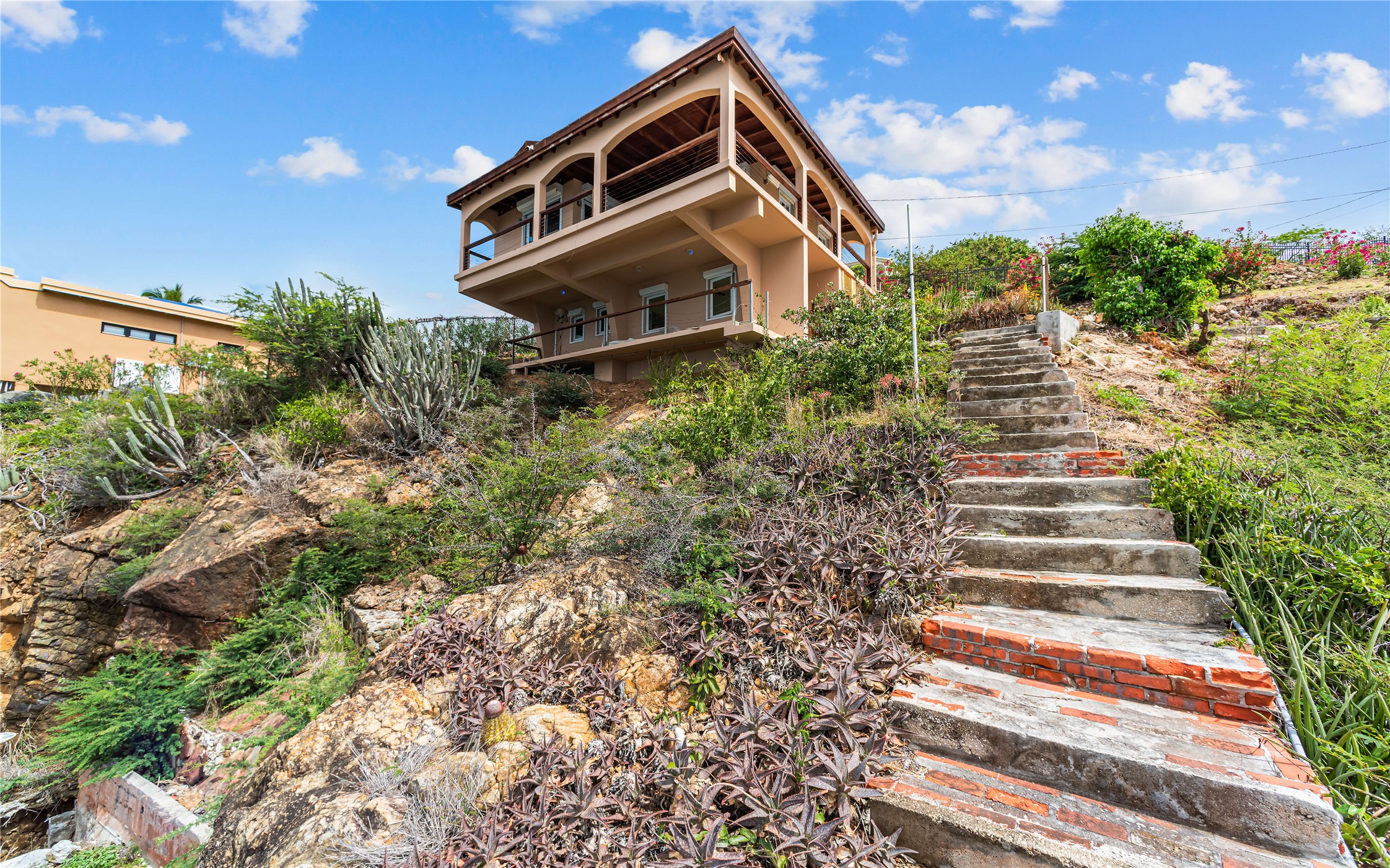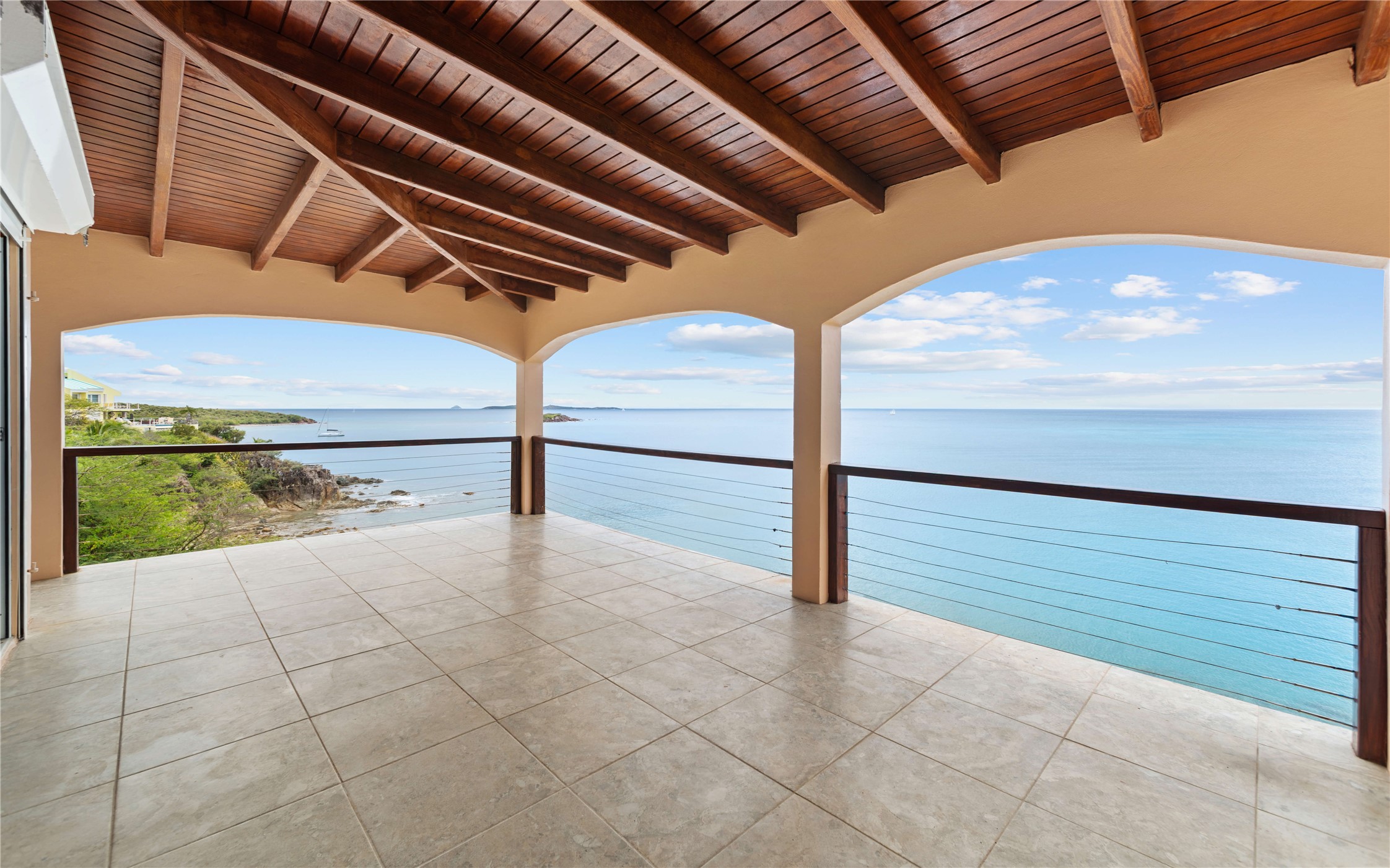 Absolutely STUNNING! This is truly a one of a kind waterfront property on St Thomas, US Virgin Islands! Imagine... a charming cottage...on a gated parcel... room to expand...with your pool literally built out into the ocean! There's just no better place than floating in your pool at sea level! The cottage is solid masonry construction featuring a beautiful kitchen, open concept living surrounded by sliding doors opening to expansive ocean view decks. Vaulted tongue and groove ceilings throughout. Full one bedroom/one bath on the main level. The lower level offers second bedroom space with a full bath. Original plan was to live in the cottage while building your dream villa on the remainder of the generous parcel. It's beautifully imagined as is too. The pool... what's not to love! The best of island living.