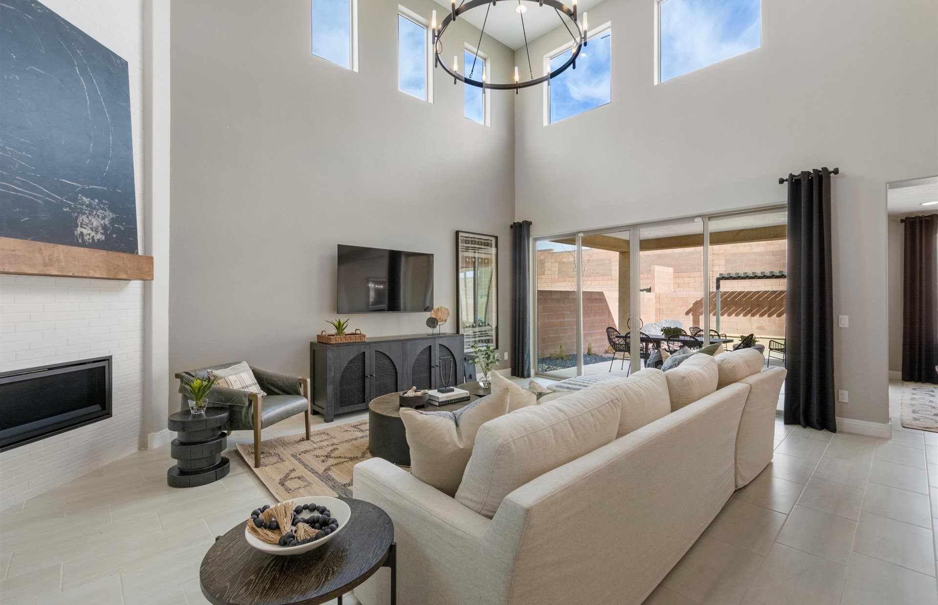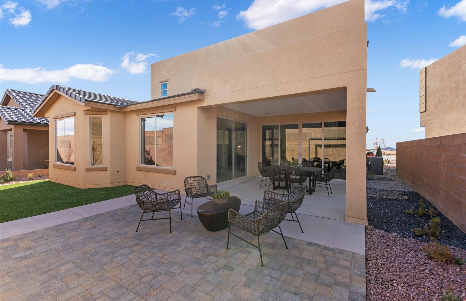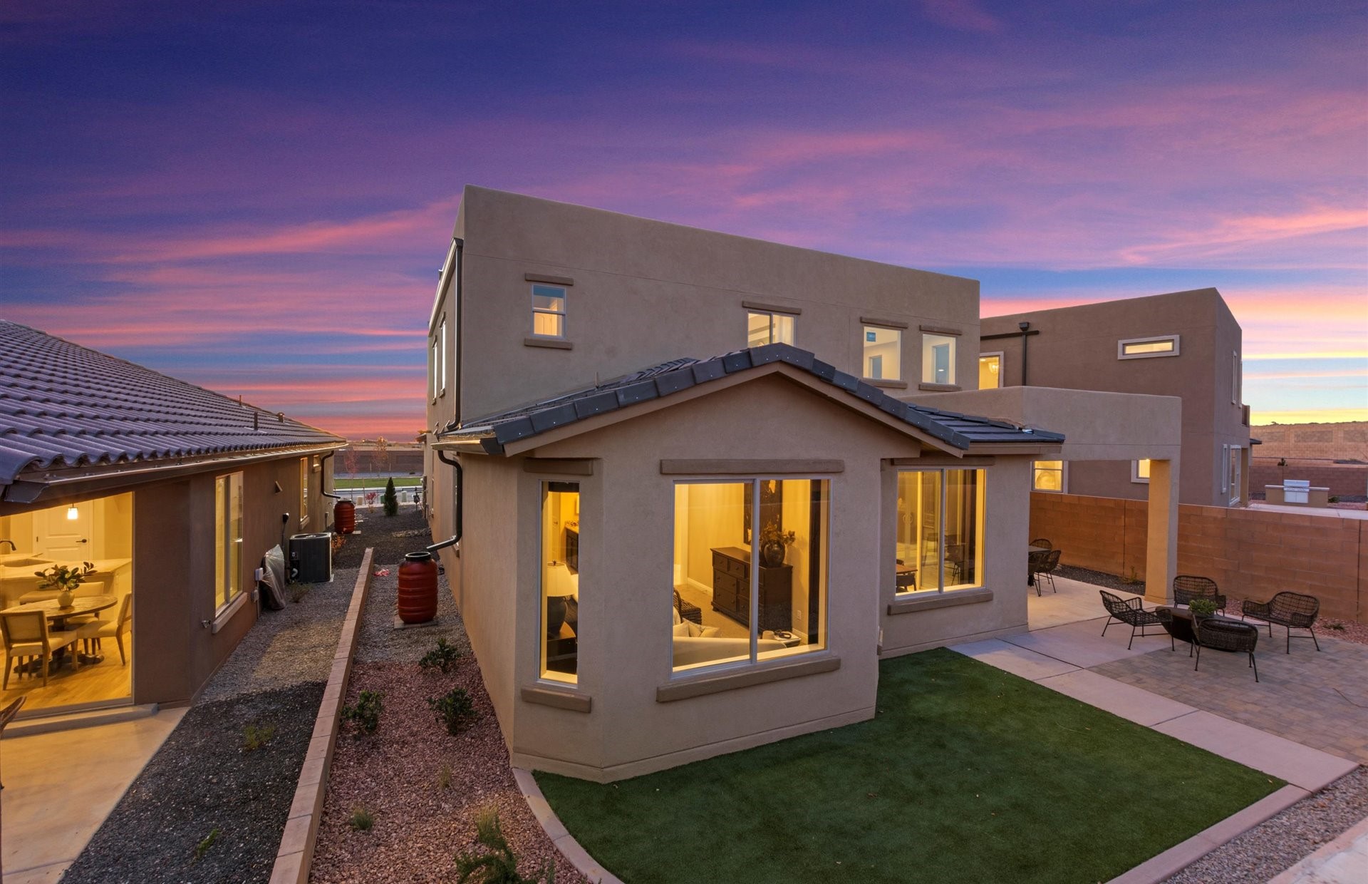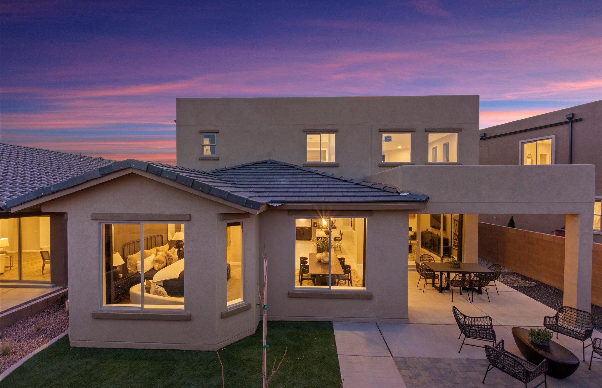The Pulte Colibri Yucca Model Home is for sale. Located in the popular Colibri Community near shopping & easy access to Hwy 599 & I25. This beautifully finished model offers extra living space with a rear home extension, perfect for hosting or relaxing. Enjoy cozy evenings by the built in living room fireplace, and indoor outdoor living through the wide sliding glass door. The kitchen shines with a chef-style layout, built in stainless gas oven, and generous stone countertops--ideal for everyday meals or entertaining. The owner's bath feels like a retreat, highlighted by a freestanding soaking tub and elegant glass shower. Upgraded back landscaping included. Beautiful community parks, landscaped areas and a walking trail.