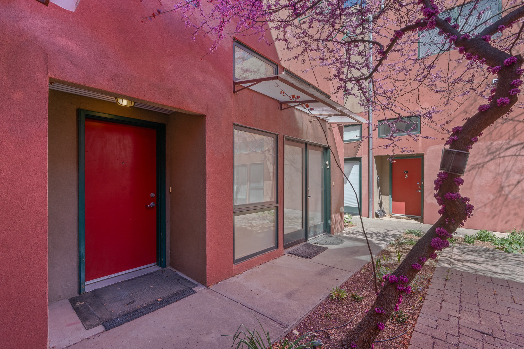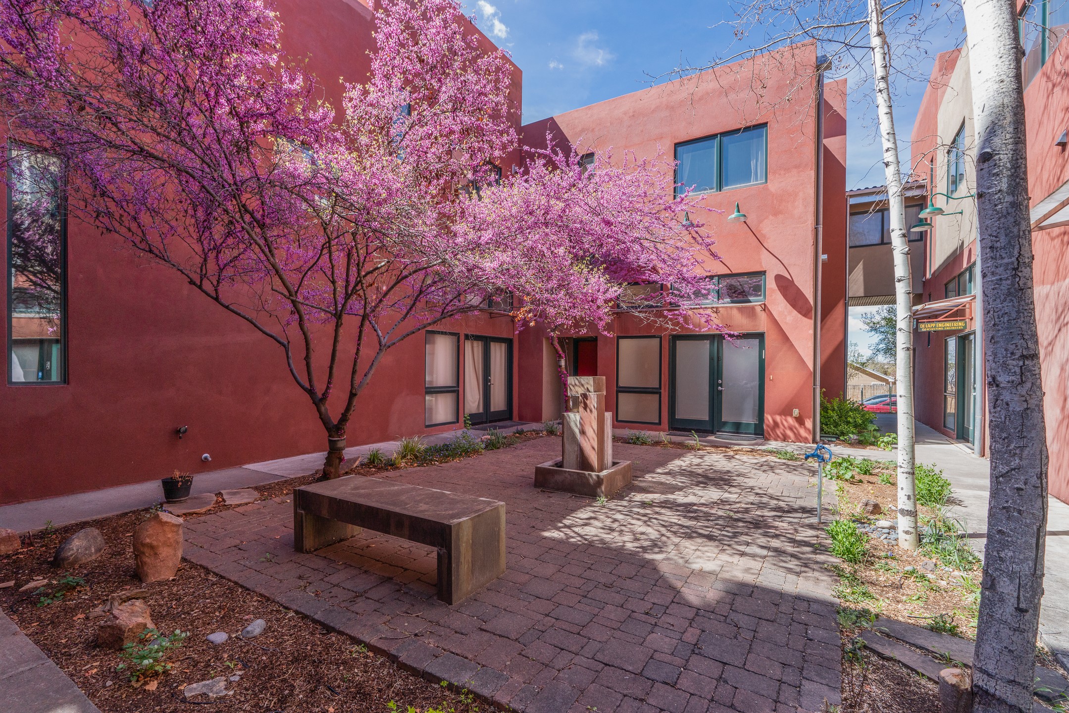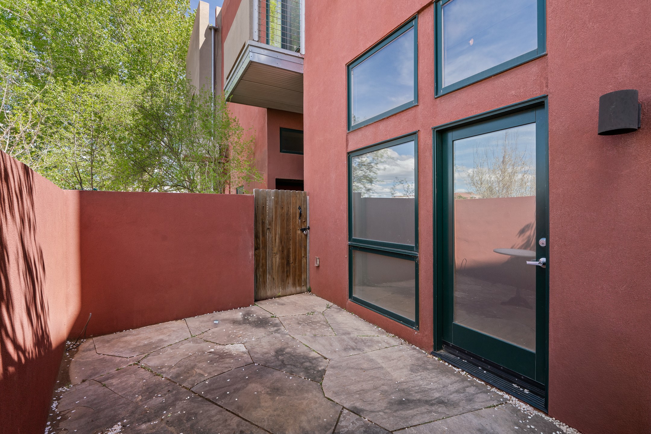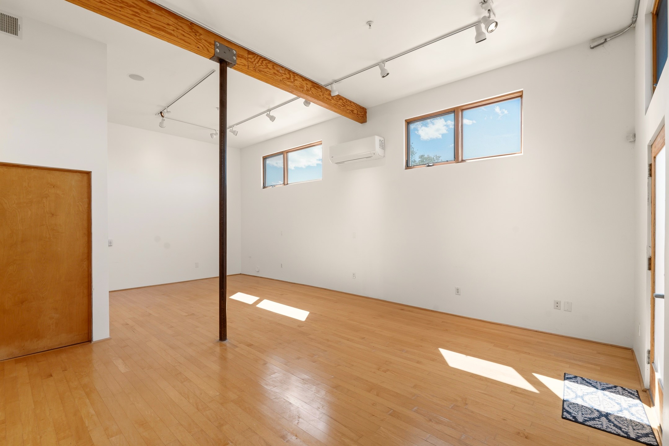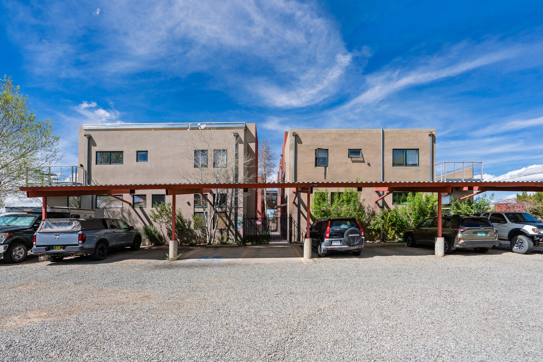 Exceptional modern 2BD/2BA live/work condominium in the Siler Arts District, designed by Dent & Nordhaus Architects. Offering 2,600 sq ft with C-2 zoning, 12-foot ceilings on both levels, surround sound throughout, and with mountain and city views, this property delivers an inspiring blend of residential comfort and true commercial flexibility.The private upper level has its own entrance and lives like a residence, featuring a comfortable bedroom, full bath, kitchen, spacious living area, breakfast area, and a bonus studio ideal for yoga, meditation, or creative pursuits. A second balcony provides a quiet retreat, thoughtfully separated from the work spaces below.The lower level is designed for professional, studio, or gallery use, with two large commercial spaces connected by a long hallway, an ADA-compliant bath, and a kitchenette with microwave and refrigerator. Separate front and rear entries allow for privacy, client access, and the option to live on one level while renting the other for additional income.This property also features numerous recent upgrades, including a brand-new tankless water heater, water softener/de-acidifier system, mini-split heating and cooling units on both floors, upgraded plumbing piping, and additional thoughtful improvements throughout.Enjoy the largest fully walled private yard/patio in the complex--approximately twice the size of neighboring units--ideal for entertaining, meeting clients, or creating an outdoor workspace. A rare opportunity combining outdoor space, functionality, and flexibility in a vibrant Santa Fe location.