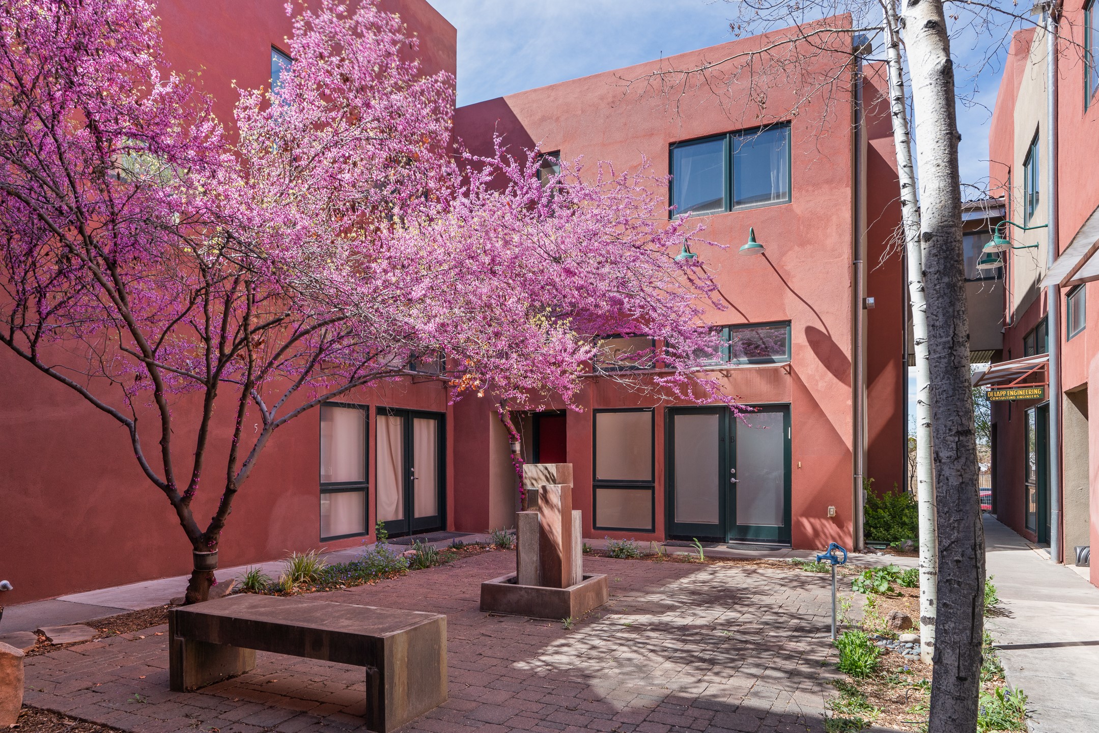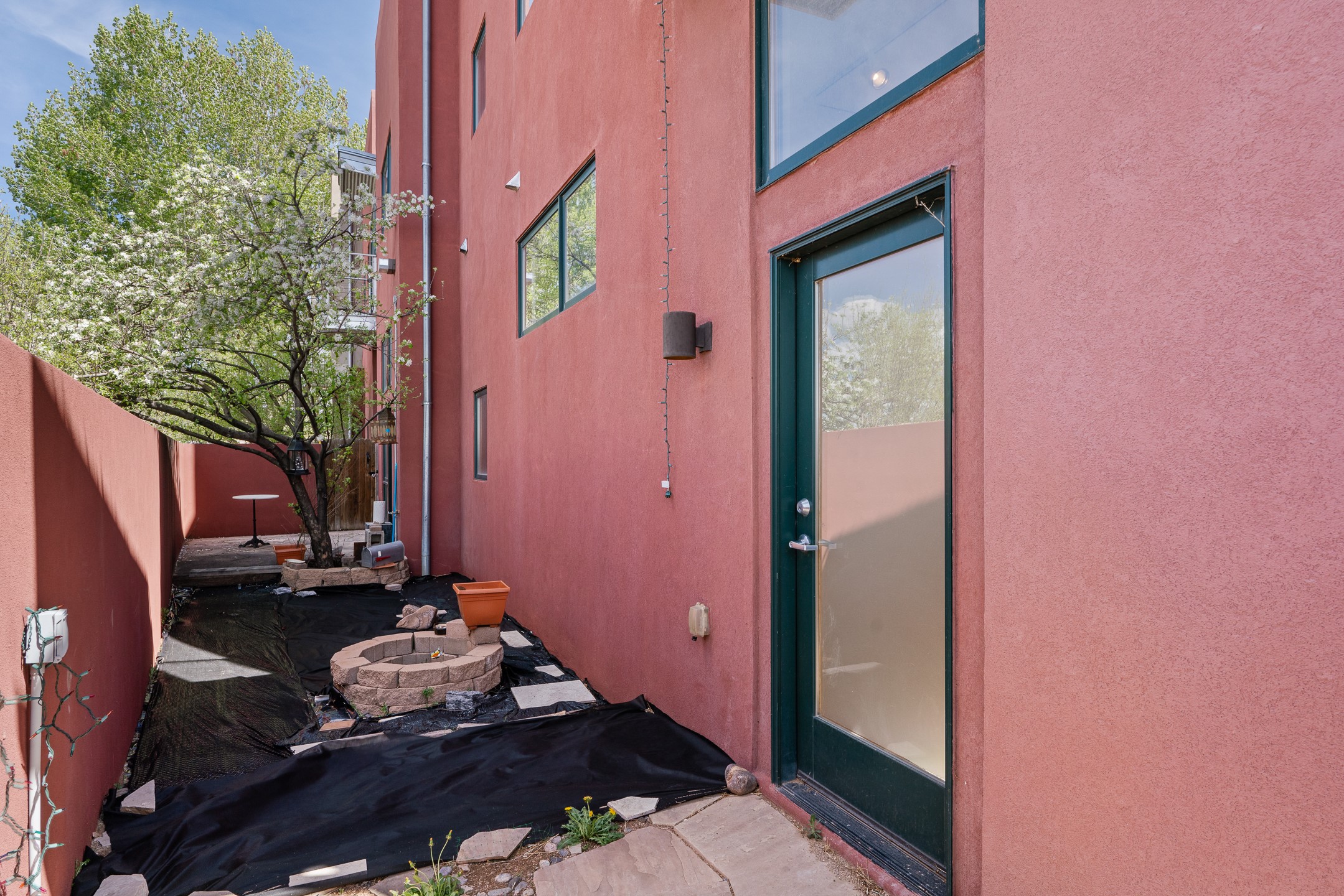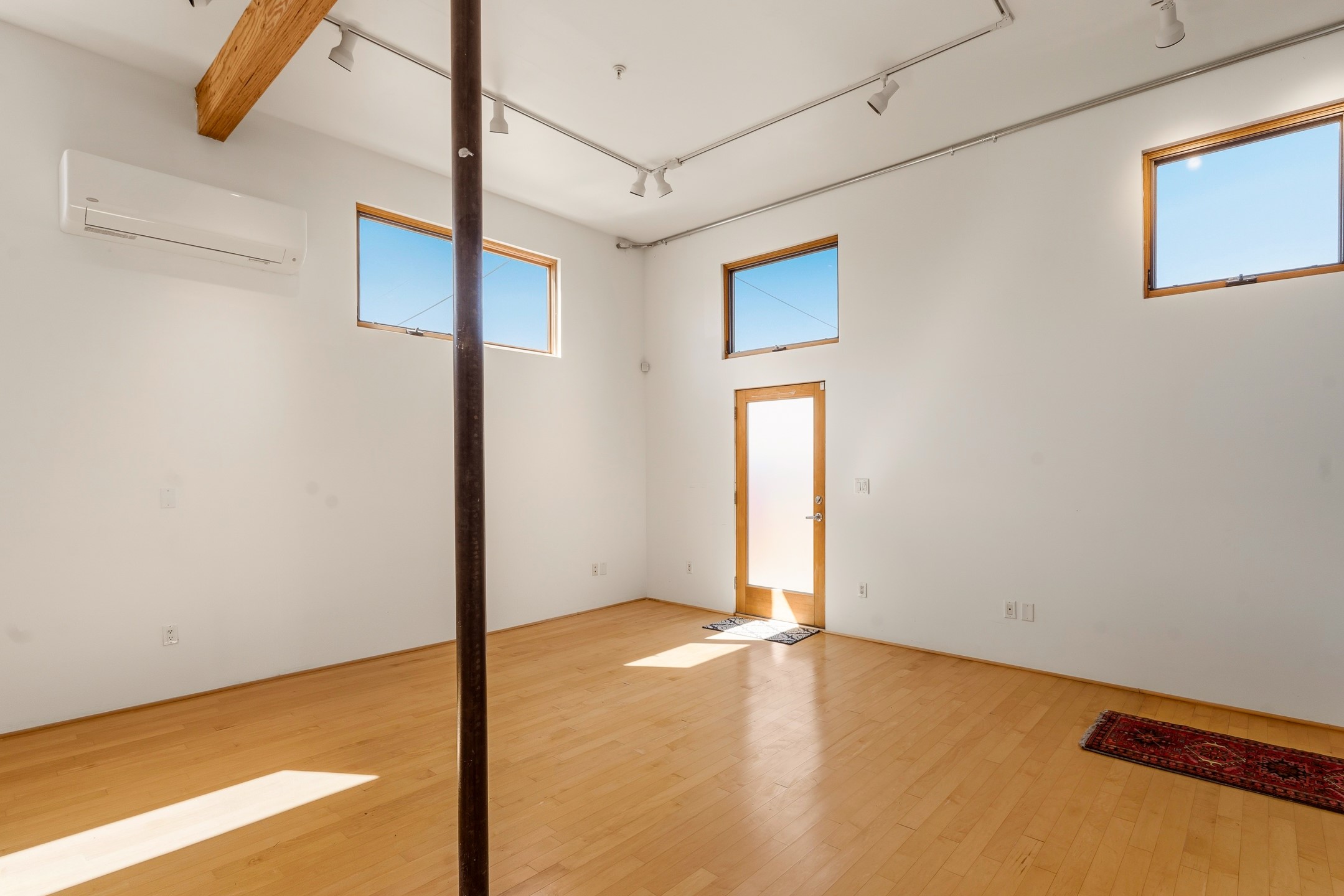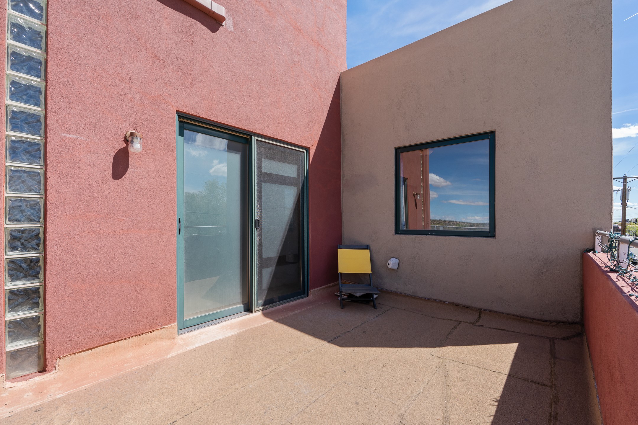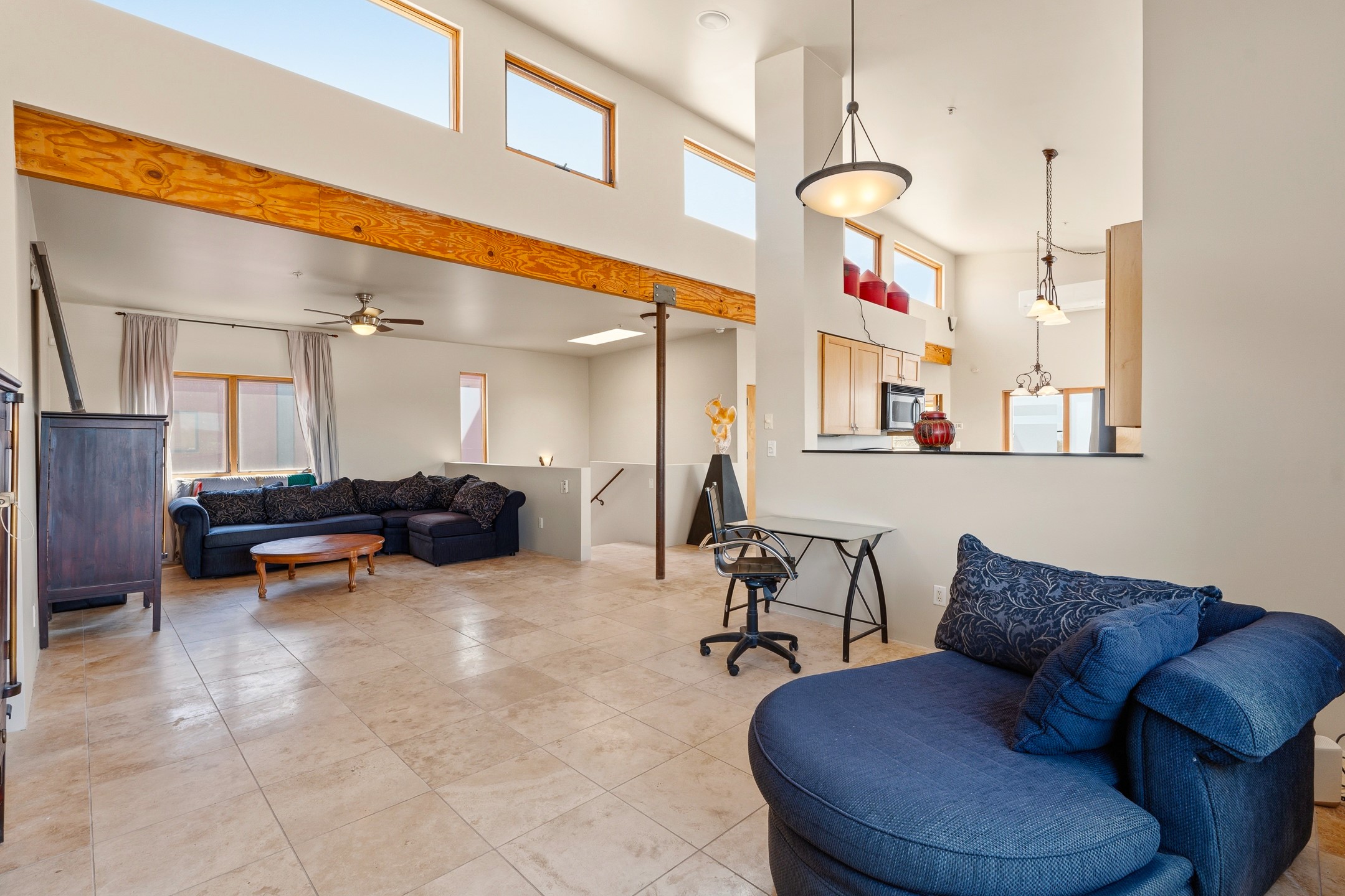 Exceptional modern 2BD/2BA live/work condominium in the Siler Arts District, designed by Dent & Nordhaus Architects. Offering 2,600 sq ft with C-2 zoning, 12-foot ceilings on both levels, surround sound throughout, and with mountain and city views, this property delivers an inspiring blend of residential comfort and true commercial flexibility.The private upper level has its own entrance and lives like a residence, featuring a comfortable bedroom, full bath, kitchen, spacious living area, breakfast area, and a bonus studio ideal for yoga, meditation, or creative pursuits. A second balcony provides a quiet retreat, thoughtfully separated from the work spaces below.The lower level is designed for professional, studio, or gallery use, with two large commercial spaces connected by a long hallway, an ADA-compliant bath, and a kitchenette with microwave and refrigerator. Separate front and rear entries allow for privacy, client access, and the option to live on one level while renting the other for additional income.This property also features numerous recent upgrades, including a brand-new tankless water heater, water softener/de-acidifier system, mini-split heating and cooling units on both floors, upgraded plumbing piping, and additional thoughtful improvements throughout.Enjoy the largest fully walled private yard/patio in the complex--approximately twice the size of neighboring units--ideal for entertaining, meeting clients, or creating an outdoor workspace. A rare opportunity combining outdoor space, functionality, and flexibility in a vibrant Santa Fe location.