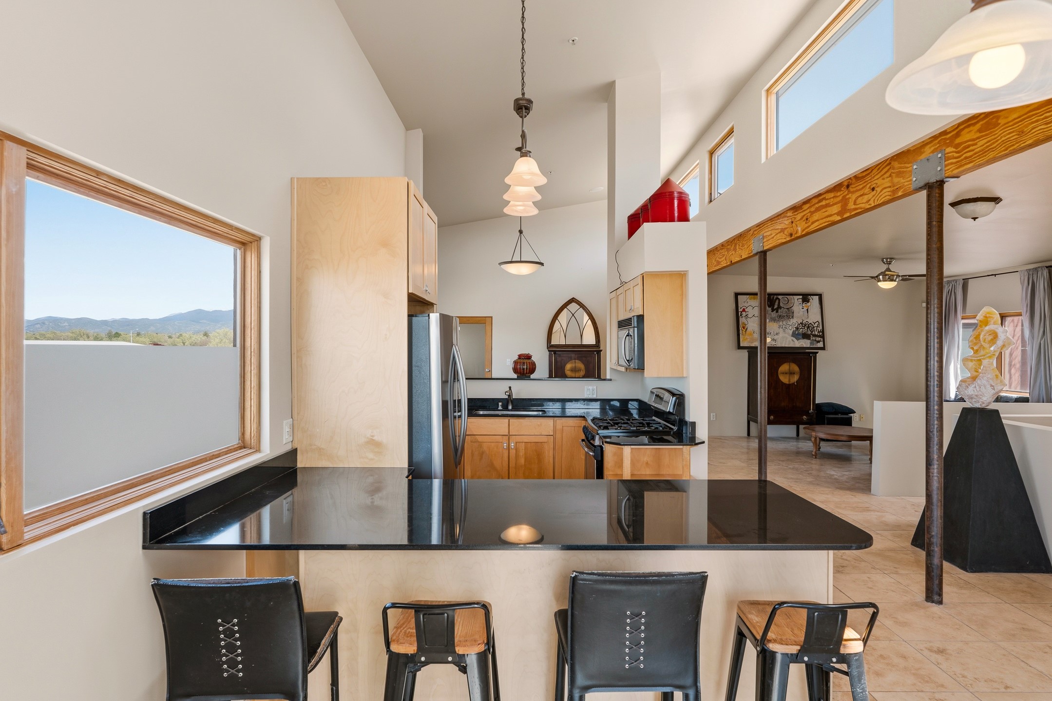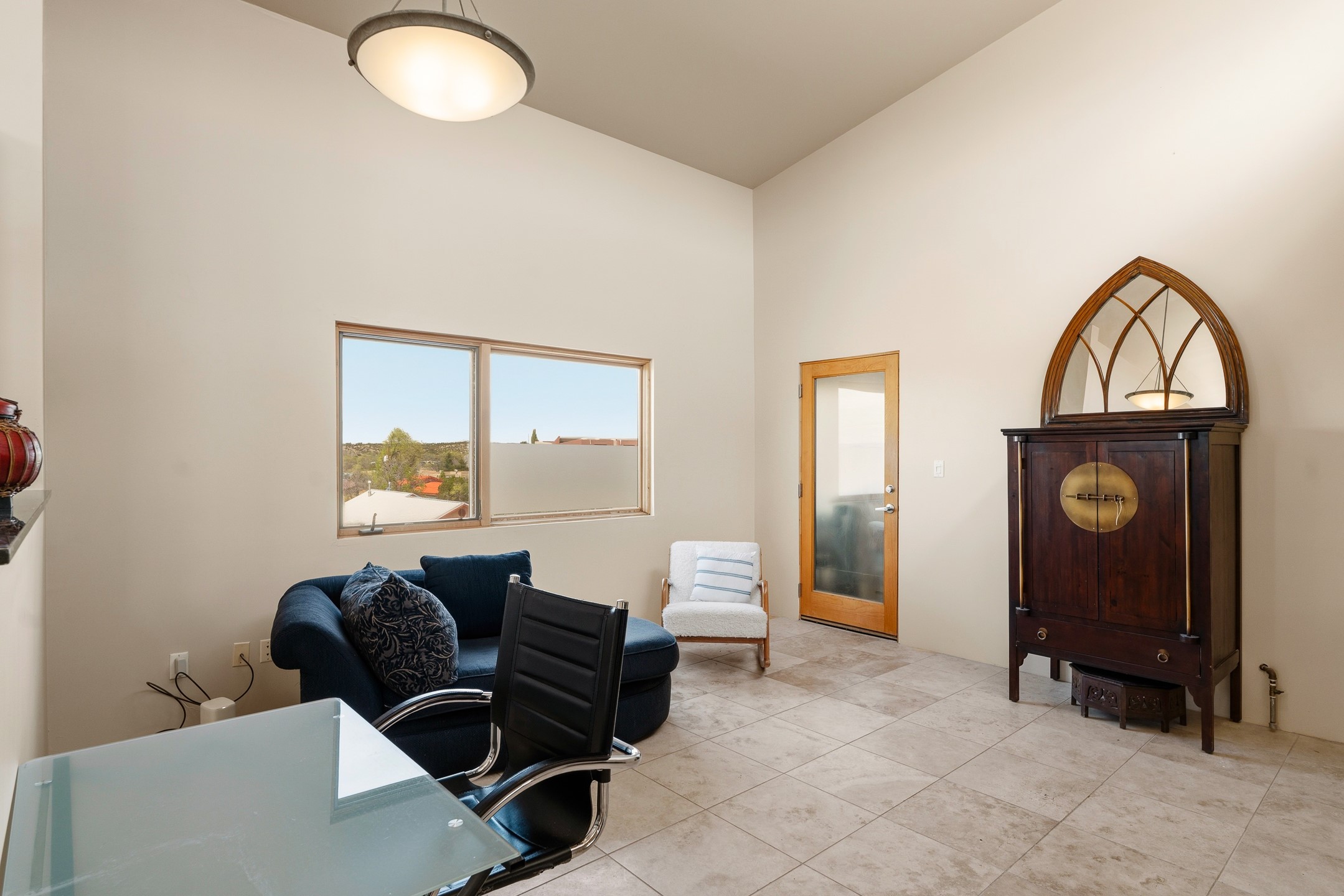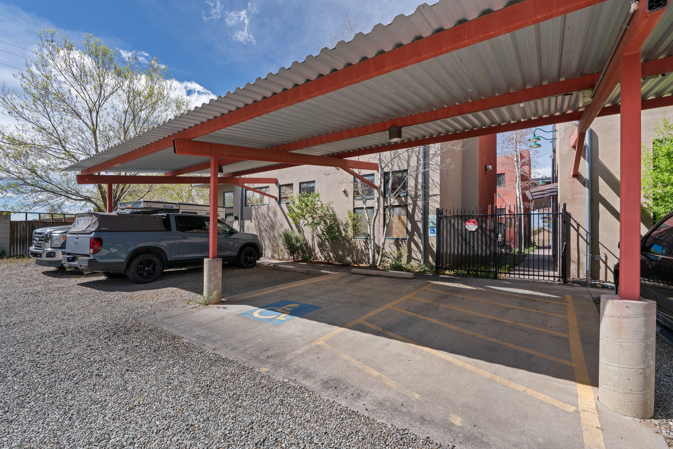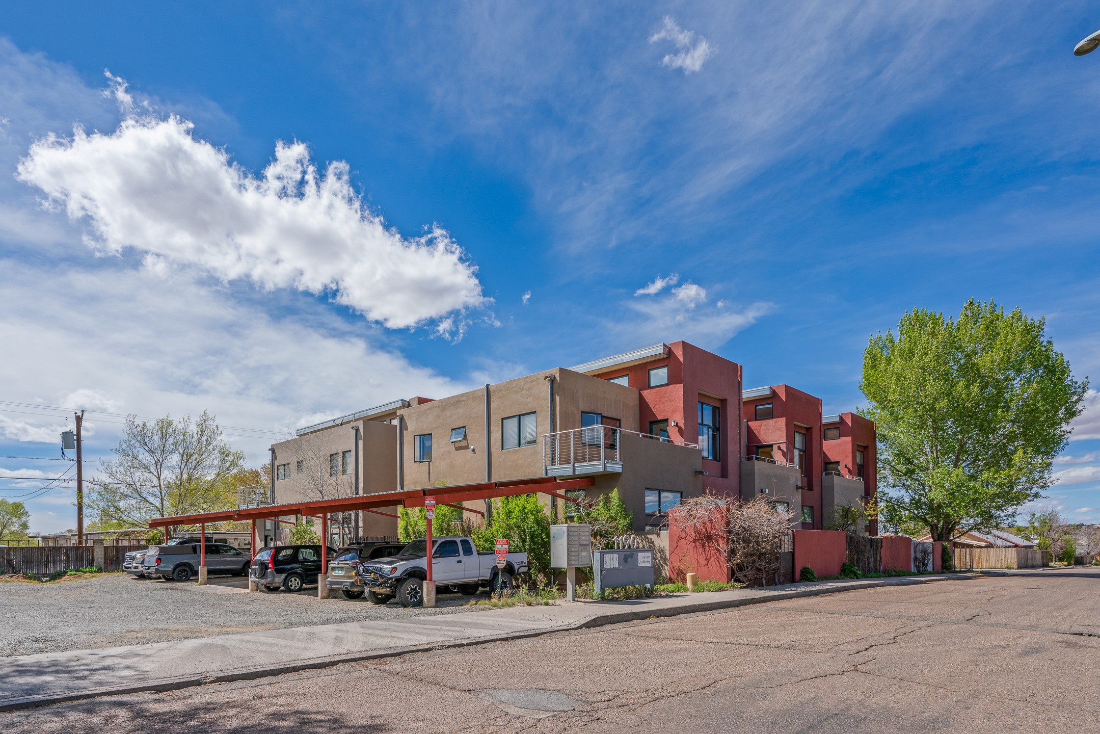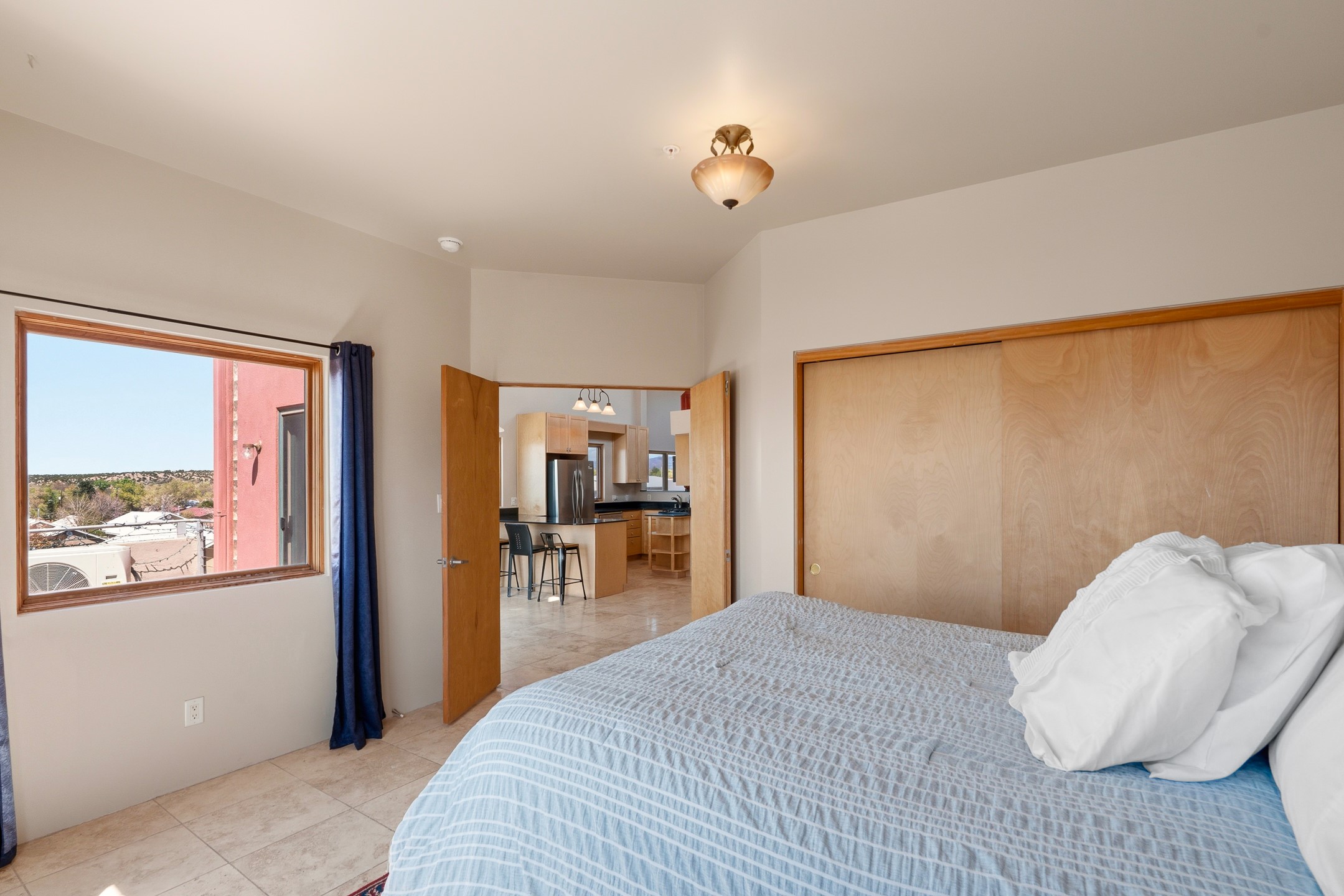 Exceptional modern 2BD/2BA live/work condominium in the Siler Arts District, designed by Dent & Nordhaus Architects. Offering 2,600 sq ft with C-2 zoning, 12-foot ceilings on both levels, surround sound throughout, and with mountain and city views, this property delivers an inspiring blend of residential comfort and true commercial flexibility.The private upper level has its own entrance and lives like a residence, featuring a comfortable bedroom, full bath, kitchen, spacious living area, breakfast area, and a bonus studio ideal for yoga, meditation, or creative pursuits. A second balcony provides a quiet retreat, thoughtfully separated from the work spaces below.The lower level is designed for professional, studio, or gallery use, with two large commercial spaces connected by a long hallway, an ADA-compliant bath, and a kitchenette with microwave and refrigerator. Separate front and rear entries allow for privacy, client access, and the option to live on one level while renting the other for additional income.This property also features numerous recent upgrades, including a brand-new tankless water heater, water softener/de-acidifier system, mini-split heating and cooling units on both floors, upgraded plumbing piping, and additional thoughtful improvements throughout.Enjoy the largest fully walled private yard/patio in the complex--approximately twice the size of neighboring units--ideal for entertaining, meeting clients, or creating an outdoor workspace. A rare opportunity combining outdoor space, functionality, and flexibility in a vibrant Santa Fe location.