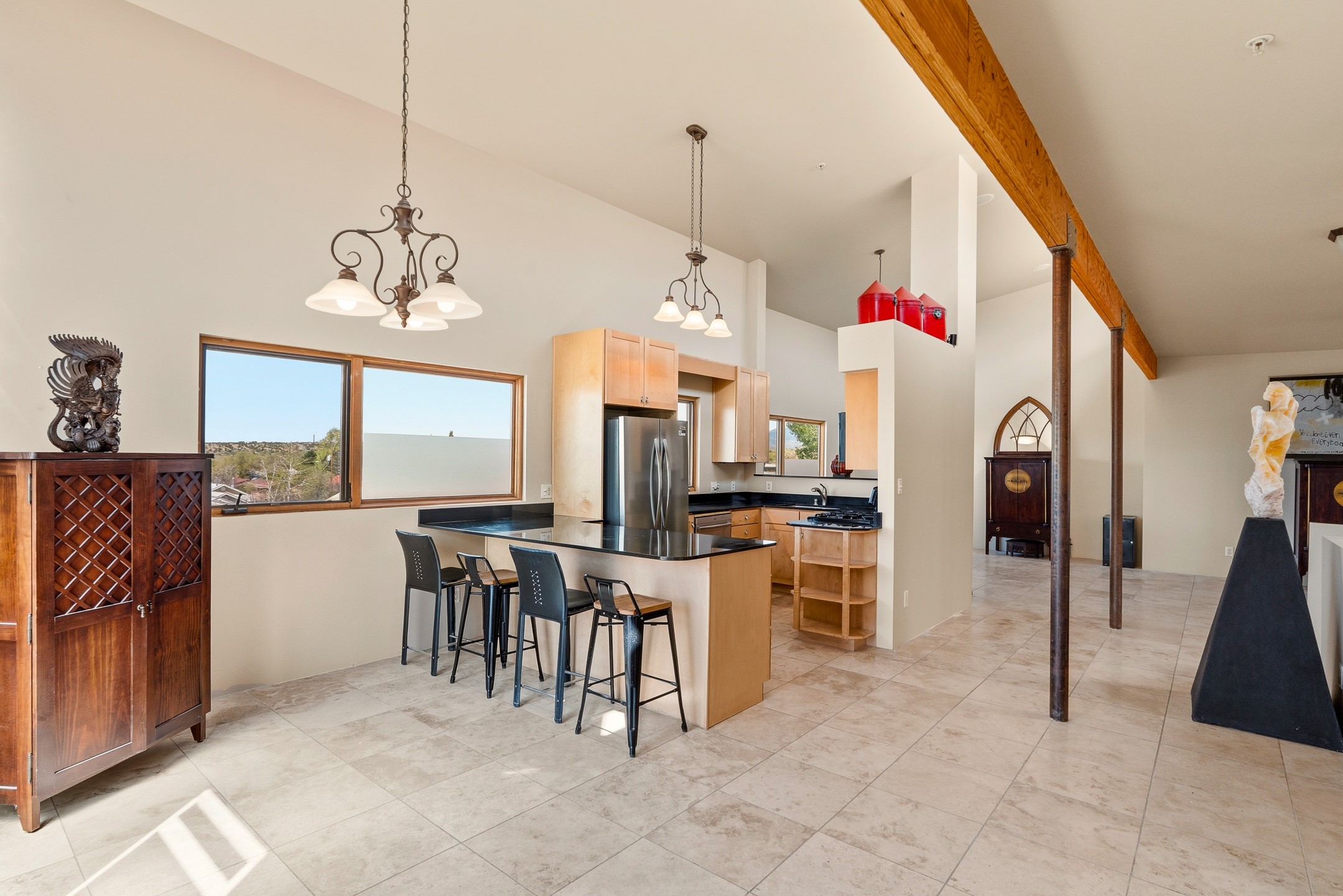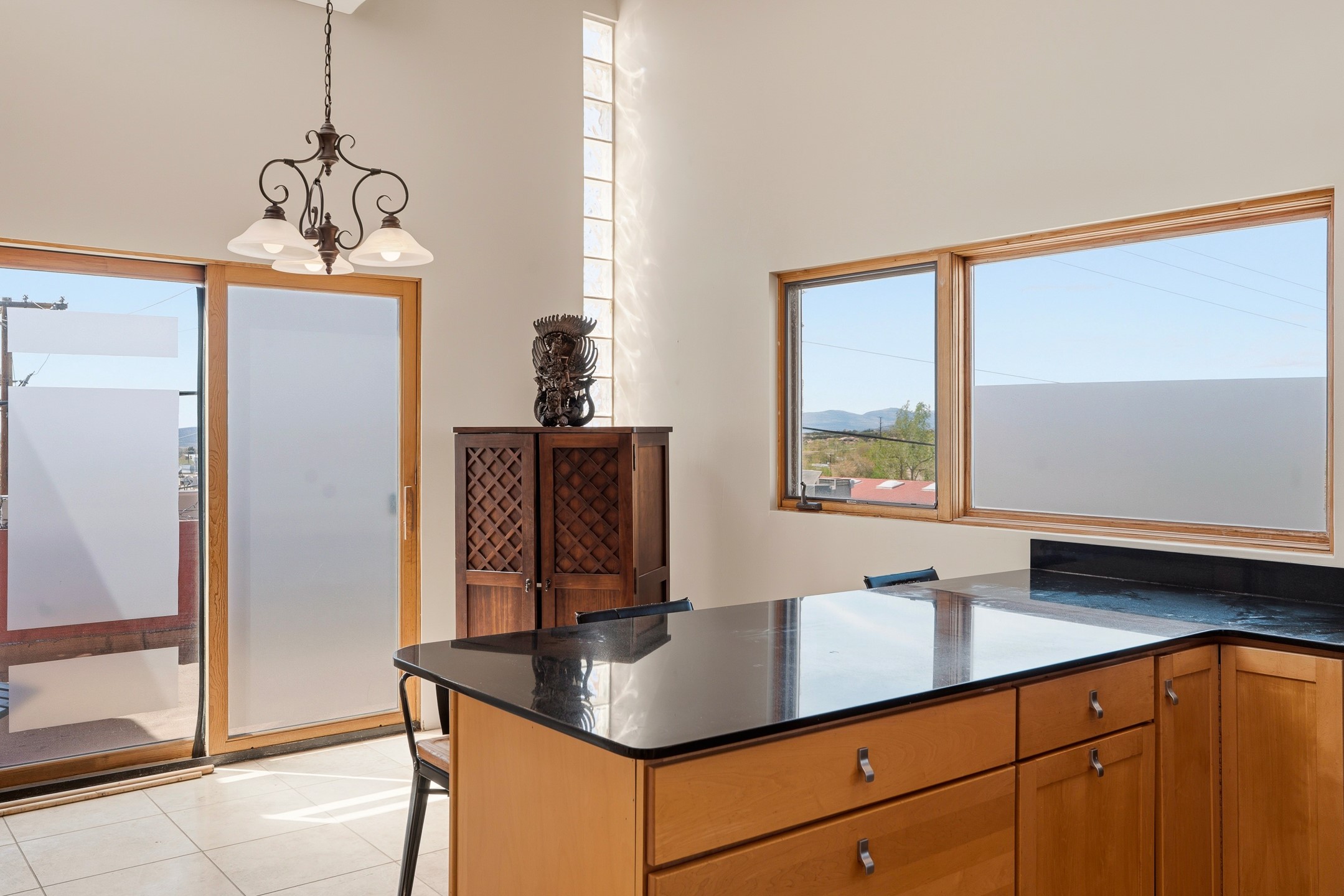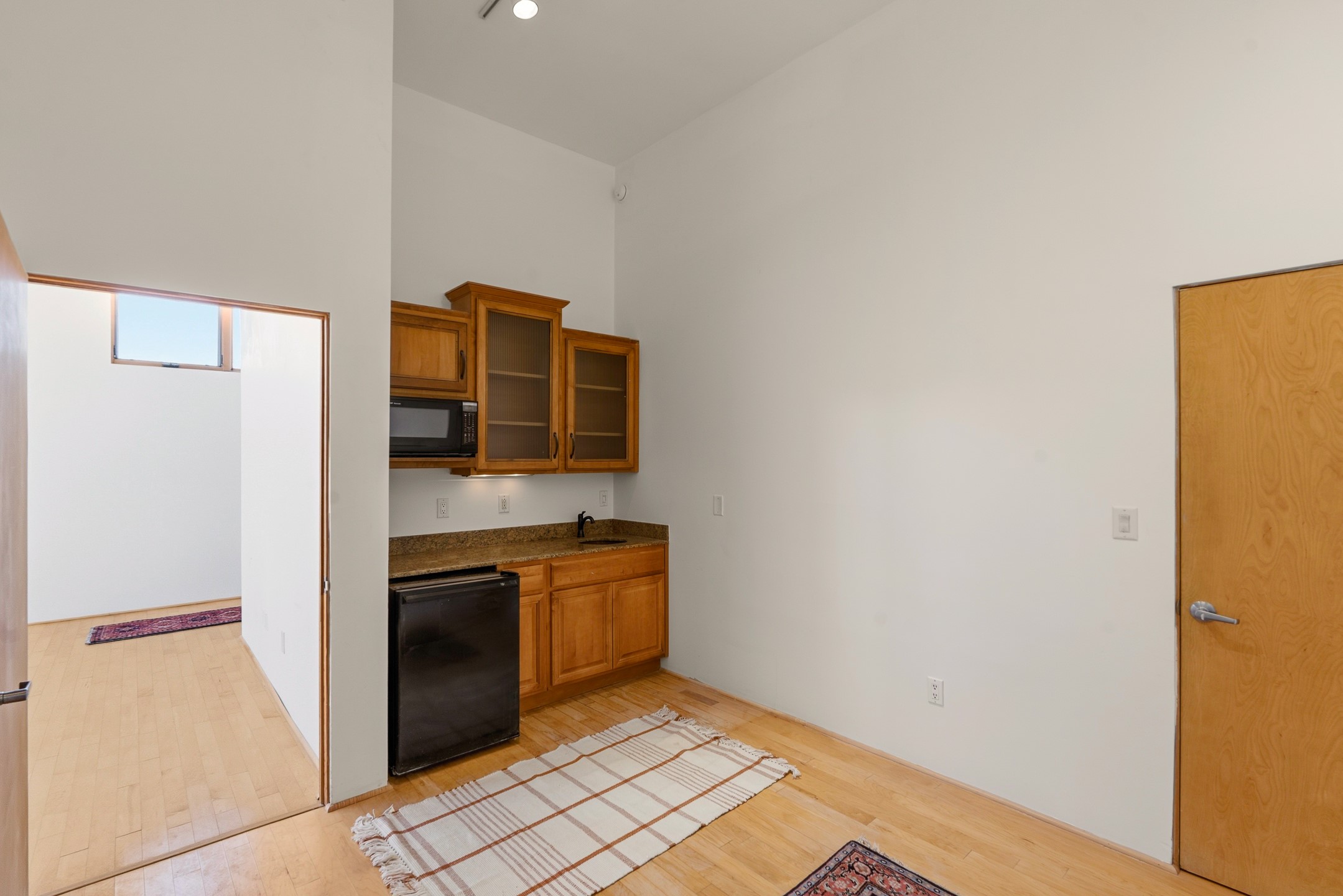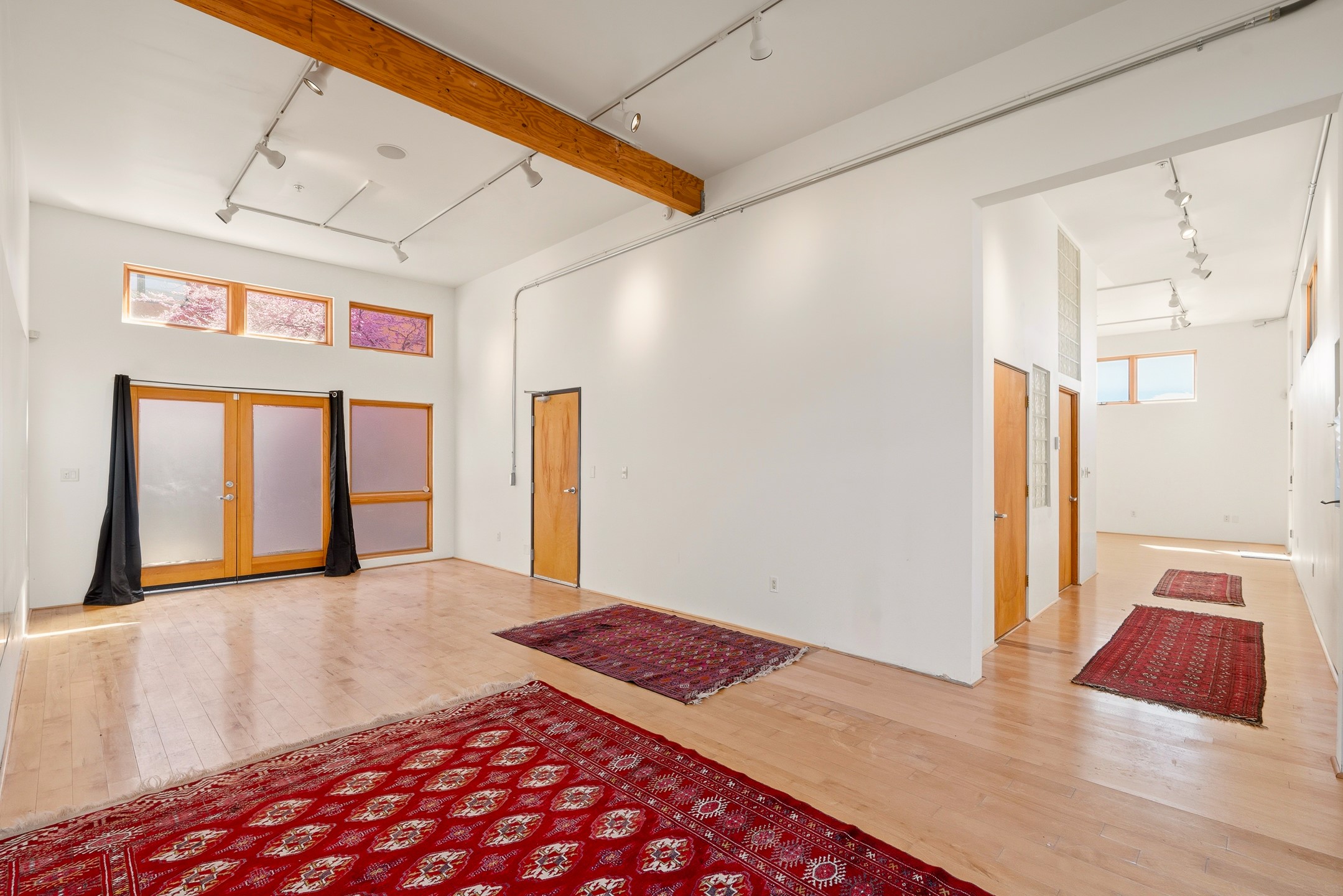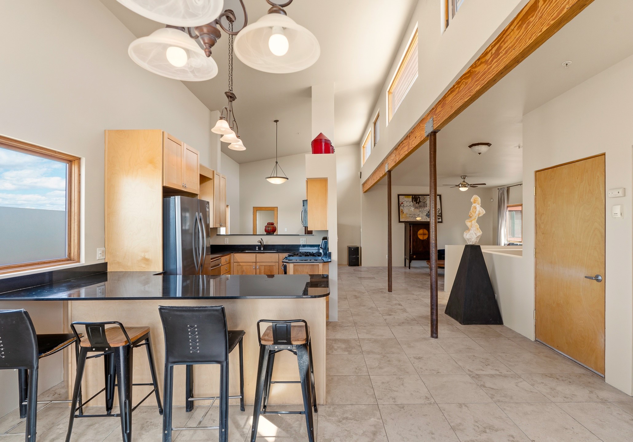 Exceptional modern 2BD/2BA live/work condominium in the Siler Arts District, designed by Dent & Nordhaus Architects. Offering 2,600 sq ft with C-2 zoning, 12-foot ceilings on both levels, surround sound throughout, and with mountain and city views, this property delivers an inspiring blend of residential comfort and true commercial flexibility.The private upper level has its own entrance and lives like a residence, featuring a comfortable bedroom, full bath, kitchen, spacious living area, breakfast area, and a bonus studio ideal for yoga, meditation, or creative pursuits. A second balcony provides a quiet retreat, thoughtfully separated from the work spaces below.The lower level is designed for professional, studio, or gallery use, with two large commercial spaces connected by a long hallway, an ADA-compliant bath, and a kitchenette with microwave and refrigerator. Separate front and rear entries allow for privacy, client access, and the option to live on one level while renting the other for additional income.This property also features numerous recent upgrades, including a brand-new tankless water heater, water softener/de-acidifier system, mini-split heating and cooling units on both floors, upgraded plumbing piping, and additional thoughtful improvements throughout.Enjoy the largest fully walled private yard/patio in the complex--approximately twice the size of neighboring units--ideal for entertaining, meeting clients, or creating an outdoor workspace. A rare opportunity combining outdoor space, functionality, and flexibility in a vibrant Santa Fe location.