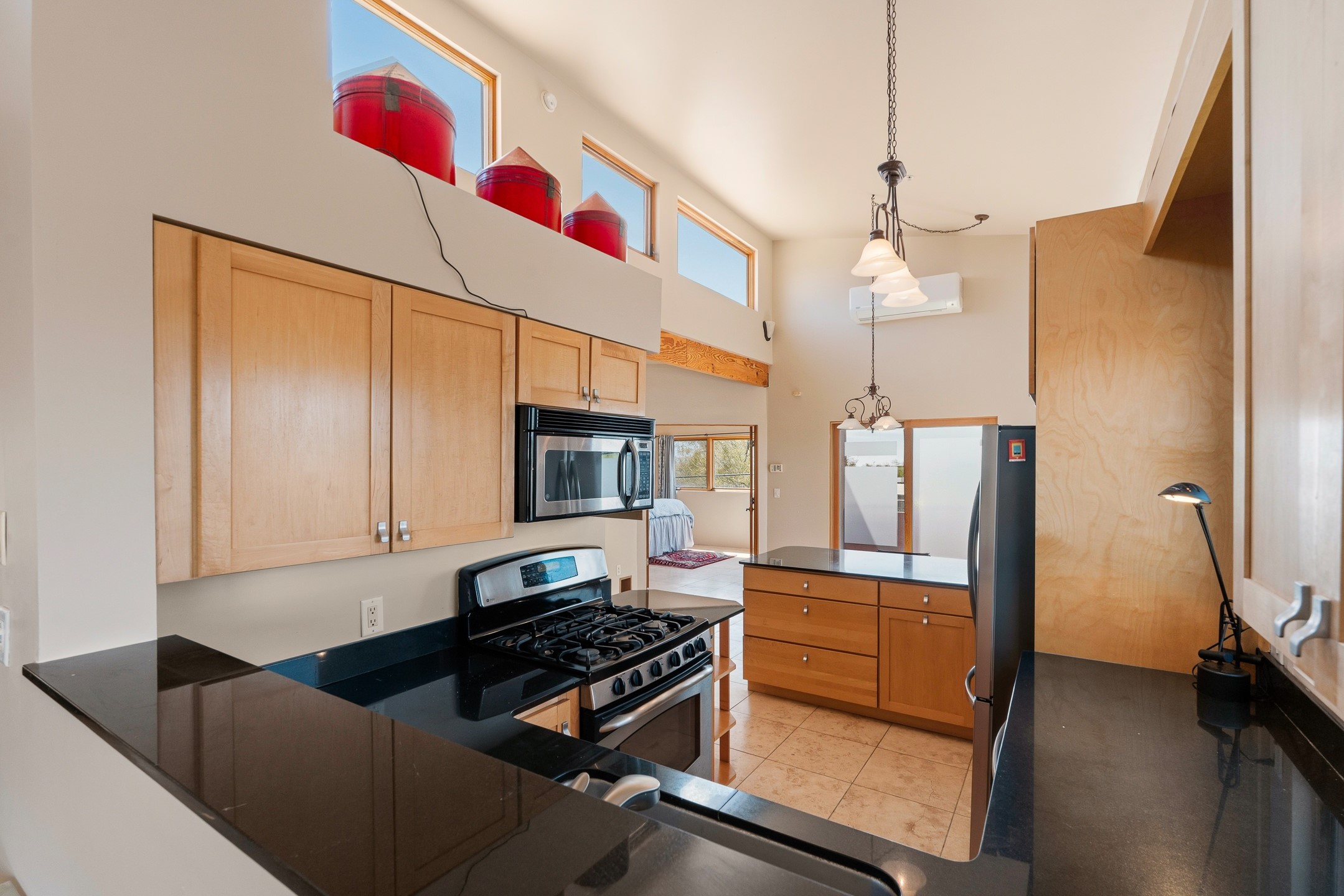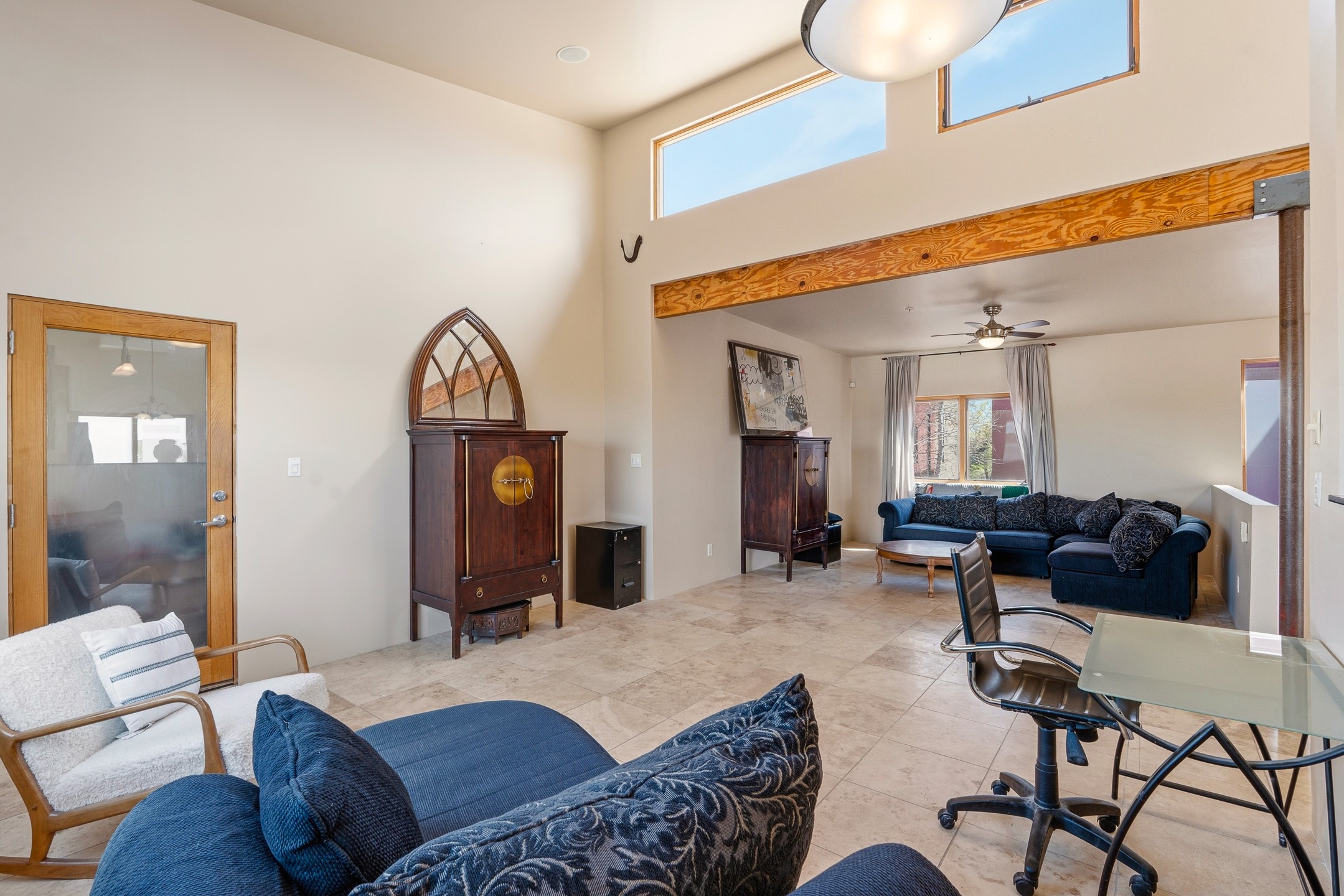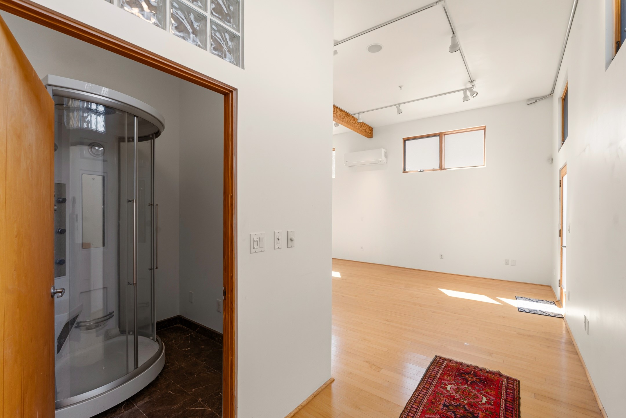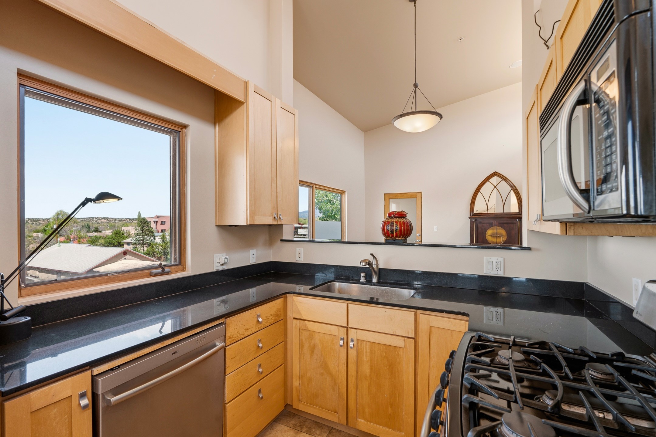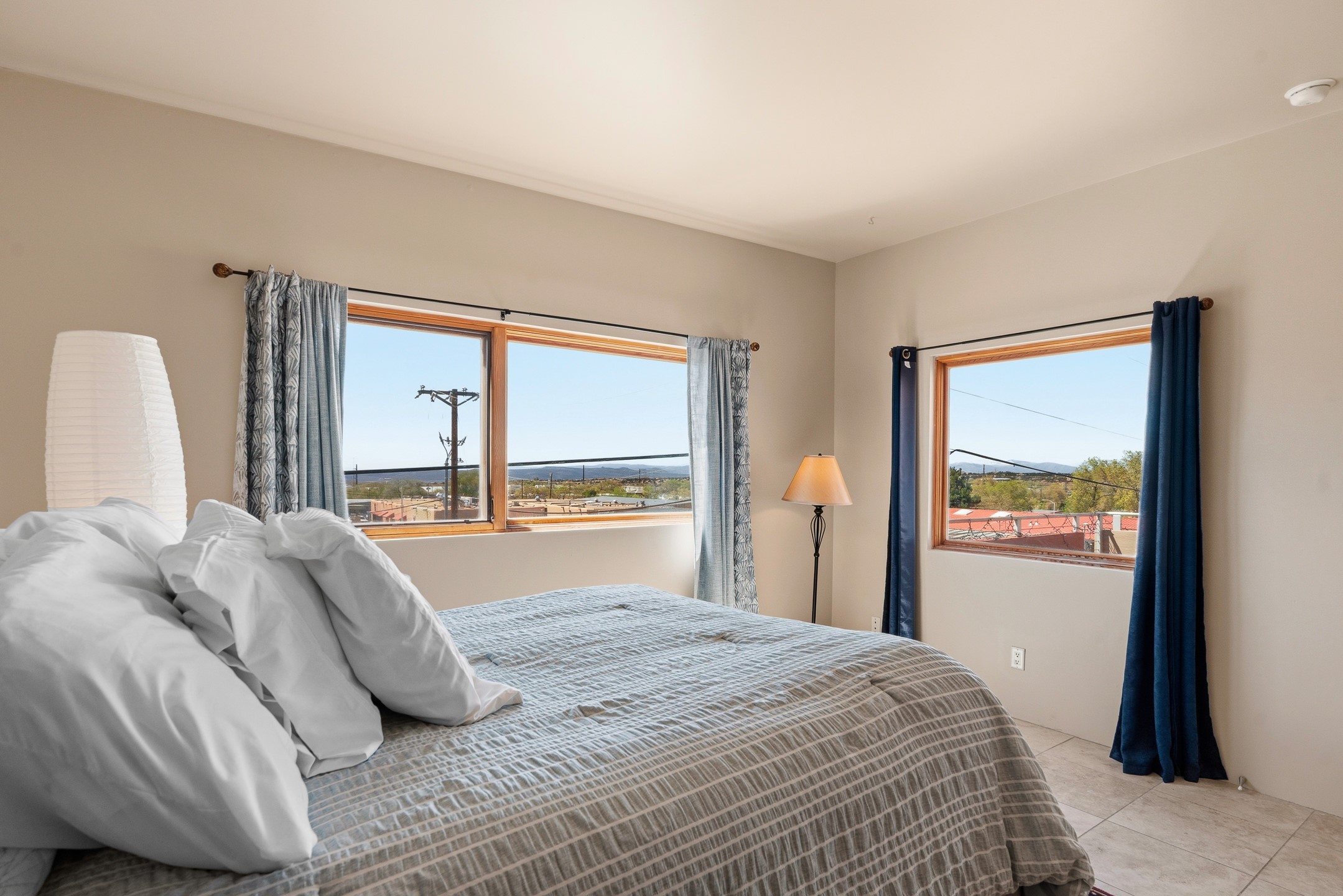 Exceptional modern 2BD/2BA live/work condominium in the Siler Arts District, designed by Dent & Nordhaus Architects. Offering 2,600 sq ft with C-2 zoning, 12-foot ceilings on both levels, surround sound throughout, and with mountain and city views, this property delivers an inspiring blend of residential comfort and true commercial flexibility.The private upper level has its own entrance and lives like a residence, featuring a comfortable bedroom, full bath, kitchen, spacious living area, breakfast area, and a bonus studio ideal for yoga, meditation, or creative pursuits. A second balcony provides a quiet retreat, thoughtfully separated from the work spaces below.The lower level is designed for professional, studio, or gallery use, with two large commercial spaces connected by a long hallway, an ADA-compliant bath, and a kitchenette with microwave and refrigerator. Separate front and rear entries allow for privacy, client access, and the option to live on one level while renting the other for additional income.This property also features numerous recent upgrades, including a brand-new tankless water heater, water softener/de-acidifier system, mini-split heating and cooling units on both floors, upgraded plumbing piping, and additional thoughtful improvements throughout.Enjoy the largest fully walled private yard/patio in the complex--approximately twice the size of neighboring units--ideal for entertaining, meeting clients, or creating an outdoor workspace. A rare opportunity combining outdoor space, functionality, and flexibility in a vibrant Santa Fe location.
