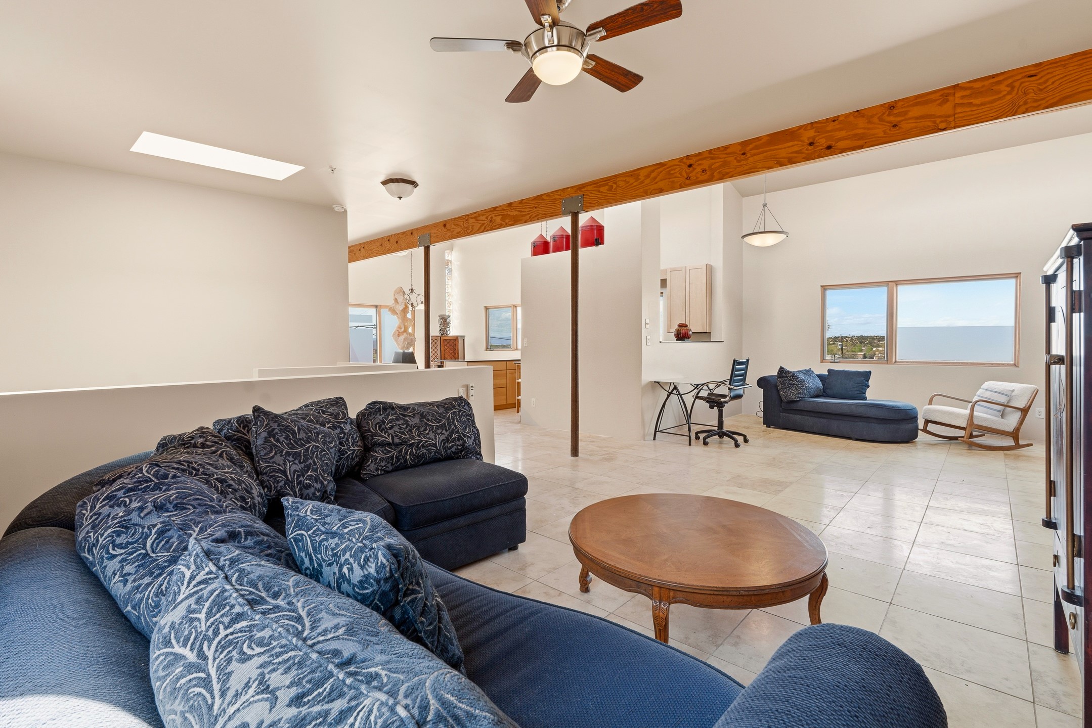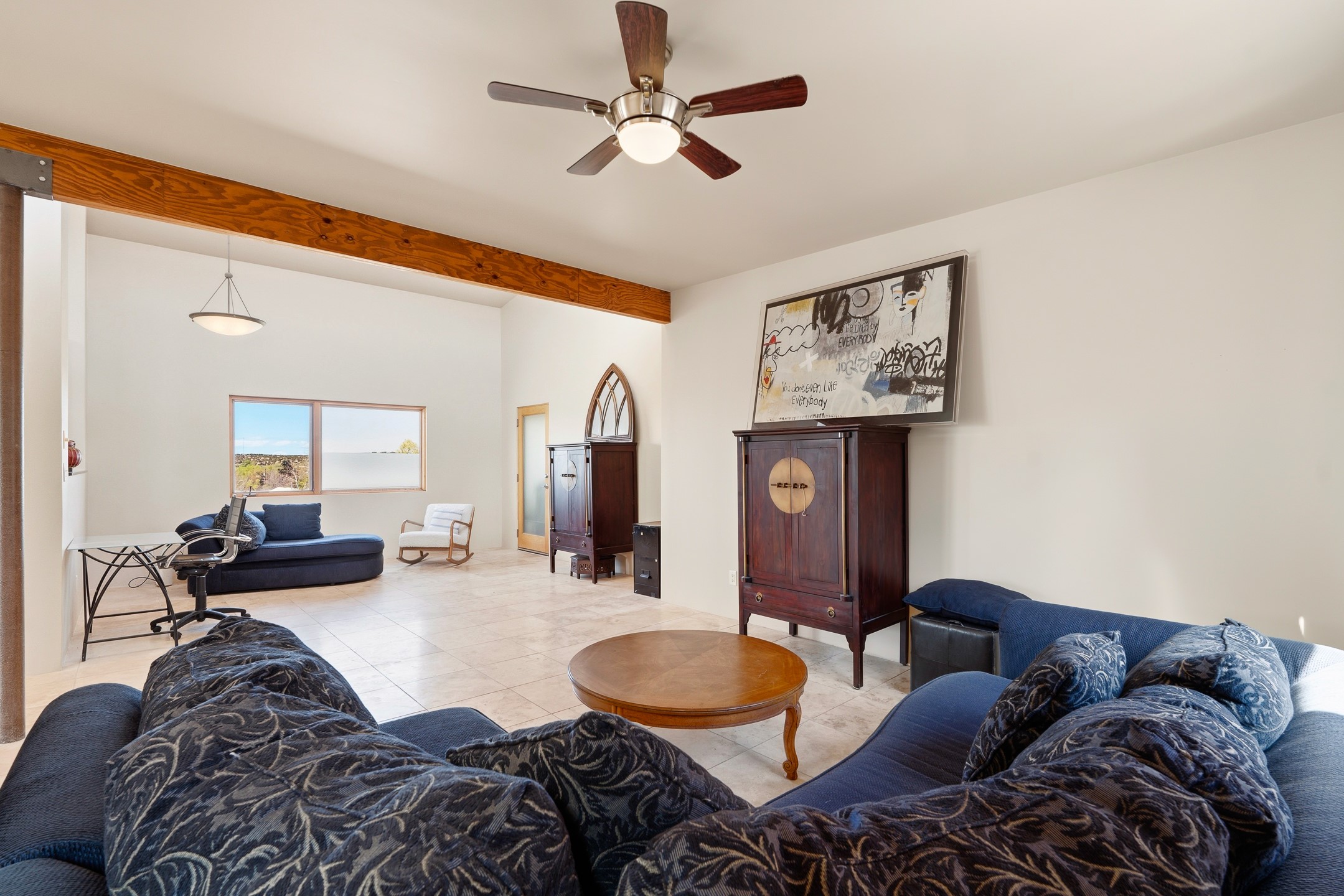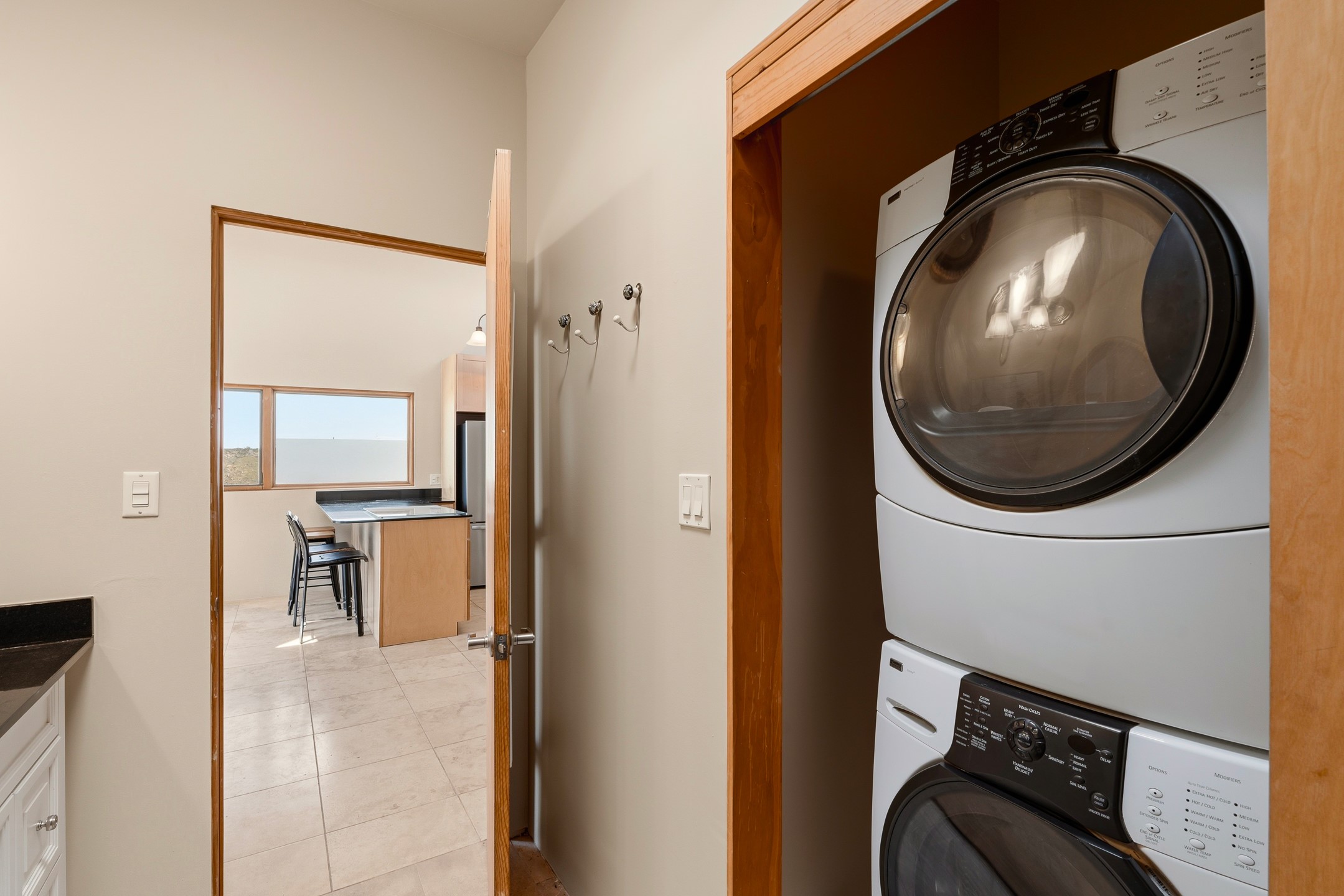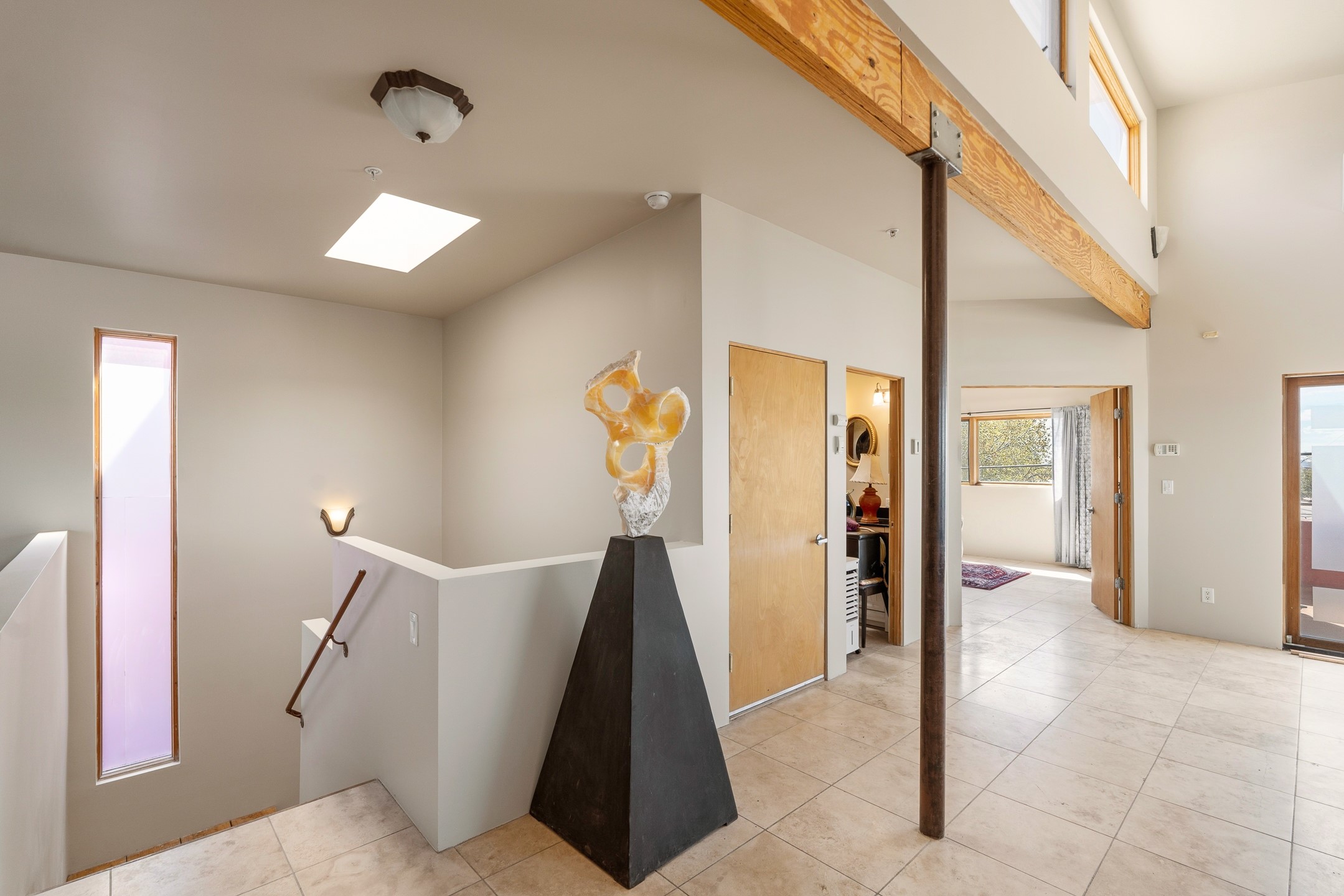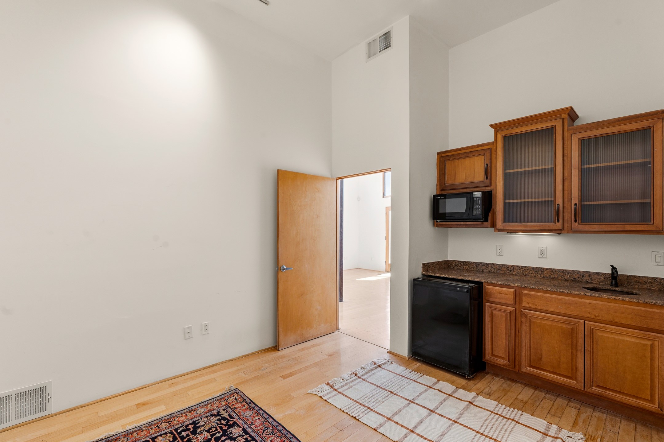Exceptional modern 2BD/2BA live/work condominium in the Siler Arts District, designed by Dent & Nordhaus Architects. Offering 2,600 sq ft with C-2 zoning, 12-foot ceilings on both levels, surround sound throughout, and with mountain and city views, this property delivers an inspiring blend of residential comfort and true commercial flexibility.The private upper level has its own entrance and lives like a residence, featuring a comfortable bedroom, full bath, kitchen, spacious living area, breakfast area, and a bonus studio ideal for yoga, meditation, or creative pursuits. A second balcony provides a quiet retreat, thoughtfully separated from the work spaces below.The lower level is designed for professional, studio, or gallery use, with two large commercial spaces connected by a long hallway, an ADA-compliant bath, and a kitchenette with microwave and refrigerator. Separate front and rear entries allow for privacy, client access, and the option to live on one level while renting the other for additional income.This property also features numerous recent upgrades, including a brand-new tankless water heater, water softener/de-acidifier system, mini-split heating and cooling units on both floors, upgraded plumbing piping, and additional thoughtful improvements throughout.Enjoy the largest fully walled private yard/patio in the complex--approximately twice the size of neighboring units--ideal for entertaining, meeting clients, or creating an outdoor workspace. A rare opportunity combining outdoor space, functionality, and flexibility in a vibrant Santa Fe location.