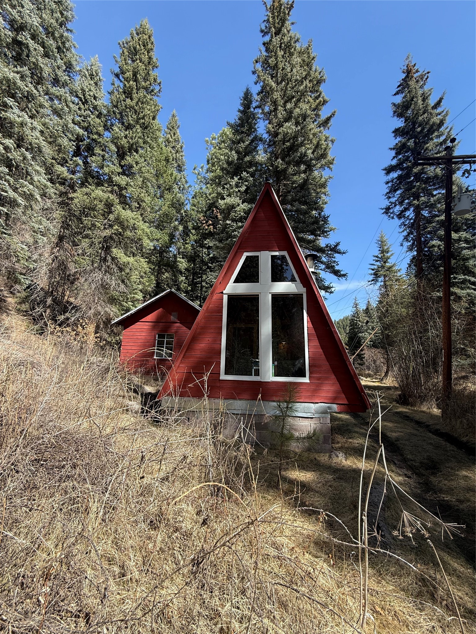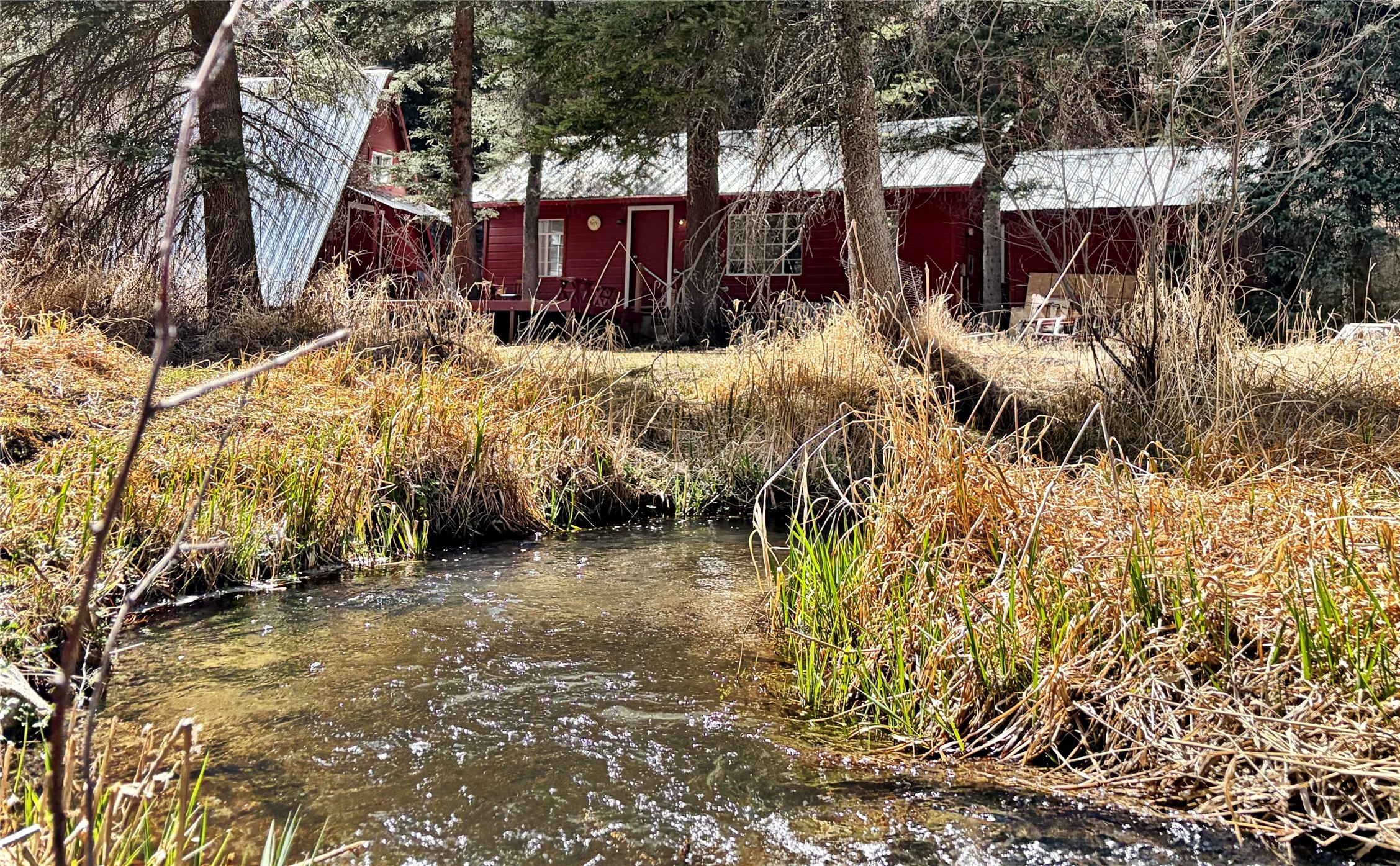 Creekside Cabins in Seven Springs, Fish from Your Front Yard!This unique Seven Springs property features two small vintage cabins, each with its own charm and character. The A frame offers a nostalgic, retro feel with updated vinyl flooring, warm wood tones, and a picture window with woodland views. Inside is a comfortable living space with a cast iron stove, a flexible living or sleeping area, and a sweet loft bed with a new peekaboo window. The bathroom has been updated with a new toilet, vanity, and sink, along with a sliding barn door for privacy, simple, functional mountain living.The second cabin is slightly larger with a more traditional layout, featuring a primary bedroom and living and dining area with inviting spaces to gather and relax. The kitchenette includes a new sink and counter with a small woodland view, just right for a morning coffee. There is also a new shower room and a large utility sink. A fireplace is present and has not been used, buyer to verify condition.Both cabins have been thoughtfully refreshed with a light, airy feel while maintaining their original character. A central deck connects the spaces, ideal for outdoor living, entertaining, or simply enjoying the setting.A gentle creek flows through the front yard, creating a peaceful, natural backdrop. Enjoy morning coffee by the water, afternoons under the pines, and evenings beneath expansive, star filled skies. There is space to create outdoor living areas along the creek, plant a garden, or simply bring your hammock and settle in.Located within the Santa Fe National Forest, the Seven Springs community is known for its towering Ponderosa pines, flowing creeks, and quiet beauty. Just moments from Fenton Lake State Park, offering fishing, kayaking, hiking trails, and year round outdoor recreation. Wildlife is part of daily life, with elk, deer, and birds frequently passing through.Whether you are seeking a weekend escape, creative retreat, or a place to gather and recharge, this is a rare opportunity to own a character rich mountain property in a creekside setting.