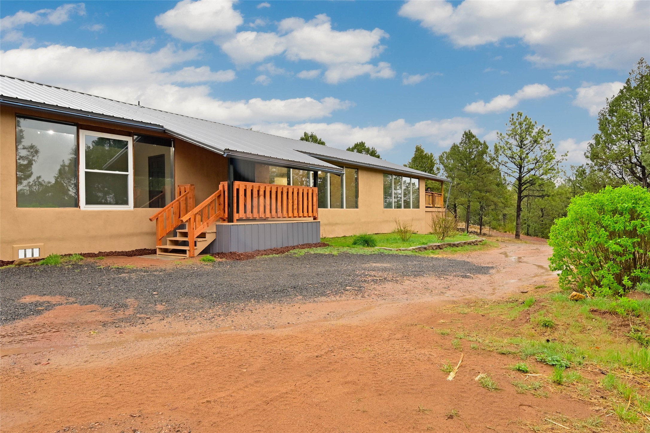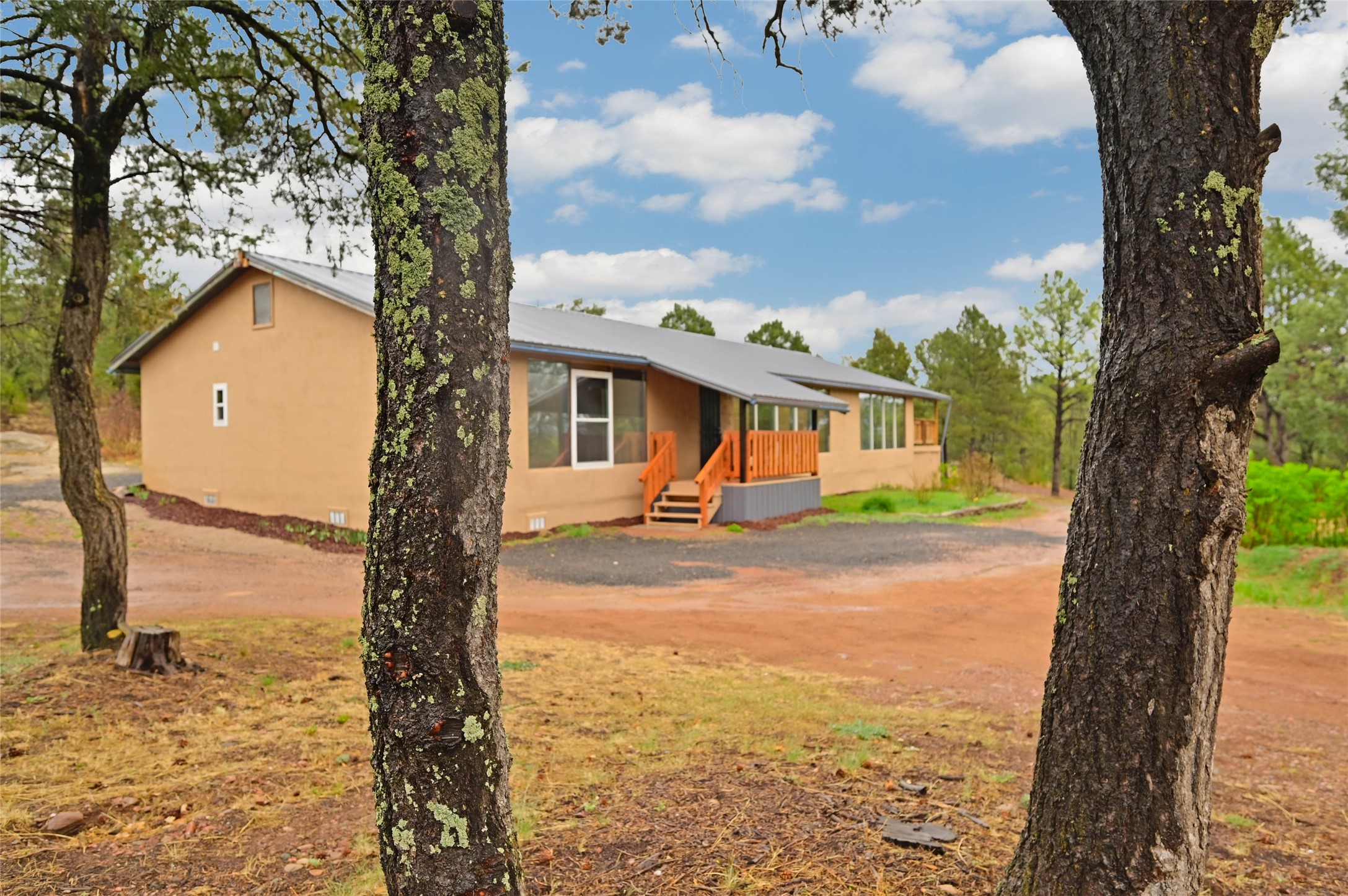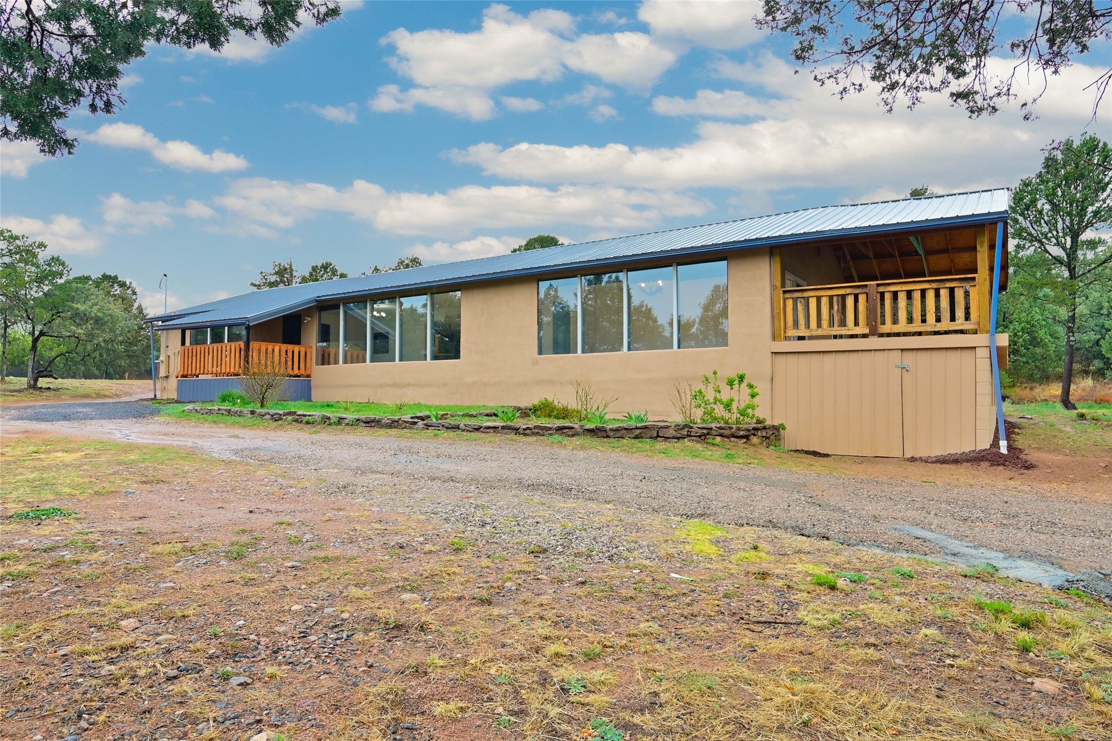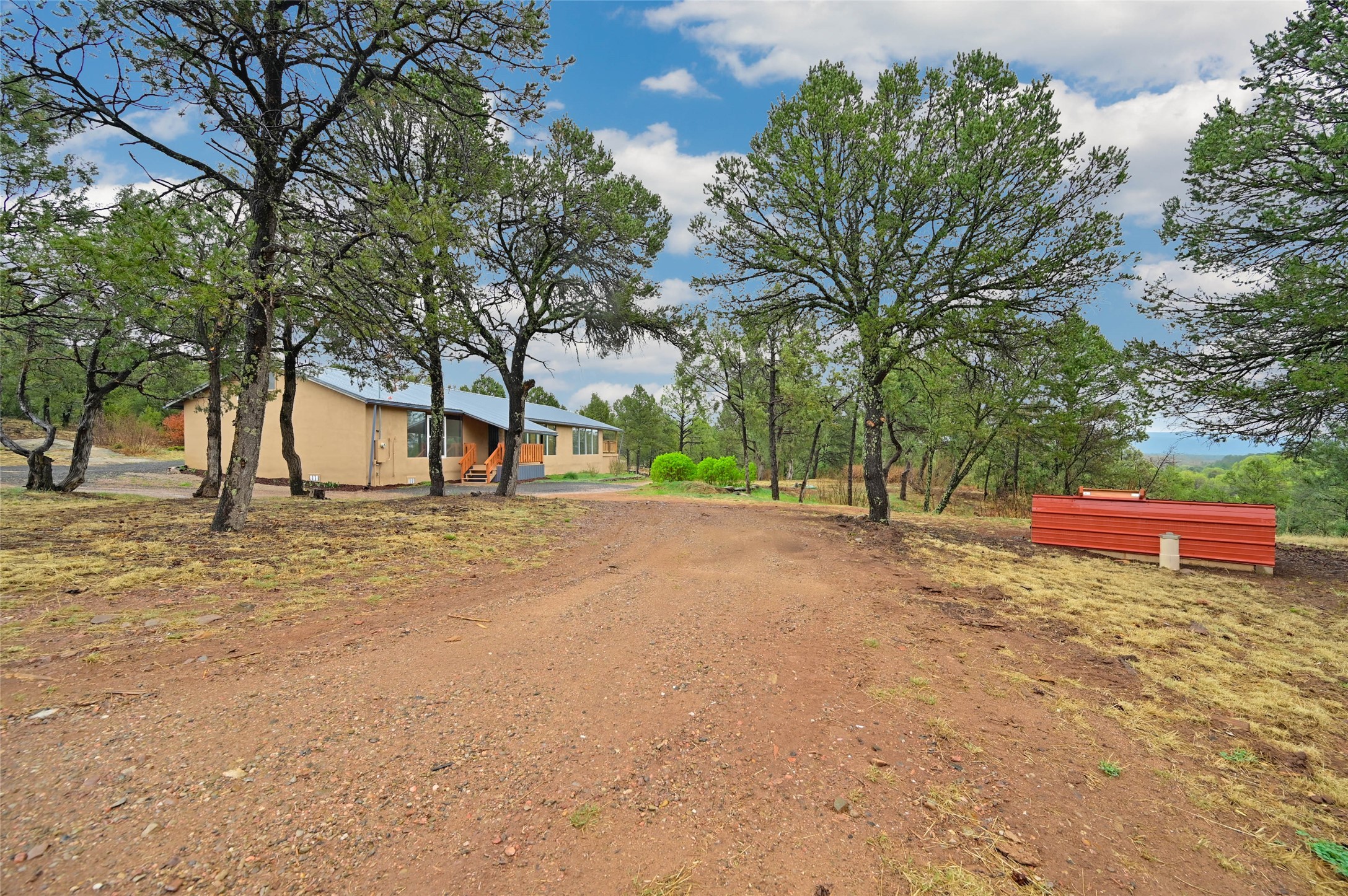 Captivating 3 bed, 2 bath retreat on 1.7 acres -- 5 Tortolita Lane, Glorieta, NM. Light- filled rooms framed by giant windows bring the trees and surrounding mountains inside, creating a serene, peaceful atmosphere. Thoughtfully refreshed and move in ready, the home offers generous living spaces, the security and privacy of a gated entrance and private well. Enjoy quiet country living with easy access to culture and dining -- just 26 minutes to downtown Santa Fe. Beautifully sited, well priced, and brimming with tranquility and views