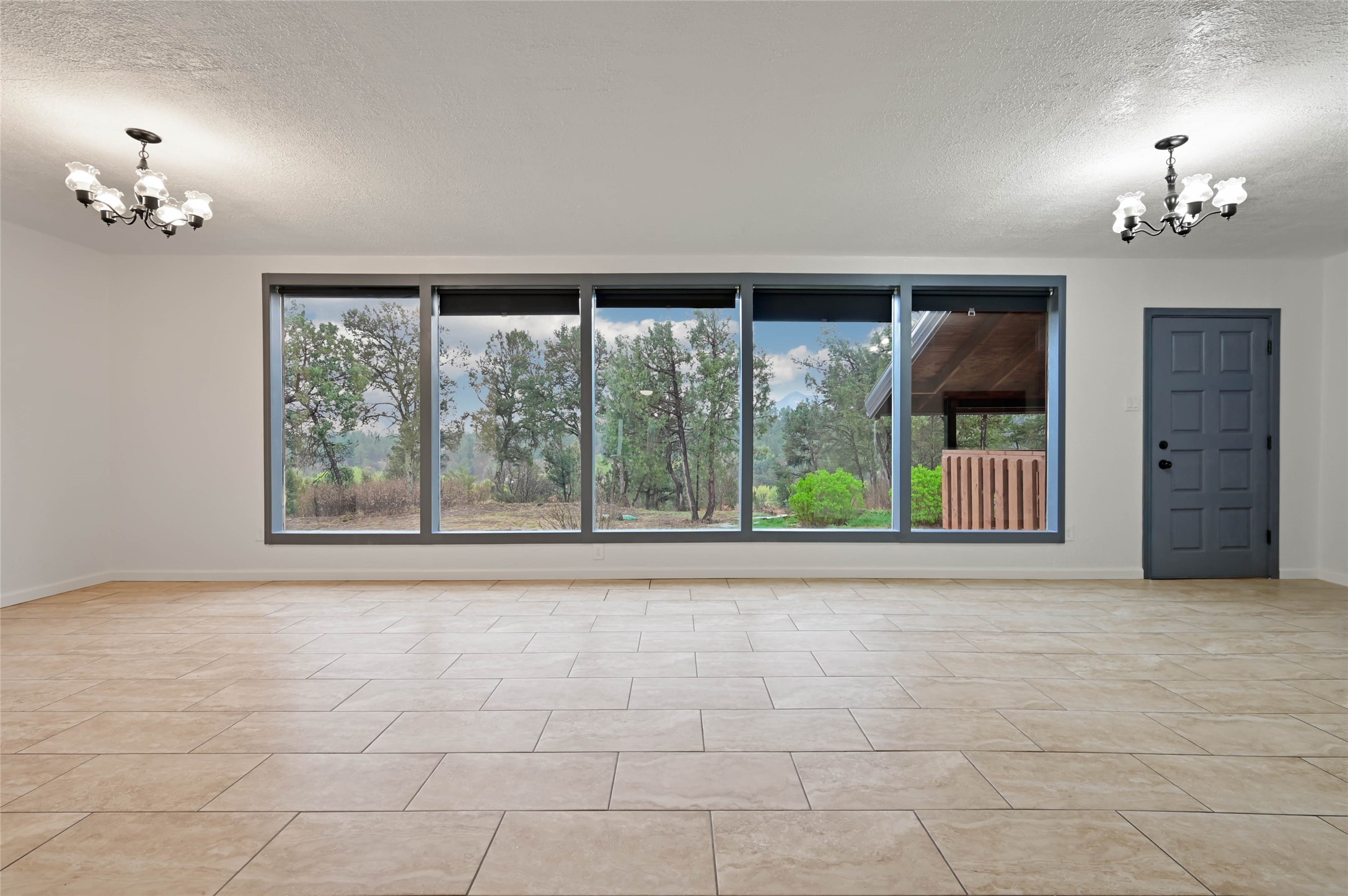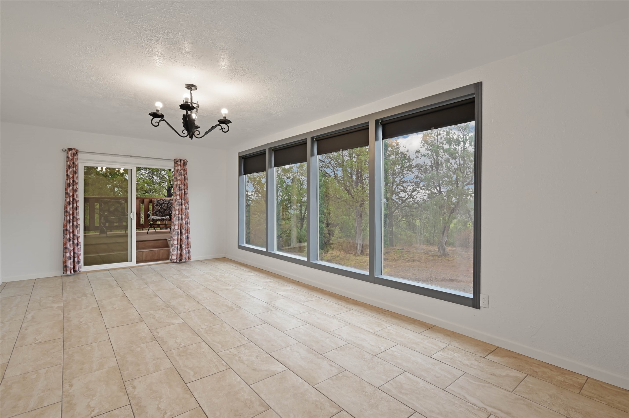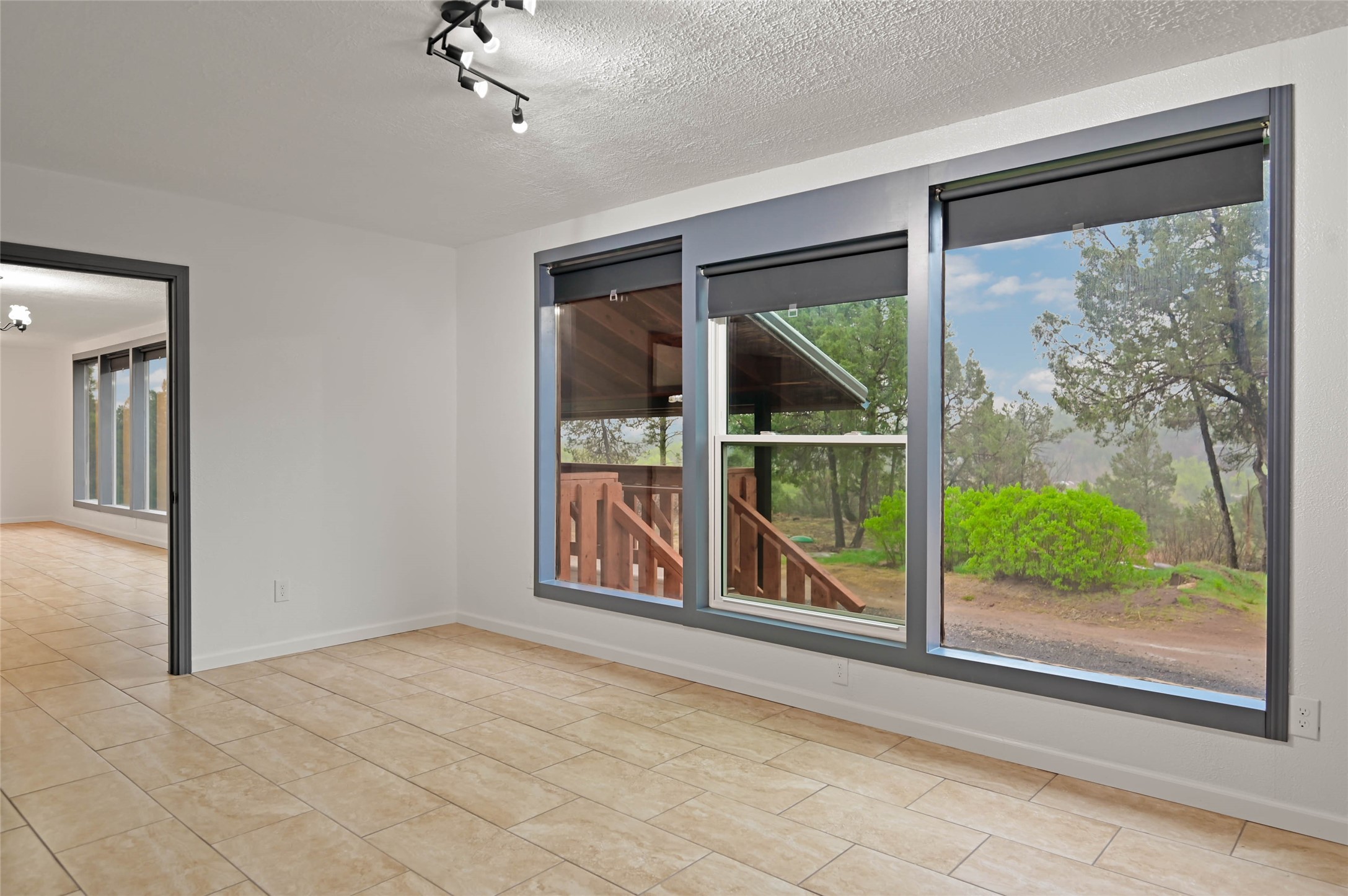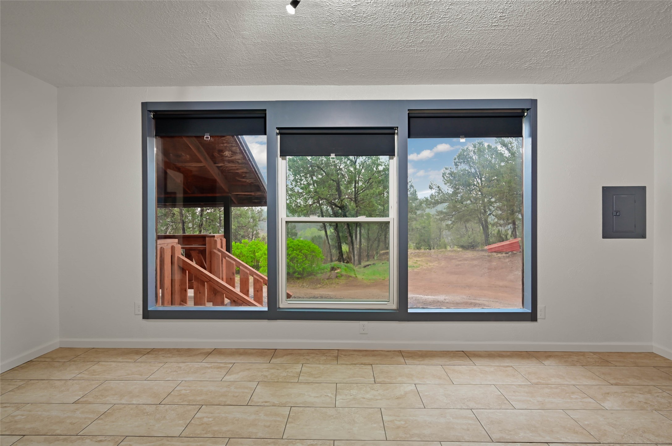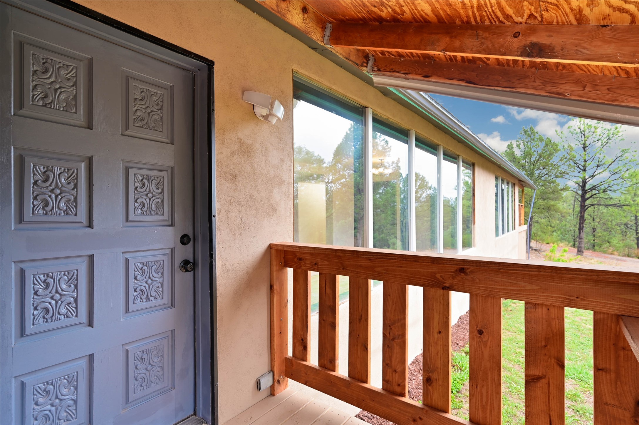 Captivating 3 bed, 2 bath retreat on 1.7 acres -- 5 Tortolita Lane, Glorieta, NM. Light- filled rooms framed by giant windows bring the trees and surrounding mountains inside, creating a serene, peaceful atmosphere. Thoughtfully refreshed and move in ready, the home offers generous living spaces, the security and privacy of a gated entrance and private well. Enjoy quiet country living with easy access to culture and dining -- just 26 minutes to downtown Santa Fe. Beautifully sited, well priced, and brimming with tranquility and views