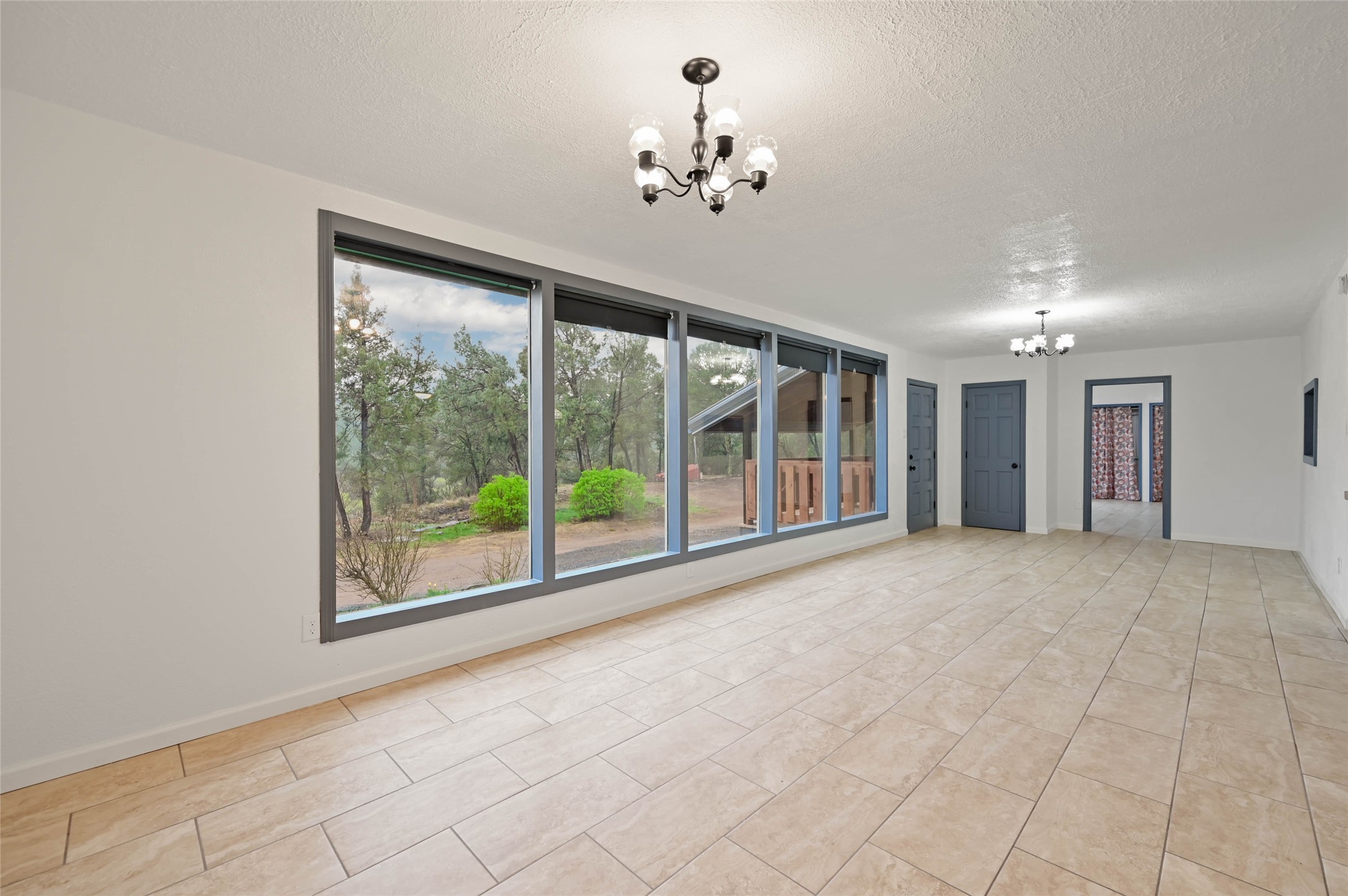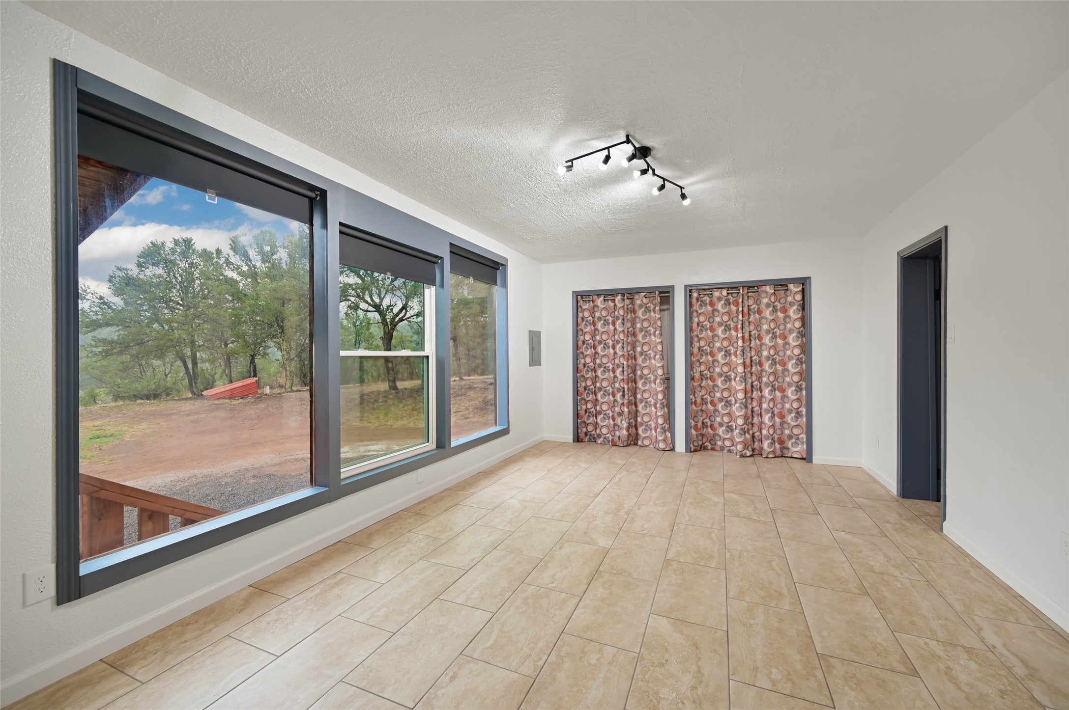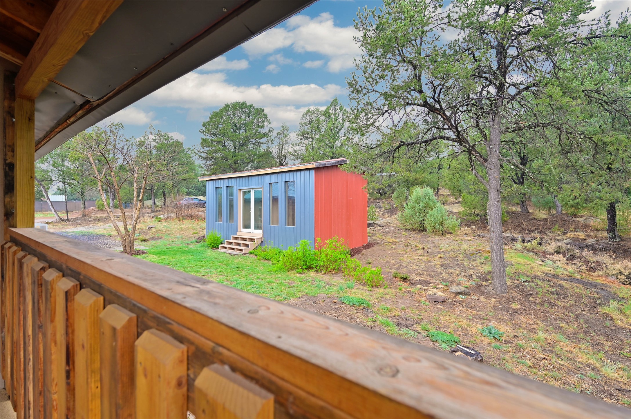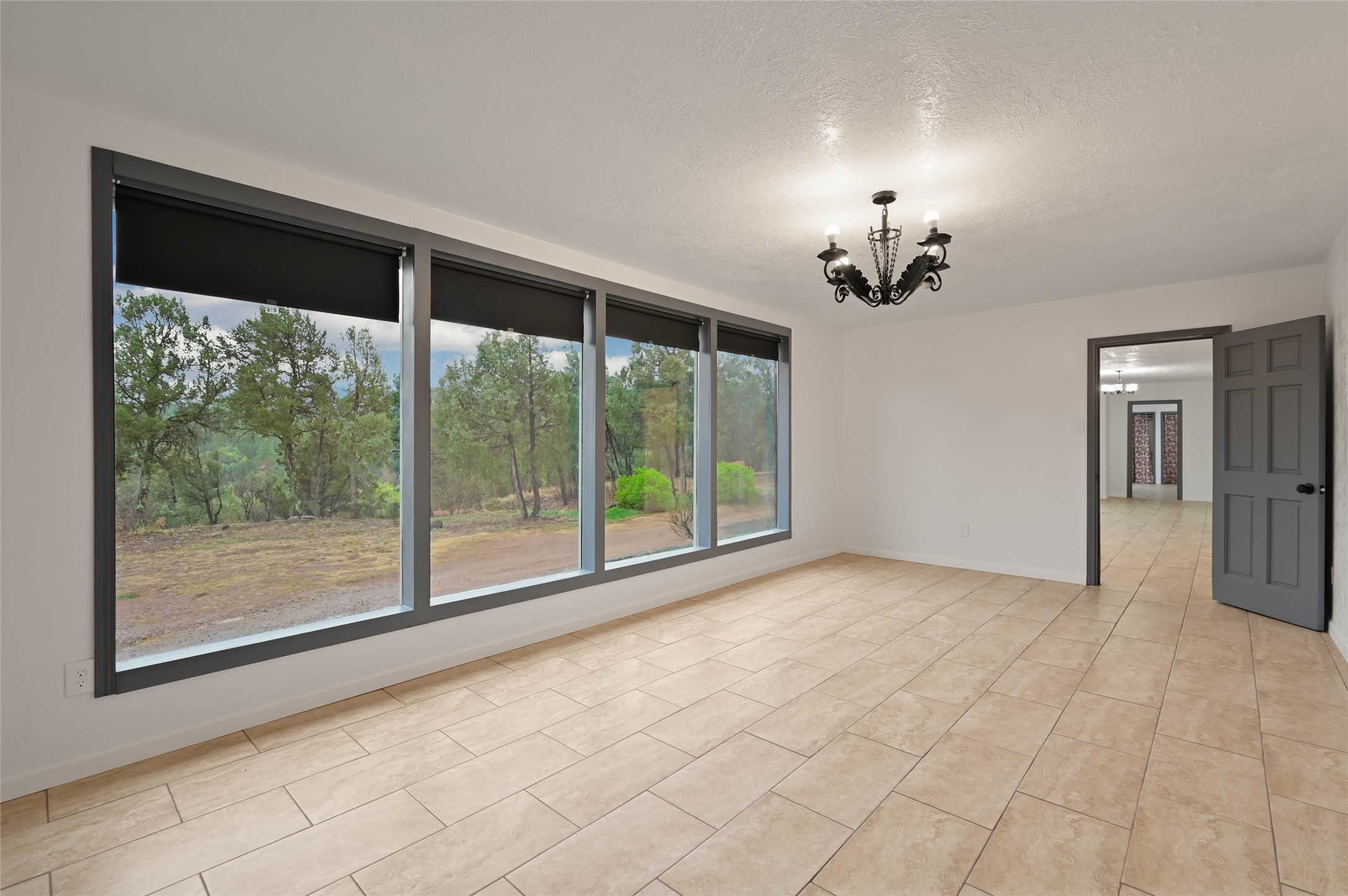 Captivating 3 bed, 2 bath retreat on 1.7 acres -- 5 Tortolita Lane, Glorieta, NM. Light- filled rooms framed by giant windows bring the trees and surrounding mountains inside, creating a serene, peaceful atmosphere. Thoughtfully refreshed and move in ready, the home offers generous living spaces, the security and privacy of a gated entrance and private well. Enjoy quiet country living with easy access to culture and dining -- just 26 minutes to downtown Santa Fe. Beautifully sited, well priced, and brimming with tranquility and views