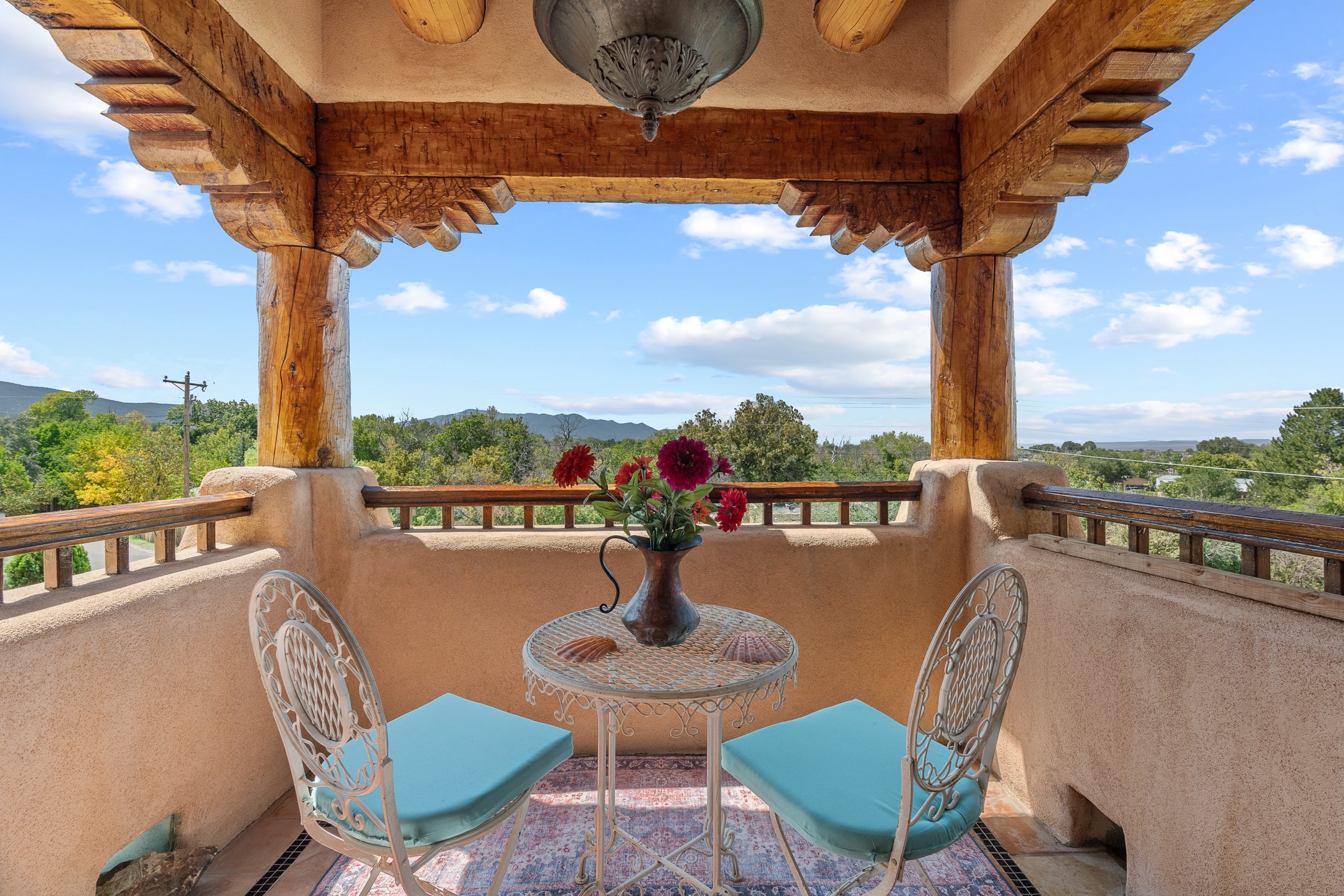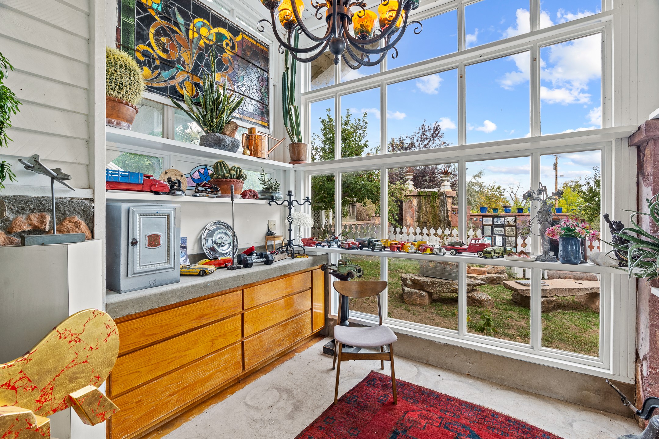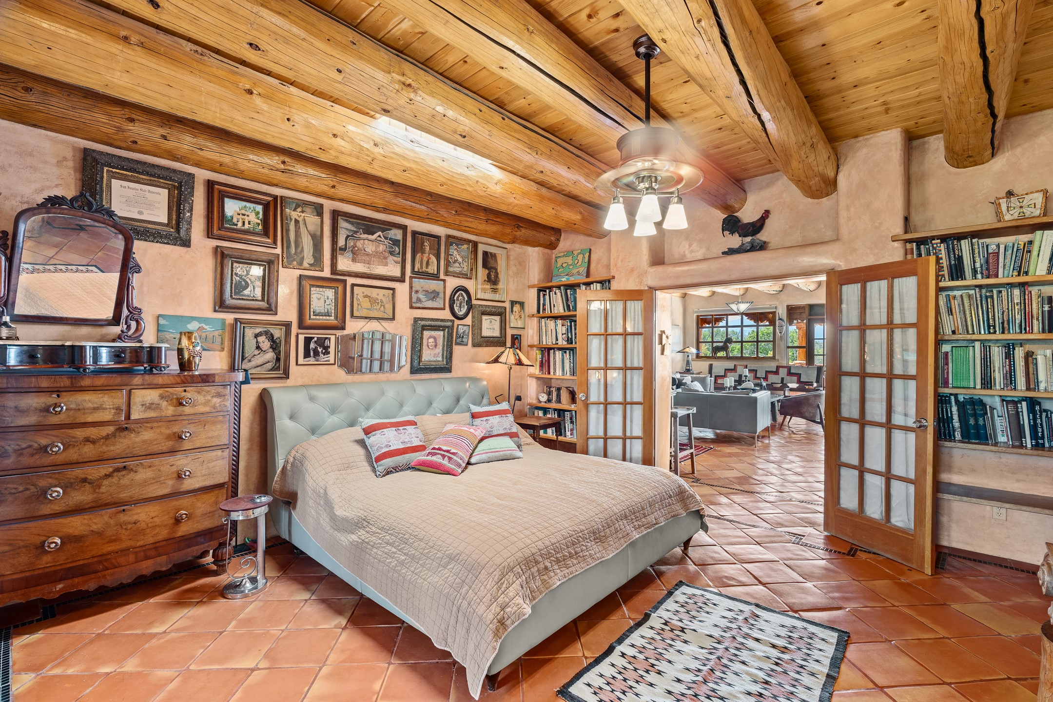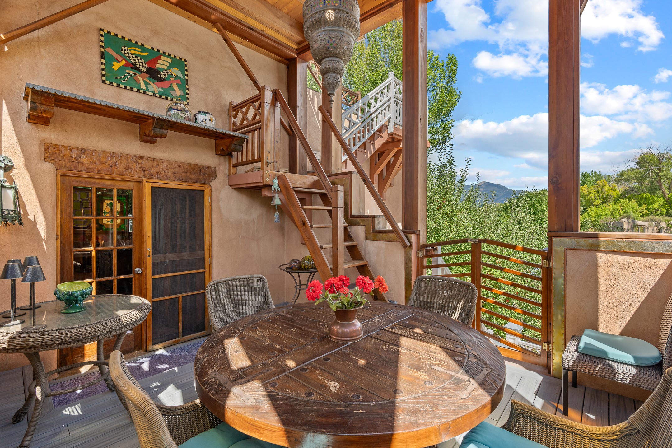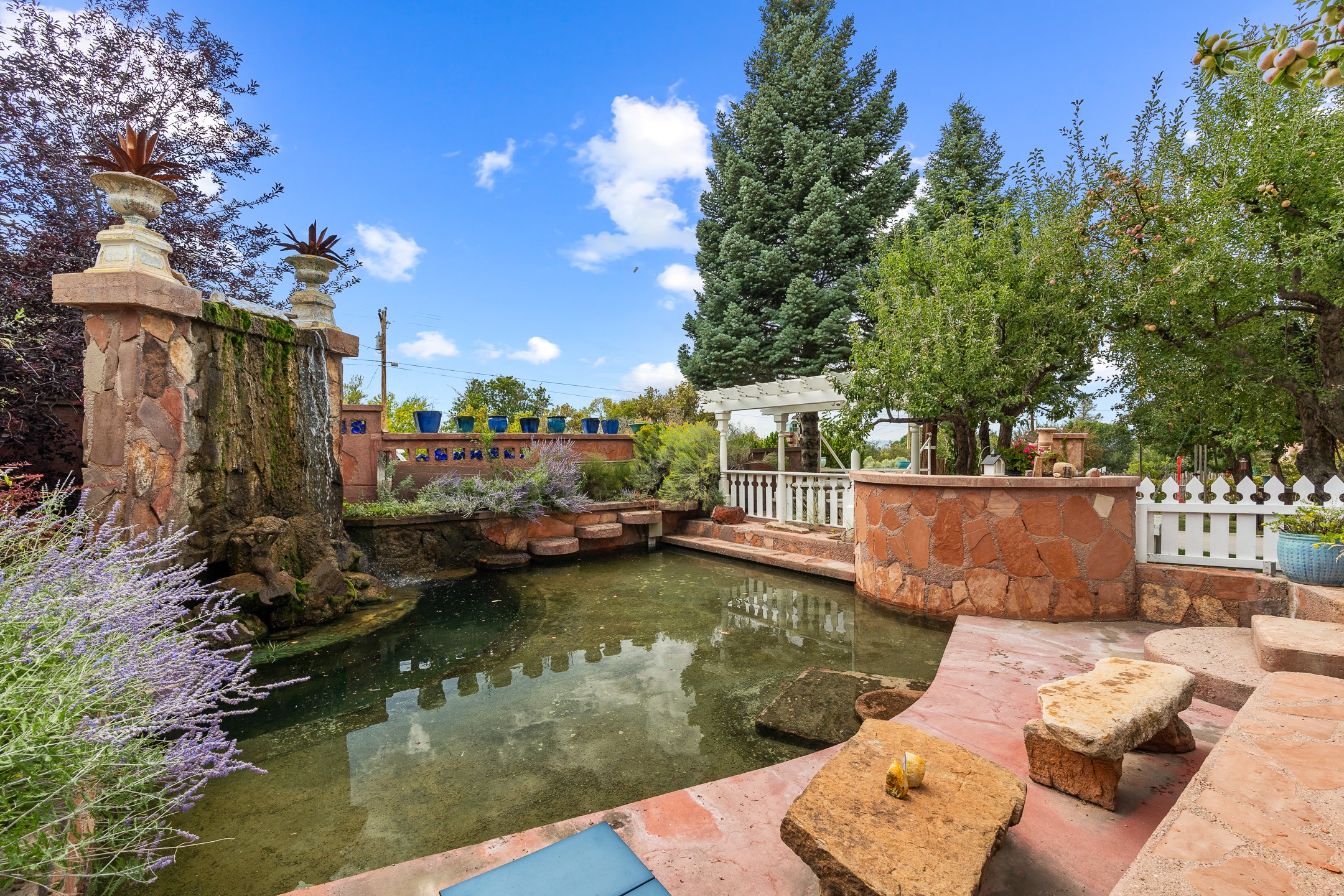 A rare and soulful Northern New Mexico compound, this extraordinary property blends history, artistry, and lifestyle in a way few offerings can. Created by acclaimed Sculptor Thom Wheeler, the main home and gallery spaces are built of authentic adobe and defined by massive pine vigas harvested from Wheeler Peak and hand-hewn by Wheeler himself. Throughout the property, irreplaceable architectural details and storied artisan pieces create a setting of warmth, character, and distinction, including stained glass windows sourced from churches across America and the original fight bell from Madison Square Garden. The main residence offers 2 bedrooms and 2.5 baths, while the guest house features 2 bedrooms and 2 baths with separate private entrances, creating flexibility for extended living, guest accommodations, boutique hospitality, or a refined live/work compound. Rich with heritage, the property also includes an adobe structure dating to 1840, built by Juan Santistevenson, adding yet another layer of authenticity and cultural significance. Set on two separately deeded lots totaling nearly 1.7 acres, the grounds are equally captivating. A 3 acre-foot well, surface water rights, and an acequia running through the property enhance both beauty and value. Near the acequia, an outdoor kitchen and entertaining area create an unforgettable setting for gatherings beneath the New Mexico sky. Zoned for both residential and commercial use, the possibilities are exceptional: an elegant private residence, gallery or studio compound, boutique inn or B&B, event venue, or investment opportunity with future subdivision potential. Timeless, inspiring, and deeply rooted in place, this is more than a property--it is an experience.