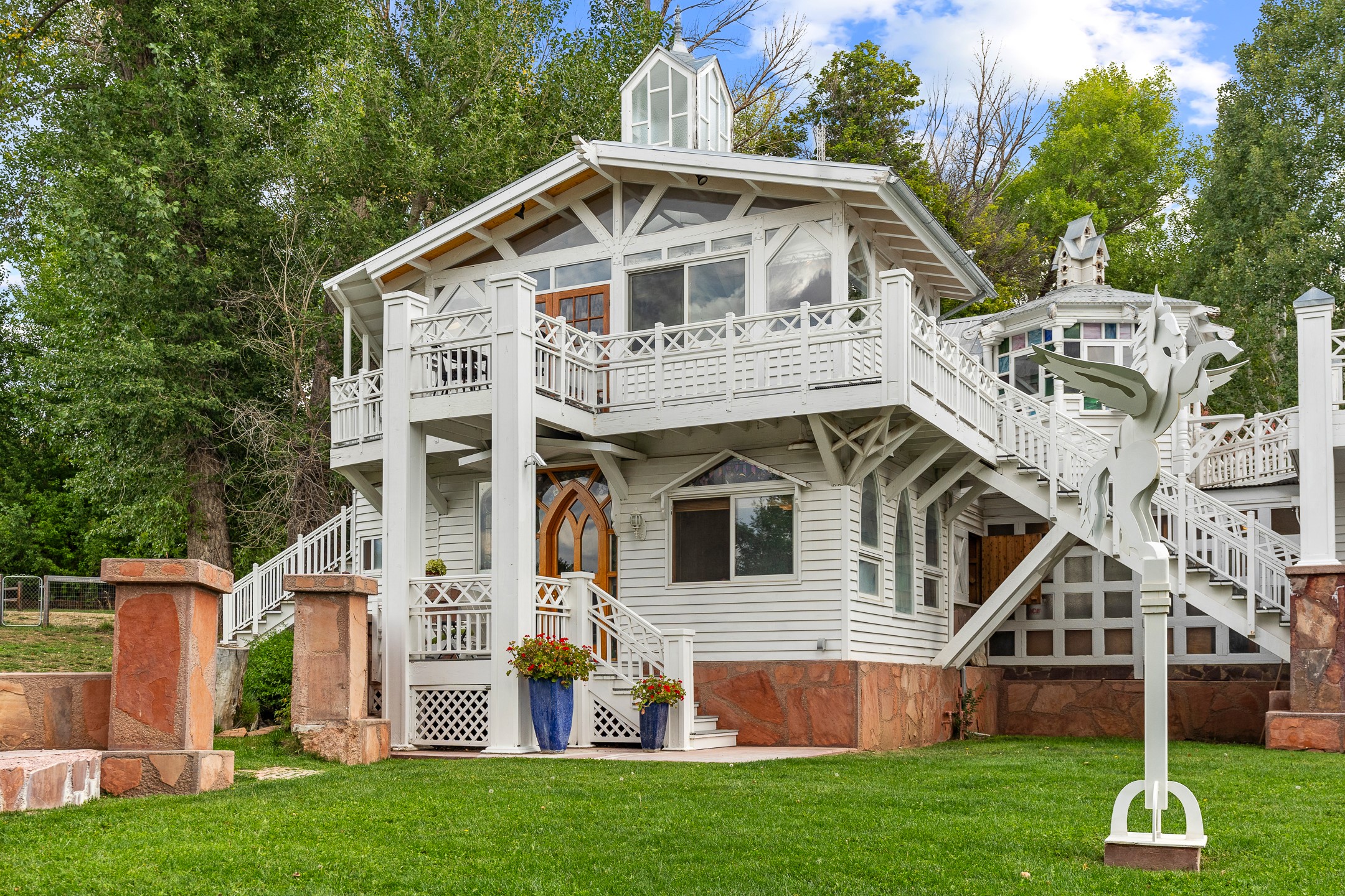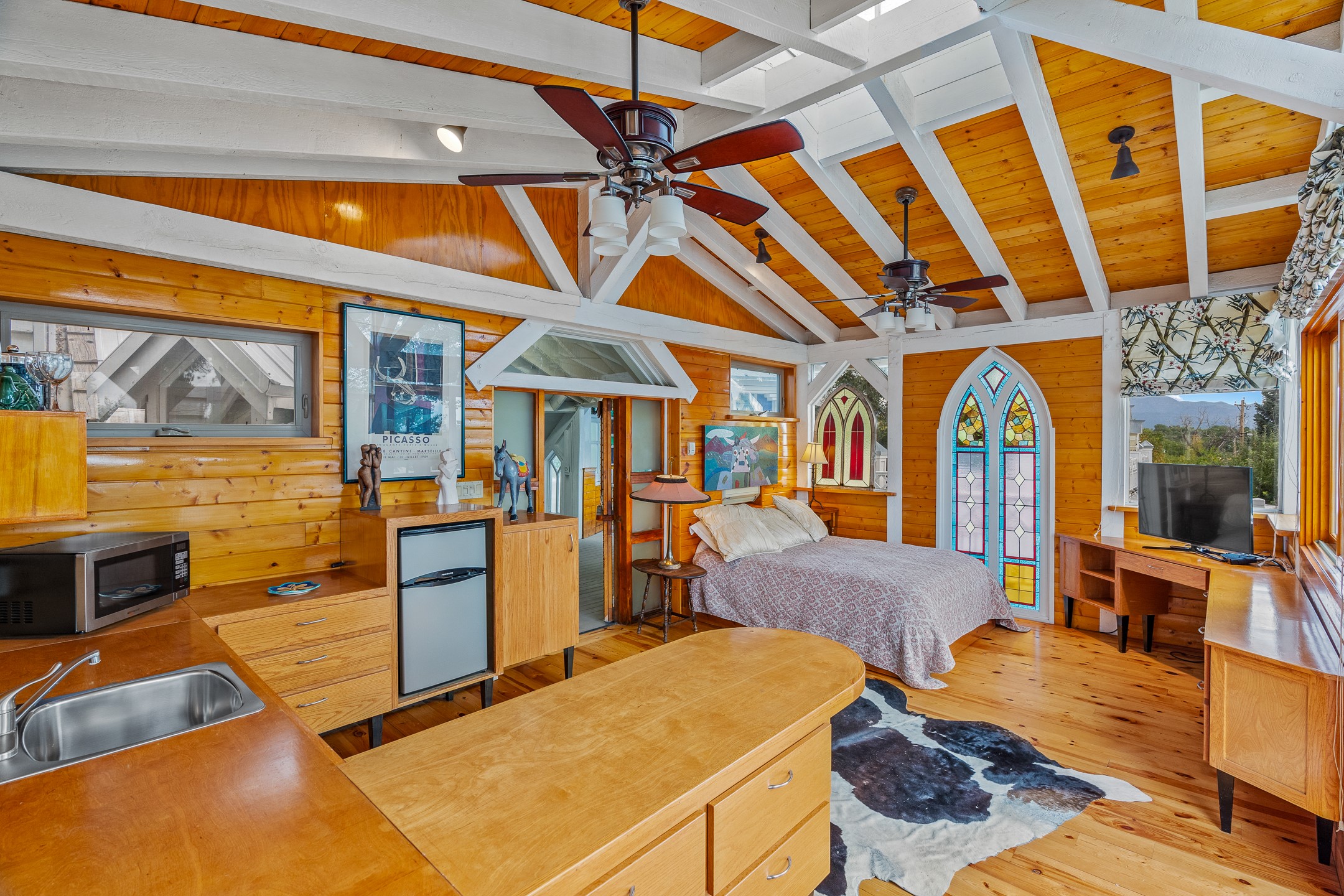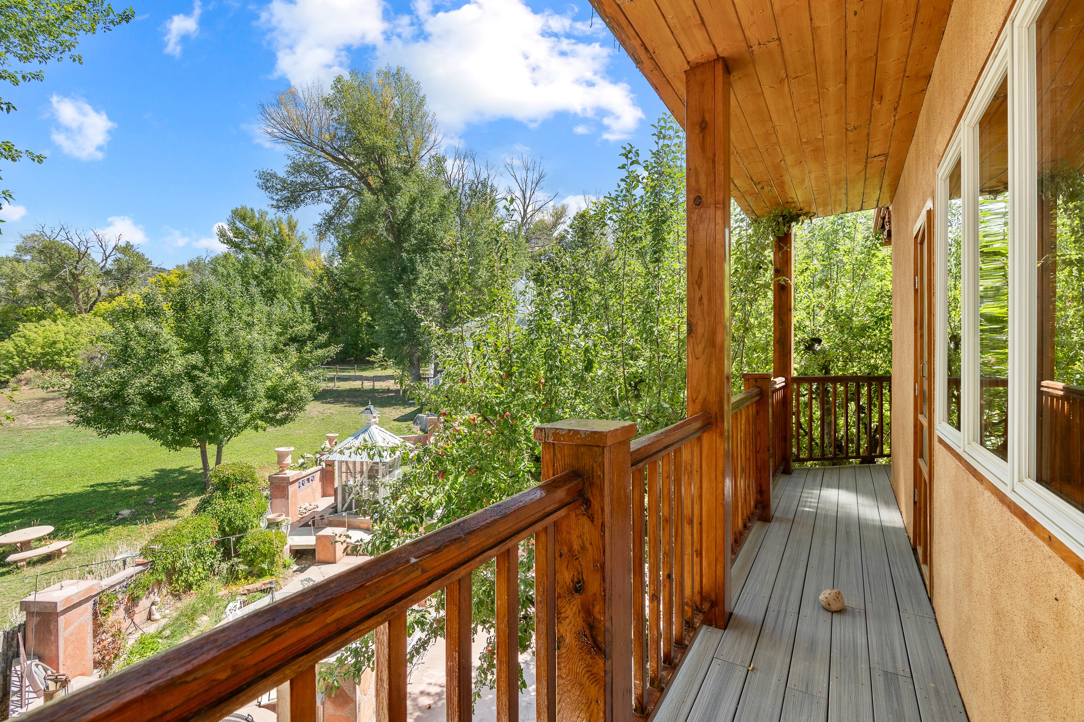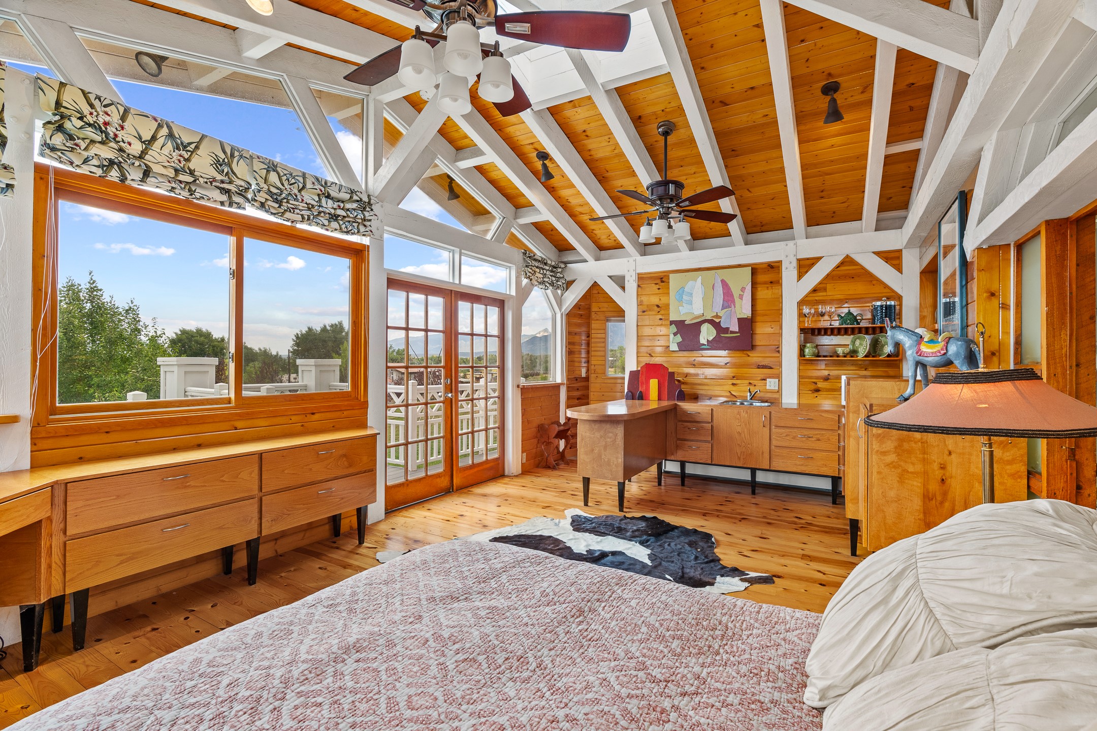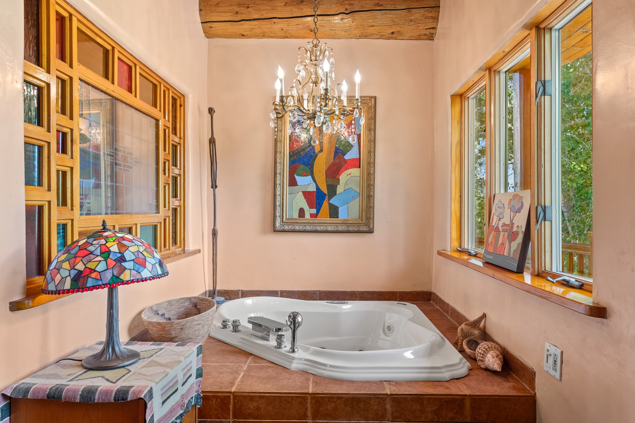 A rare and soulful Northern New Mexico compound, this extraordinary property blends history, artistry, and lifestyle in a way few offerings can. Created by acclaimed Sculptor Thom Wheeler, the main home and gallery spaces are built of authentic adobe and defined by massive pine vigas harvested from Wheeler Peak and hand-hewn by Wheeler himself. Throughout the property, irreplaceable architectural details and storied artisan pieces create a setting of warmth, character, and distinction, including stained glass windows sourced from churches across America and the original fight bell from Madison Square Garden. The main residence offers 2 bedrooms and 2.5 baths, while the guest house features 2 bedrooms and 2 baths with separate private entrances, creating flexibility for extended living, guest accommodations, boutique hospitality, or a refined live/work compound. Rich with heritage, the property also includes an adobe structure dating to 1840, built by Juan Santistevenson, adding yet another layer of authenticity and cultural significance. Set on two separately deeded lots totaling nearly 1.7 acres, the grounds are equally captivating. A 3 acre-foot well, surface water rights, and an acequia running through the property enhance both beauty and value. Near the acequia, an outdoor kitchen and entertaining area create an unforgettable setting for gatherings beneath the New Mexico sky. Zoned for both residential and commercial use, the possibilities are exceptional: an elegant private residence, gallery or studio compound, boutique inn or B&B, event venue, or investment opportunity with future subdivision potential. Timeless, inspiring, and deeply rooted in place, this is more than a property--it is an experience.