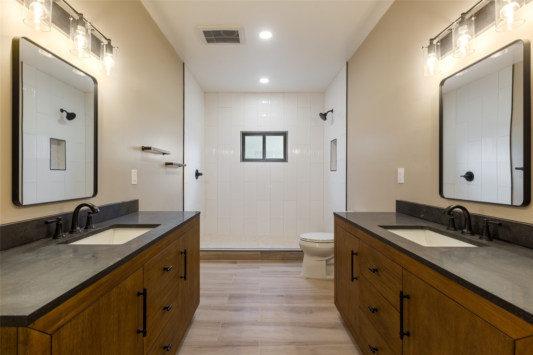 Why buy one house when you can buy two, plus have room to garage up to 8 cars on one generous acre lot with no HOA or PID? The Main Home, with a 3 car garage, was finished in late 2024, and not occupied until 2025. It offers a bright, open layout with polished concrete flooring throughout for a sleek, low-maintenance finish. The kitchen is designed for everyday living AND entertaining - with solid wood cabinetry, gas range, large pantry, and abundant storage. The primary suite is spacious and there are 3 separate additional bedrooms to customize the way you live. The Casita is brand new, never lived in, and the garage has room for 5 cars, or 3 and a workshop, gym, or just ROOM, and boasts a bathroom fit for a Primary Suite! Designed and built for the current owners, a life change means you will get to enjoy all the many features they incorporated! This is the multi-gen Accessory Dwelling Unit (ADU) all your family member's friends will be jealous of, or your guests may never want to leave! It offers its own private living experience with 1 bedroom and 2 baths, a thoughtfully designed kitchen with Black Mist Honed Granite on a large island, a pot filler, beautiful tile backsplash, generous cabinetry, and the option for gas or electric range and dryer. The inviting living space features a fireplace with blower for extra warmth and ambiance. Additional casita highlights include a covered front porch, insulated garage doors, security cameras, a full gutter system, gas BBQ stub out, and RV hookup (including sanitary dump set up), all adding as much comfort as functionality in a truly one-of-a-kind compound in which to live, love work and play!