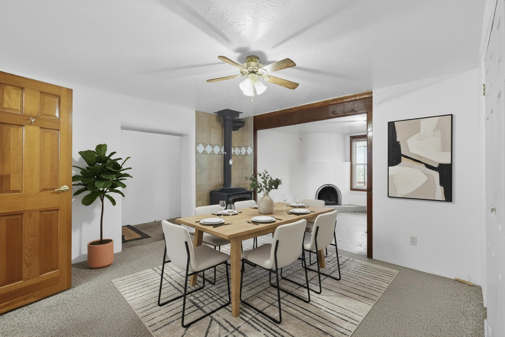 Motivated Seller!!! Impressive property on .4 acres features main residence, two charming casitas, plenty of parking spaces, covered storage and the list goes on making this an exceptional opportunity for those seeking rental income & the chance to enhance your financial portfolio. The main house offers ample living space, while the casitas provide additional versatility. A gated front courtyard welcomes you home & serves as a tranquil retreat for relaxation or social gatherings. Connected to the Agua Fria Community Water supply & city sewer.Approx 3,386 heated sq ft features three / four bedrooms, providing flexibility, along with three full bathrooms that ensure convenience. Two distinct living areas, two Kiva fireplaces and two wood stoves adds a touch of warmth and charm. A finished two-car heated garage complemented by covered parking for an additional two vehicles.The two charming individual casitas are fully equipped w/ kitchen, bathroom, bedroom and a comfortable living area. The kiva-style fireplace adds a touch of warmth and character. Both casitas are connected to a shared septic system and benefit from Agua Fria Community Water access.The detached heated flex room offers a versatile space that can be tailored to meet various needs, whether it serves as a home office, a dedicated workout area, or a recreational game room.A spacious separate pole barn provides ample room for parking and storage, perfect for housing all your outdoor equipment and recreational vehicles. Additionally, the existing chicken coop invites the possibility of raising chickens, adding a charming and sustainable element to your lifestyle. The garden is perfect for cultivating fresh produce. This combination of features not only enhances the property's appeal but also promotes a self-sufficient and fulfilling lifestyle.Potential buyers should inquire about the assumable 2.5% FHA loan.