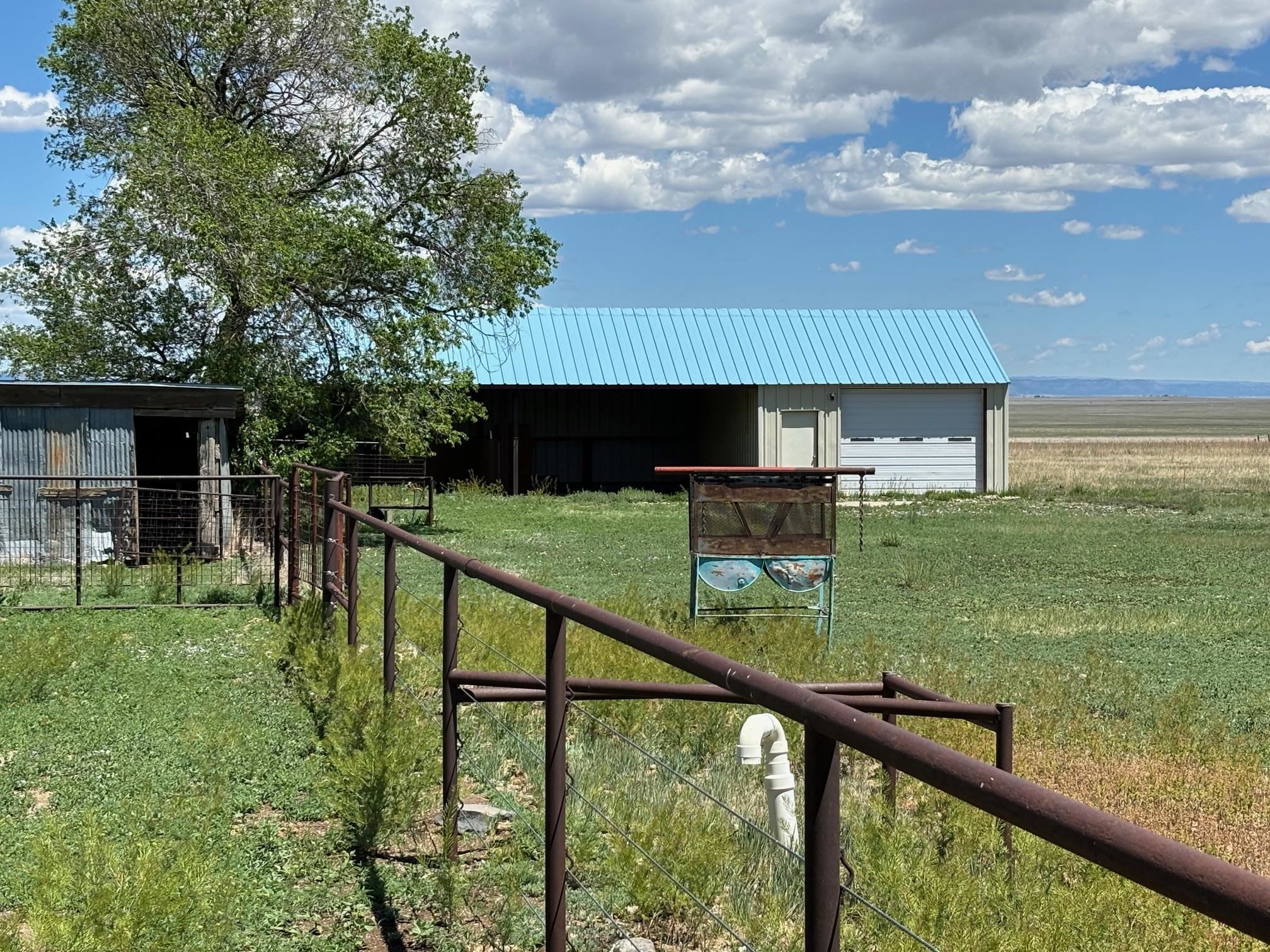 80 +/- acres, 3 bedroom 2 bathroom home with large family room and kitchen area. Large 3 bay metal building wired for 220 on gravel, and attached shop with roll up door and man door. The views are huge in Miami where you can see into Colorado and the extinct volcanoes in New Mexico toward Texas and Oklahoma. Mule Deer, Pronghorn Antelope and Elk are common in the area. Nice roping arena with return alley. Some steel corrals and historic barns from early last century. The house almost has a completely metal exterior, matching the shop/garage, making it very low maintenance. 80 shares of water from the Miami Water Users Association, and a domestic water meter with the Miami Domestic Water Users Association. Nice place if you have horses and want to run some livestock and enjoy the incredible peace and quite that is Miami New Mexico. Owning water shares or a domestic water meter in Miami affords you the rite to fish and recreate in Miami Lake, just a few minutes up the road. The local fire department is in Miami. The rural resident trash dumpsters are less than a mile away and cost is ?? per year. Cimarron New Mexico is only 25 minutes, Angel Fire, NM is an hour and 15 minutes, Springer NM is about 15 minutes. There is a flue penetration in the family room for a wood stove. Irrigation water is distributed through a ditch system onto the property. There has already been two 2 inch prorations of water from the Miami Water users this 2024 irrigation season. Home had a water leak and requires some drywall and insulation installation. Mold was removed professionally with report and receipts available for prospective buyers review.