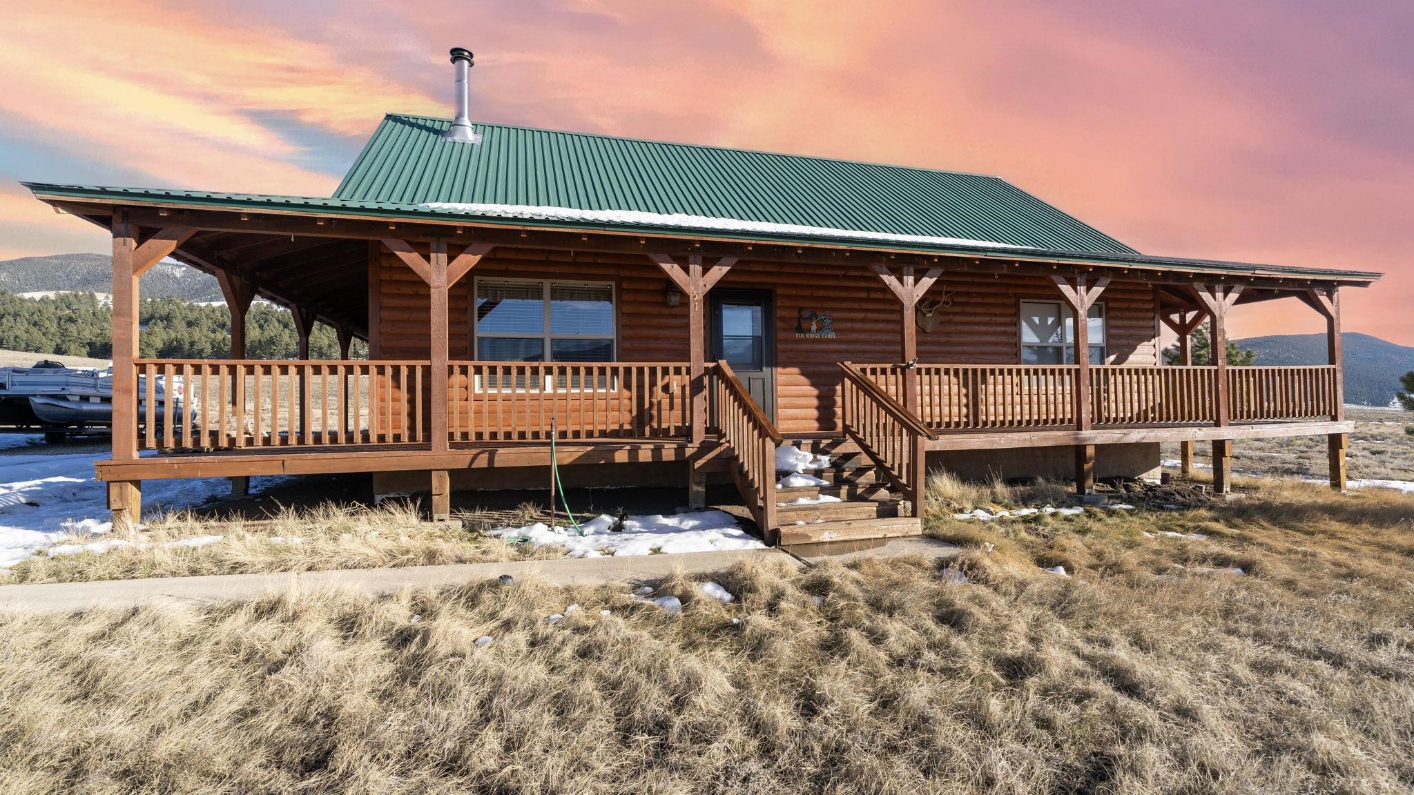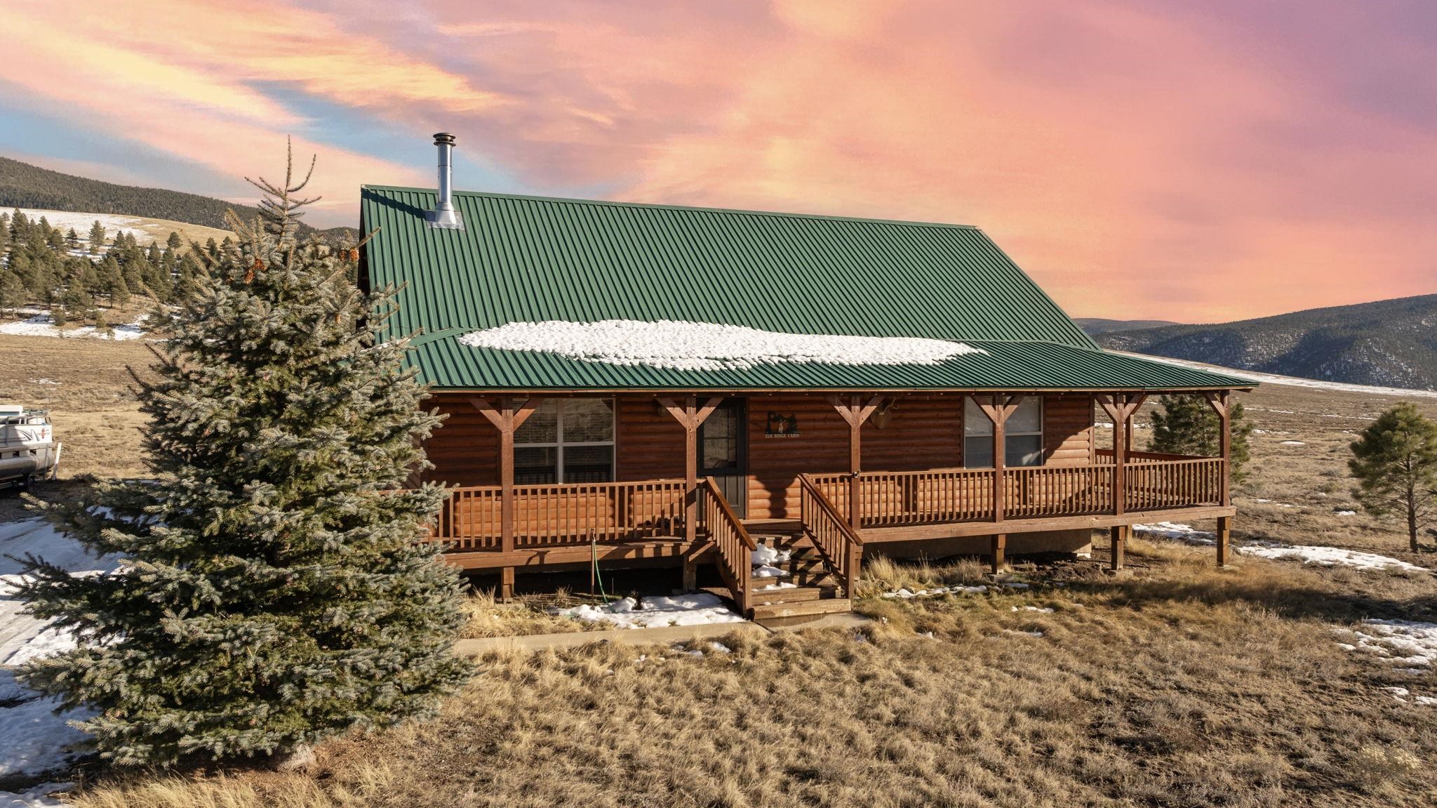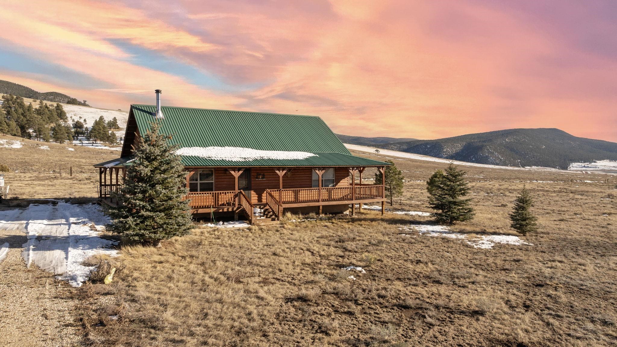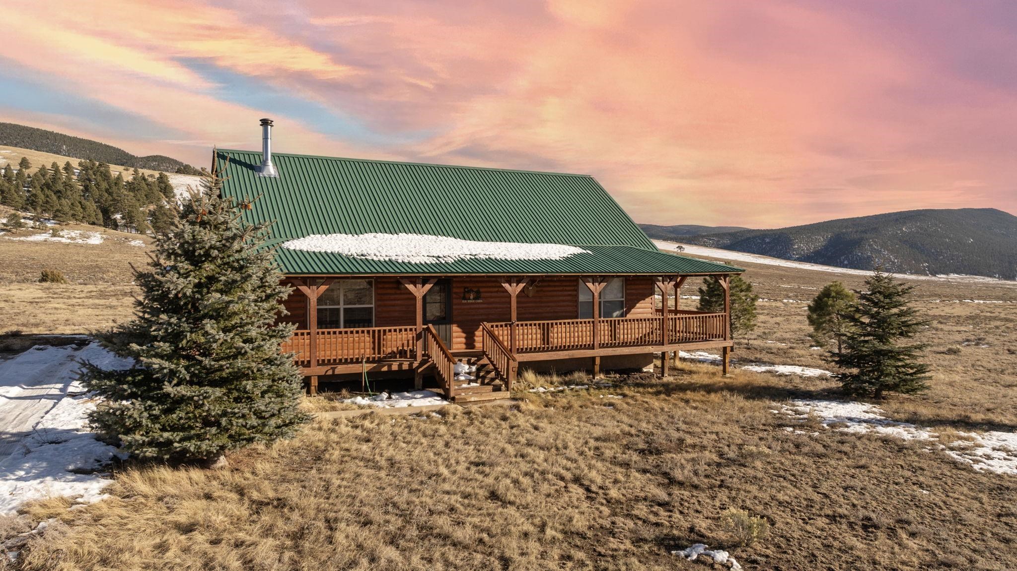Your lovely log cabin mountain retreat awaits! This home features 360-degree views, including the Sangre de Cristo Mountains, Eagle Nest Lake, and Angel Fire Mountain from it's wrap-around deck. Elk and deer frequent the 1 acre yard, making this home truly a haven for nature lovers. Step inside to an inviting open-floor plan featuring a vaulted ceiling and wood stove. This spacious 3 bed, 1.5 bath home is perfect for you, your family, and friends! What's more is the home comes fully furnished, offering a turnkey experience. Smart heating is installed, so you can turn on the heat with an app before you get there, so it's nice and warm waiting! The quiet neighborhood, nestled in the mountains and near Eagle Nest Lake, offers peace and access to world-class fishing, making this retreat a true gem. Located perfectly between Angel Fire and Red River (20-25 minutes away) for skiing, golfing, mountain biking, fishing, and more! Schedule your tour today!