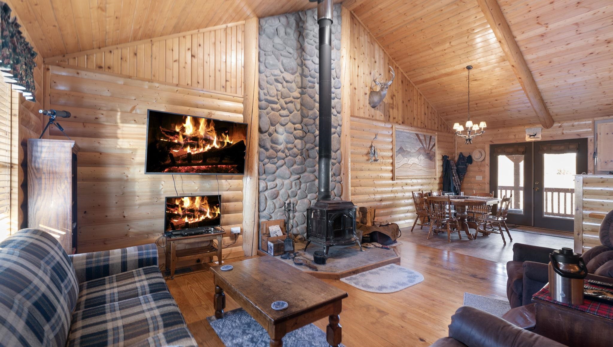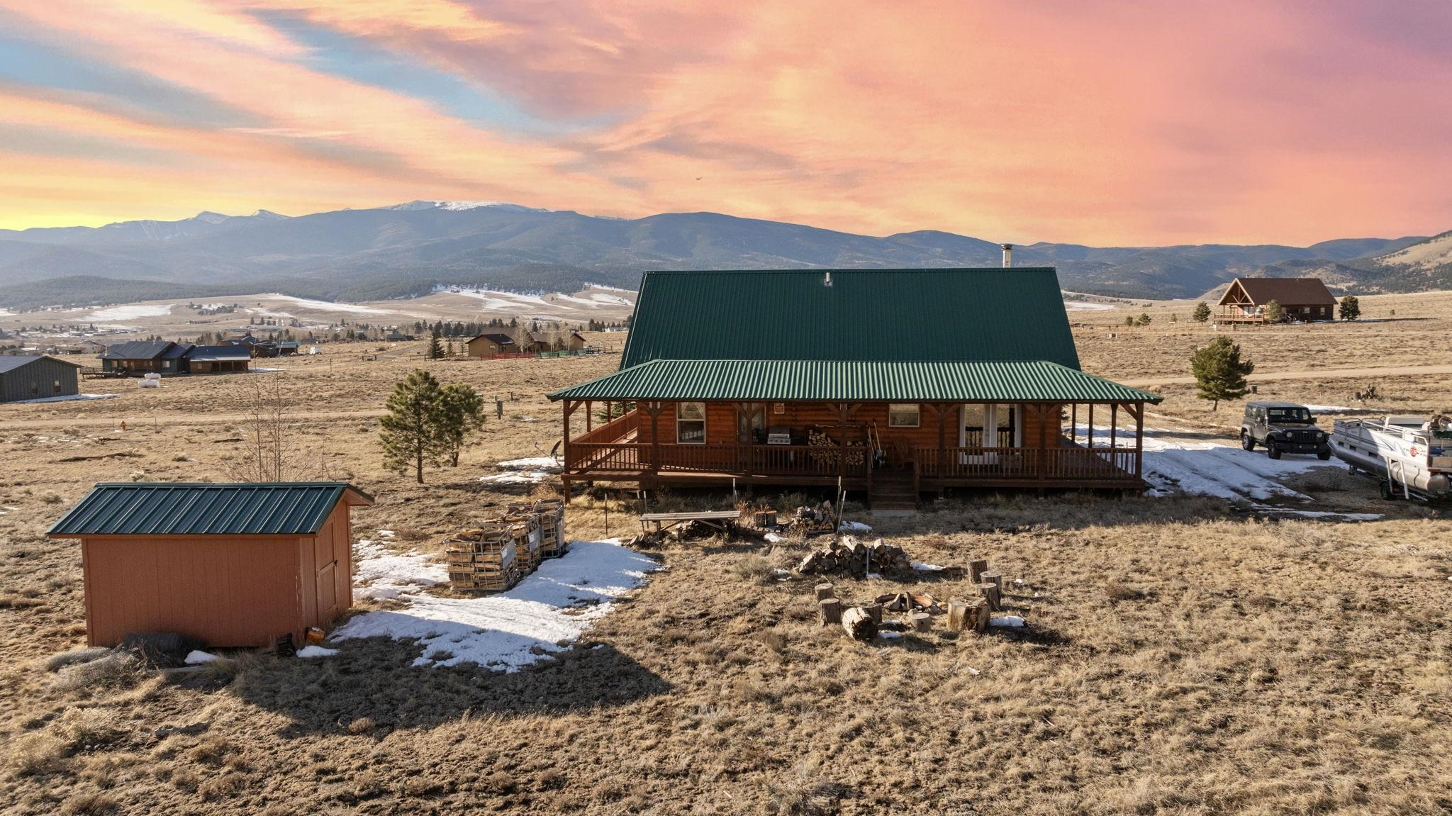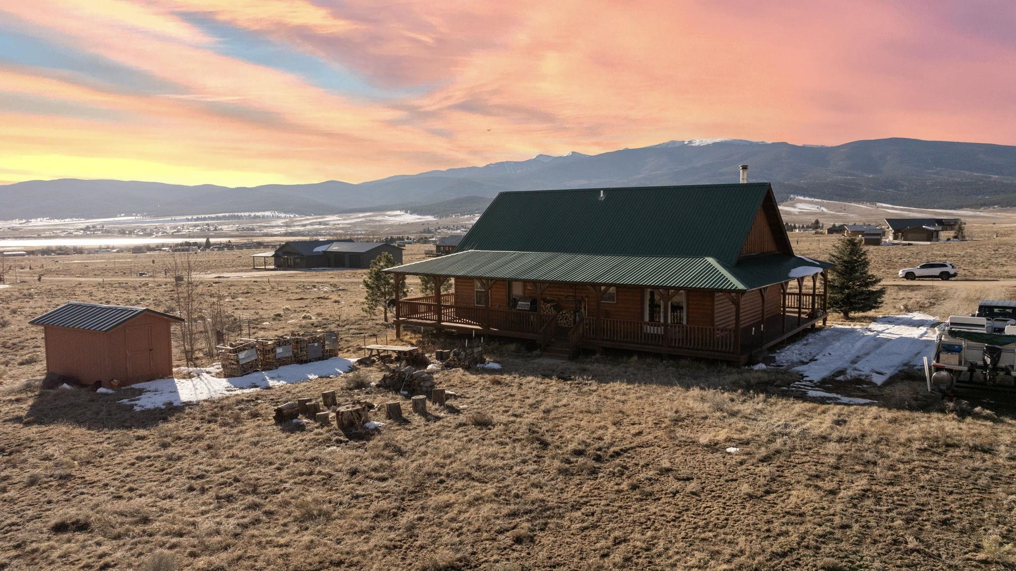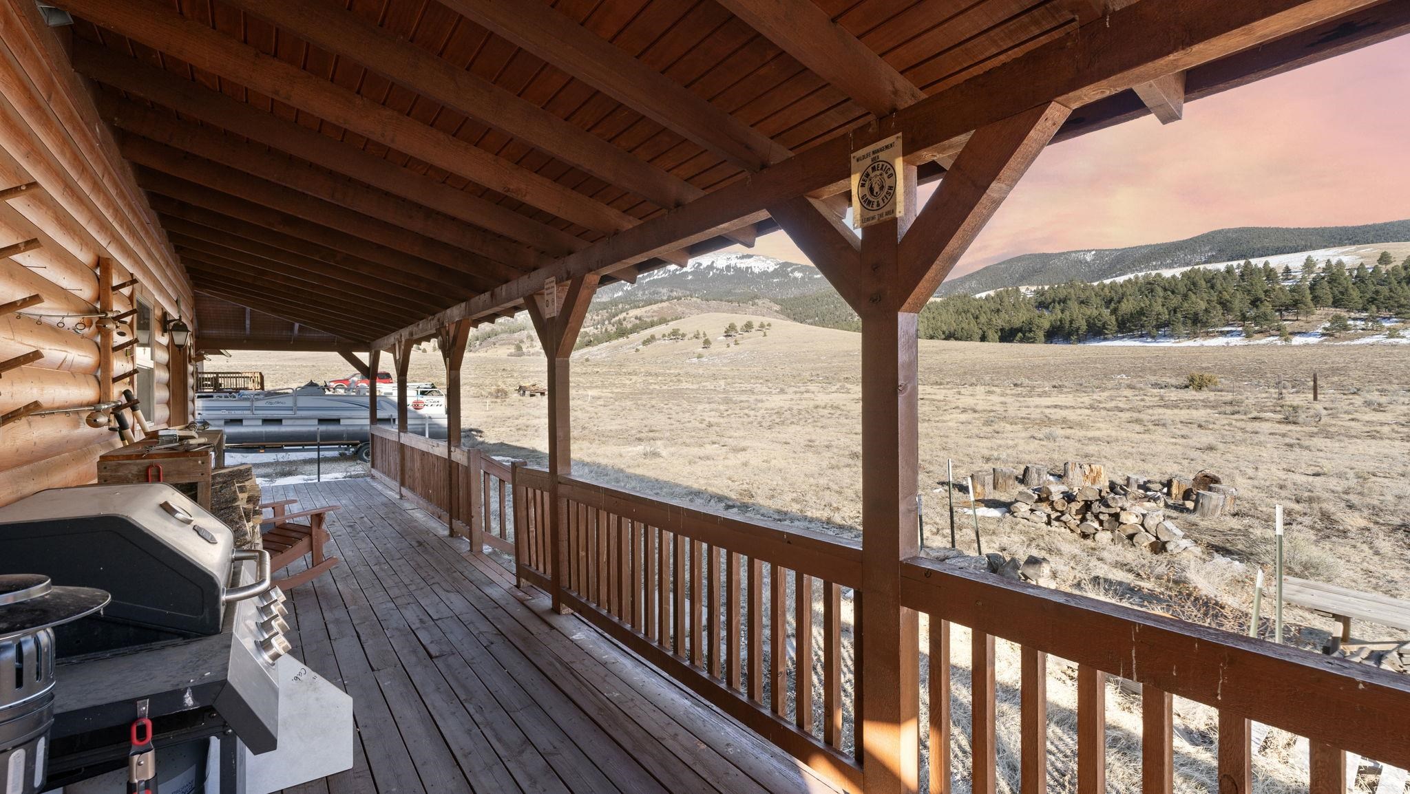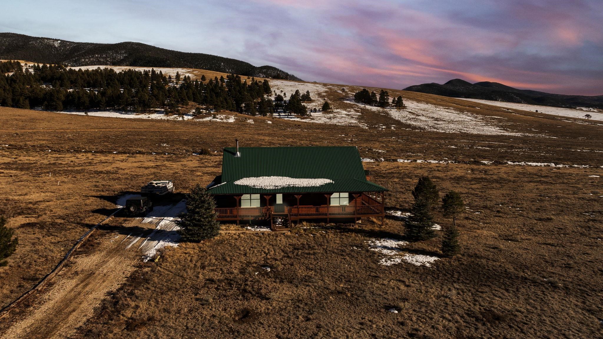 Your lovely log cabin mountain retreat awaits! This home features 360-degree views, including the Sangre de Cristo Mountains, Eagle Nest Lake, and Angel Fire Mountain from it's wrap-around deck. Elk and deer frequent the 1 acre yard, making this home truly a haven for nature lovers. Step inside to an inviting open-floor plan featuring a vaulted ceiling and wood stove. This spacious 3 bed, 1.5 bath home is perfect for you, your family, and friends! What's more is the home comes fully furnished, offering a turnkey experience. Smart heating is installed, so you can turn on the heat with an app before you get there, so it's nice and warm waiting! The quiet neighborhood, nestled in the mountains and near Eagle Nest Lake, offers peace and access to world-class fishing, making this retreat a true gem. Located perfectly between Angel Fire and Red River (20-25 minutes away) for skiing, golfing, mountain biking, fishing, and more! Schedule your tour today!