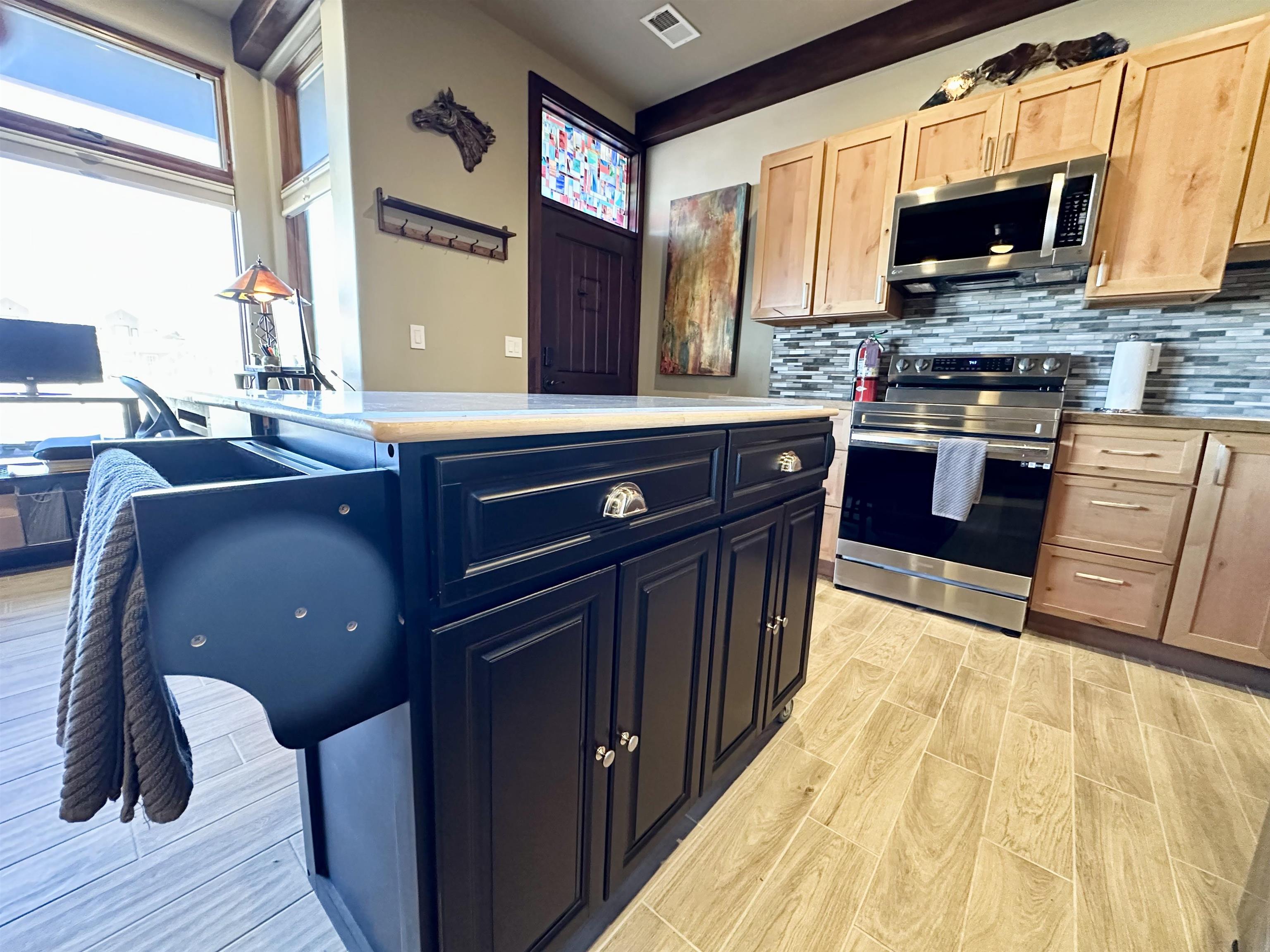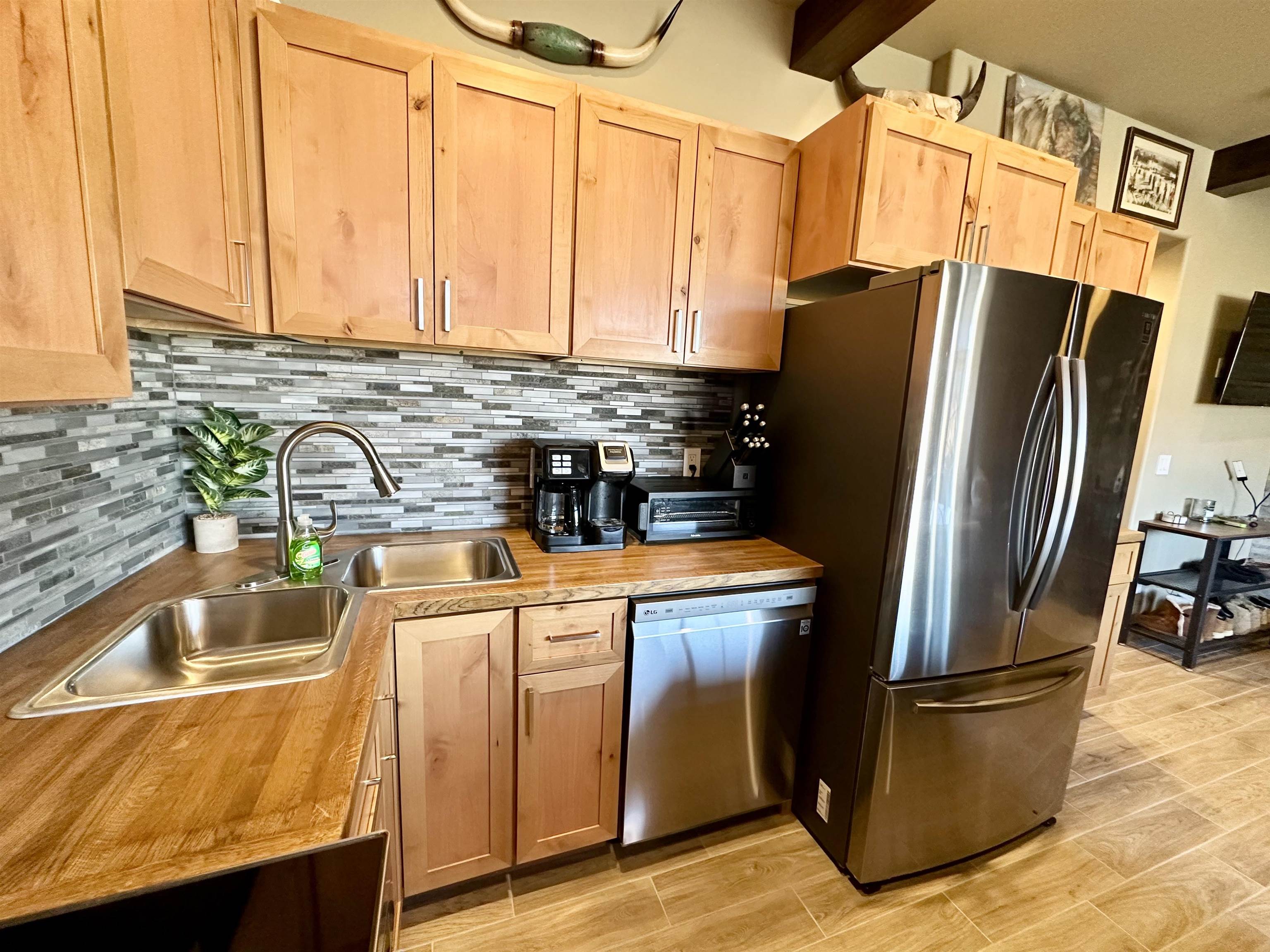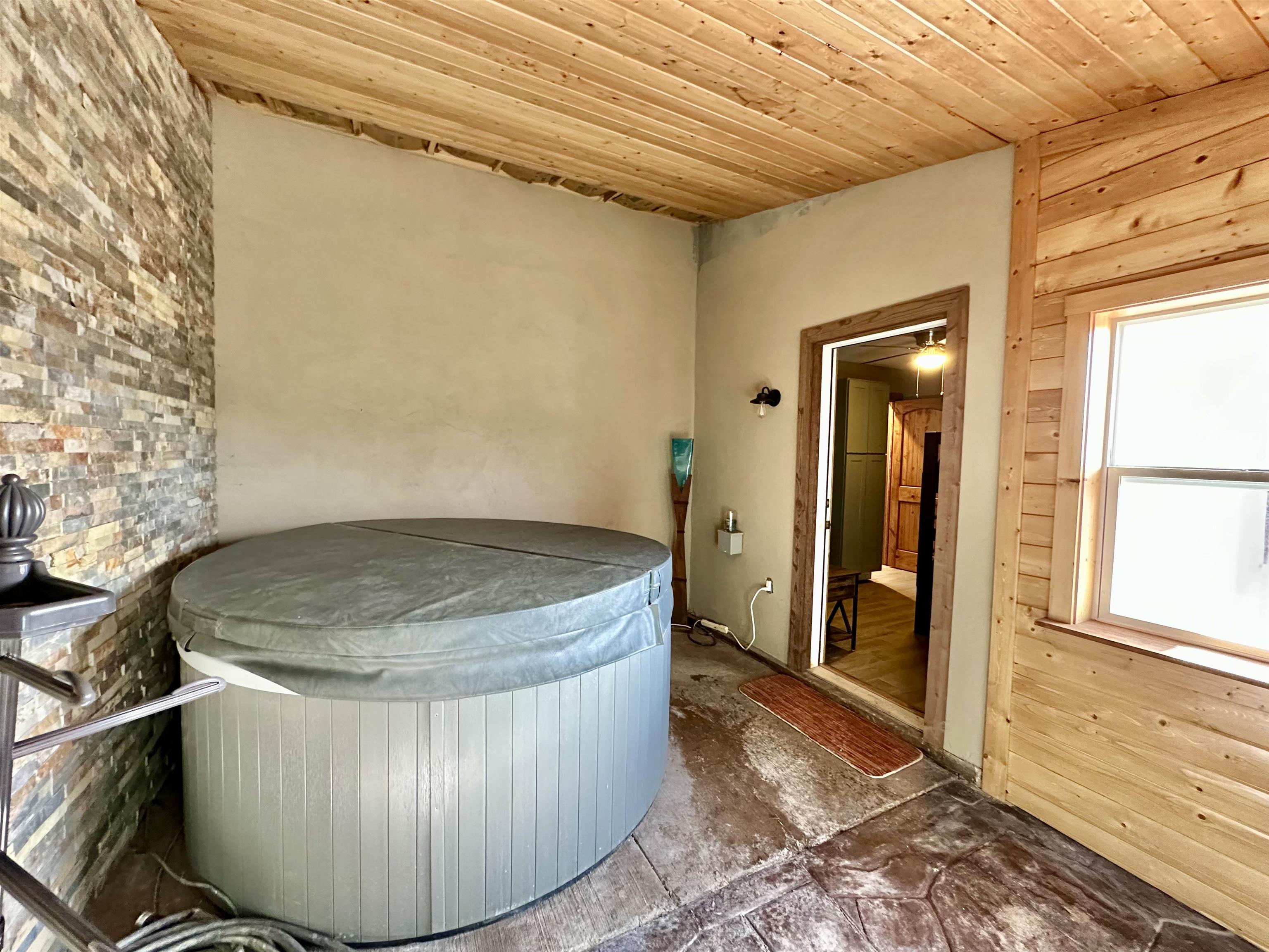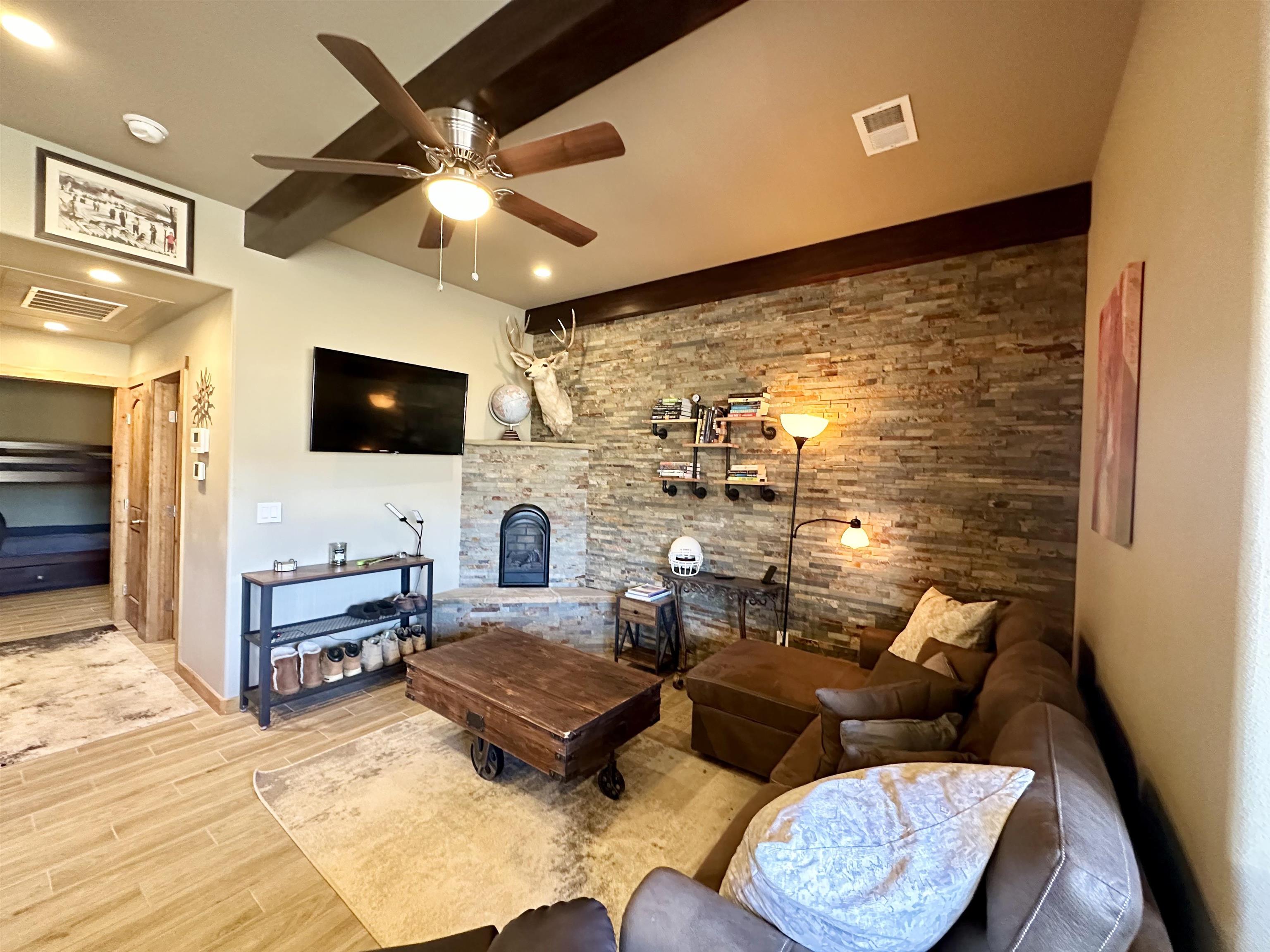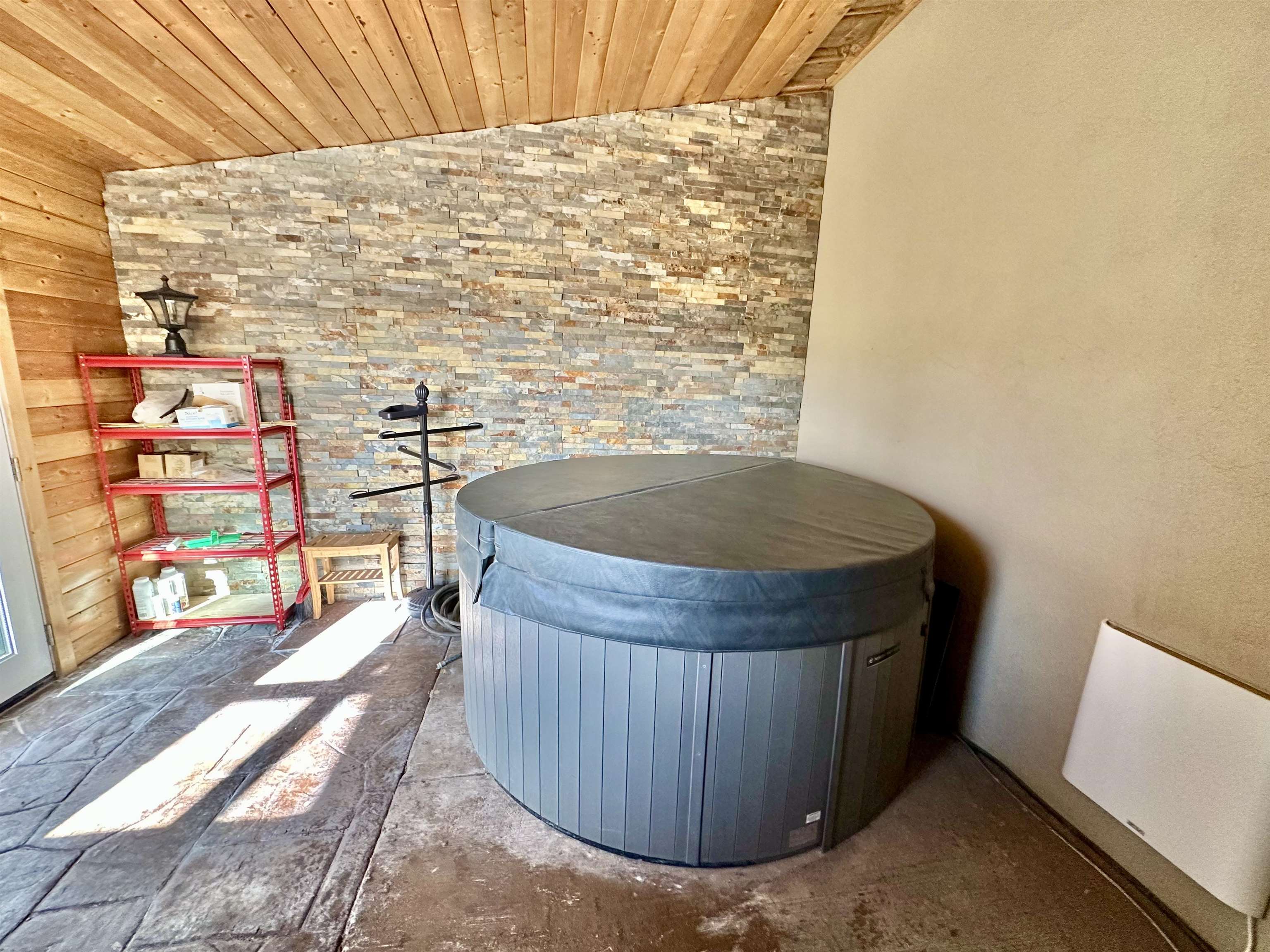 Mountain View Villas, where mountain living meets modern luxury and conveniences, completely remodeled in 2020. Step into this beautiful, 2 bedroom, 2 bathroom, condo with everything you need to enjoy Angel Fire. Enjoy high end features such as the rock wall and fireplace, stainless steel appliances, and full size washer and dryer. The primary suite has double sink vanity and custom tiled walk-in shower. Both bedrooms have private patio access to the sun drenched south-west facing mountain views. This condo has a bonus room with an indoor hot tub as well. The condo also includes an exterior owners storage closet. With no resort membership required, you're free to spend your time and money enjoying the whole Enchanted Circle.