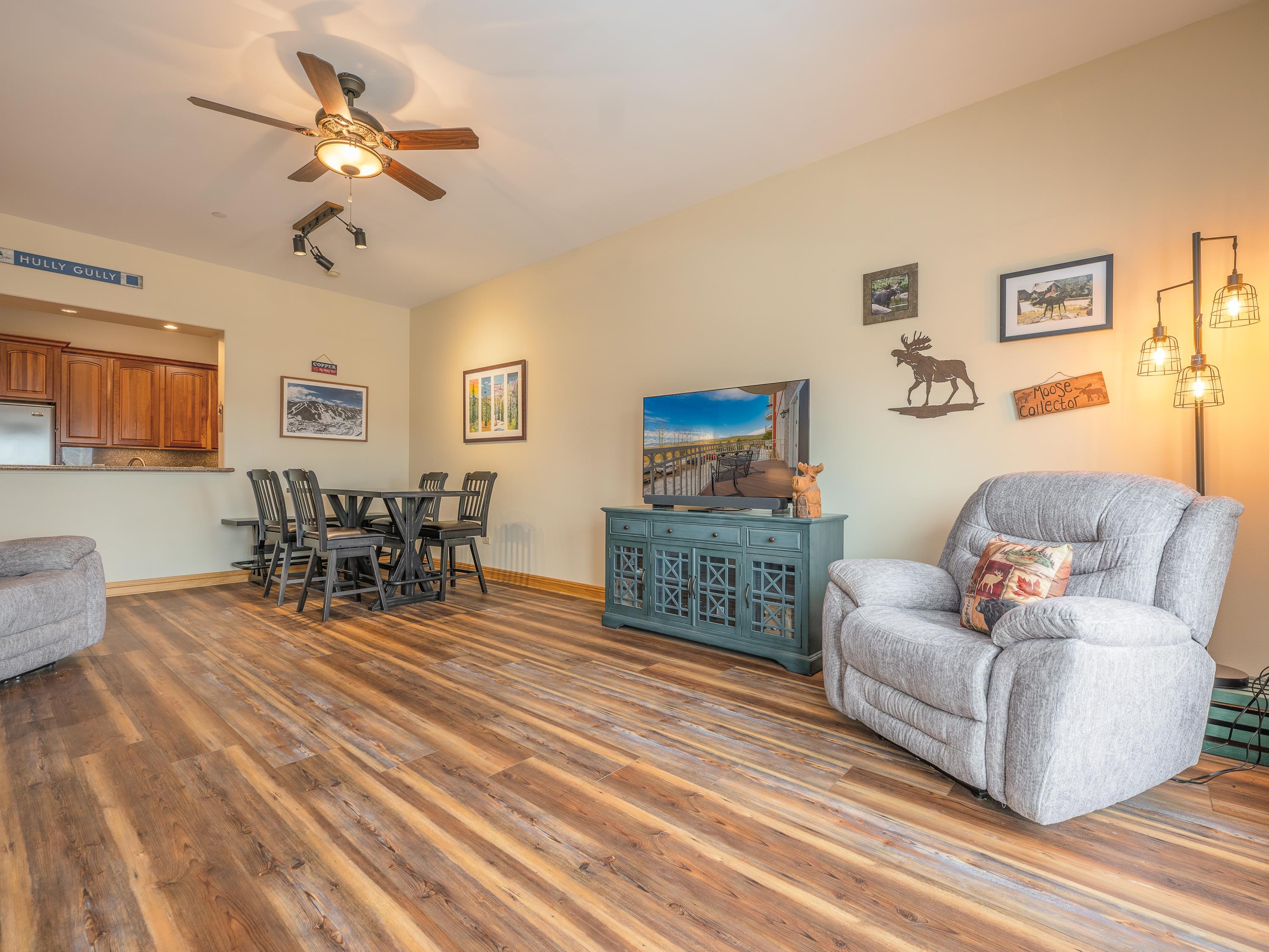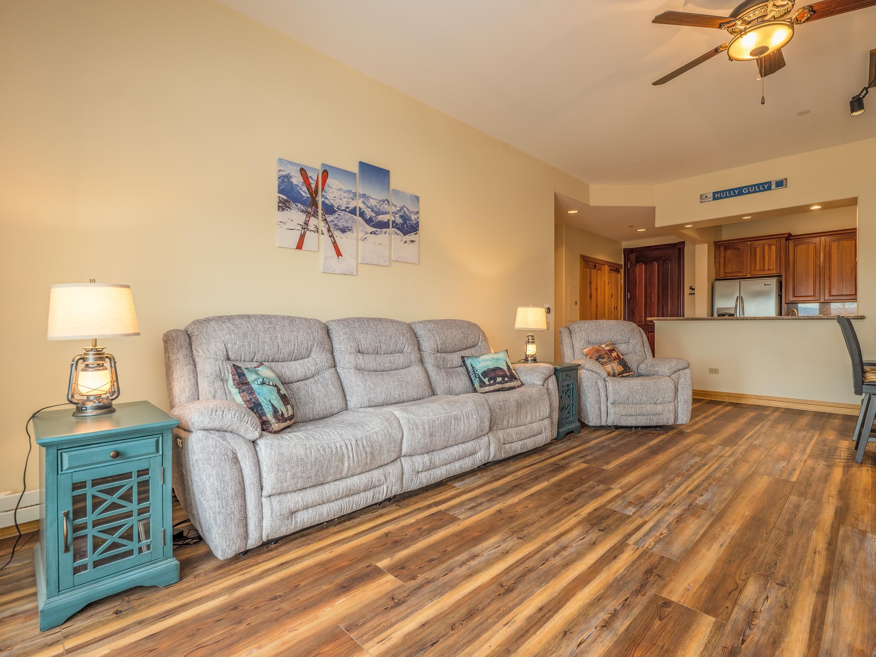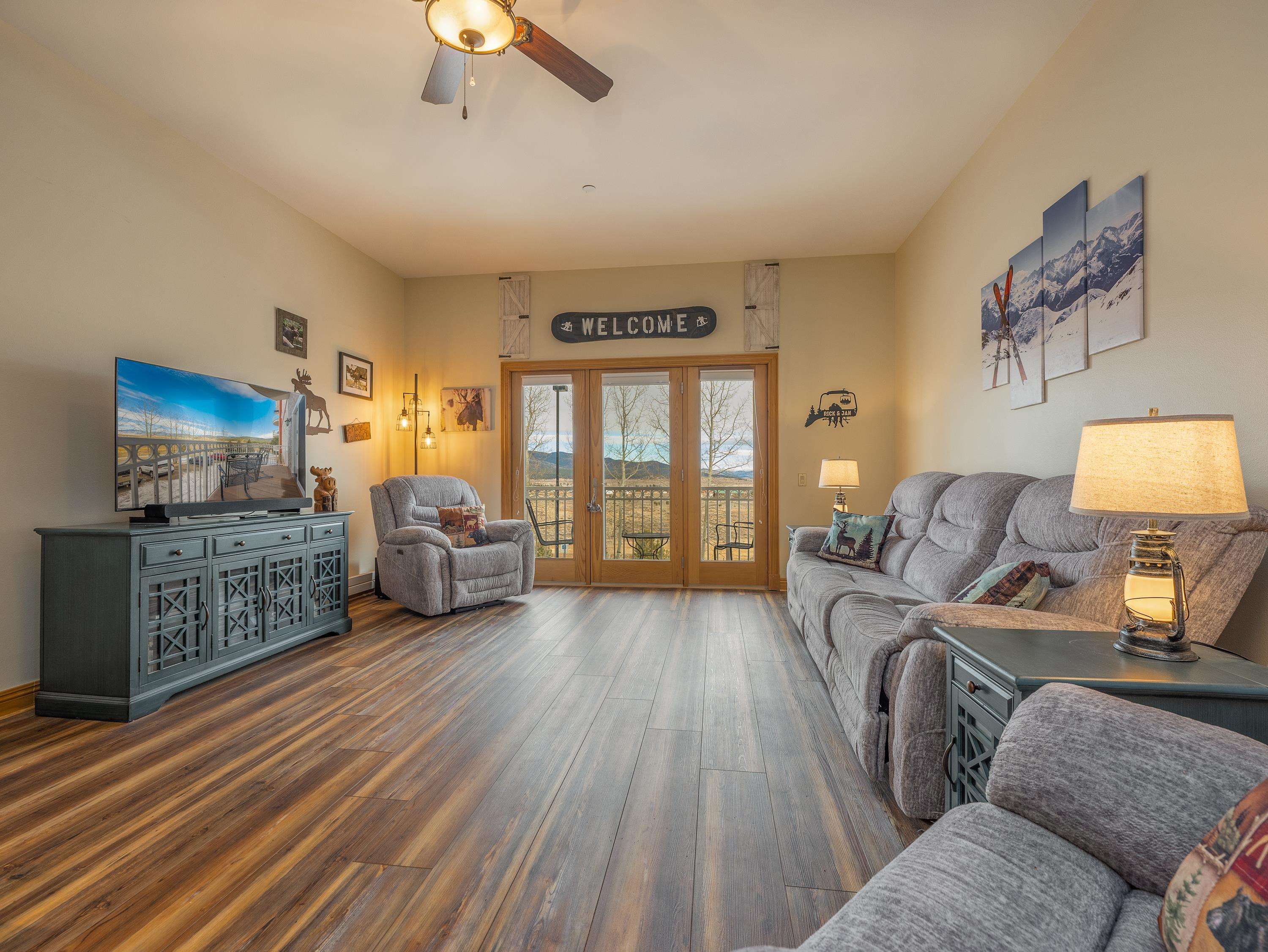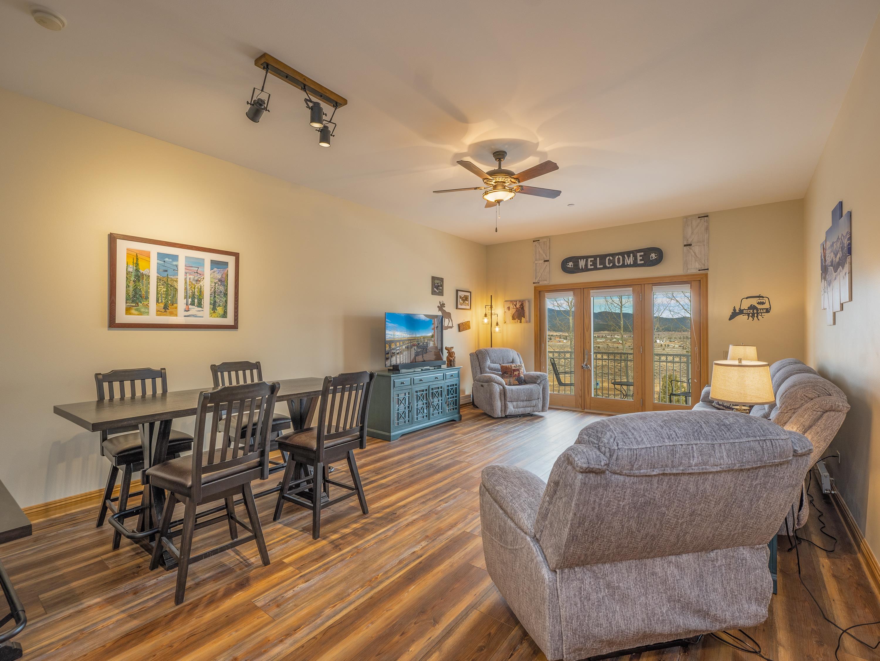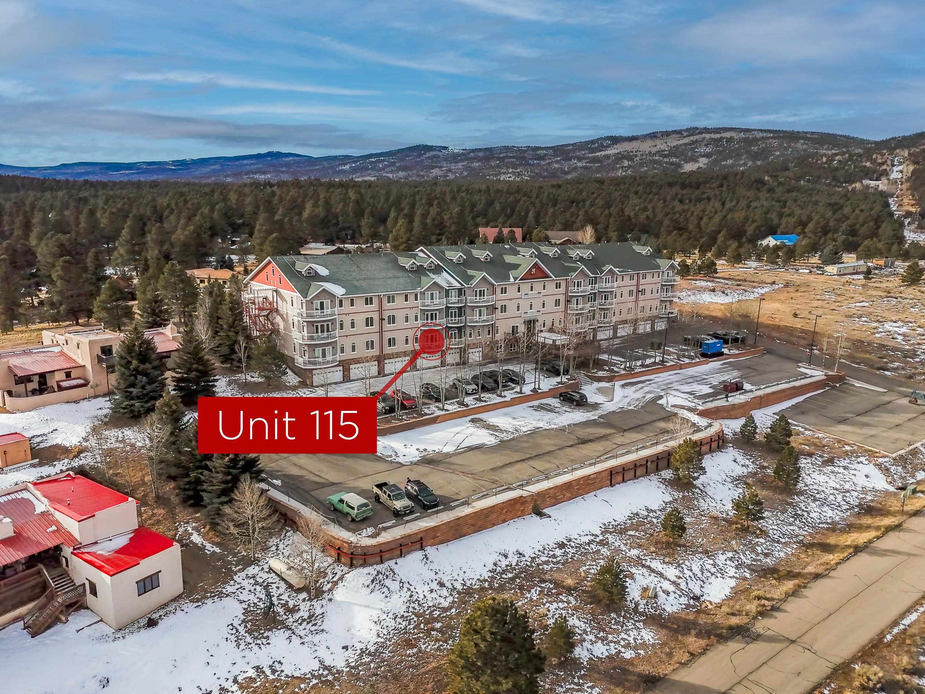 If you're looking for a newer condominium with some of the best amenities in Angel Fire, then Unit 115 at The Grande is just the place for you! This first-floor, two-bedroom, two-bathroom condo features a spacious, open living area with stunning views of Wheeler Peak and Mt. Baldy. The well-appointed kitchen includes ample countertop space, bar top seating, and generous pantry and cupboard storage. The private primary bedroom boasts an ensuite bathroom with a tub/shower combo, dual sink vanity, and a view of Mt. Baldy. The roomy second bedroom has convenient access to the hallway bathroom. A stacked washer and dryer in the entryway adds extra convenience, while the outdoor deck provides the perfect spot to enjoy Angel Fire's iconic sunsets. The amenities of The Grande include a secure entrance, accessible by your own unique door code, a well-equipped workout room with men's and women's showers/saunas, an owner's storage locker and shared laundry room behind a locked access door, ski storage, and an elevator. This complex sits outside the Angel Fire membership boundary, so no membership dues! This unit is being sold well furnished, so call today for a complete inclusion list. Come see everything Unit 115 at The Grande in Angel Fire has to offer today!