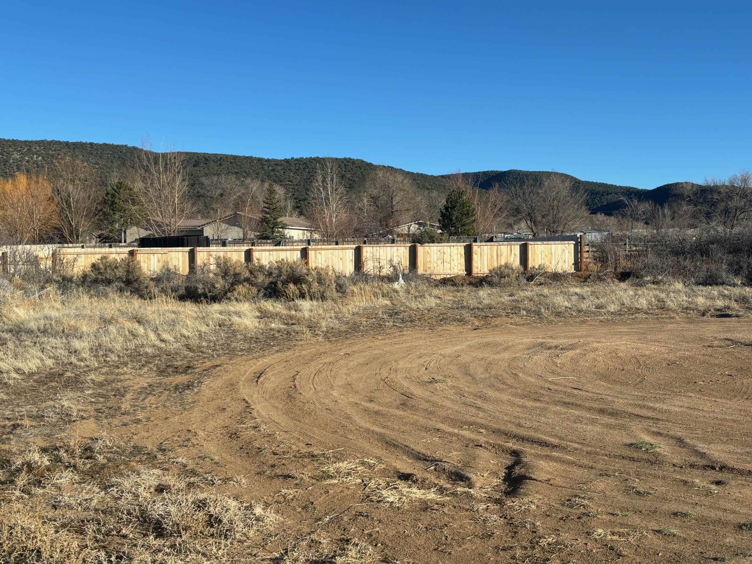 a private and secluded lot with amazing views of Taos Mountain. If lot has water rights they will be transferred. Lot has no restrictions; perfect for a site built house or single or double wide trailer. El Valle Sewer is nearby; Buyer would have to see which option is more cost effective; running a line to El Valle Sewer or installing a conventional septic.