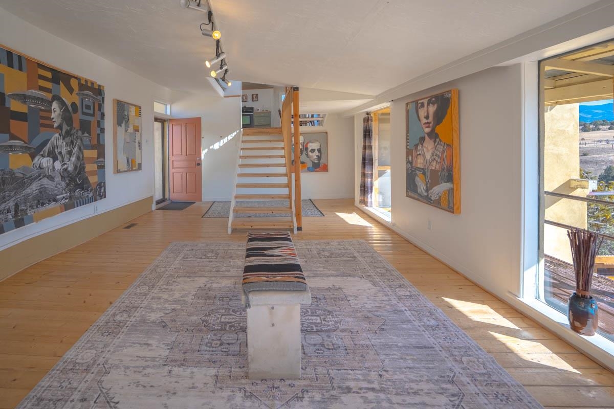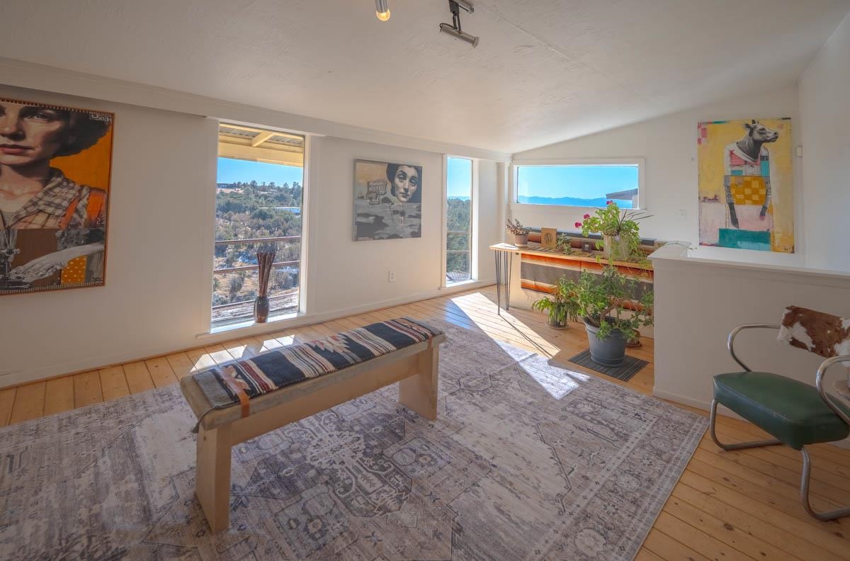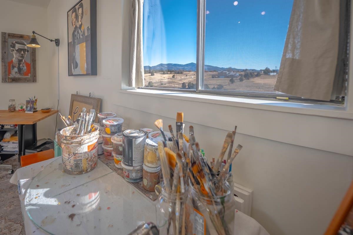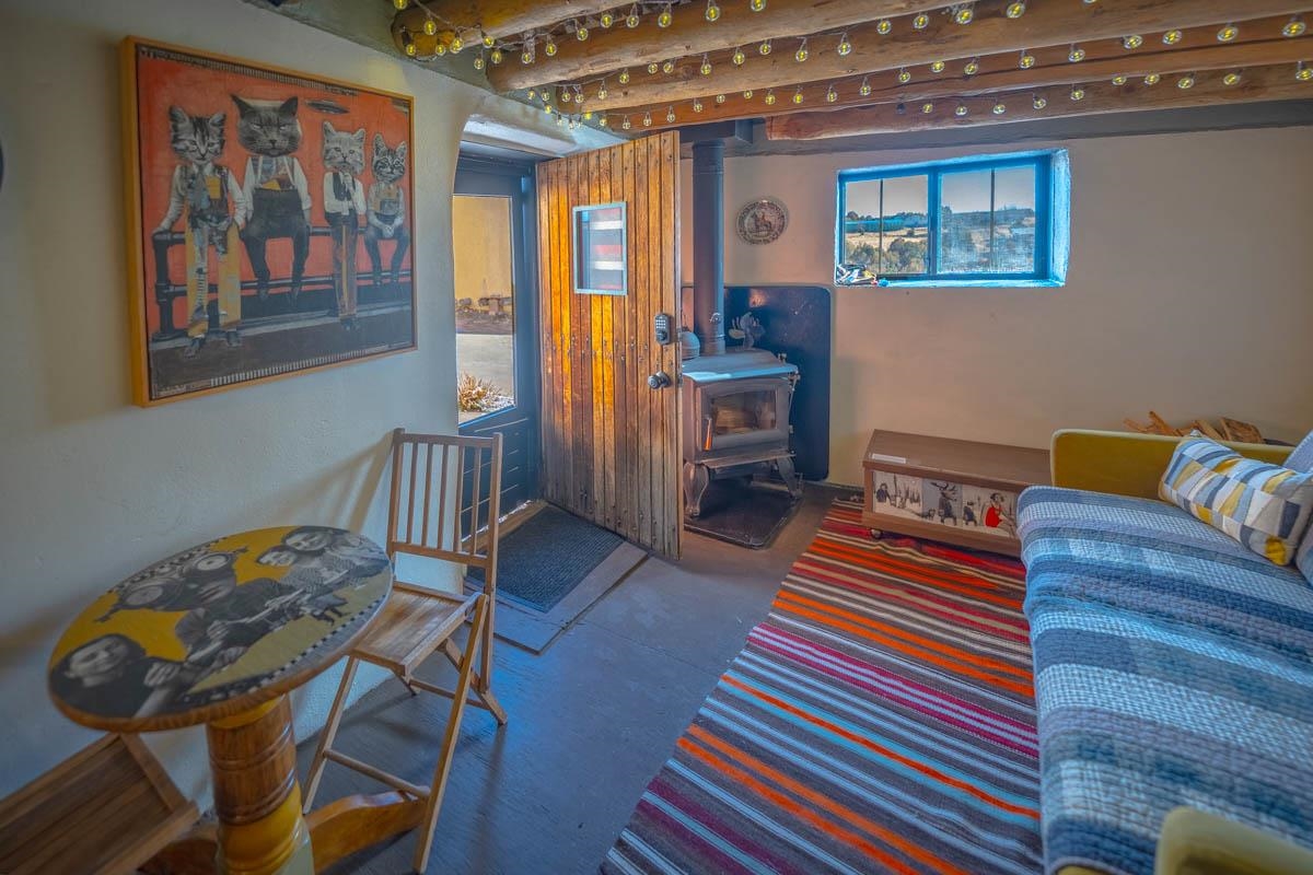 PRICE IMPROVEMENT! An Artist's Dream Retreat in Truchas - A Gallery, Studio & Mountain Sanctuary! At the foot of the towering Truchas Peaks, along the main road of this historic village, lies a truly extraordinary property--a home, a gallery, and a creative sanctuary, all in one. This multilevel mountain retreat is a masterpiece of character and craftsmanship, where art and nature converge in perfect harmony. Designed with an artist's soul in mind, the property features a detached guesthouse and a thriving art gallery and working studio. Bathed in natural light, with traditional vigas and latillas overhead, this inspiring space is perfect for showcasing work, hosting exhibitions, or cultivating creative energy. Whether continuing its legacy as a gallery or transforming it into a personal retreat, the possibilities are endless. The main residence is equally enchanting - a split-level design that embraces passive solar warmth, highlighted by original adobe walls that tell the story of its rich past. Century-old longleaf pine doors add rustic charm, while a cozy woodstove, whole-house inline water filtration system, and ample storage, provide comfort and convenience. Large windows frame breathtaking views of the Jemez and Sangre de Cristo Mountain ranges, making every sunrise and sunset a work of art in itself. With a workshop for hands-on projects and multiple flexible spaces, this home is a true artist's retreat--ideal for painters, sculptors, or creatives seeking inspiration in one of New Mexico's most beautiful landscapes. Beyond your own artistic haven, the location offers a rich cultural and natural experience--just an hour from Santa Fe, Taos, and Los Alamos, with easy access to Ojo Caliente Hot Springs, the Sanctuario de Chimay, Bandelier National Monument, the Santa Fe Opera, Ghost Ranch, and multiple ski resorts. Whether you are looking to create, curate, or simply immerse yourself in the beauty of the high desert, this one-of-a-kind property is a masterpiece waiting for its next artist-in-residence. There is a 3D interior video tour and exterior drone video available to give you the full experience of this property, before even seeing this wonder in person.