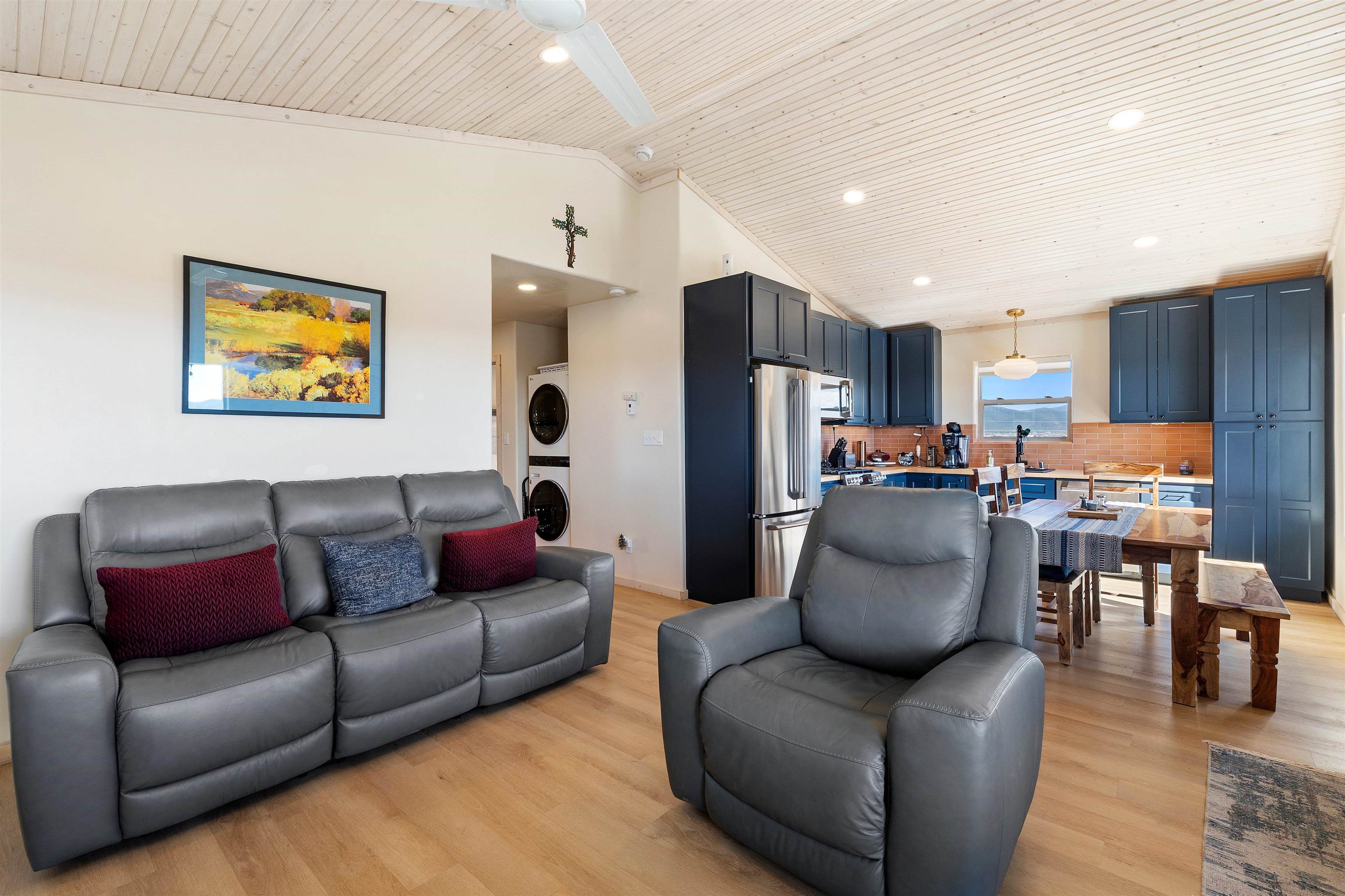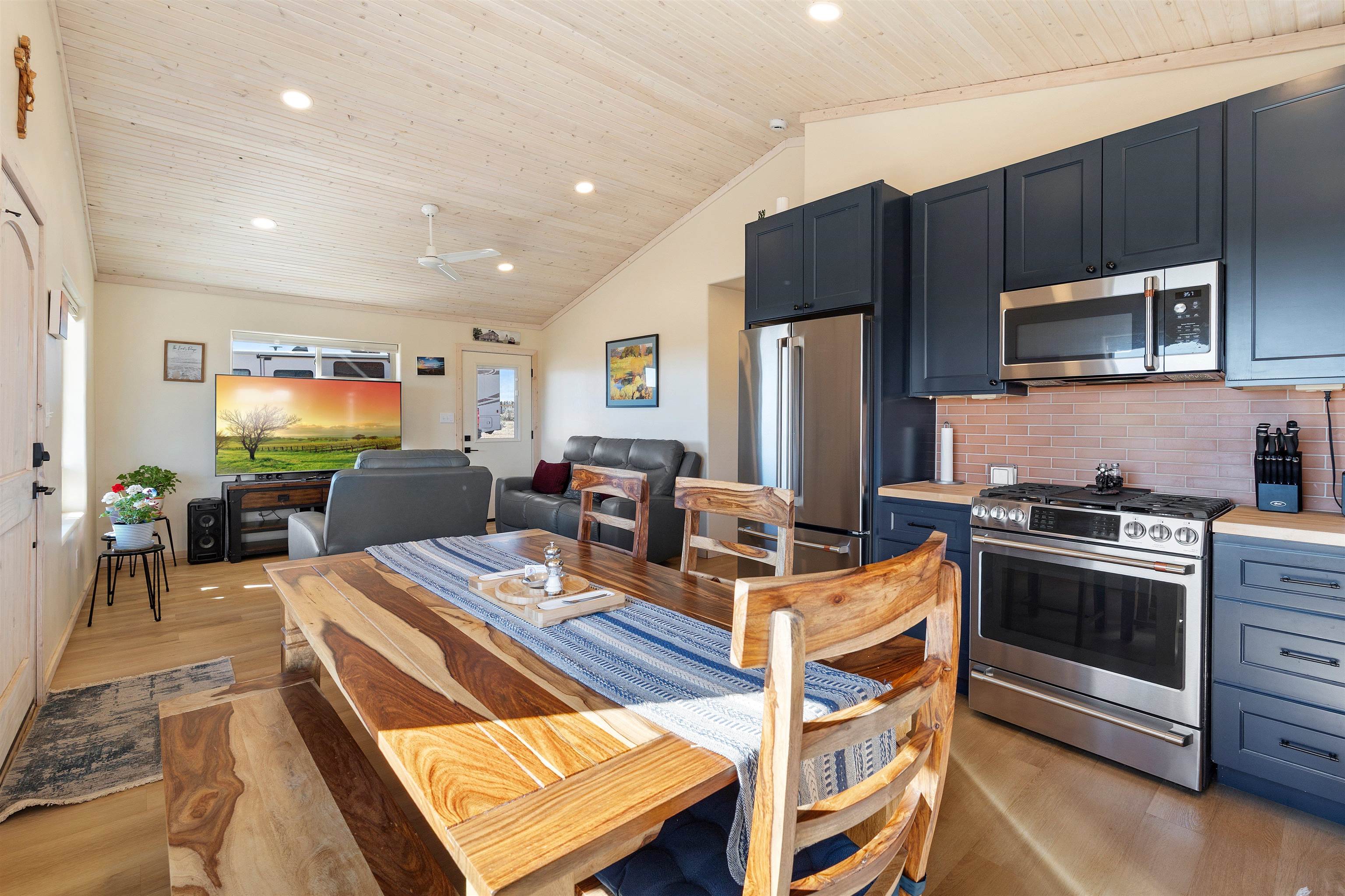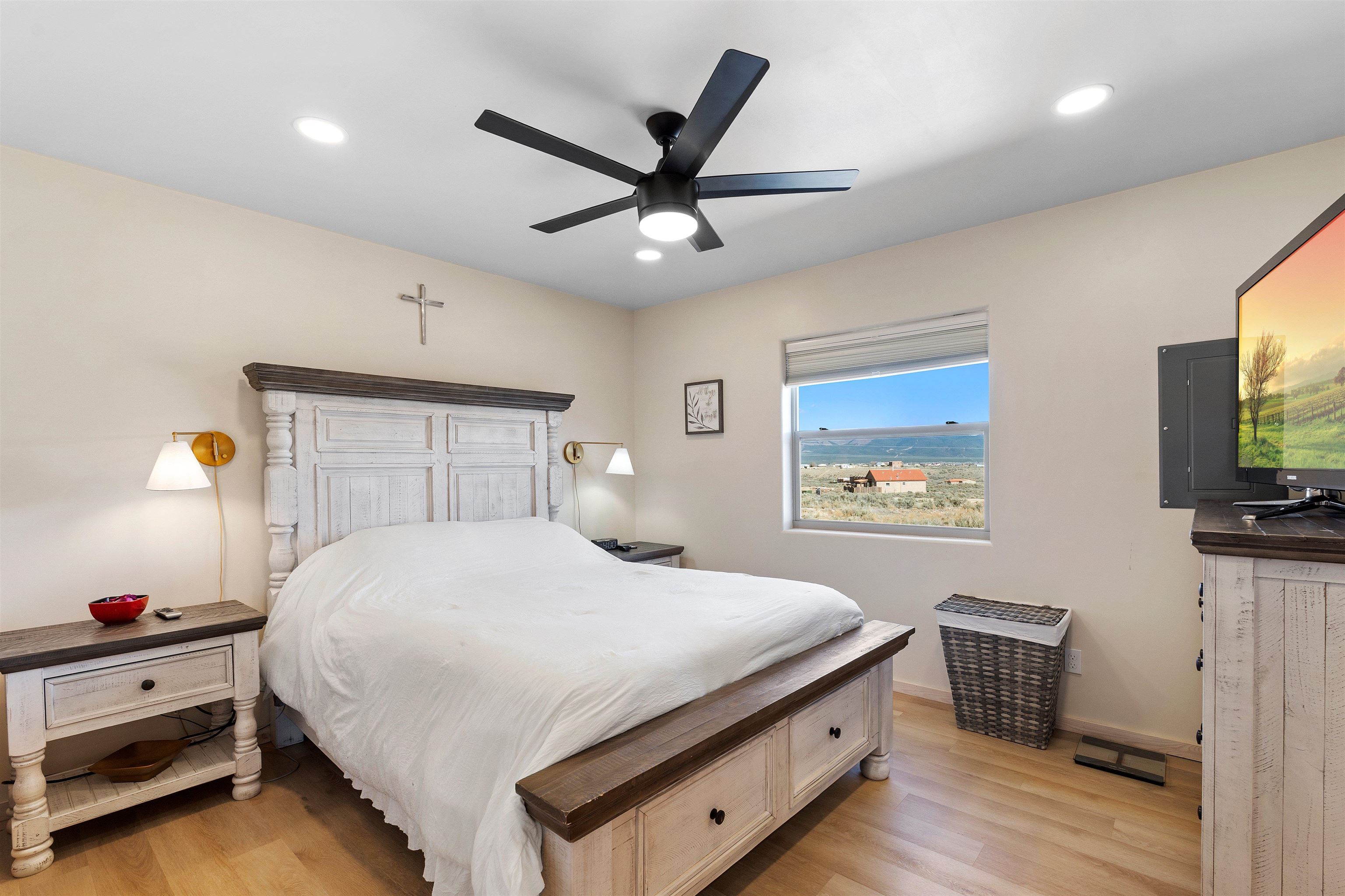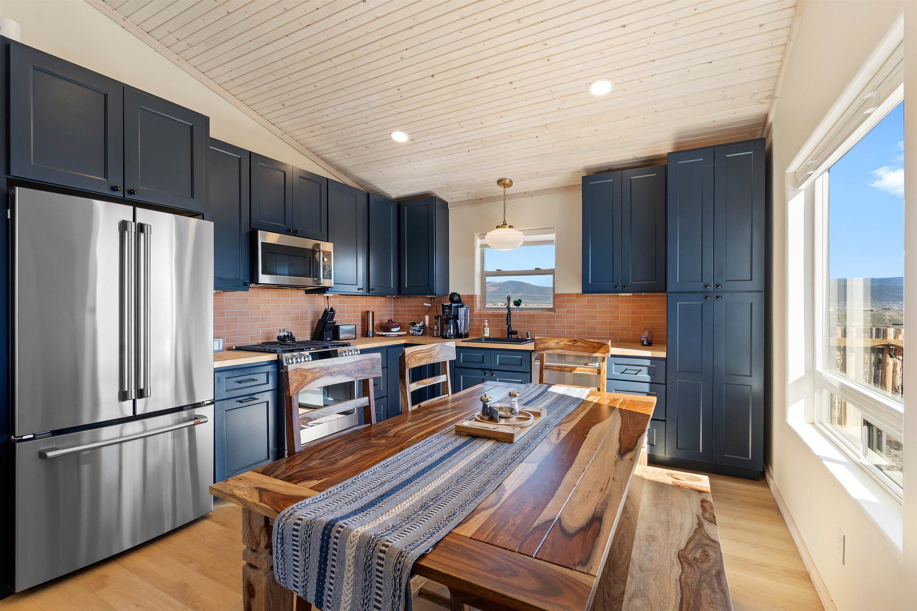 $5,000 seller credit with acceptable offer! Unbelievable views! Perfect for watching those beautiful morning sunrises and evening sunsets! This cute country home has an updated light and bright kitchen with stainless steel appliances and butcher block countertops, 2 bedrooms and 2 baths with all the space for your toys! Home is energy efficient with radiant floor heating, natural gas with NM gas company, Electric with Kit Carson, and internet with Taos net! Ceiling fans with dimmer lights throughout and blinds open from top or bottom. Come see this beauty today!