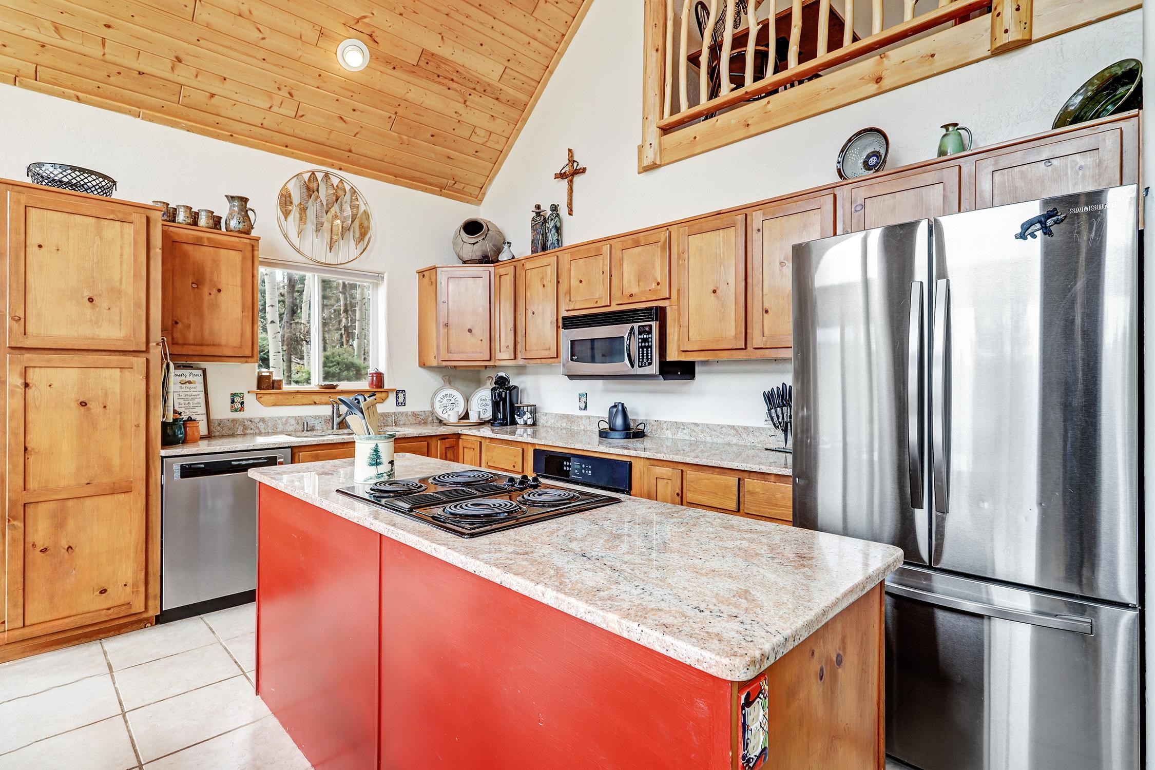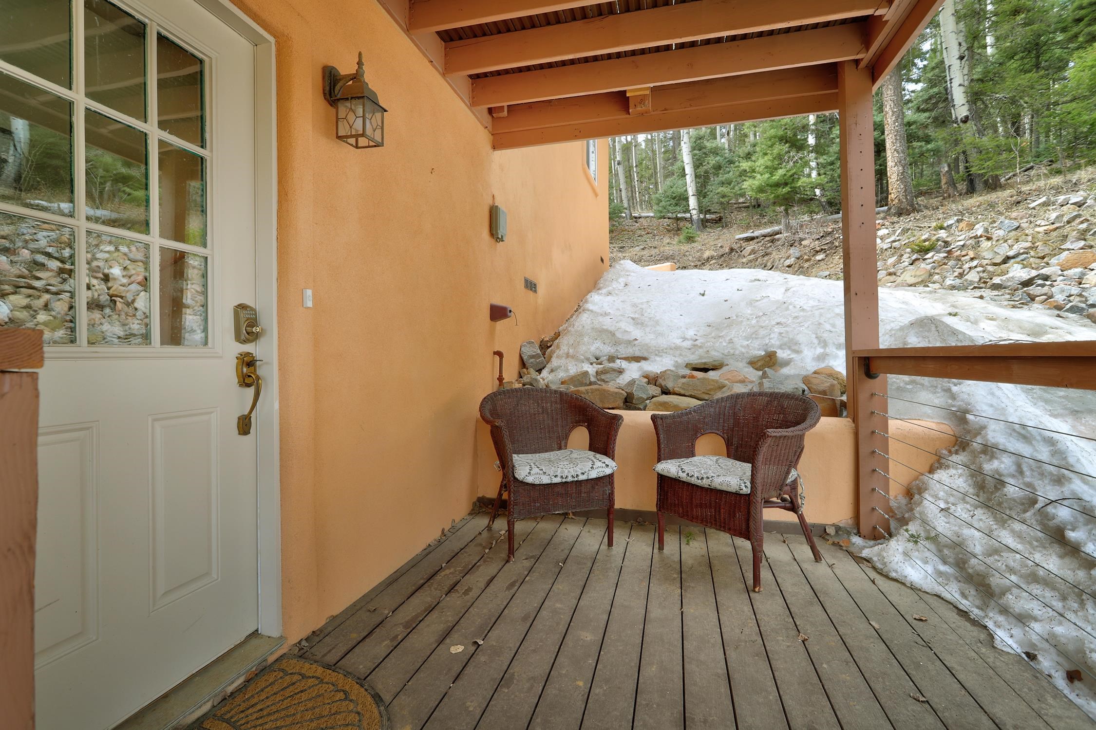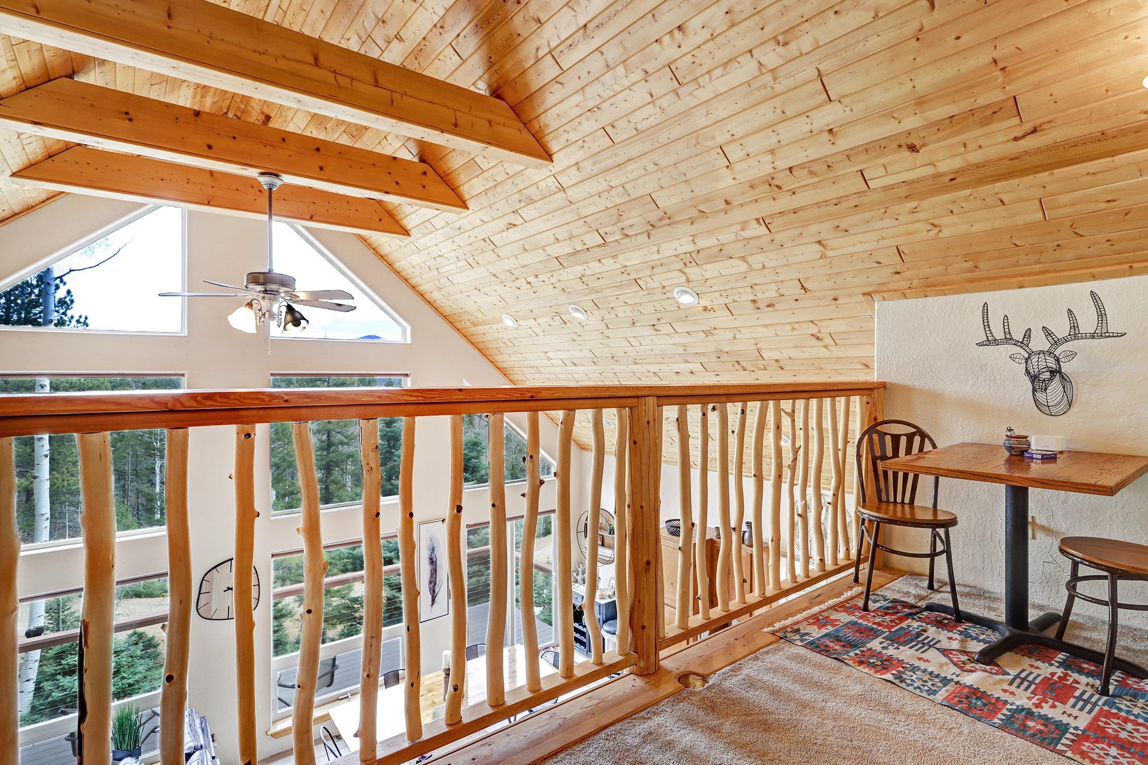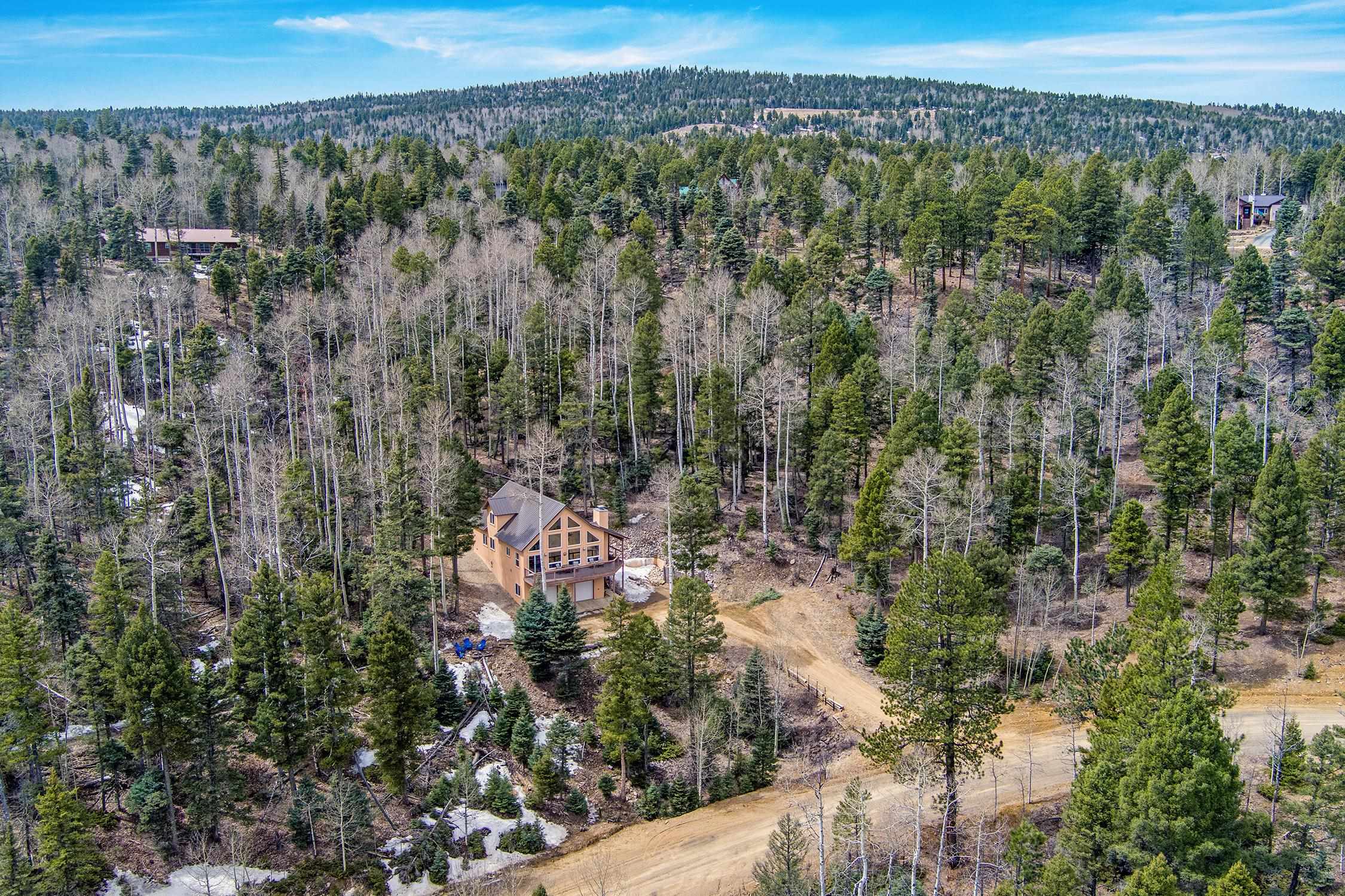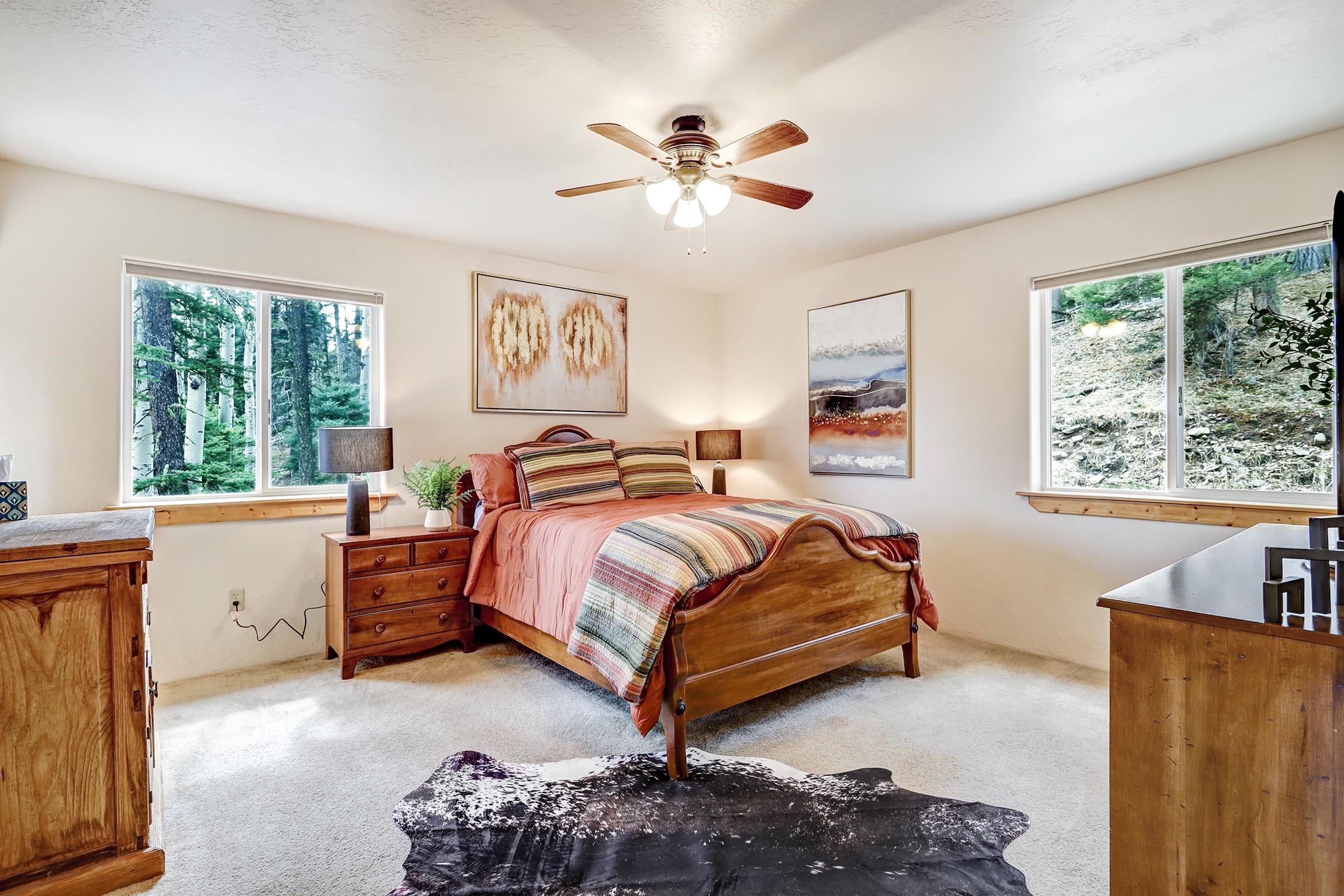 Perched in the trees of Angel Fire, NM, this 4-bedroom, 3-bathroom home is comfortable and inviting. As you step inside, you'll be greeted by a cozy living room, complete with a wood-burning stove, perfect for those chilly mountain evenings. The open-concept design seamlessly connects the living area to a kitchen featuring solid surface countertops, and a dining area with a wine bar, providing both style and functionality for all your gatherings. This home features not one, but two master suites, offering privacy and convenience. The additional loft space serves as a versatile area for extra sleeping with a sleeper sofa or an extra hangout spot. Step outside onto the expansive deck and take in the breathtaking mountain views that Angel Fire is renowned for. The large 1.64-acre lot provides ample space for outdoor activities and future landscaping dreams. The property is move-in ready, with a proven rental history, making it a home as well as an investment opportunity. For those with a passion for vehicles or outdoor gear, the 2-car garage includes an extra tall bay, accommodating larger vehicles or additional storage needs. Don't delay, this stylish home is sure to get lots of attention!