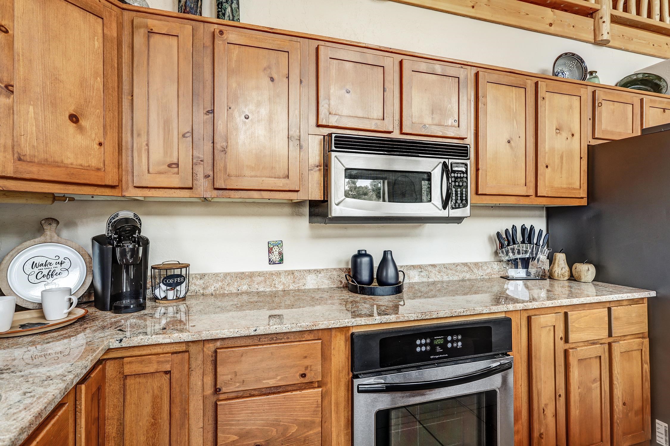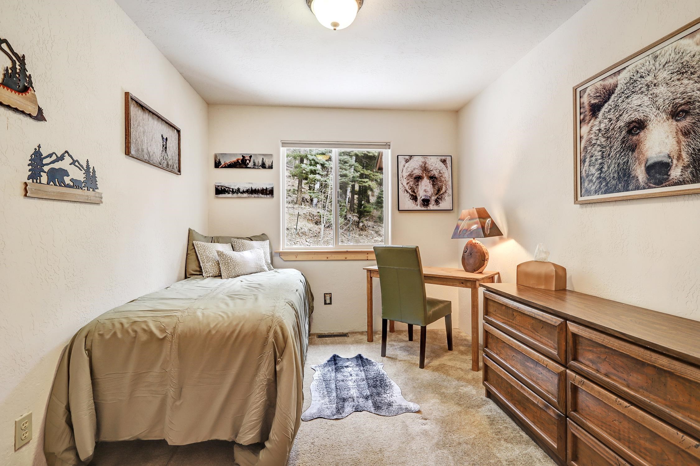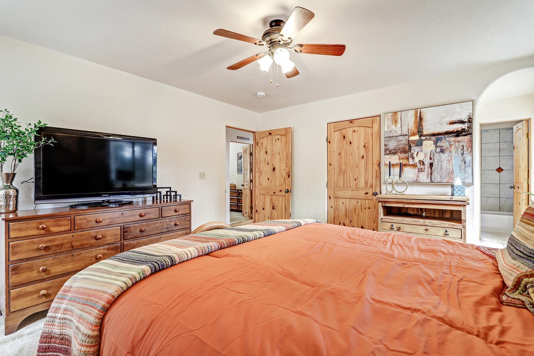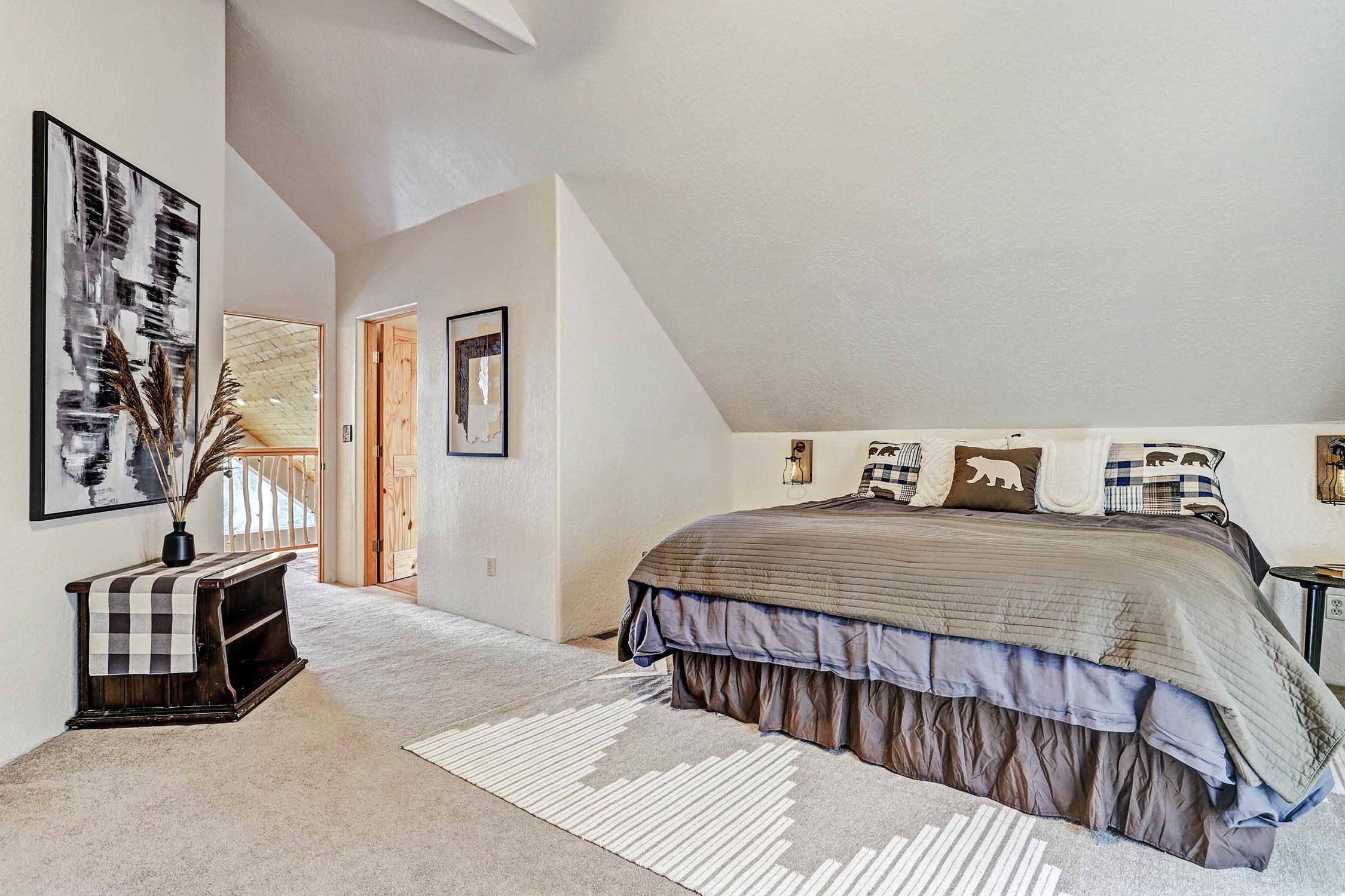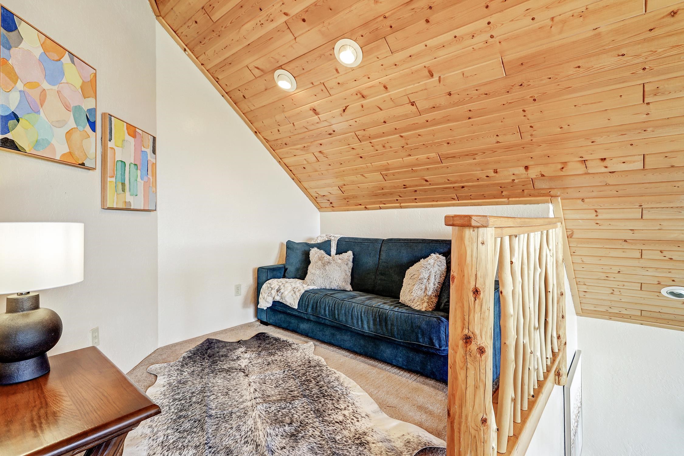 Perched in the trees of Angel Fire, NM, this 4-bedroom, 3-bathroom home is comfortable and inviting. As you step inside, you'll be greeted by a cozy living room, complete with a wood-burning stove, perfect for those chilly mountain evenings. The open-concept design seamlessly connects the living area to a kitchen featuring solid surface countertops, and a dining area with a wine bar, providing both style and functionality for all your gatherings. This home features not one, but two master suites, offering privacy and convenience. The additional loft space serves as a versatile area for extra sleeping with a sleeper sofa or an extra hangout spot. Step outside onto the expansive deck and take in the breathtaking mountain views that Angel Fire is renowned for. The large 1.64-acre lot provides ample space for outdoor activities and future landscaping dreams. The property is move-in ready, with a proven rental history, making it a home as well as an investment opportunity. For those with a passion for vehicles or outdoor gear, the 2-car garage includes an extra tall bay, accommodating larger vehicles or additional storage needs. Don't delay, this stylish home is sure to get lots of attention!