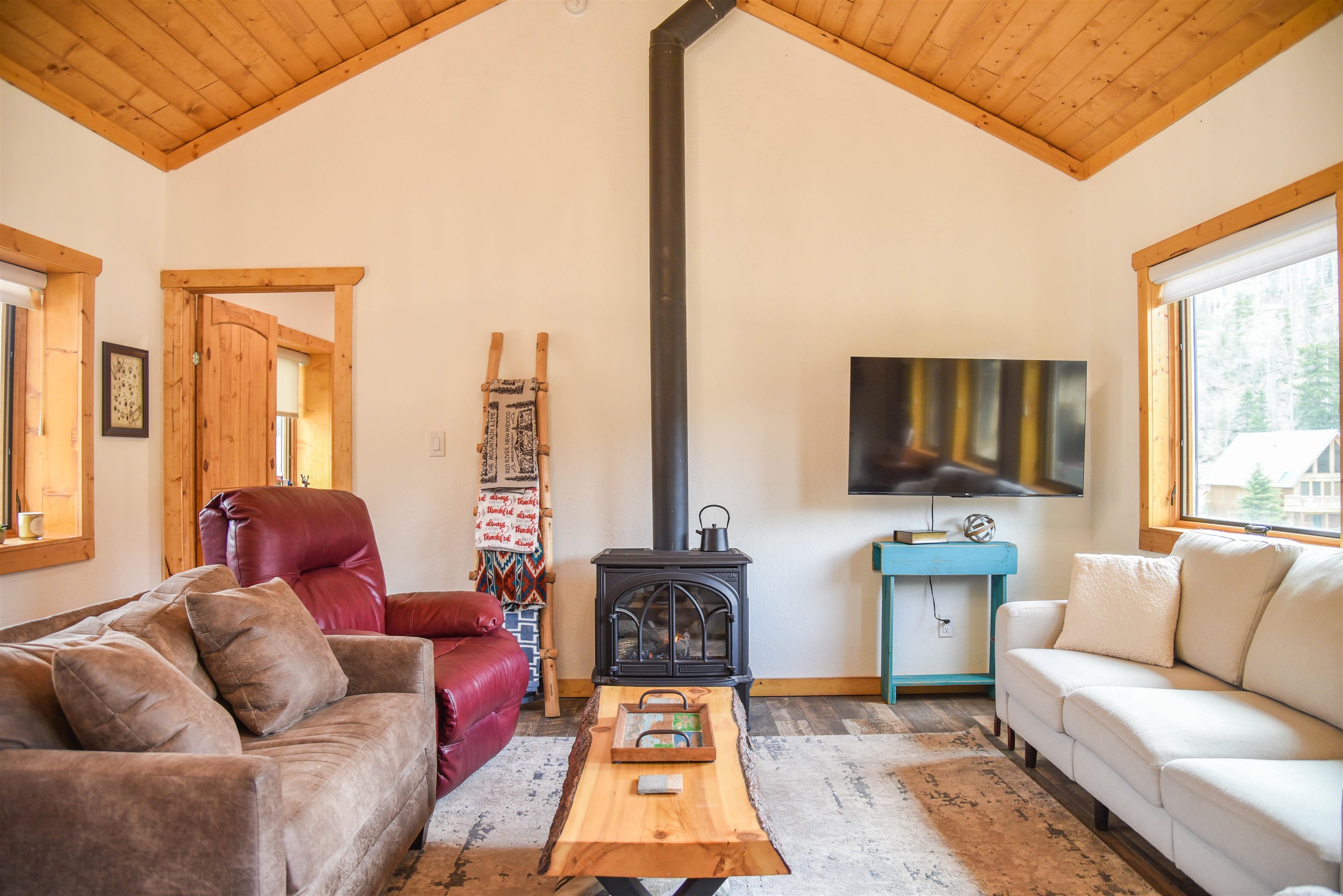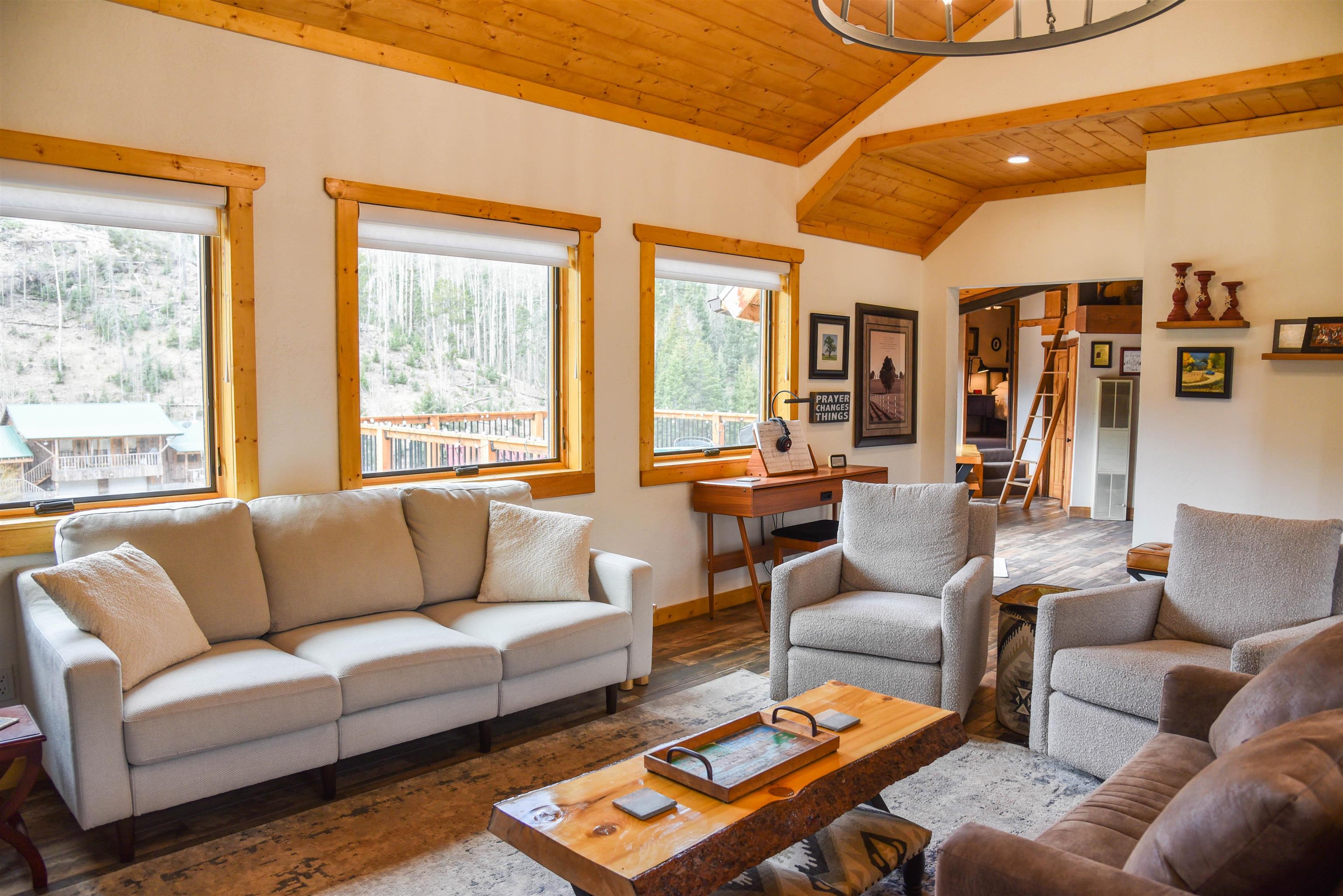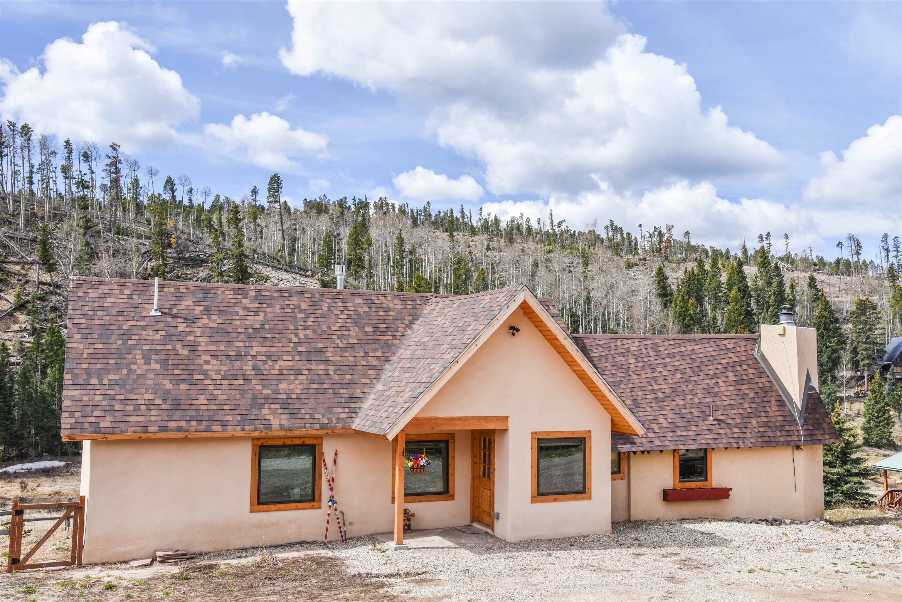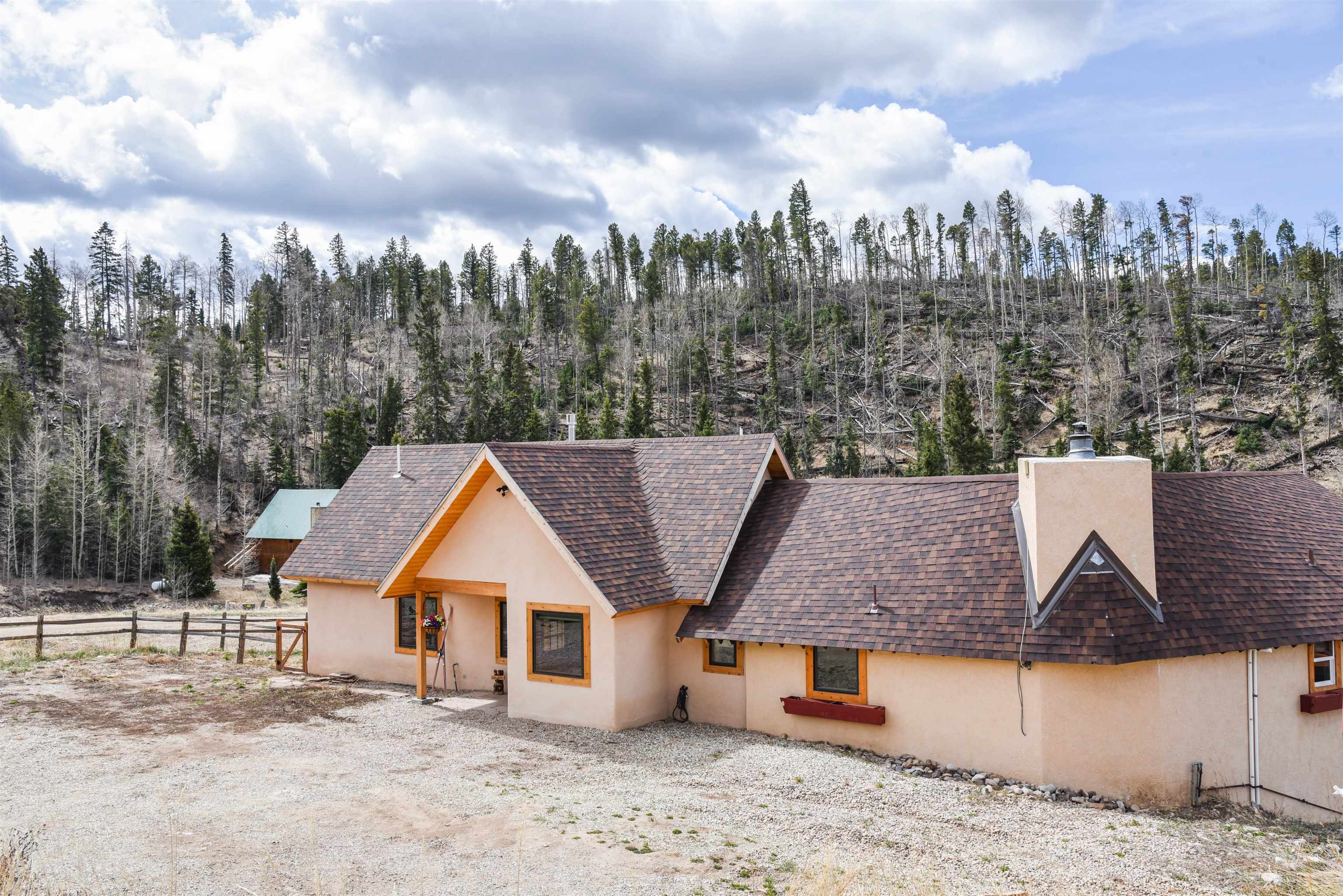 This fantastic mountain home is a perfect spot for enjoying the great indoors and outdoors! The original cabin was built in 1995. The current owner added on a gorgeous living room, guest room and a bath and a half bath. The original part of the house has also been partially renovated. This home is tastefully decorated, with all new appliances and porcelain tile flooring. There's a cozy little ladder-up loft with a queen size bed for additional sleeping. The home sits on a little over an acre and has views and hiking possibilities. The roof was replaced in 2022. There's also a storage building on the property and the well has a new pump. An extra bonus: there's a natural spring that runs on the property year 'round.