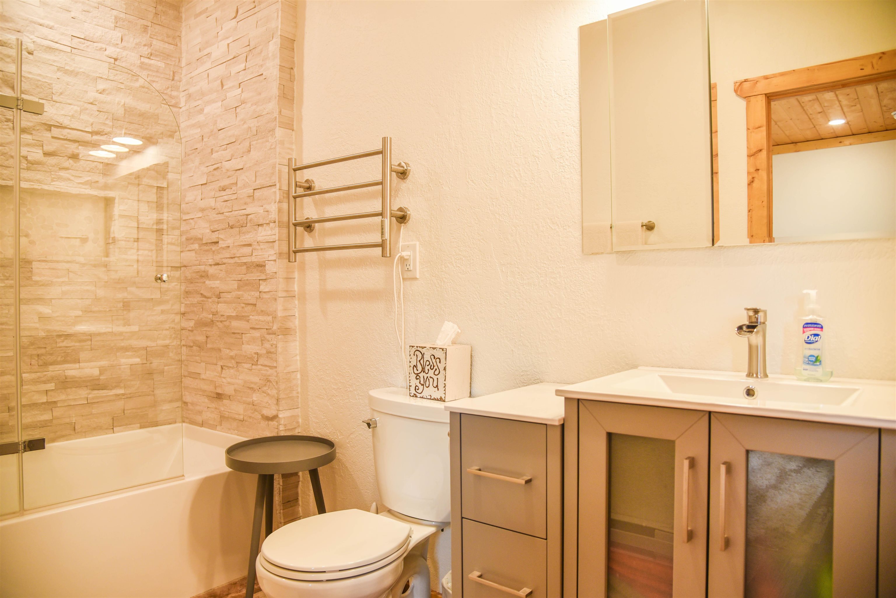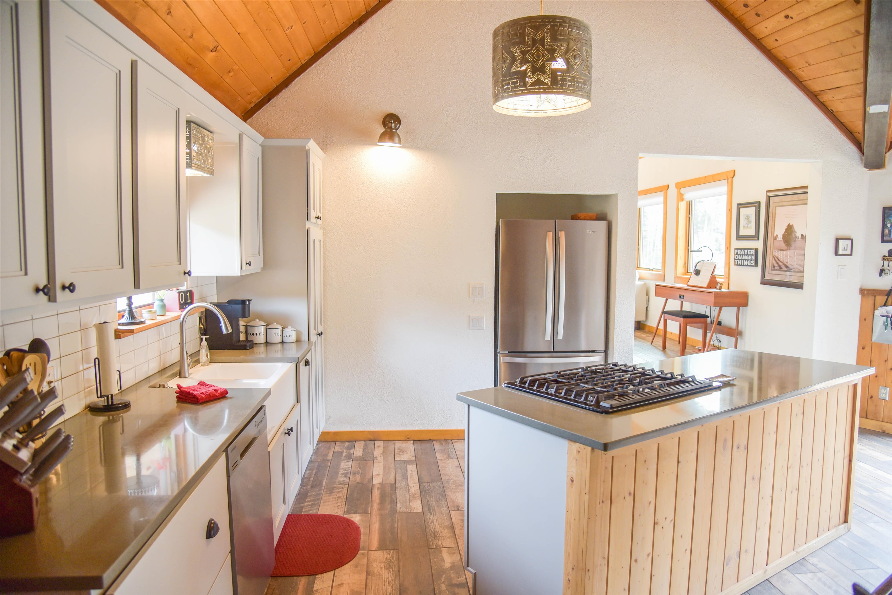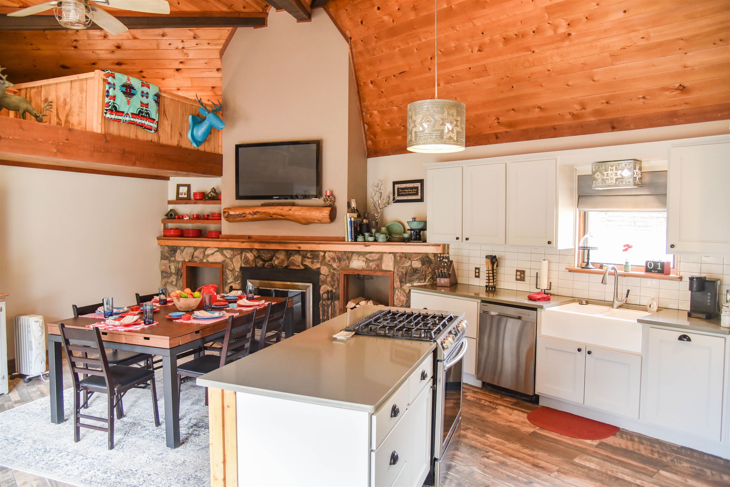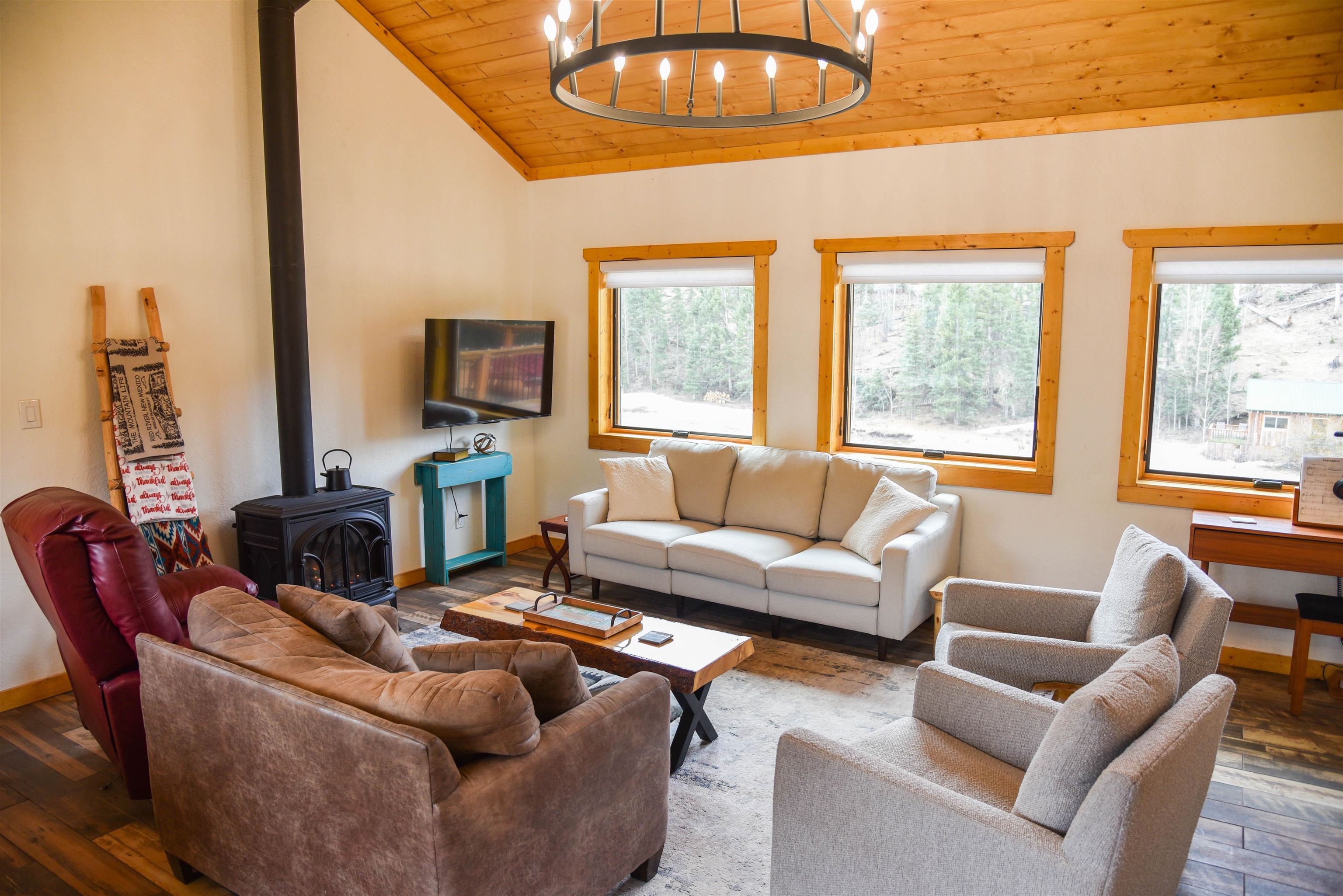 This fantastic mountain home is a perfect spot for enjoying the great indoors and outdoors! The original cabin was built in 1995. The current owner added on a gorgeous living room, guest room and a bath and a half bath. The original part of the house has also been partially renovated. This home is tastefully decorated, with all new appliances and porcelain tile flooring. There's a cozy little ladder-up loft with a queen size bed for additional sleeping. The home sits on a little over an acre and has views and hiking possibilities. The roof was replaced in 2022. There's also a storage building on the property and the well has a new pump. An extra bonus: there's a natural spring that runs on the property year 'round.