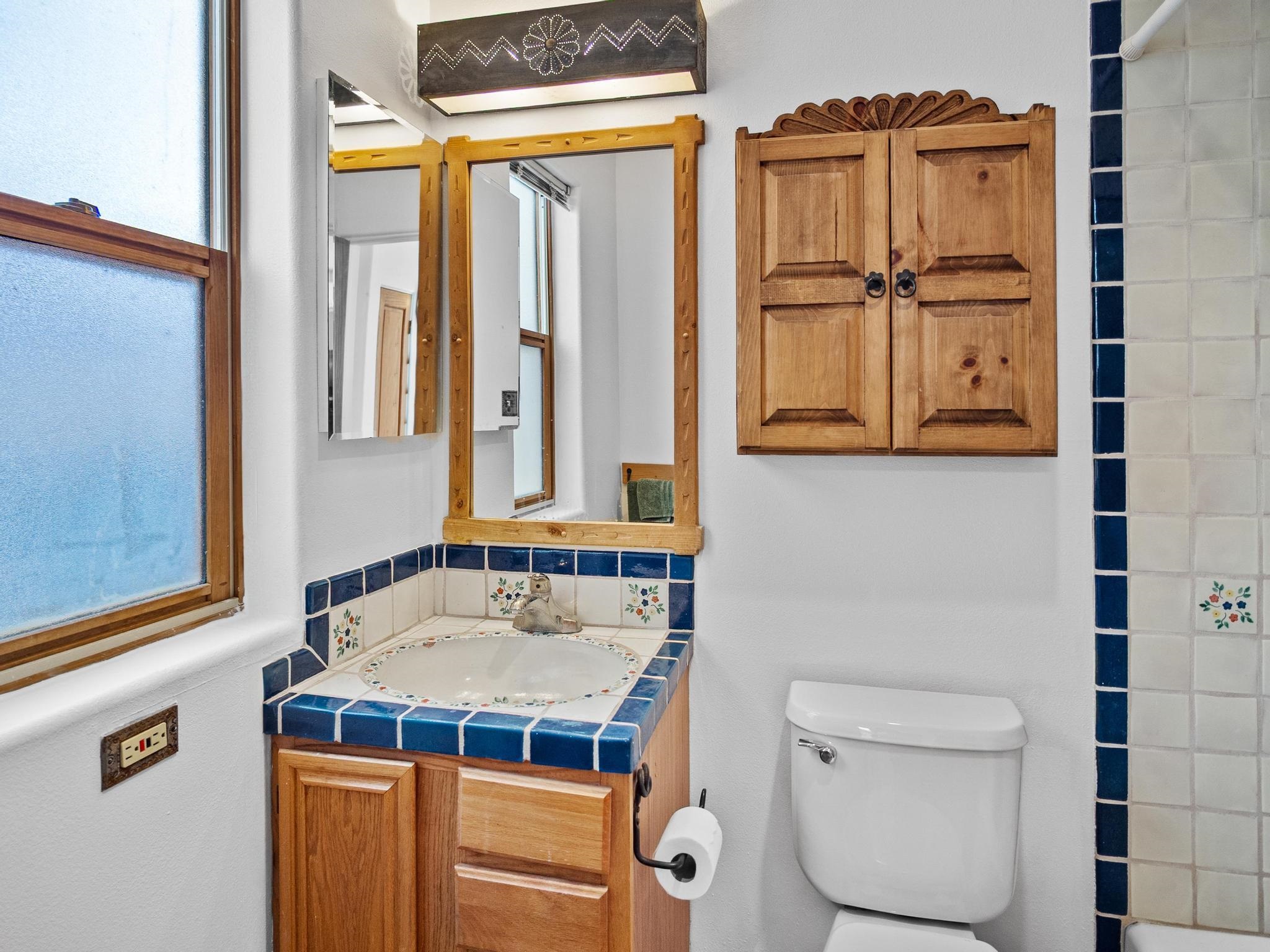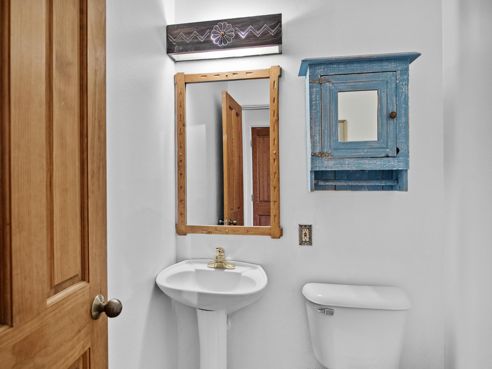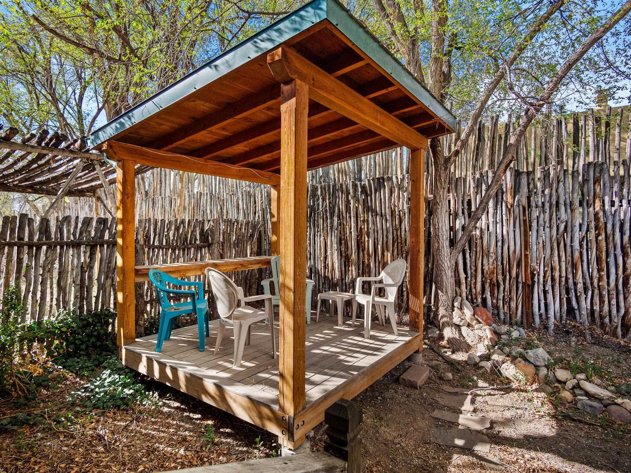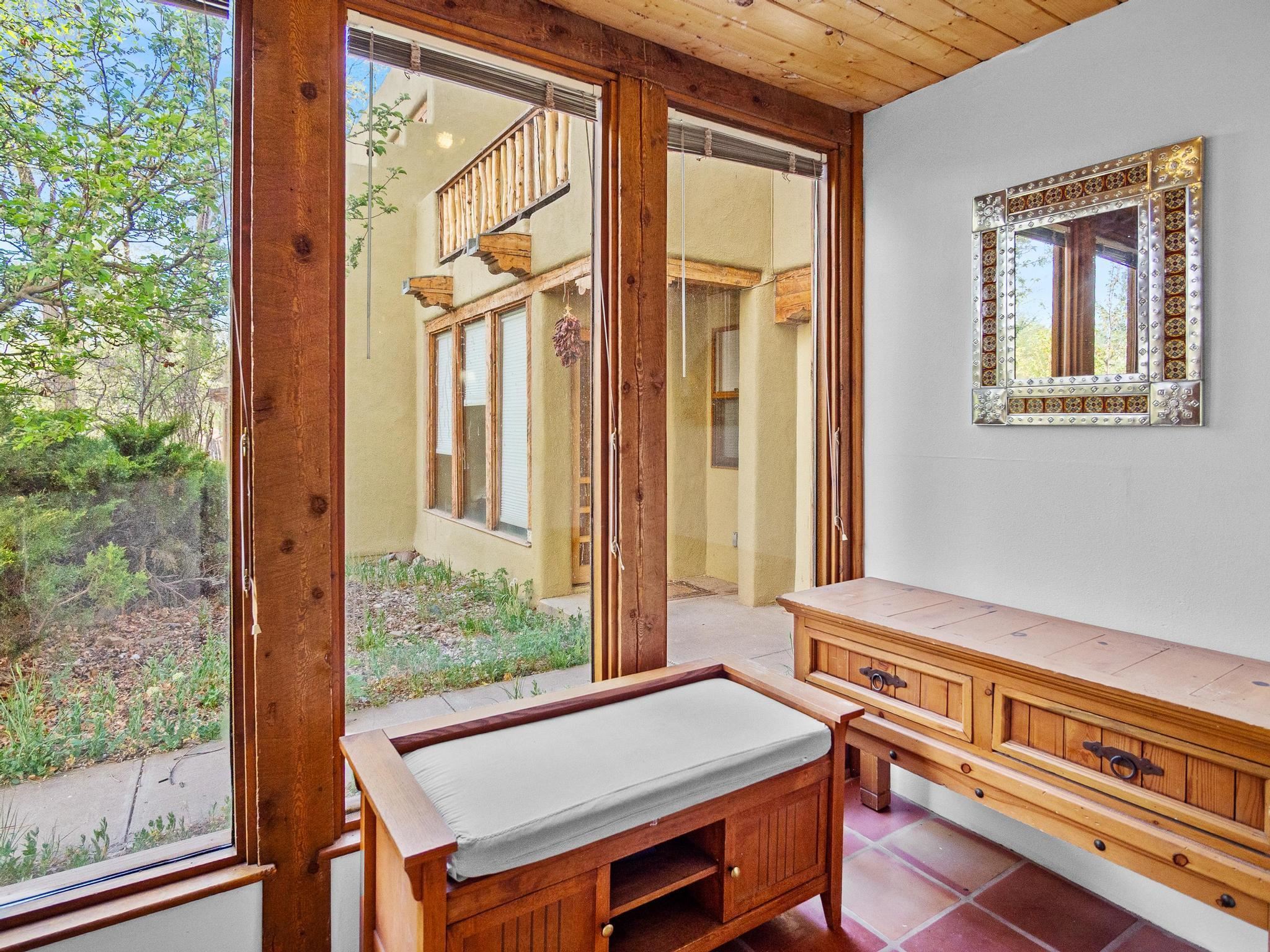 Welcome to La Casitas de Las Cruces - a charming two-level condo in the heart of Taos, NM, offering mountain-town living with comfort and style. The first floor features a spacious 457 sq ft layout including a welcoming foyer, light-filled living room, kitchen, and a convenient half bath. Upstairs, the second level adds 409 sq ft and includes the primary bedroom with private balcony access, a second bedroom, and a beautifully tiled full bath. Warm wood tones and Southwestern character shine throughout with tongue-and-groove ceilings accented by exposed beams, stunning tile work in the bathrooms, and abundant natural light from well-placed windows. Enjoy the outdoors year-round with a covered patio seating area--perfect for morning coffee or evening relaxation. Laundry facilities are available in the complex, and the property is being sold fully furnished. Whether you're looking for a full-time residence, weekend retreat, or investment opportunity, this condo offers it all in a sought-after Taos location.