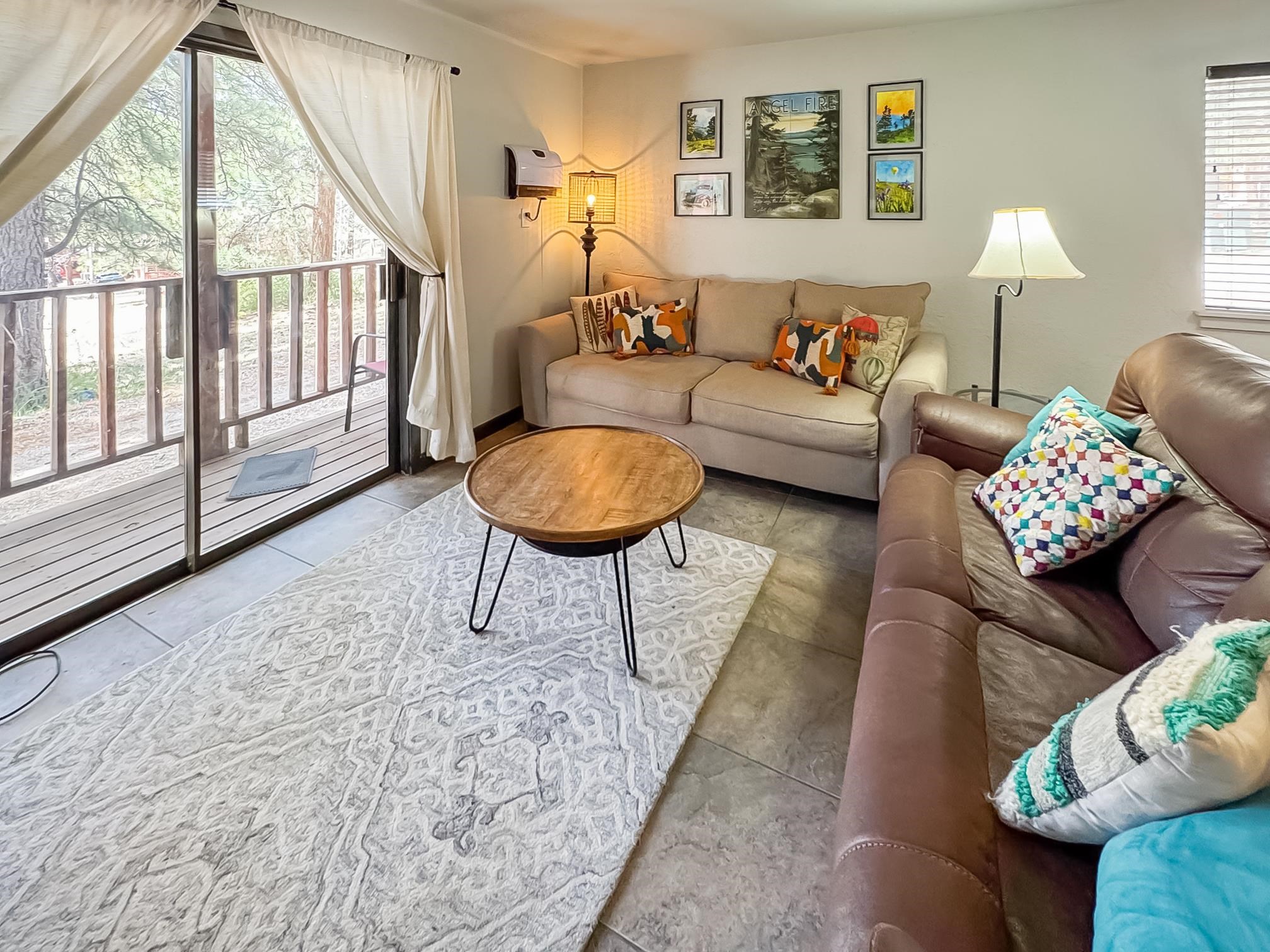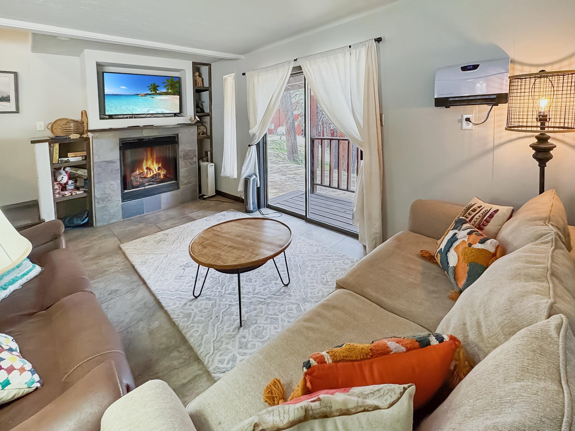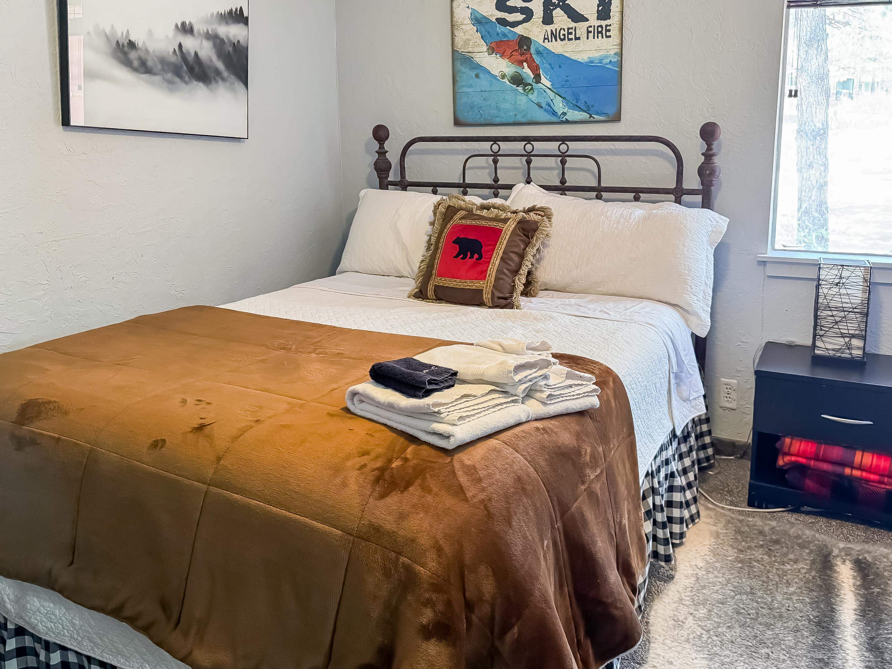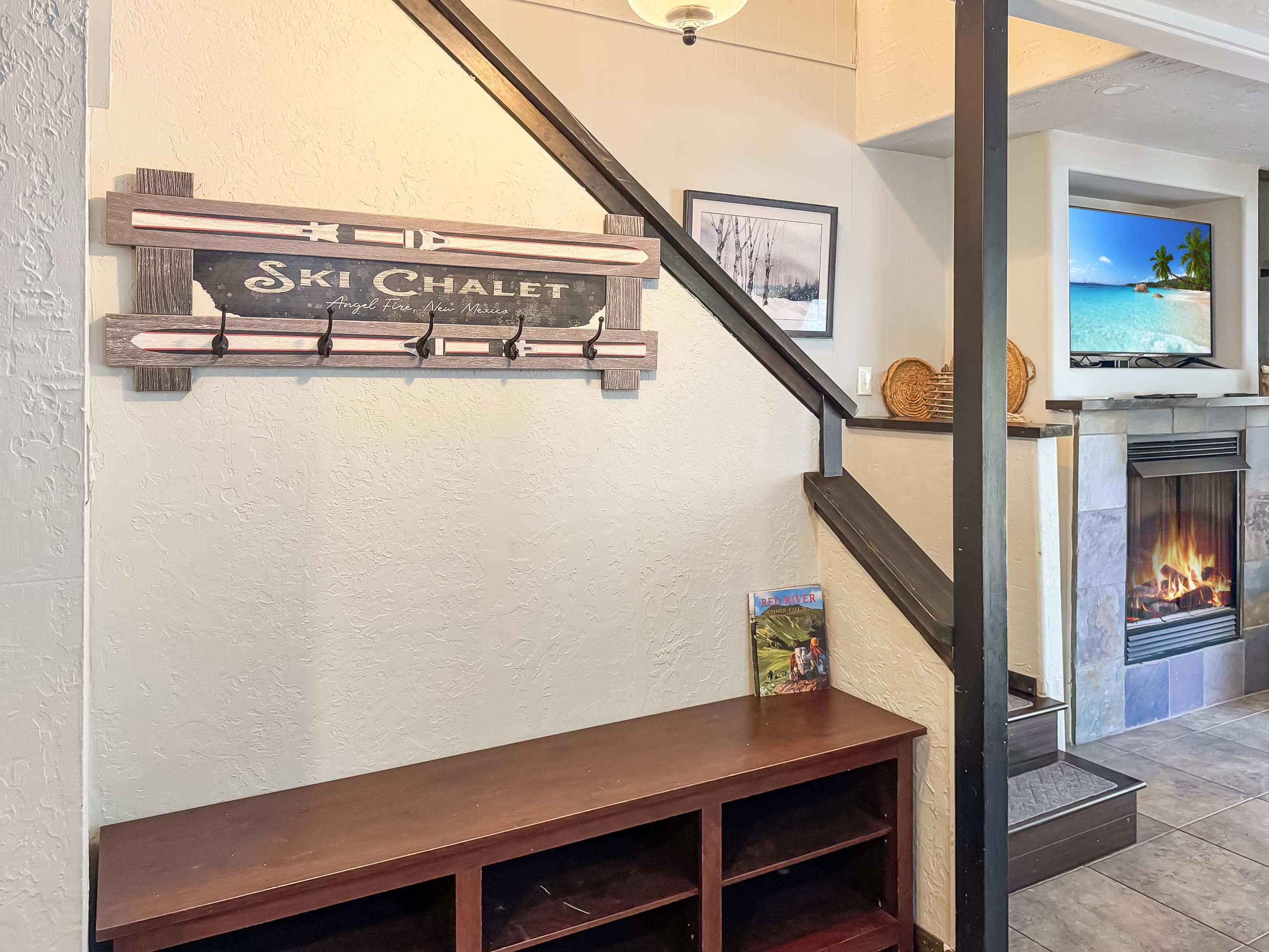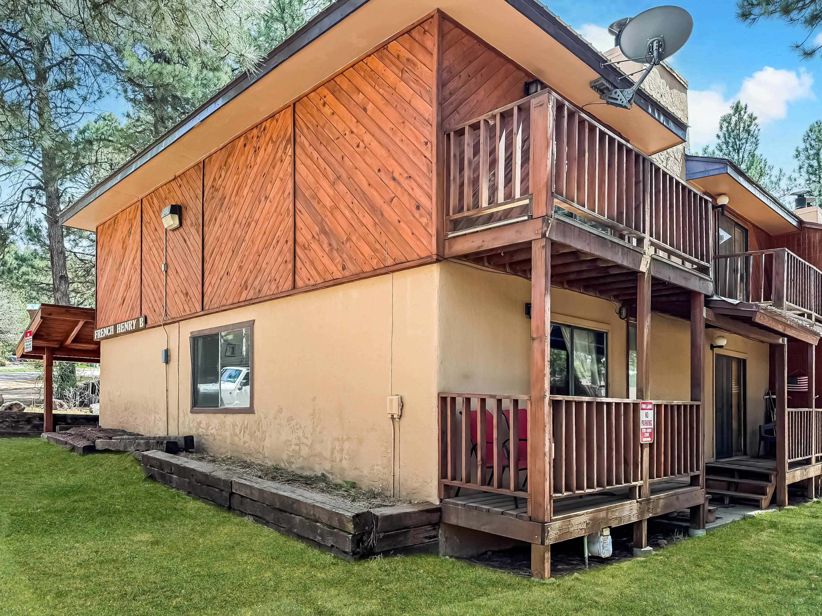 Look no further! This beautifully remodeled condo is a must-see unit. Less than a block from Angel Fire Resort, this unit is walkable to the ski/biking mountain, restaurants, and shops. This 2BR, 2.5BA end unit was remodeled in 2024. There is a gas fireplace, wall heaters and baseboard heaters to keep the unit warm and cozy. On the main level you'll find a spacious kitchen, living area, half bath, and a stackable washer & dryer. Upstairs are two spacious bedroom suites. The bedroom at the top op the stairs room has a walk in closet and beautifully updated bathroom. The other bedroom has a walk-in closet and private balcony. The covered front and back porches allow you to sit outside and enjoy nature. There are two storage closets one for you and one for your renters. Rental history available upon request.