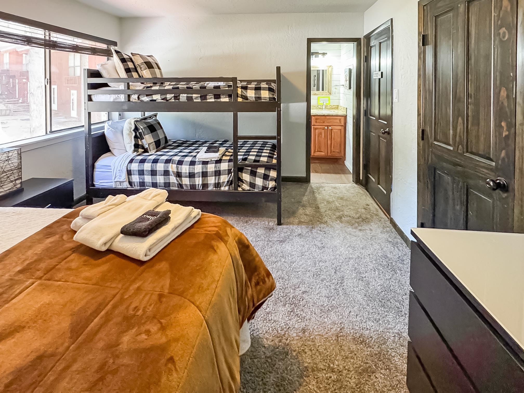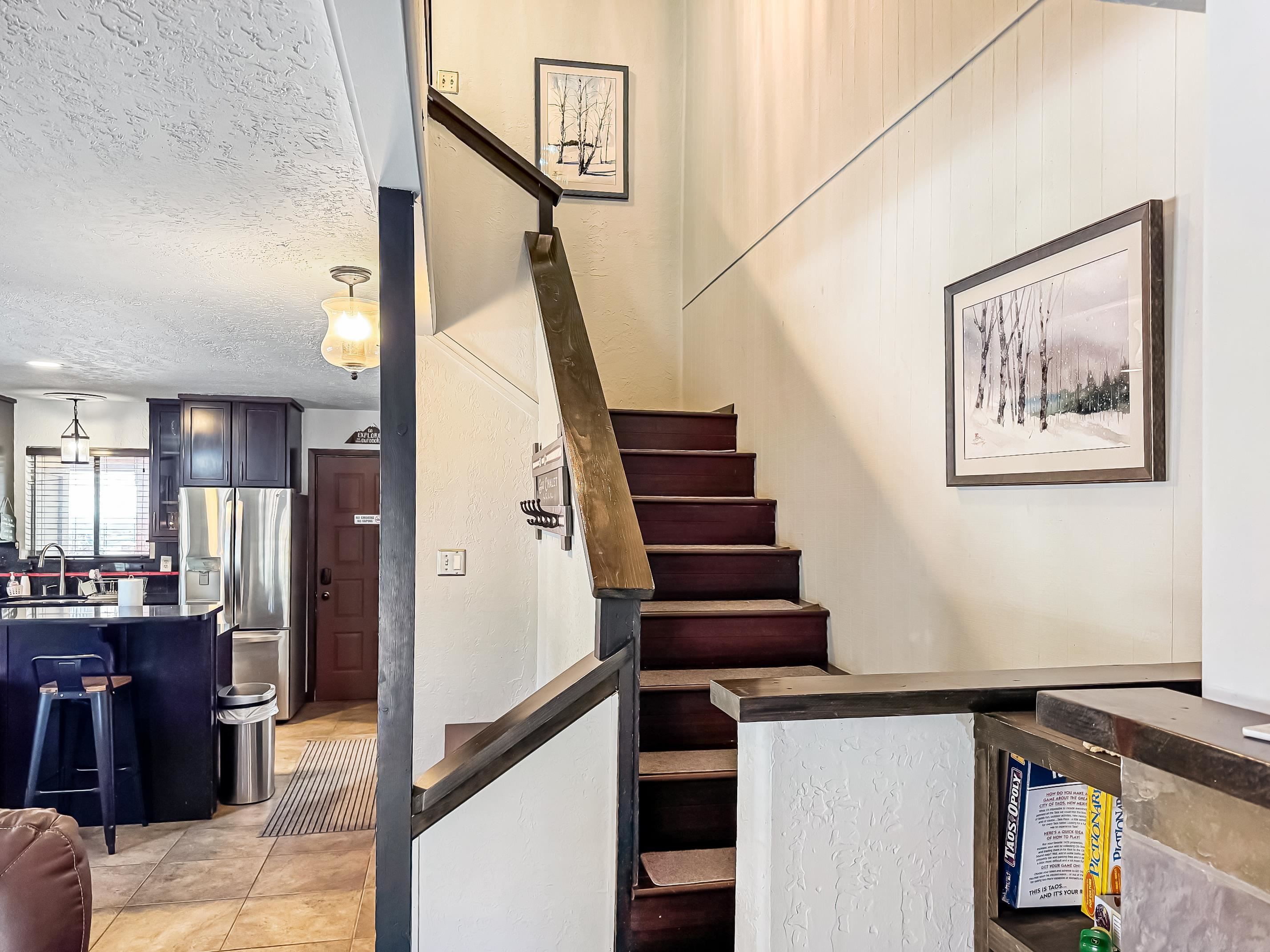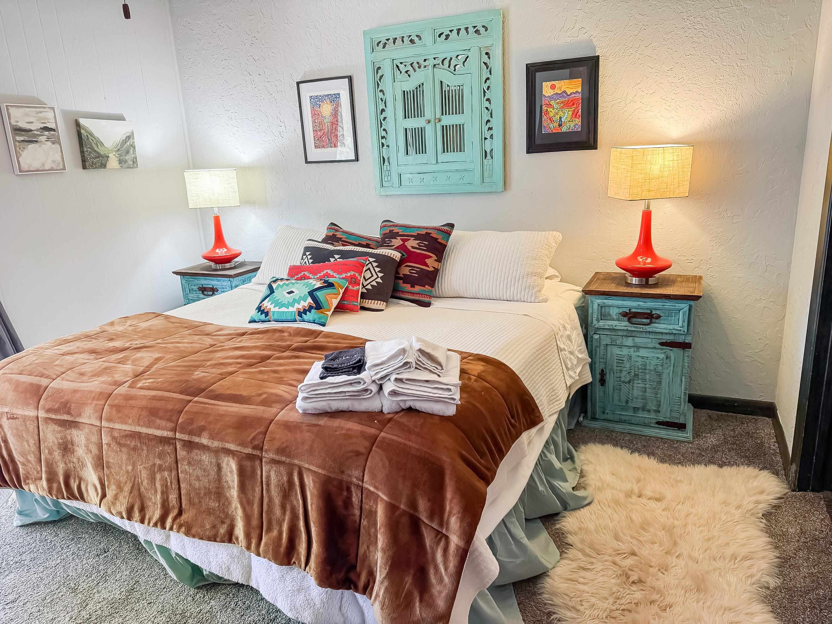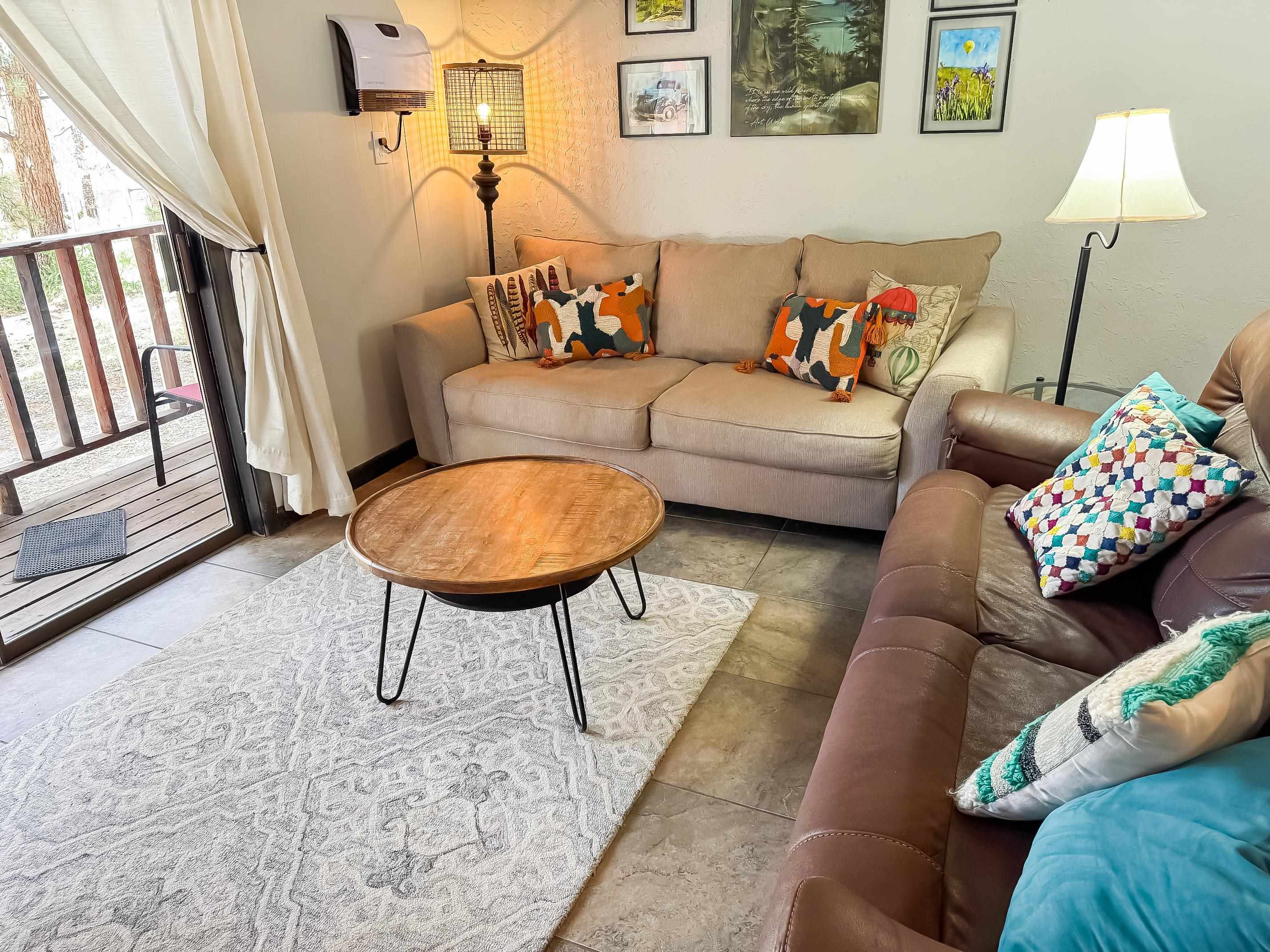 Look no further! This beautifully remodeled condo is a must-see unit. Less than a block from Angel Fire Resort, this unit is walkable to the ski/biking mountain, restaurants, and shops. This 2BR, 2.5BA end unit was remodeled in 2024. There is a gas fireplace, wall heaters and baseboard heaters to keep the unit warm and cozy. On the main level you'll find a spacious kitchen, living area, half bath, and a stackable washer & dryer. Upstairs are two spacious bedroom suites. The bedroom at the top op the stairs room has a walk in closet and beautifully updated bathroom. The other bedroom has a walk-in closet and private balcony. The covered front and back porches allow you to sit outside and enjoy nature. There are two storage closets one for you and one for your renters. Rental history available upon request.