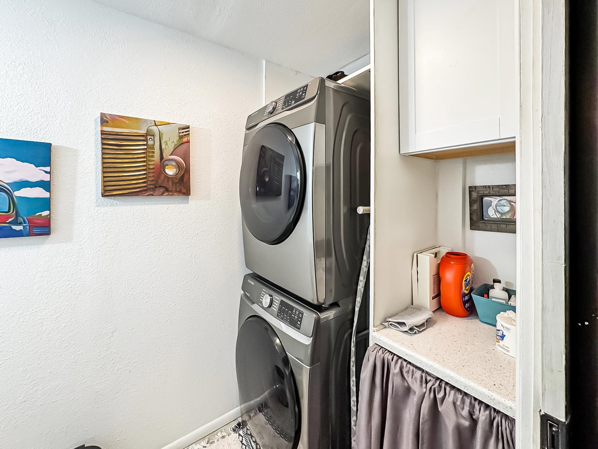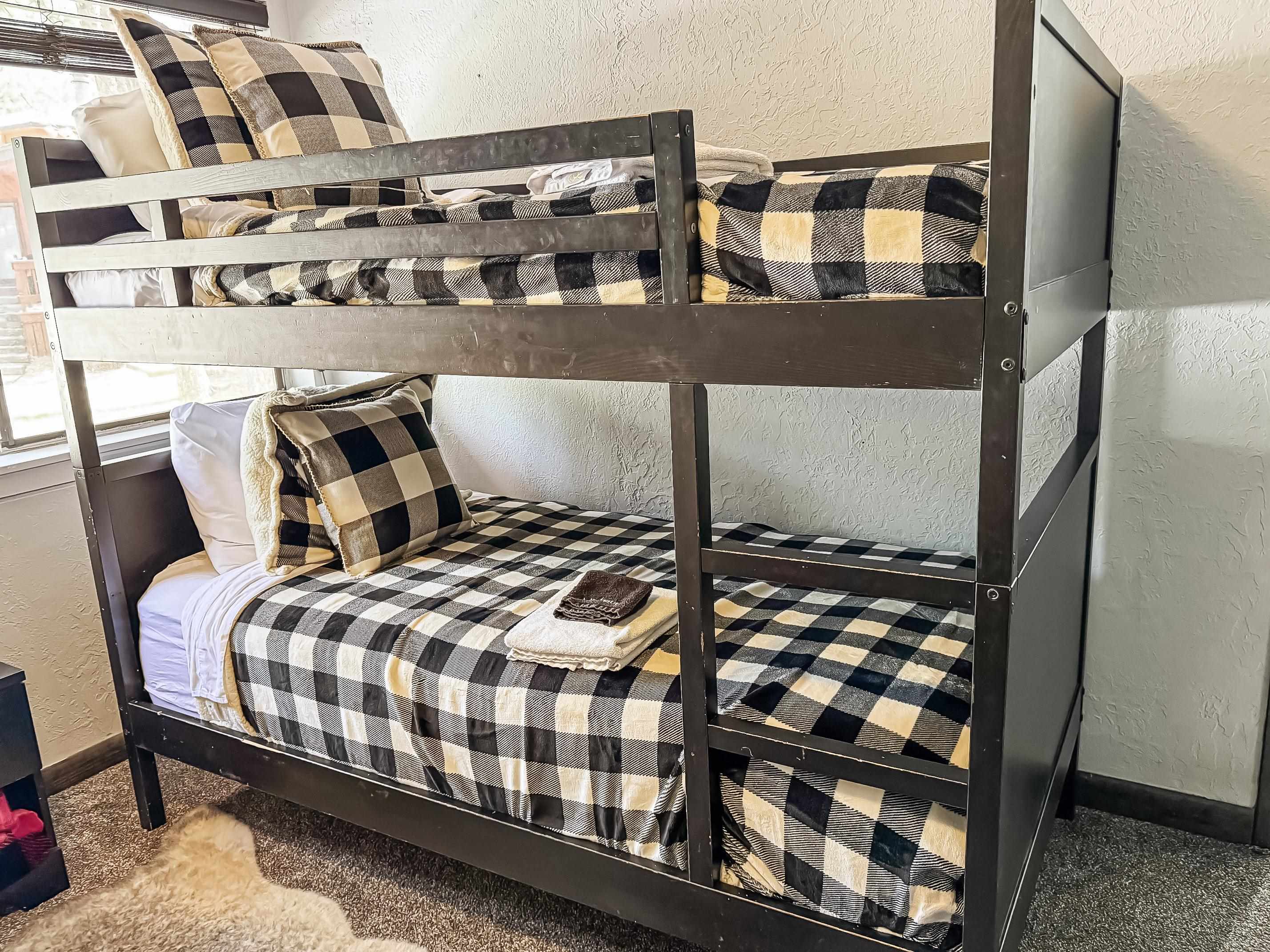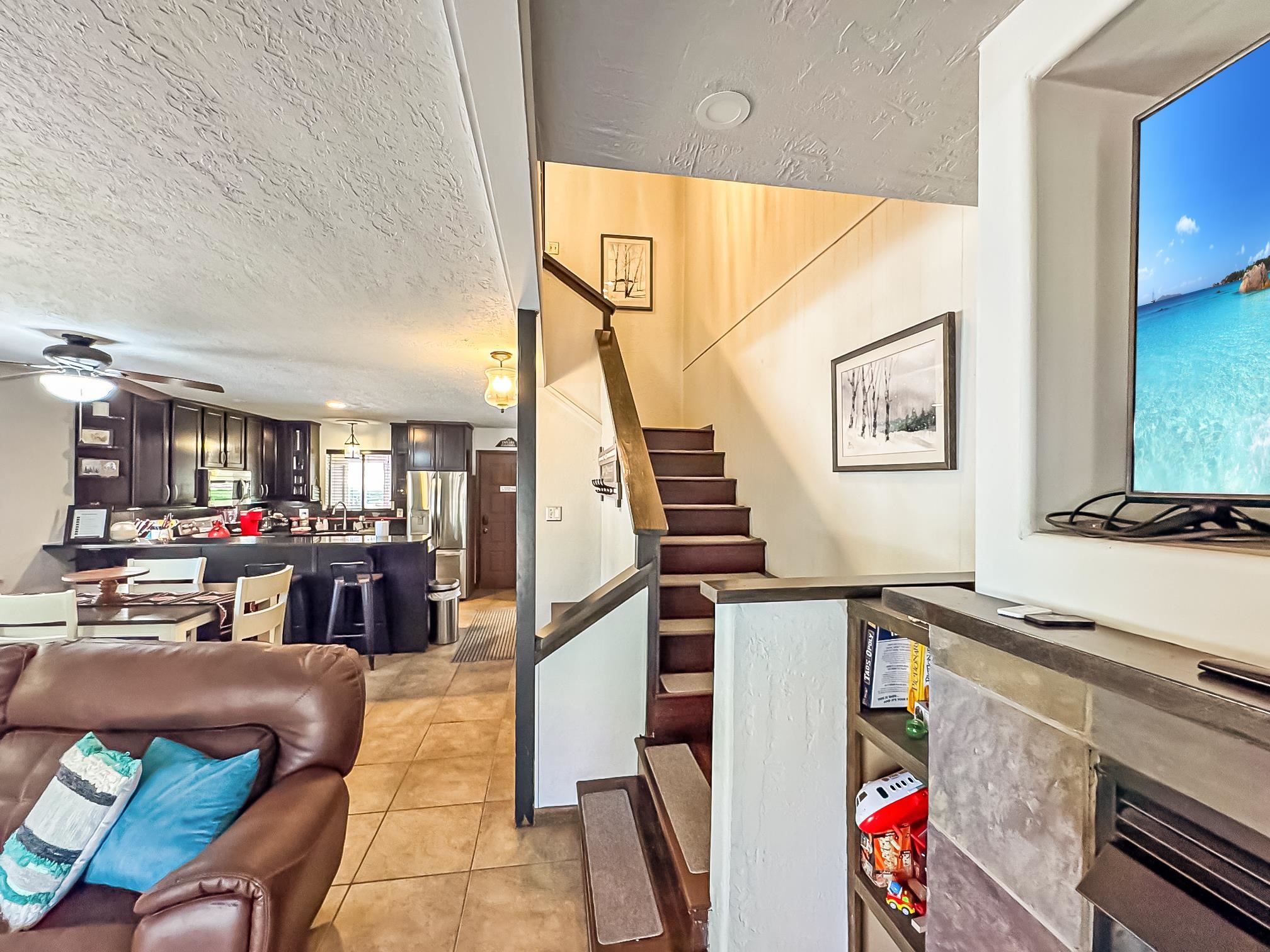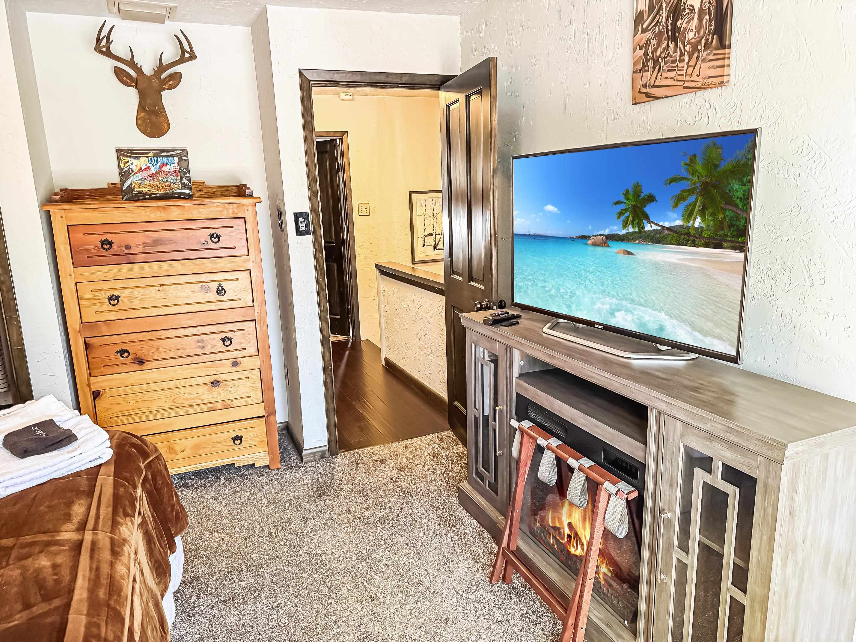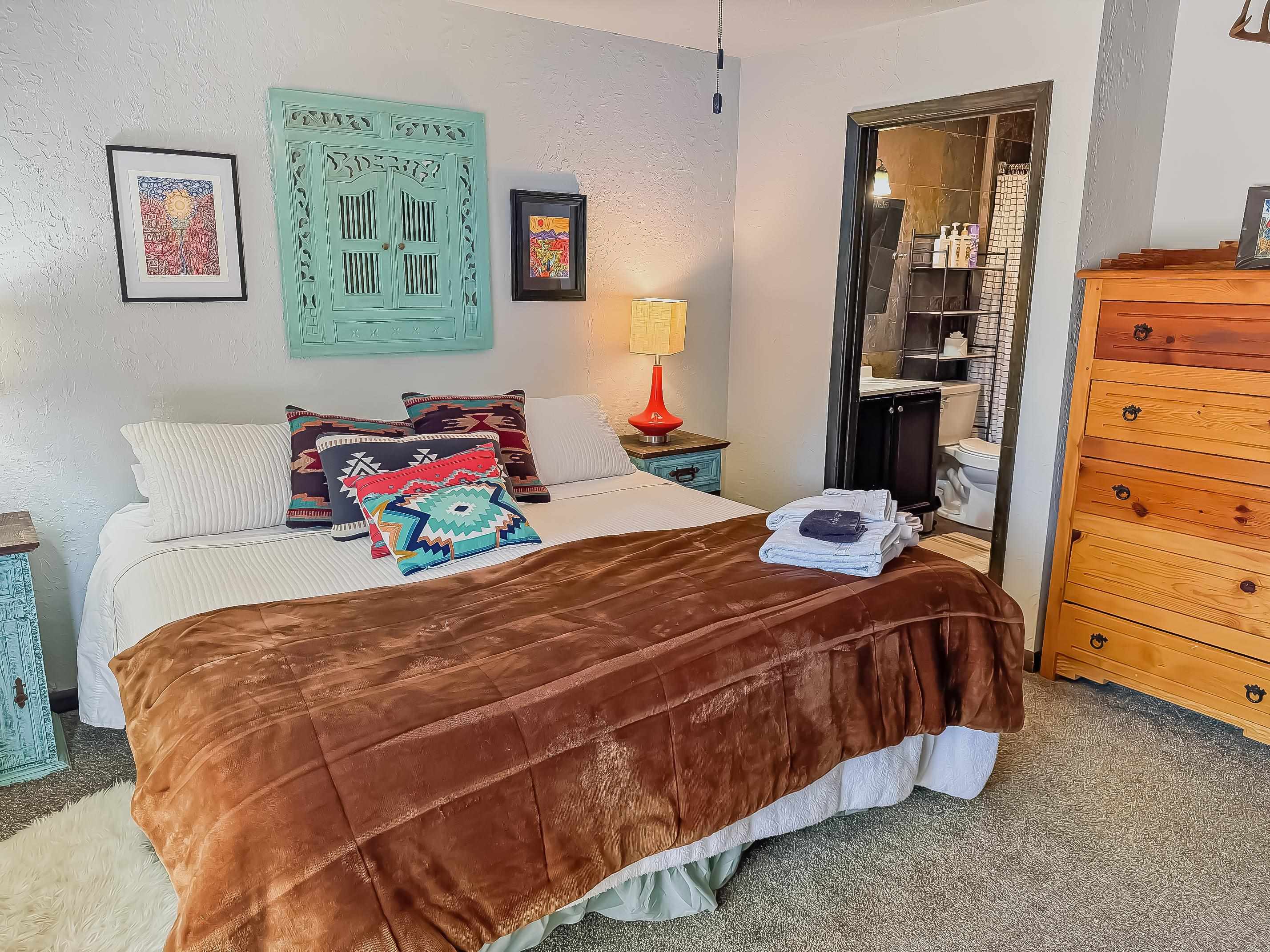 Look no further! This beautifully remodeled condo is a must-see unit. Less than a block from Angel Fire Resort, this unit is walkable to the ski/biking mountain, restaurants, and shops. This 2BR, 2.5BA end unit was remodeled in 2024. There is a gas fireplace, wall heaters and baseboard heaters to keep the unit warm and cozy. On the main level you'll find a spacious kitchen, living area, half bath, and a stackable washer & dryer. Upstairs are two spacious bedroom suites. The bedroom at the top op the stairs room has a walk in closet and beautifully updated bathroom. The other bedroom has a walk-in closet and private balcony. The covered front and back porches allow you to sit outside and enjoy nature. There are two storage closets one for you and one for your renters. Rental history available upon request.