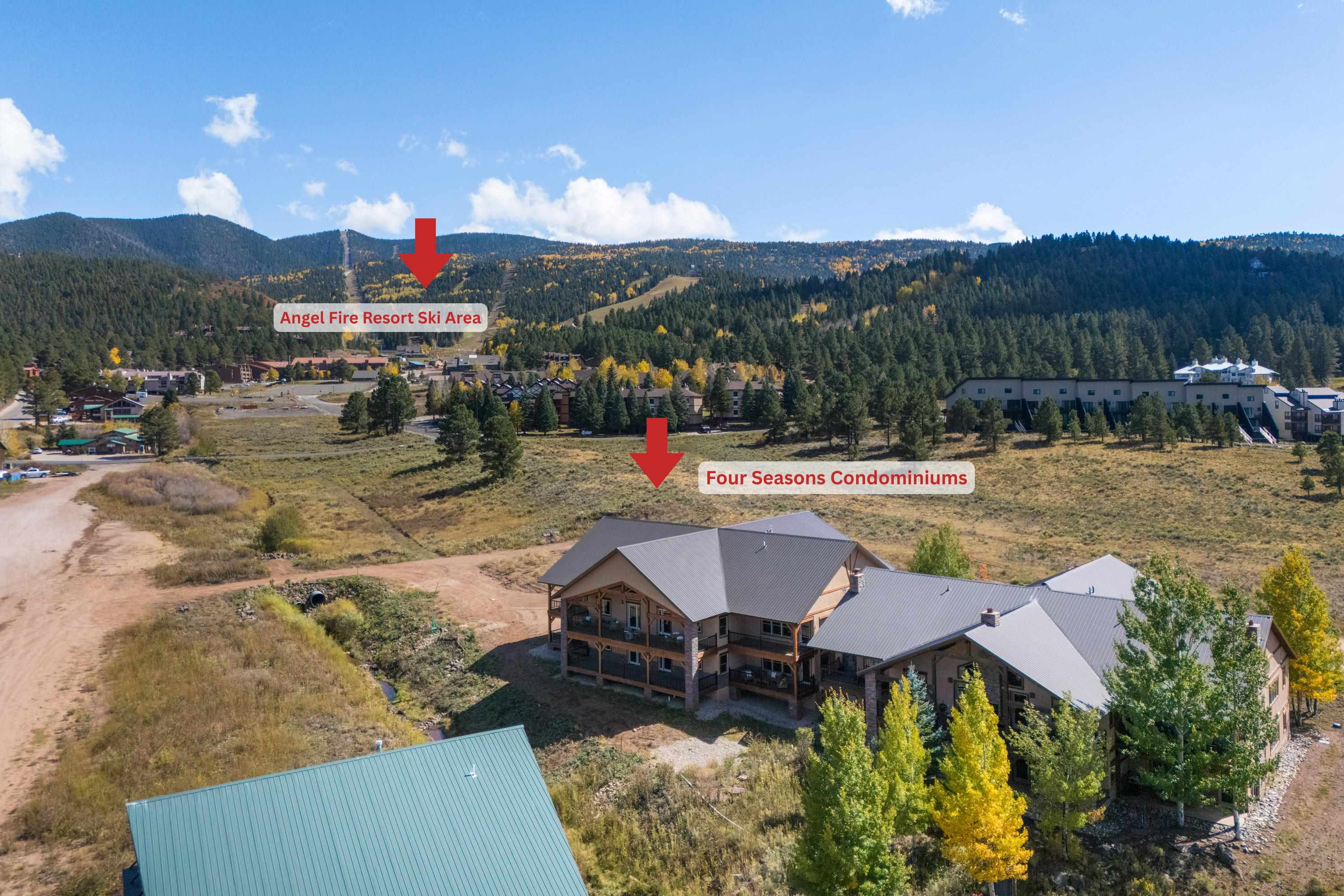 Newly built, beautifully designed with a mountain modern aesthetic, combining stucco and stone finished exterior with a cozy interior for the perfect blend and comfort is ready to be yours! Enjoy the breathtaking surrounding mountains while sipping your hot cocoa next to the gas fireplace or outside on the covered porch. One-Story layouts make these condos accessible and convenient, catering to those looking for easy, low-maintenance living. These spacious 3 bedroom, 2 bath, with a soaking tub in the primary bath are a rare find in this condo market, so get yours today! Large 438 SF, covered deck to enjoy the outdoors! Centrally located in the heart of Angel Fire, this condo gives you fast and easy access to all the amenities and activities Angel Fire has to offer.