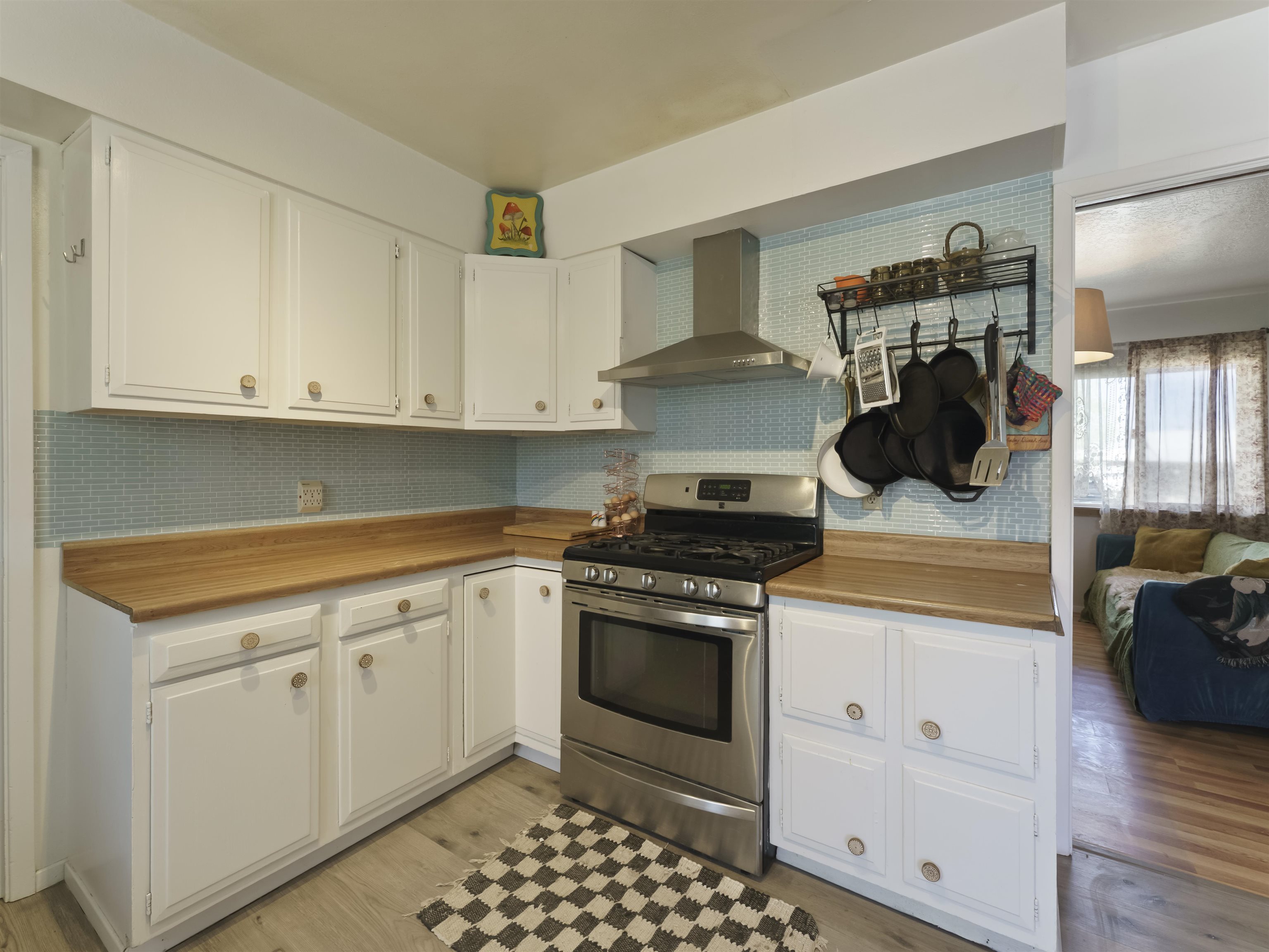 Finally a livable family home for under $400,000! Quiet street in the middle of town, close to schools, shopping, movies, etc. The large master bedroom has its own little bathroom with a shower. There are two more bedrooms, and a larger bath with a bath tub. Living room has an efficient wood burning stove. The kitchen has a newer dishwasher and gas stove, and plenty of storage. The laundry room comes with washer and dryer, and has closets for extra storage. With mature fruit trees, lilacs, peonies, tulips, iris's and plenty of room to add to the garden, this lovingly cared for and improved upon gem is move in ready and waiting for you!