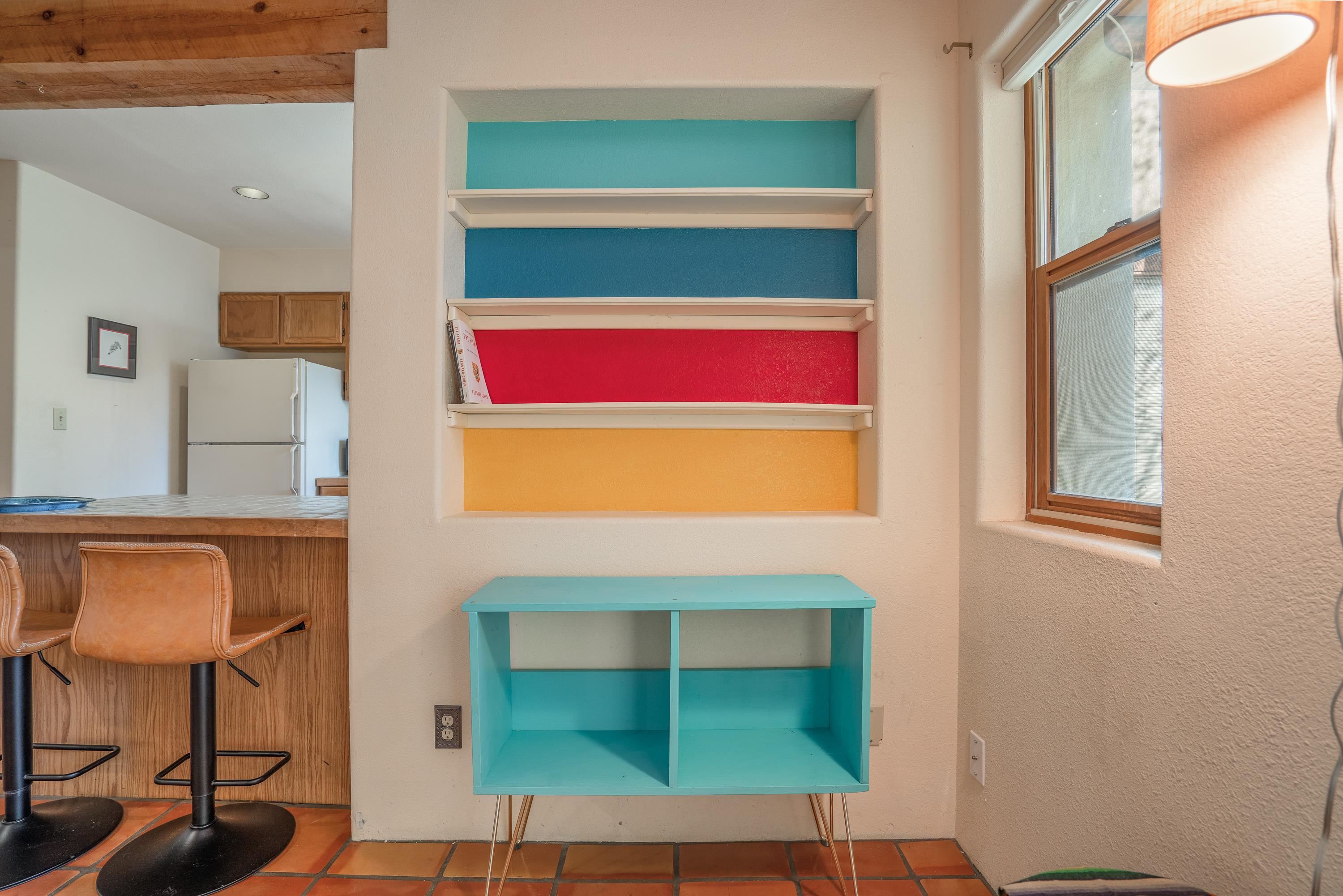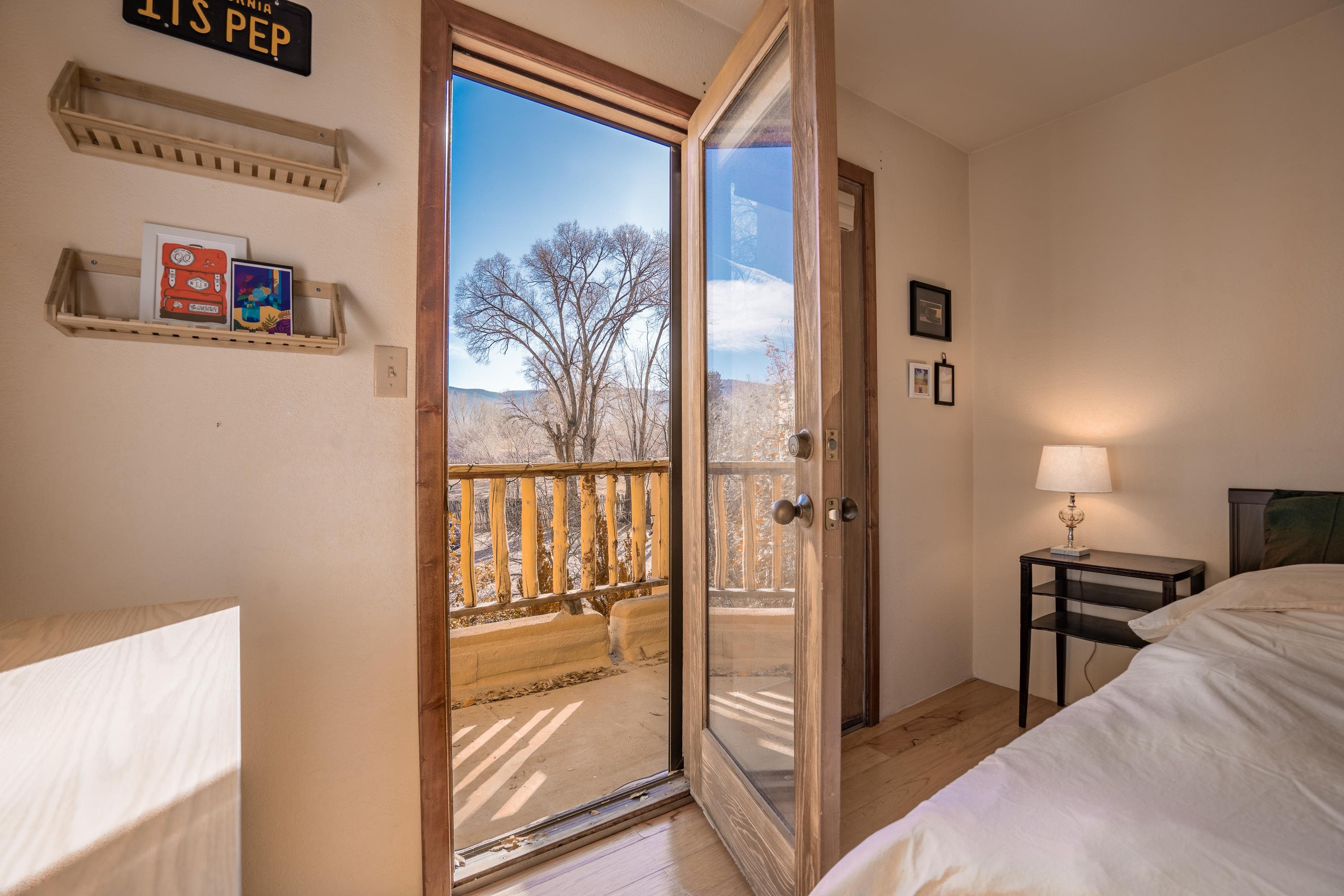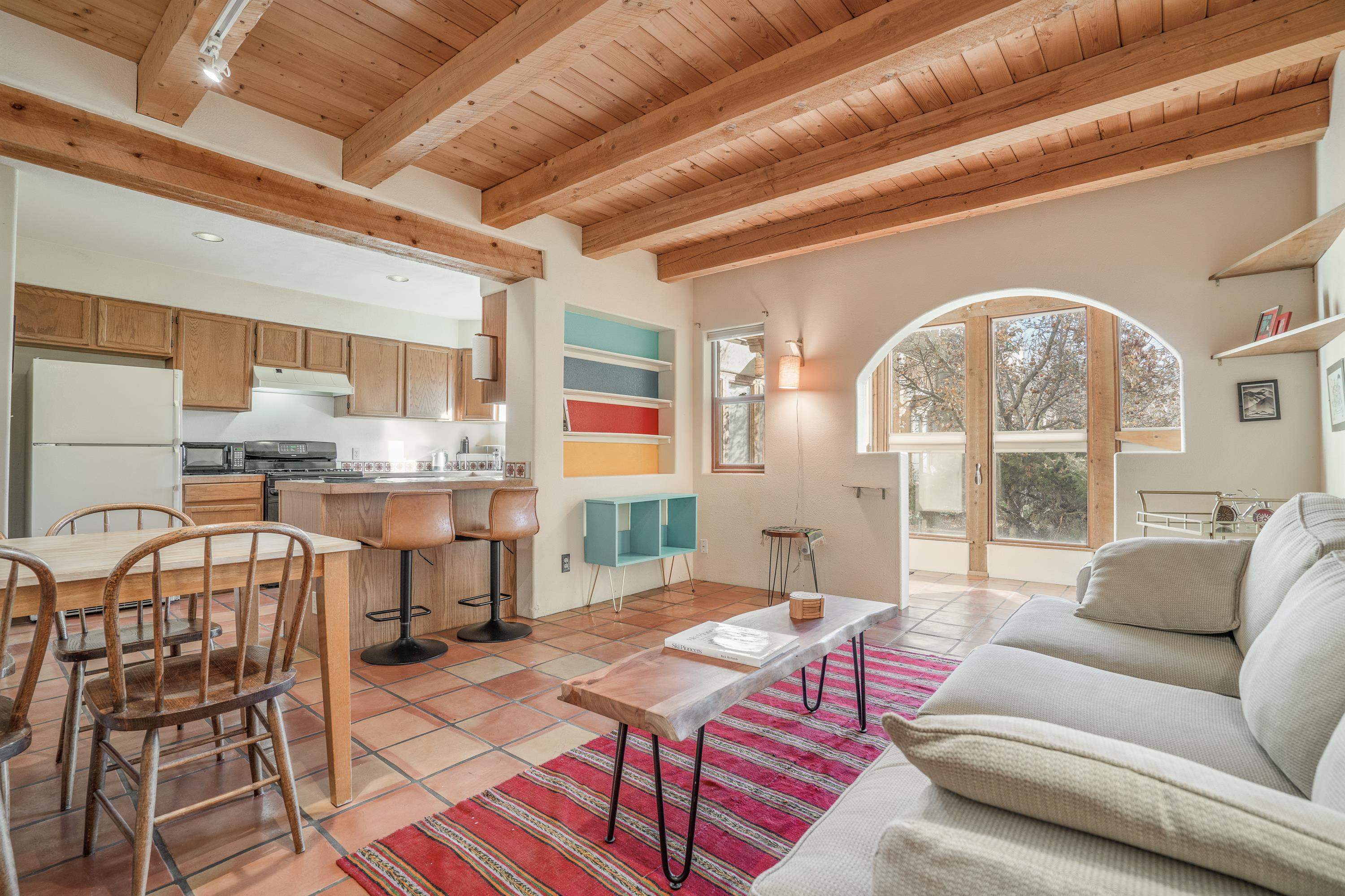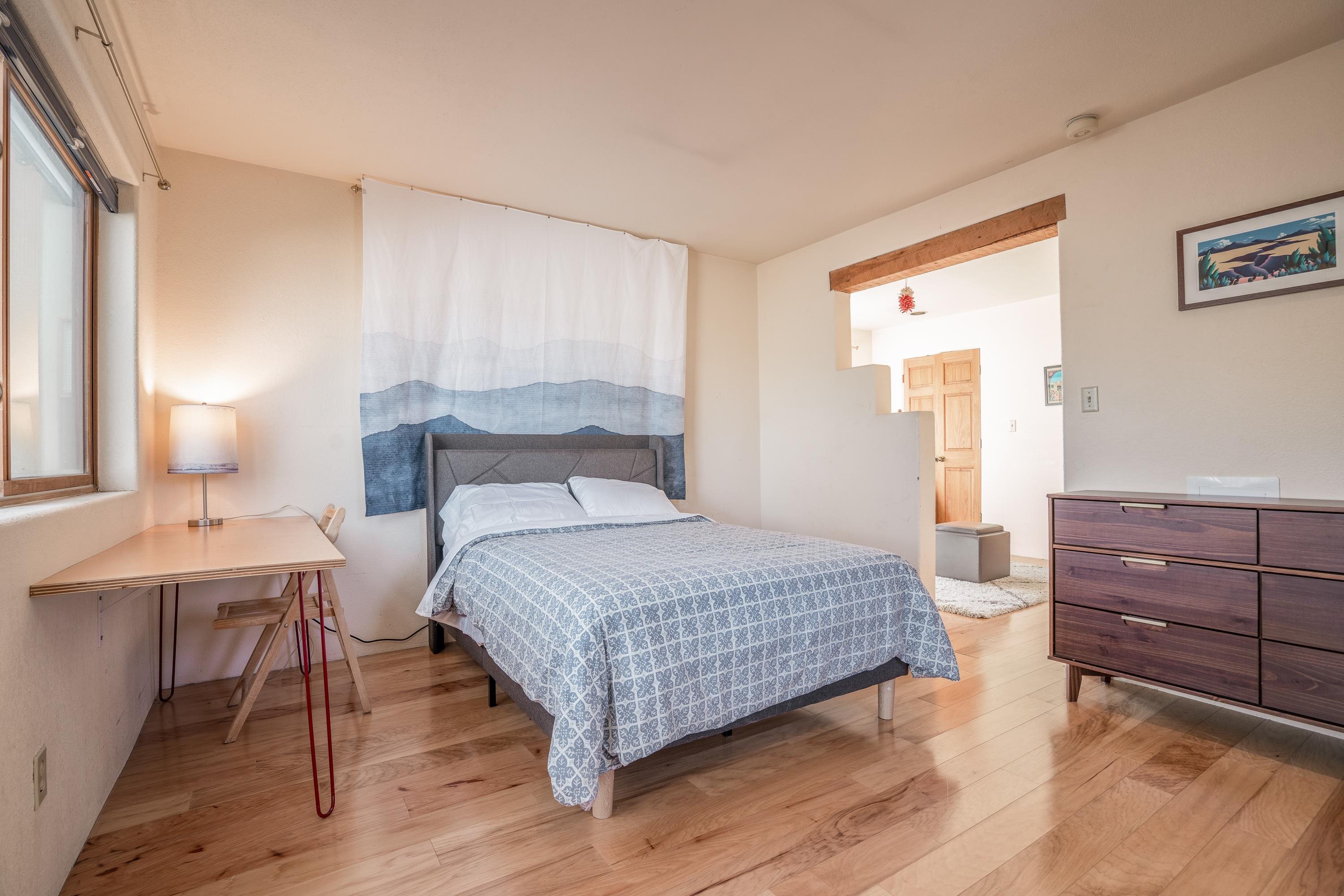 On desirable Las Cruces Street this charming, 2 bed, 1 and a half bath in-town condo at 1013 sq ft is the largest in the complex. Located in a shady quiet corner and yet within pleasant walking distance to Taos plaza, the shops, the eateries, the museums, and the galleries that surround and to nearby Kit Carson Park, this bright and cheery 1013 sq ft condo is easy to own as your pad, a pied a terre, or a vacation home. Enter through a sunny foyer into an open plan living/kitchen with powder room (half bath); upstairs are two bedrooms, a full bath, a bonus office or media room and a front and back deck plus a back yard awaiting your garden. The reasonable HOA (for 7 units) covers building maintenance, building insurance, water, sewer, trash, landscape maintenance and snow removal. A shared laundry and ample parking make for convenient in-town living.