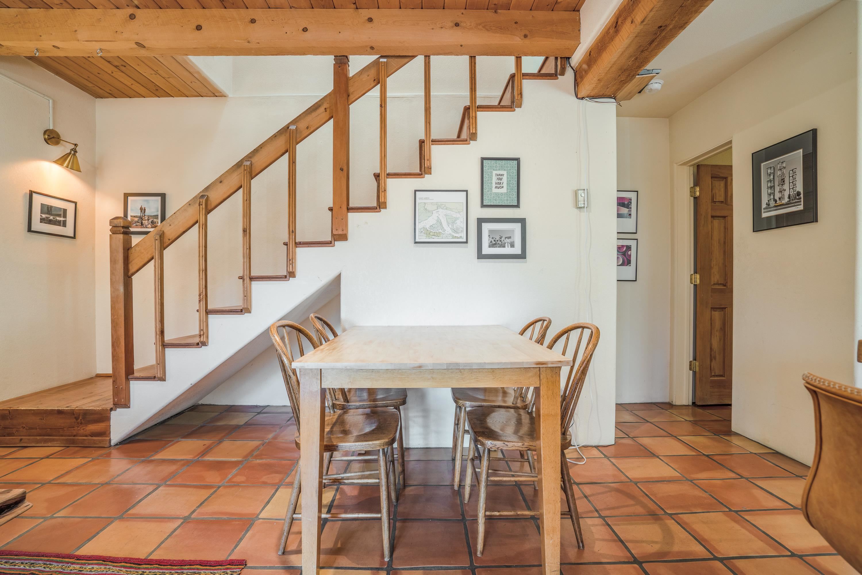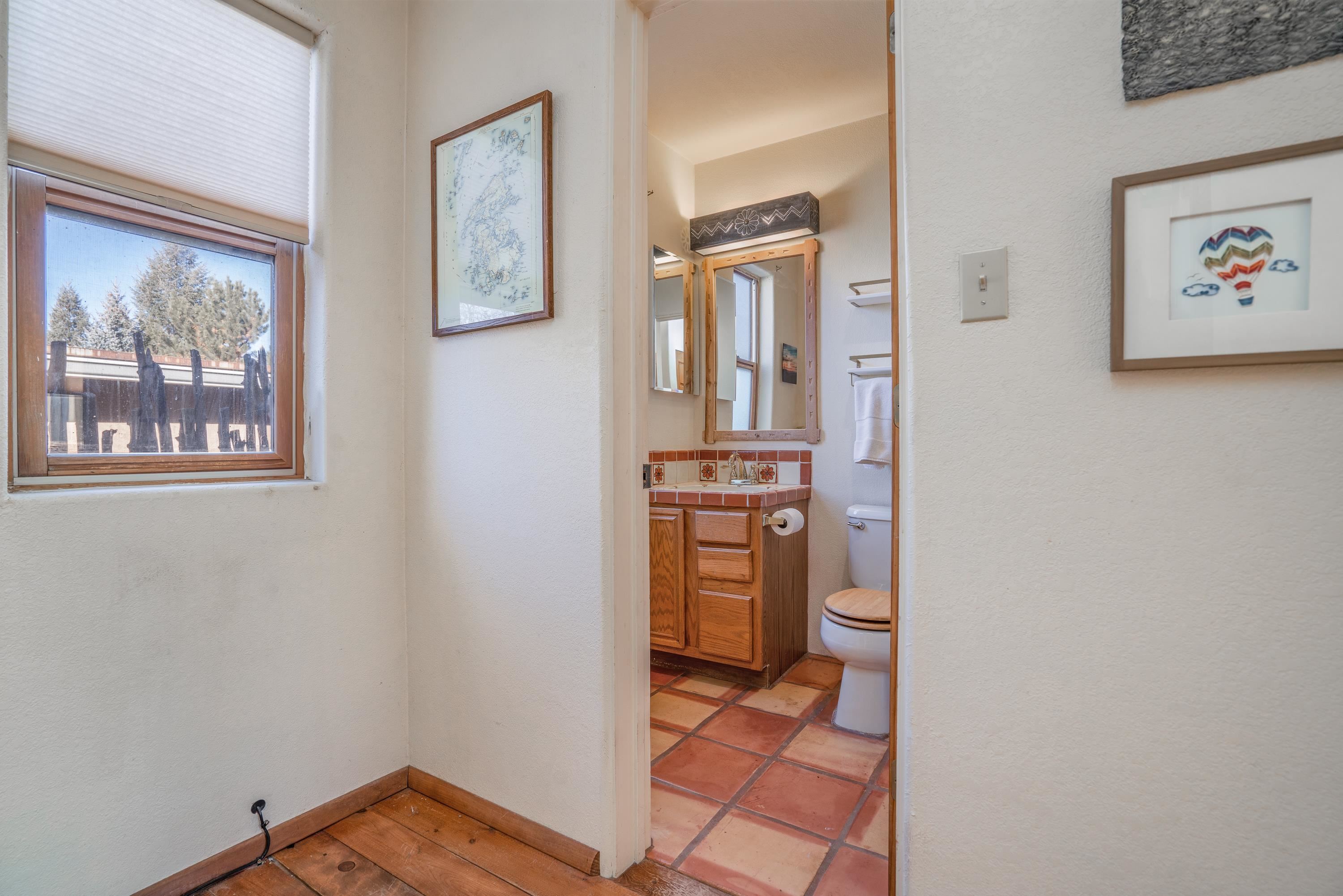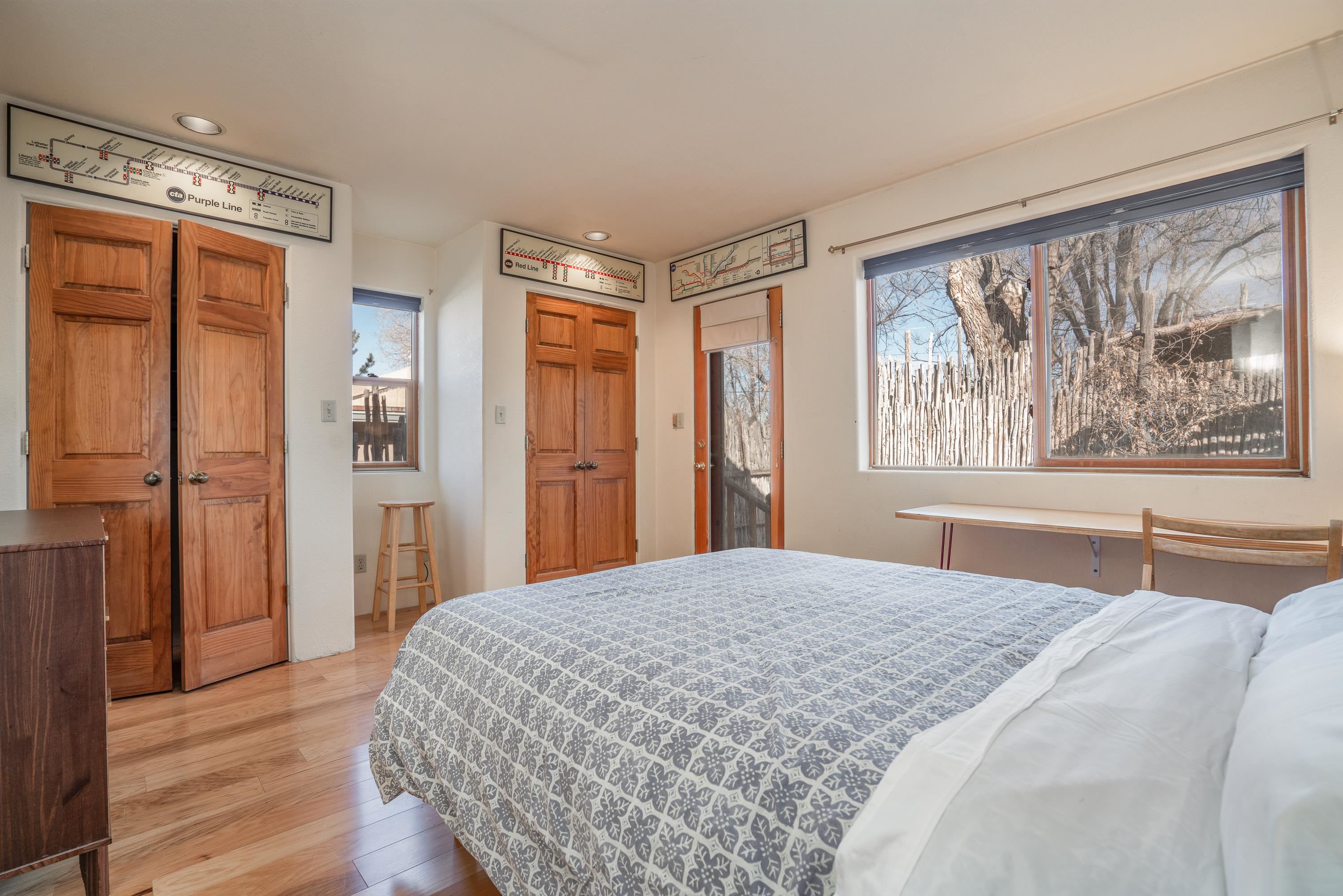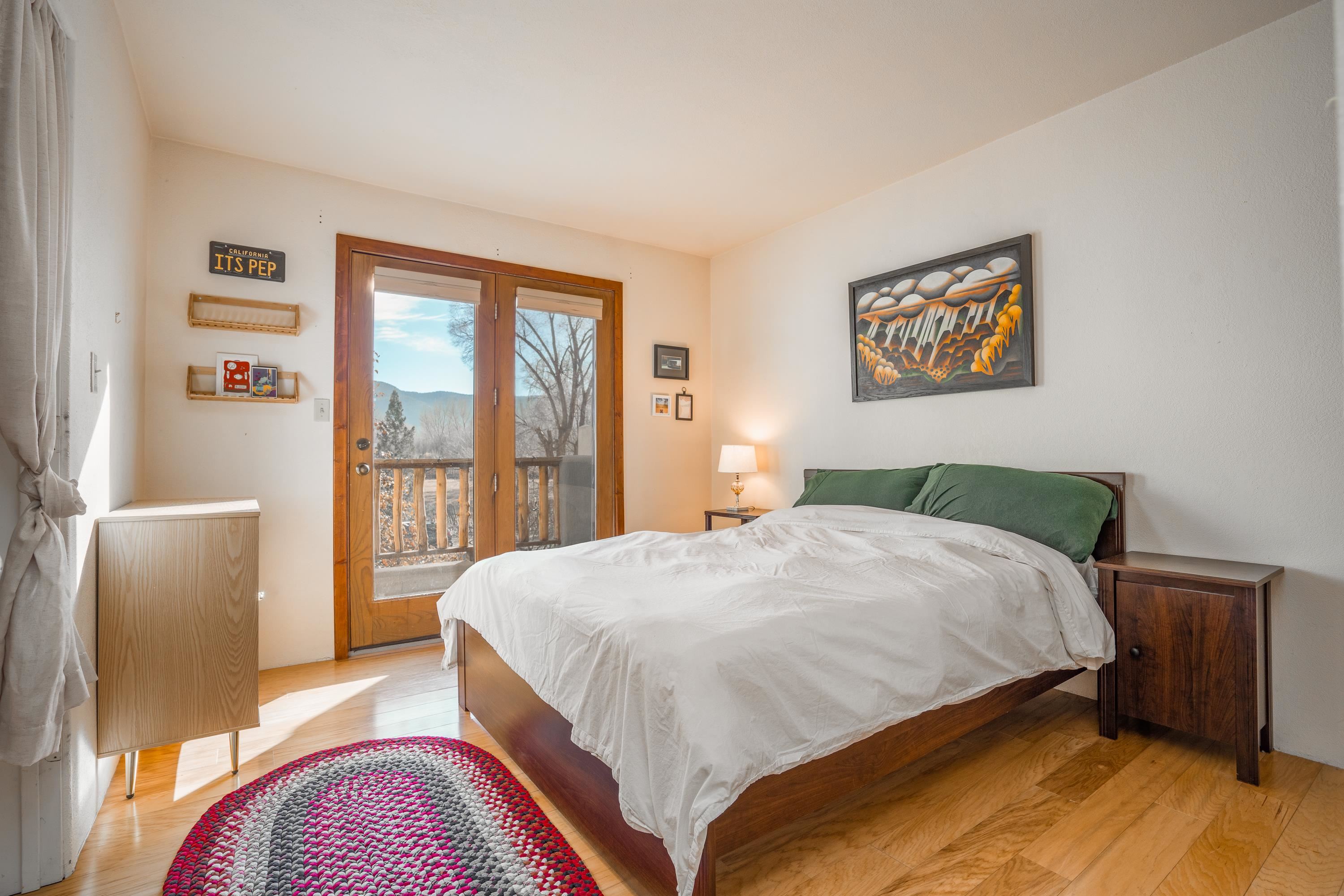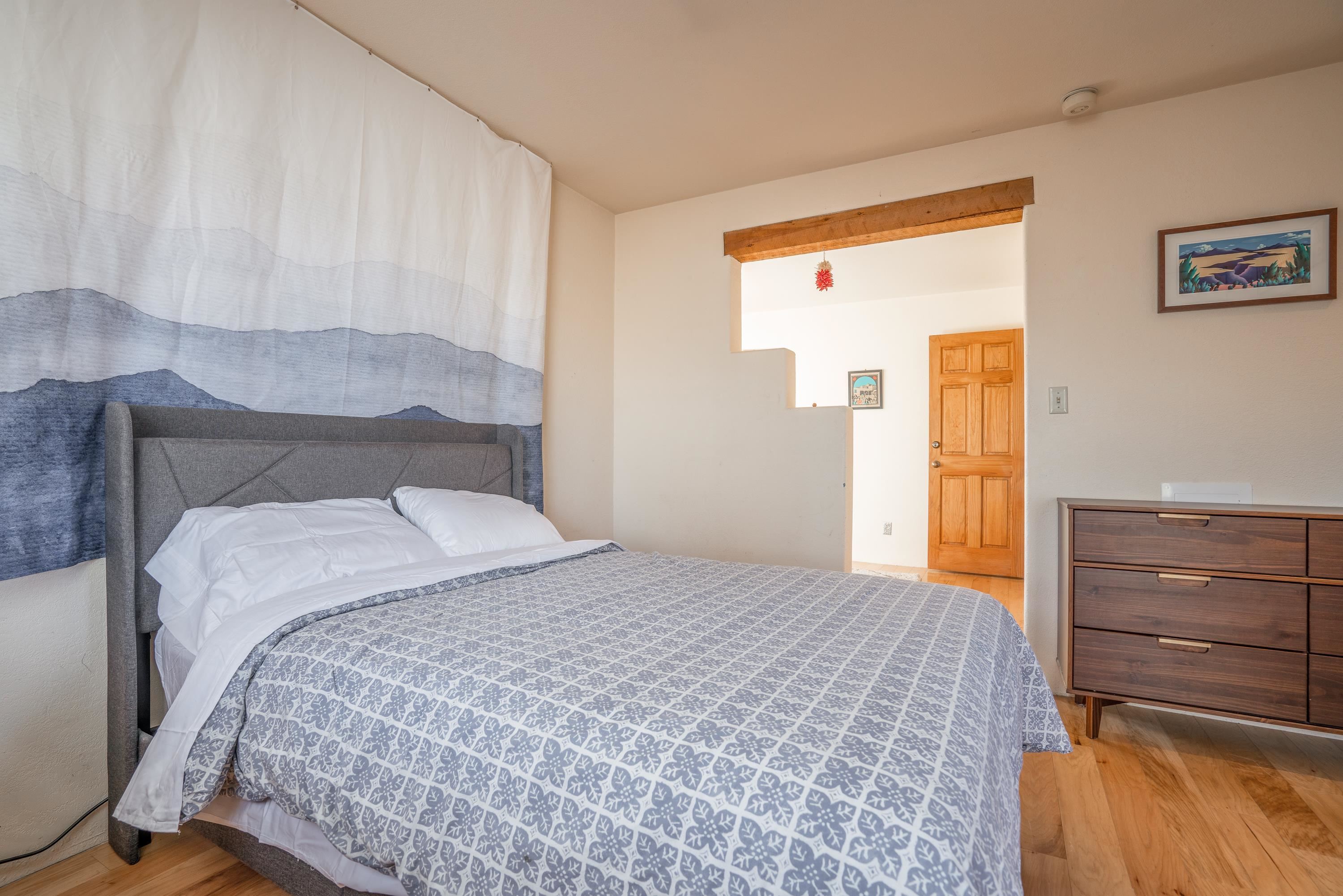 On desirable Las Cruces Street this charming, 2 bed, 1 and a half bath in-town condo at 1013 sq ft is the largest in the complex. Located in a shady quiet corner and yet within pleasant walking distance to Taos plaza, the shops, the eateries, the museums, and the galleries that surround and to nearby Kit Carson Park, this bright and cheery 1013 sq ft condo is easy to own as your pad, a pied a terre, or a vacation home. Enter through a sunny foyer into an open plan living/kitchen with powder room (half bath); upstairs are two bedrooms, a full bath, a bonus office or media room and a front and back deck plus a back yard awaiting your garden. The reasonable HOA (for 7 units) covers building maintenance, building insurance, water, sewer, trash, landscape maintenance and snow removal. A shared laundry and ample parking make for convenient in-town living.