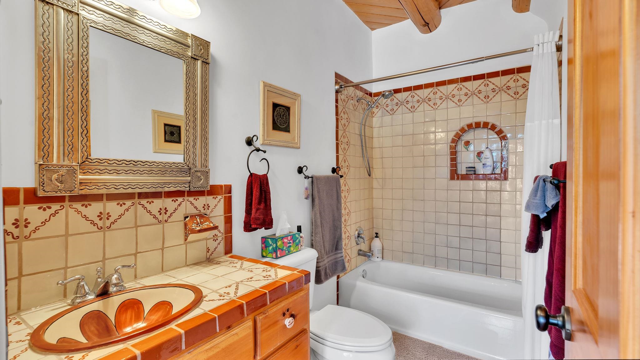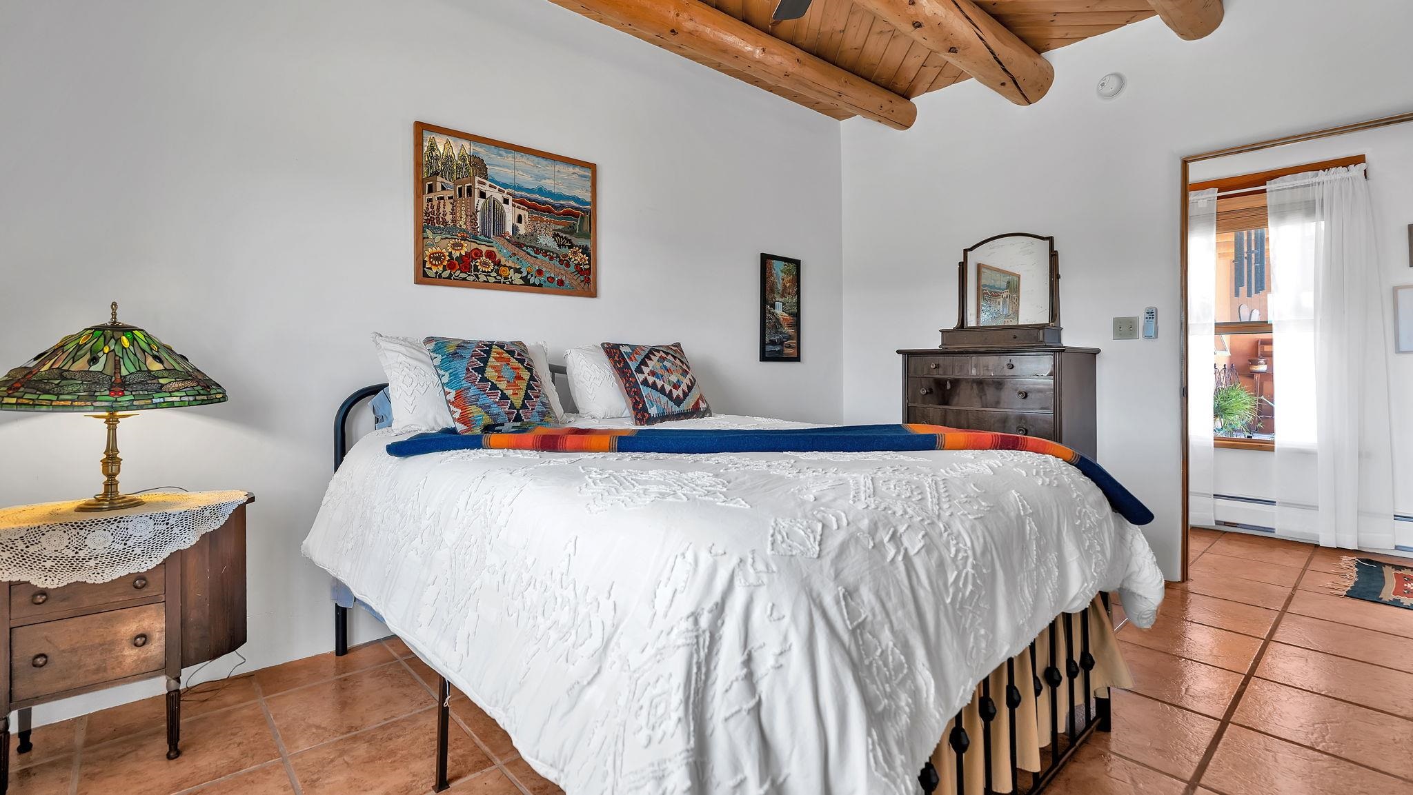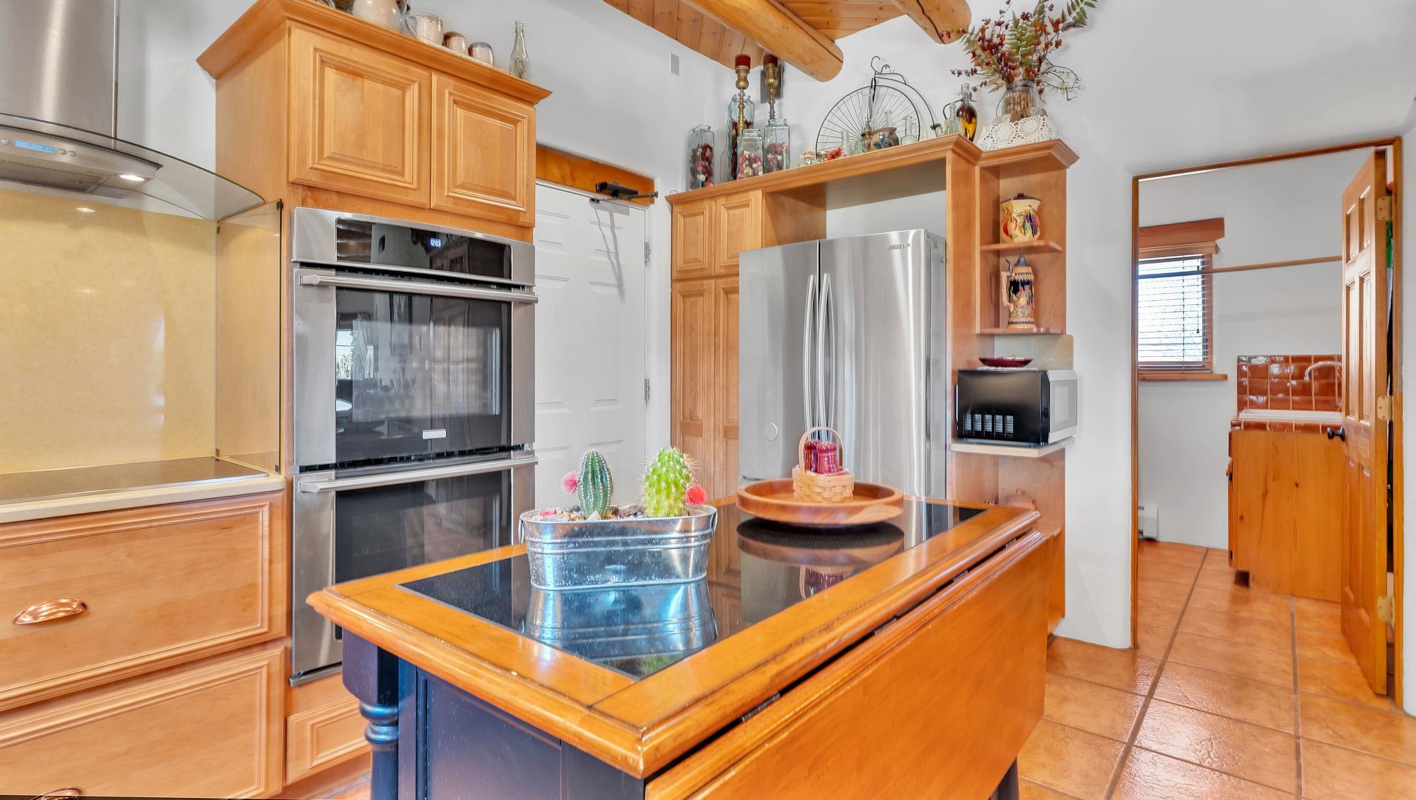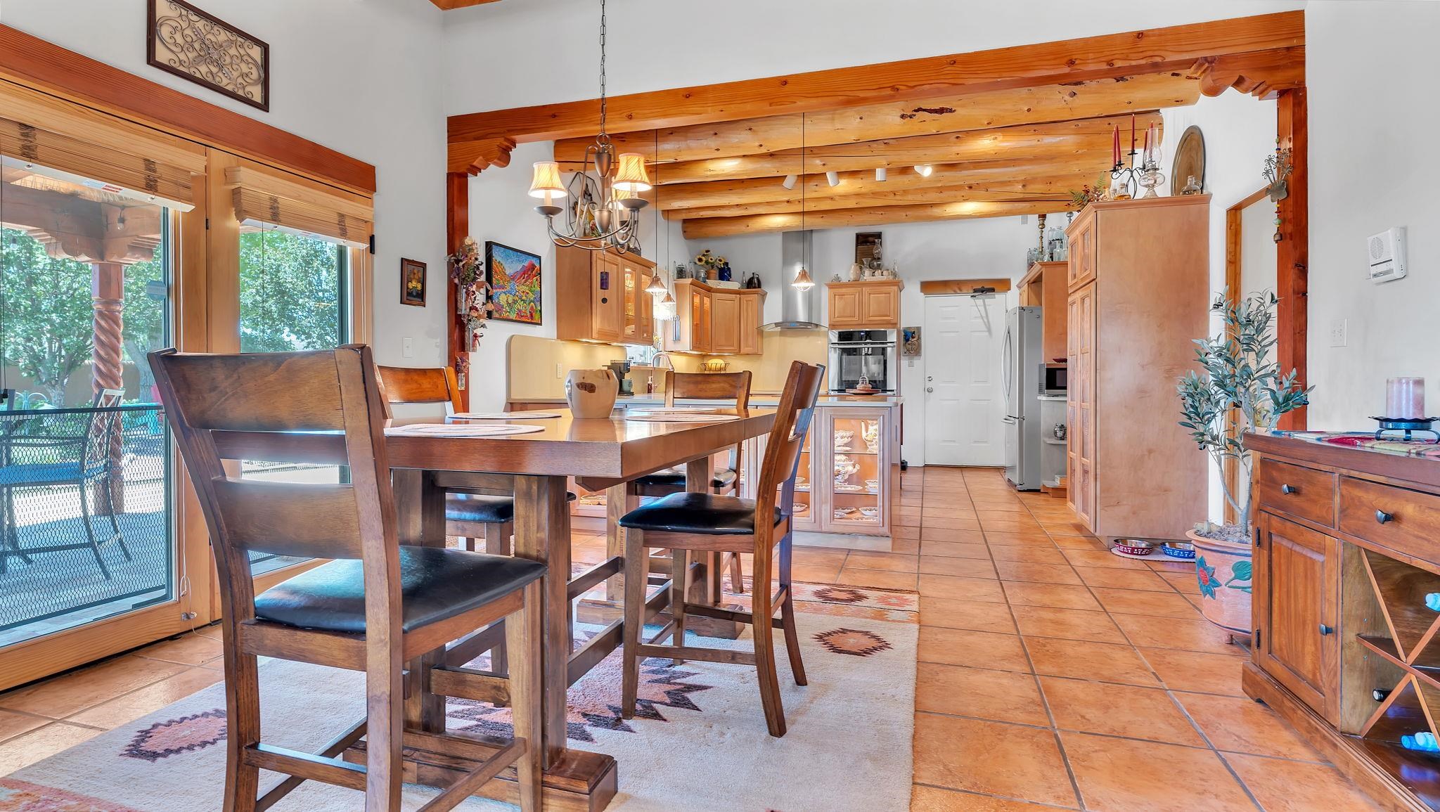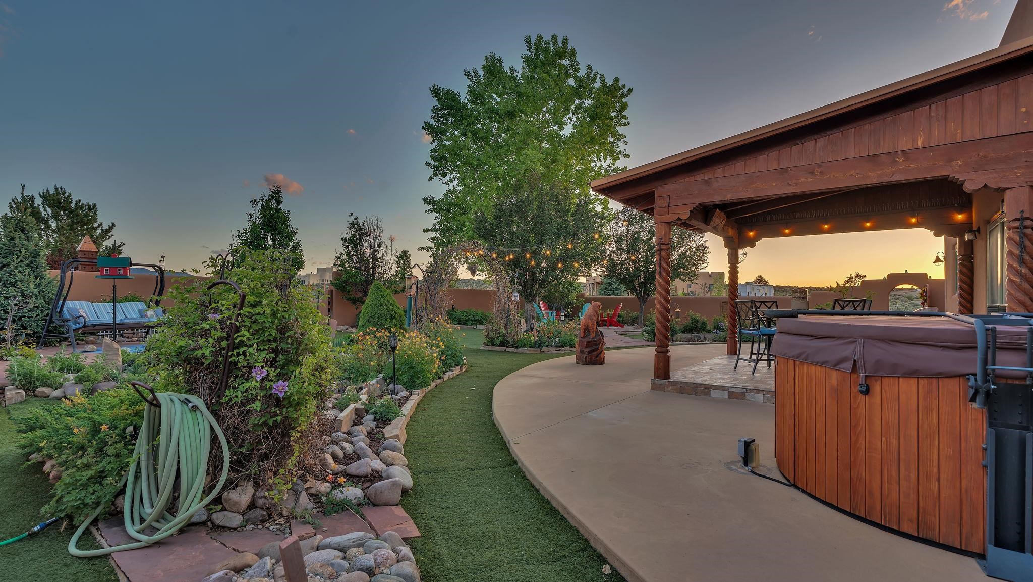 An Extraordinary High Desert Escape Bordering Taos Country Club ~ Turn onto a private and quiet Copper Moon Road, drive all the way to the very end, and feel the world melt away as you make your way into a hidden oaasis through the automatic gate. A charming front courtyard will embrace you and your guests with the crackling sounds of an outdoor traditional wood-burning fireplace and a serene fountain--the perfect prelude to the beauty within, and all around. Upon entering this masterfully crafted Southwestern style home where almost every window frames the majestic Sangre de Cristo Mountains, you immediately feel like you are exactly where you should be. This 1,988 square foot residence possesses a generous layout with three bedrooms, two and a half bathrooms, and an oversized two-car garage. The living room, dining room, and kitchen seamlessly merge to create an inviting open-space for connection and relaxation. The chef's kitchen is guaranteed to inspire culinary adventure on the daily with its stainless steel appliances, such as, a Miele Induction Stove, a double oven, and tons of thoughtful storage, including a turning pantry. Throughout the home, authentic Southwestern details captivate: vigas, tongue-and-groove ceilings, twisted beams, a second traditional fireplace, 17-inch tile throughout, and creative lighting fixtures--even within a striking lit display in the dining room. Soaring 12-foot ceilings in the common areas and 10-foot ceilings in the bedrooms amplify the sense of spaciousness. The freestanding Hearthstone wood burning fireplace in the living room is a major plus, and has the ability to keep the entire home warm by itself. Beyond the walls, this incredibly private home sits on 2 lush acres overlooking hole #3 at Taos Country Club. Immaculate landscaping thrives with drip irrigation, ensuring effortless beauty year-round, and especially so at this very Spring moment following abundant rainfall. Explore a labyrinth out back in the courtyard, kick back and relax on adirondack chairs during magical sunsets and sunrises, and cultivate your green thumb passions in the enclosed vegetable garden. The back courtyard is a true delight, boasting perennial flowers, a variety of deciduous and fruit trees, and a free-standing hot tub to relax in after a long day of working the yard, playing a round, or hitting the ski slopes. For all your projects and toys, a 20x30 foot electrified workshop and a 12x30 foot RV carport are ready to go at the corner of the property. This property is an easy outlet out of town to Santa Fe, an easy drive to town on the back-roads, and just down the road from hiking, fishing and mountain biking at the Slide Trailhead down CR-110. Properties with ALL of this are a rare find these days, and especially for this price. Come see for yourself!