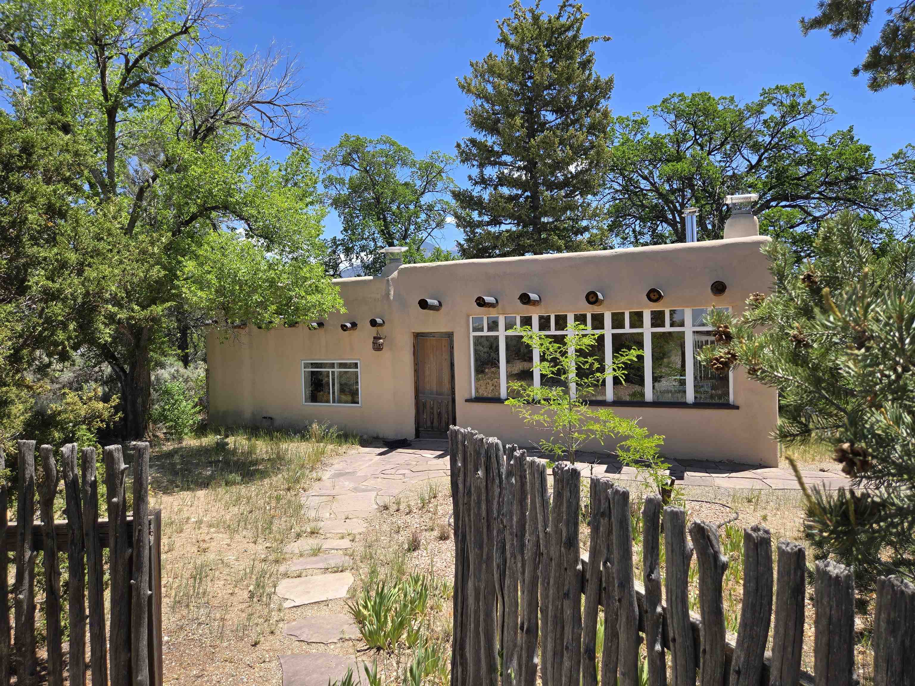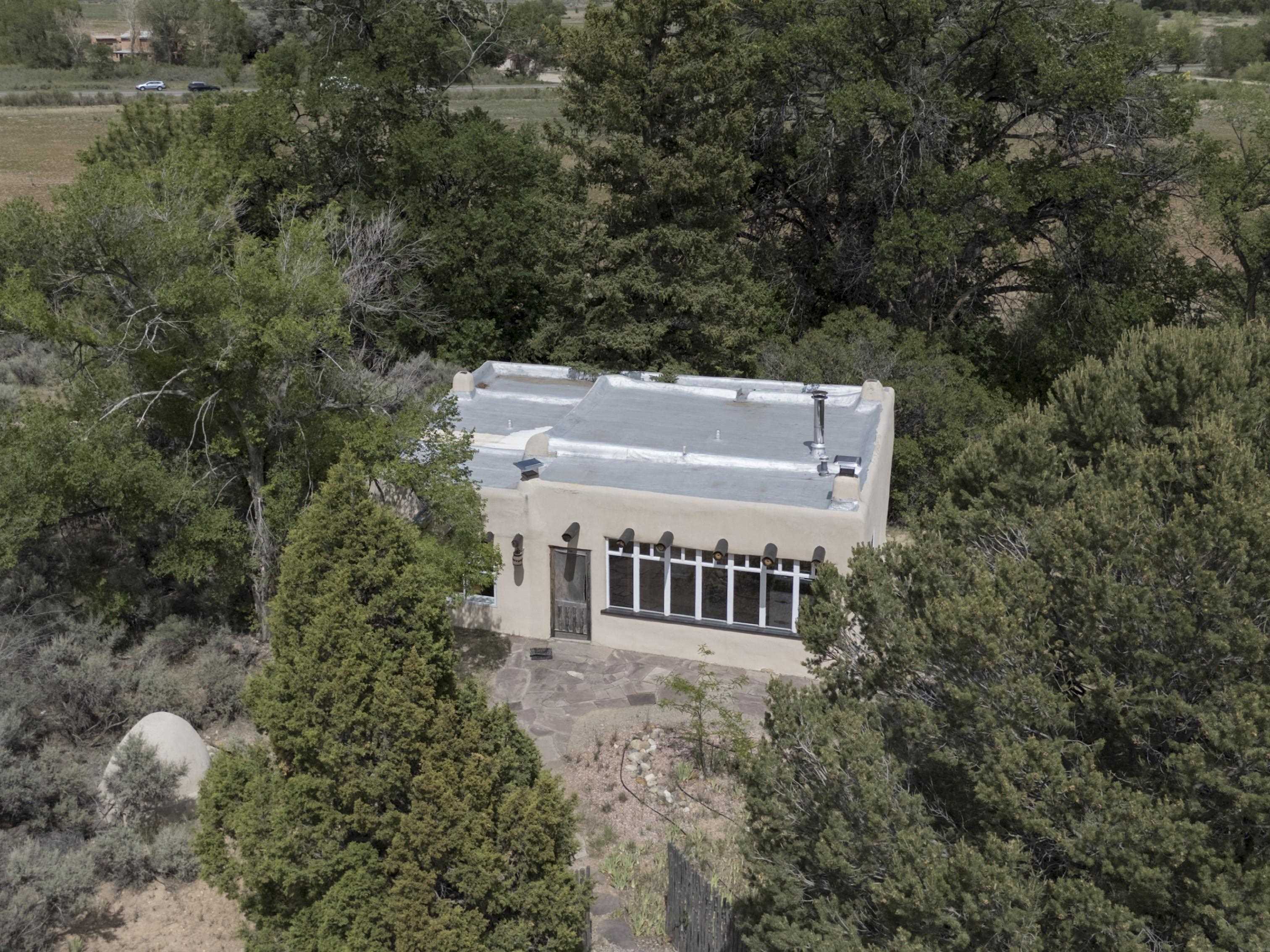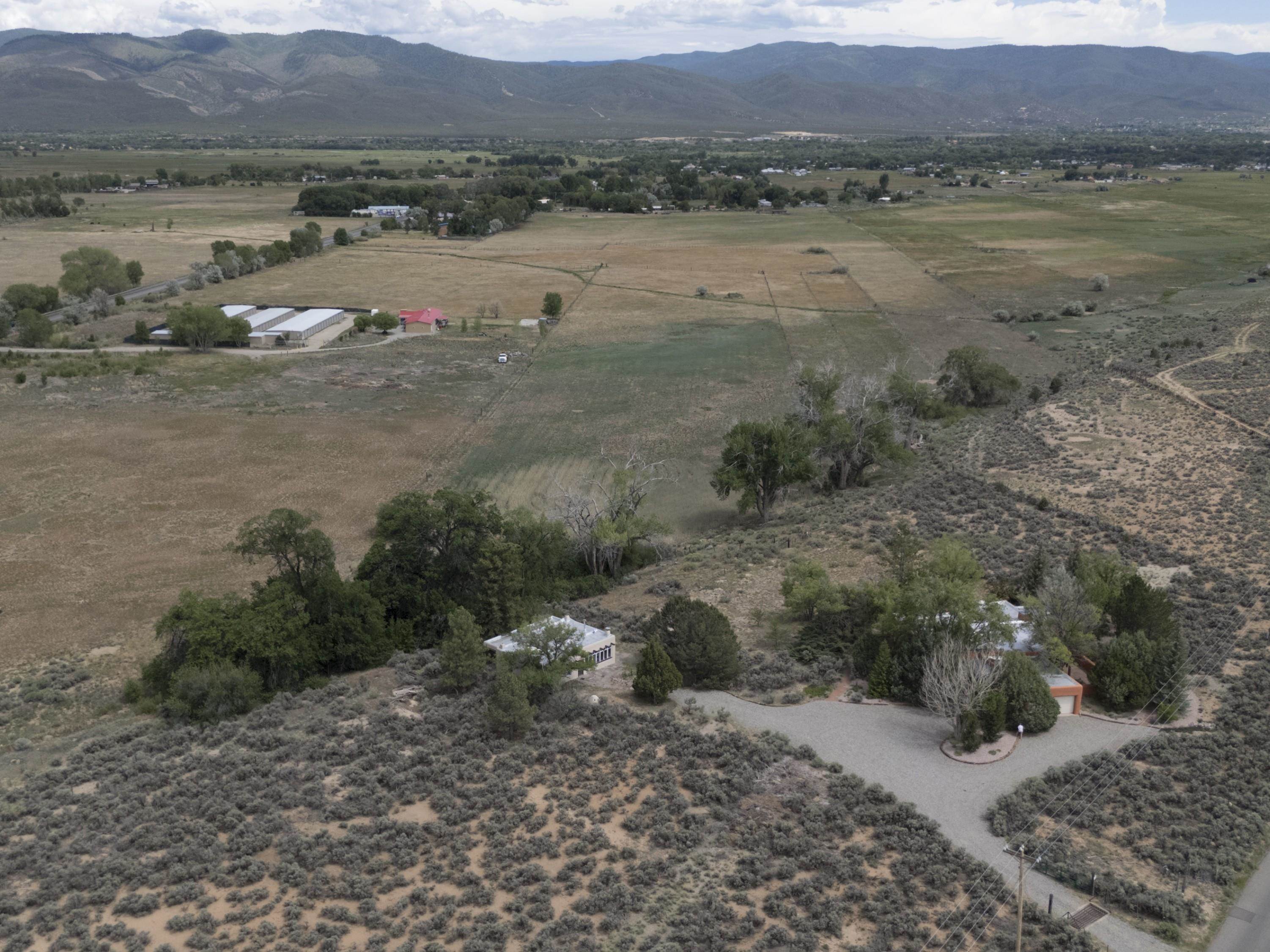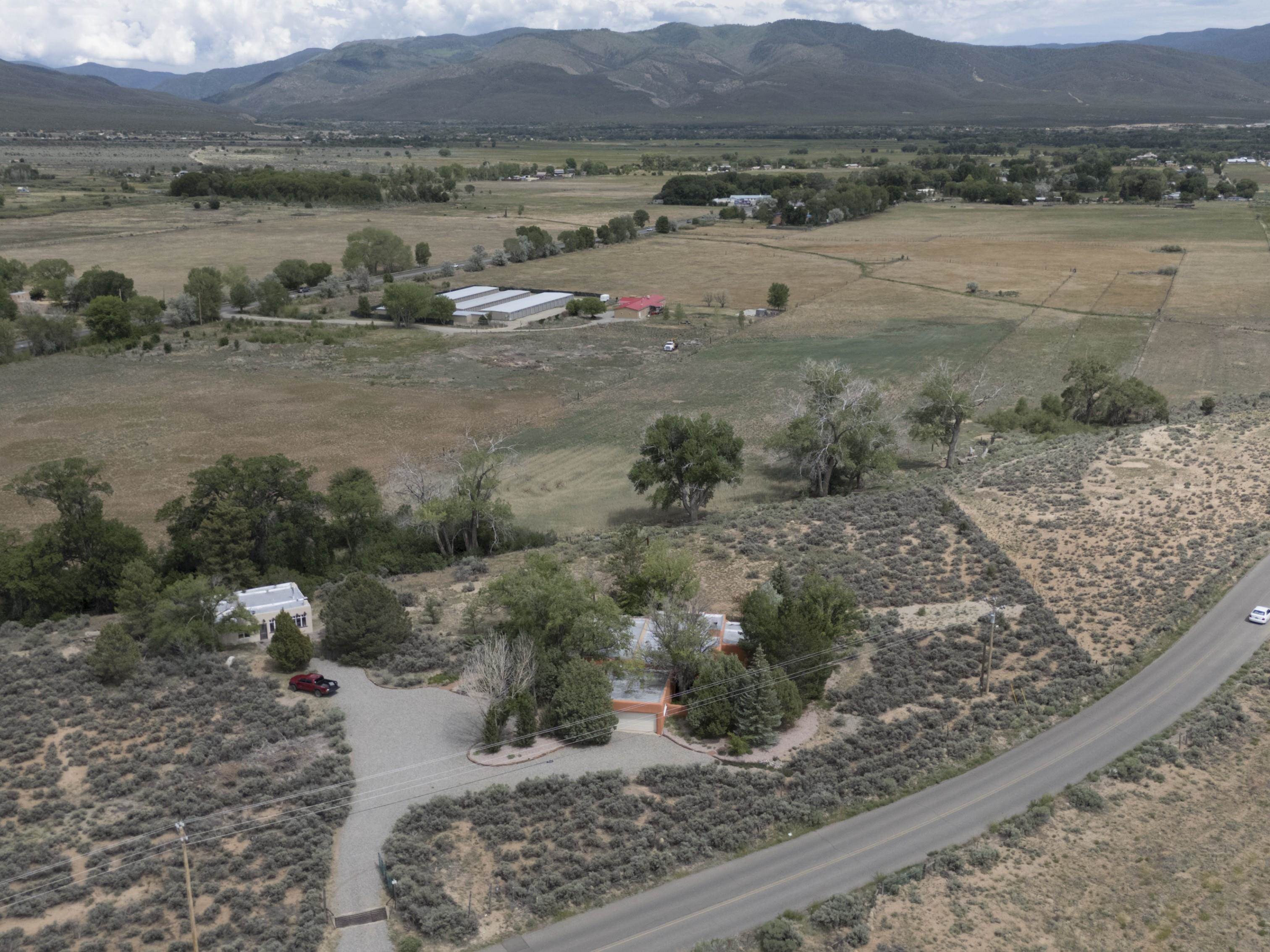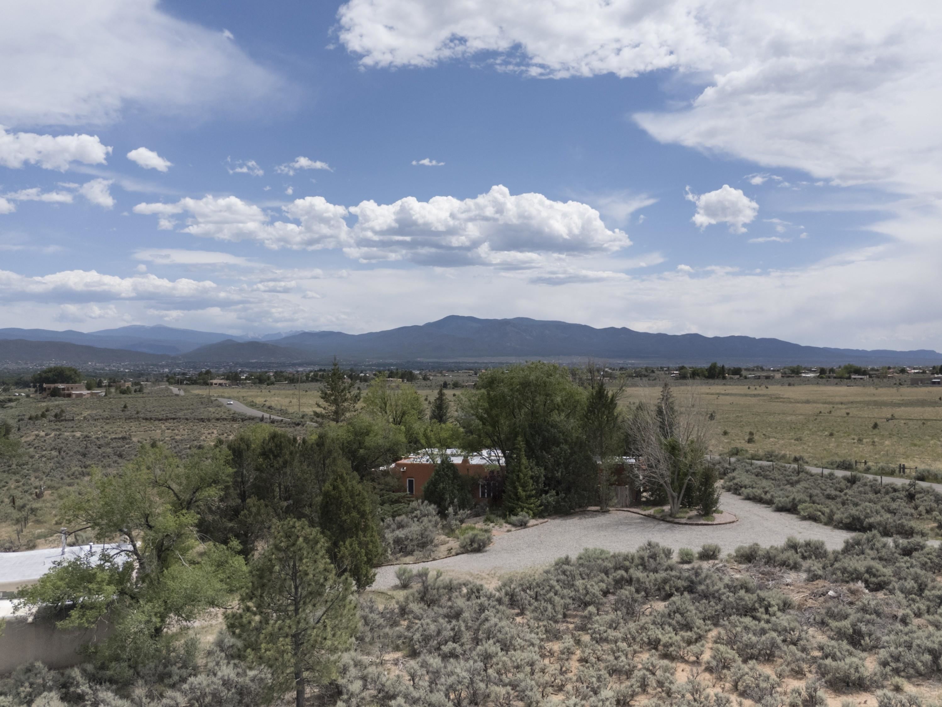 Historic Taos Adobe Retreat -- Once Touched by the Spirit of D.H. Lawrence. Step into a rare piece of Taos history with this enchanting adobe home, where Frieda and D.H. Lawrence are said to have spent several winters in the early 1900s, as Taos blossomed into a vibrant art colony with an Avant Gard, eclectic social scene. Set on over 12 serene acres--8 of which are acequia-irrigated--this authentic 3-bedroom, 2-bathroom residence i, a spacious family room, and three covered patios for outdoor living. Large cottonwoods, junipers, and conifers frame stunning views of the Sangre de Cristo Mountains. A double-car garage adds convenience, while the 900 sq. ft. casita or studio offers endless possibilities. The casita has three fireplaces. The kitchen in the main house has been renovated with granite countertops, with some Viking and Wolf appliances. Originally built in the early 1900s, the home has been lovingly expanded and renovated over the years, now encompassing approximately 2,700 sq. ft. of charm and character. Every wall whispers a story--making this a truly rare opportunity to own a piece of Taos's artistic legacy. Just minutes from downtown Taos, the historic Taos Pueblo, and the world-class Taos Ski Valley. Also nearby: the Rio Grande del Norte National Monument, offering endless adventure through hiking, biking, fishing, and river rafting. A perfect haven for artists, writers, and lovers of the Northern New Mexico cultural and natural beauty.