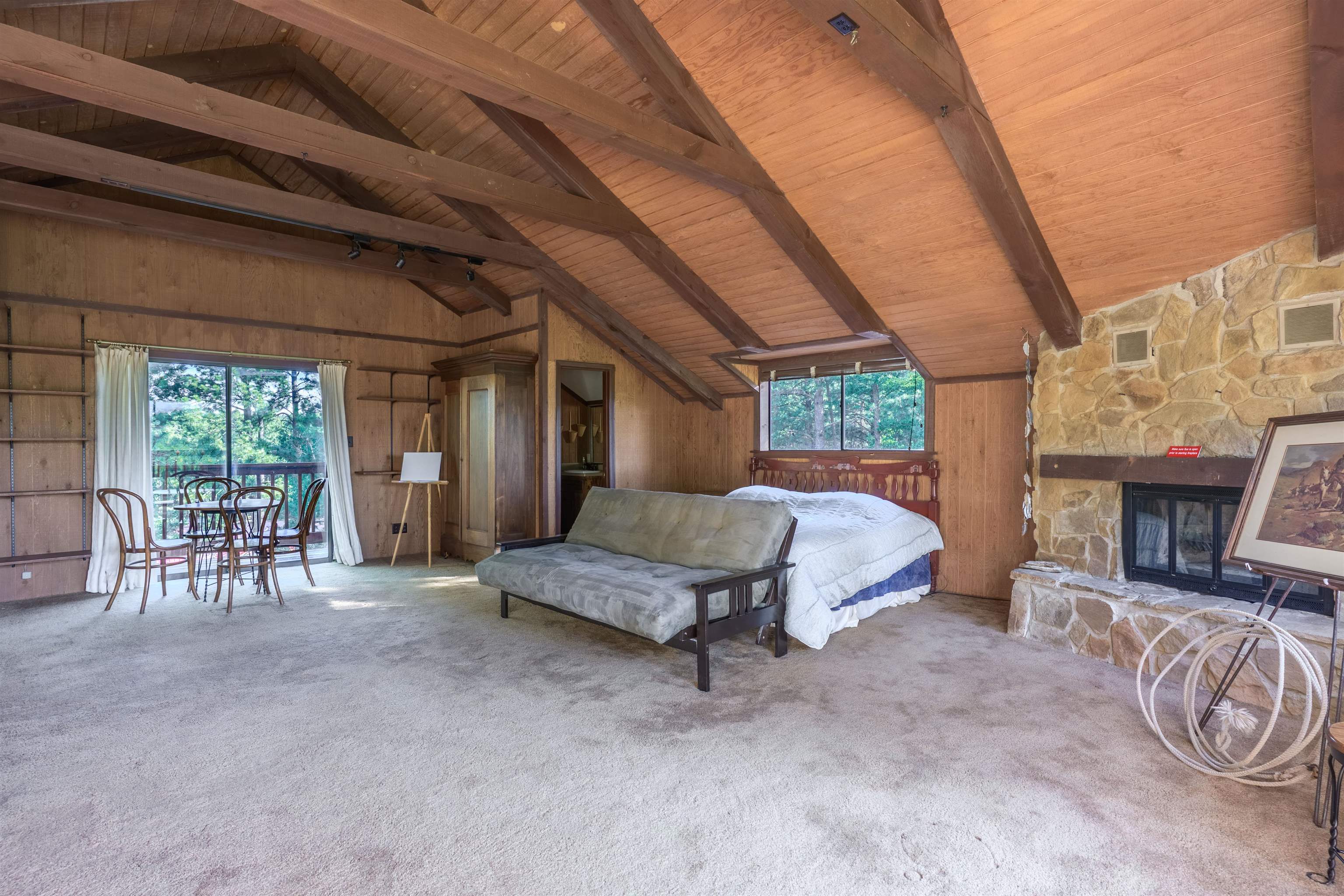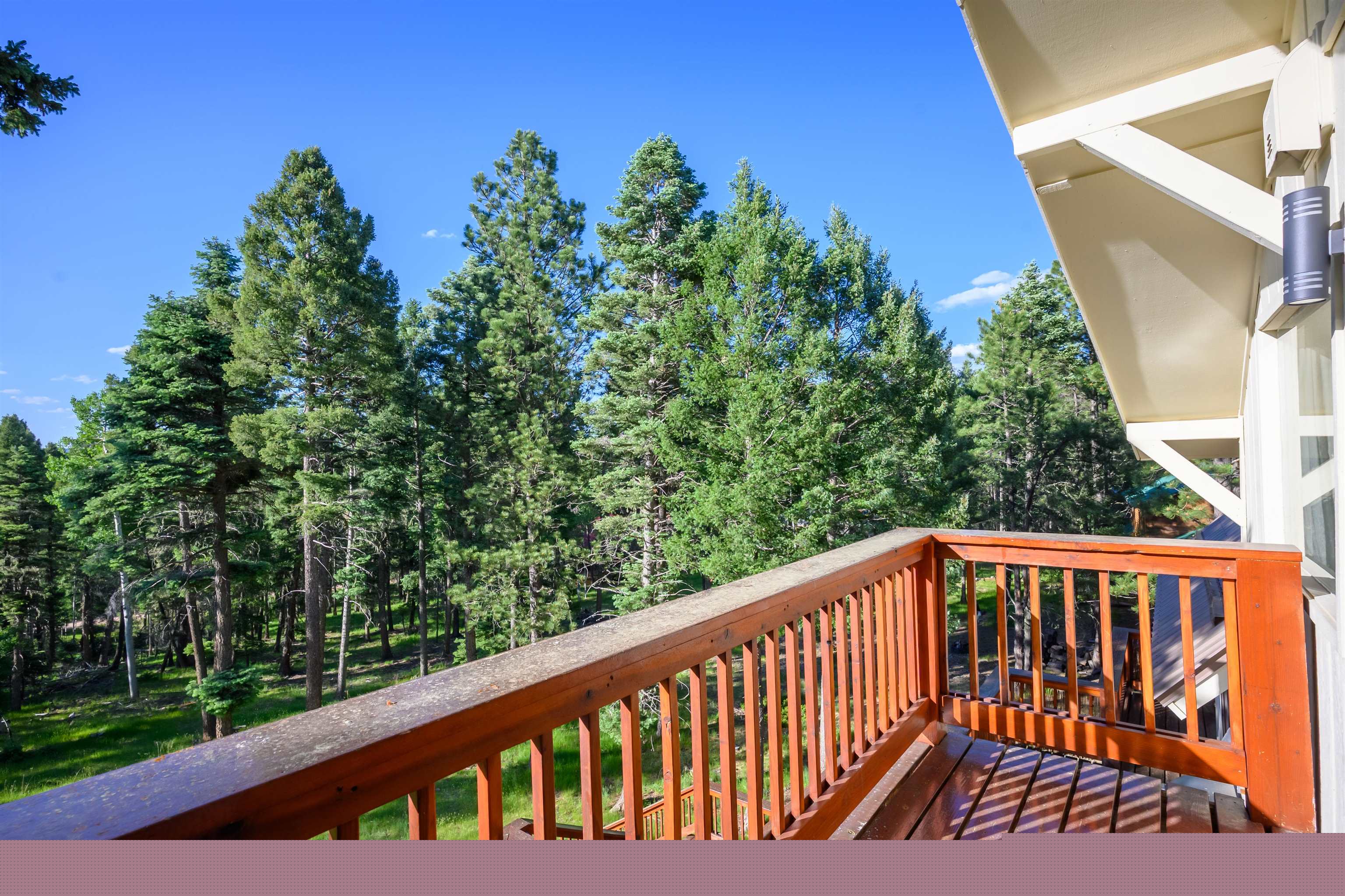 Magic in the Angel Fire Forest ~ This extraordinary Angel Fire home, originally designed and built for the renowned Western artist Gary Niblett, offers a rare chance to own a piece of local history, blending artistic vision with true mountain living. From its warm, south-facing exposure, the home captures beautiful views of Wheeler Peak inviting the majesty of the outdoors inside through massive walls of glass and vibrant stained glass windows. The interior boasts features like red willow ceilings and wall coverings, adding a rustic elegance to its four distinct living areas, three of which feature natural rock fireplaces perfect for cozy evenings. The seamless flow to the outdoors is achieved through nine doors leading to an elaborate, three-level redwood deck, ideal for entertaining or simply soaking in the serene mountain air. The lower deck even includes a private hot tub with peaceful forest views. Situated on a quiet street, this historic gem is just a stone's throw from the Angel Fire Country Club, golf course, and Monte Verde Lake, and slopes are all around the corner, making this home a perfect base for year-round adventures. This isn't just a house; it's a piece of history that awaits it's next lucky owner.