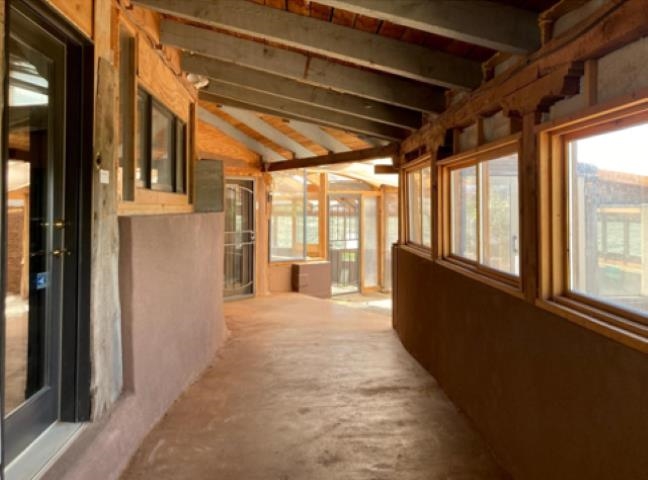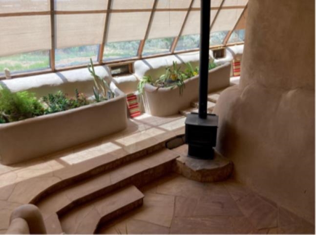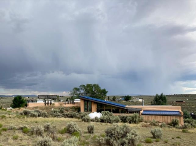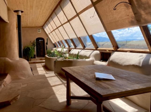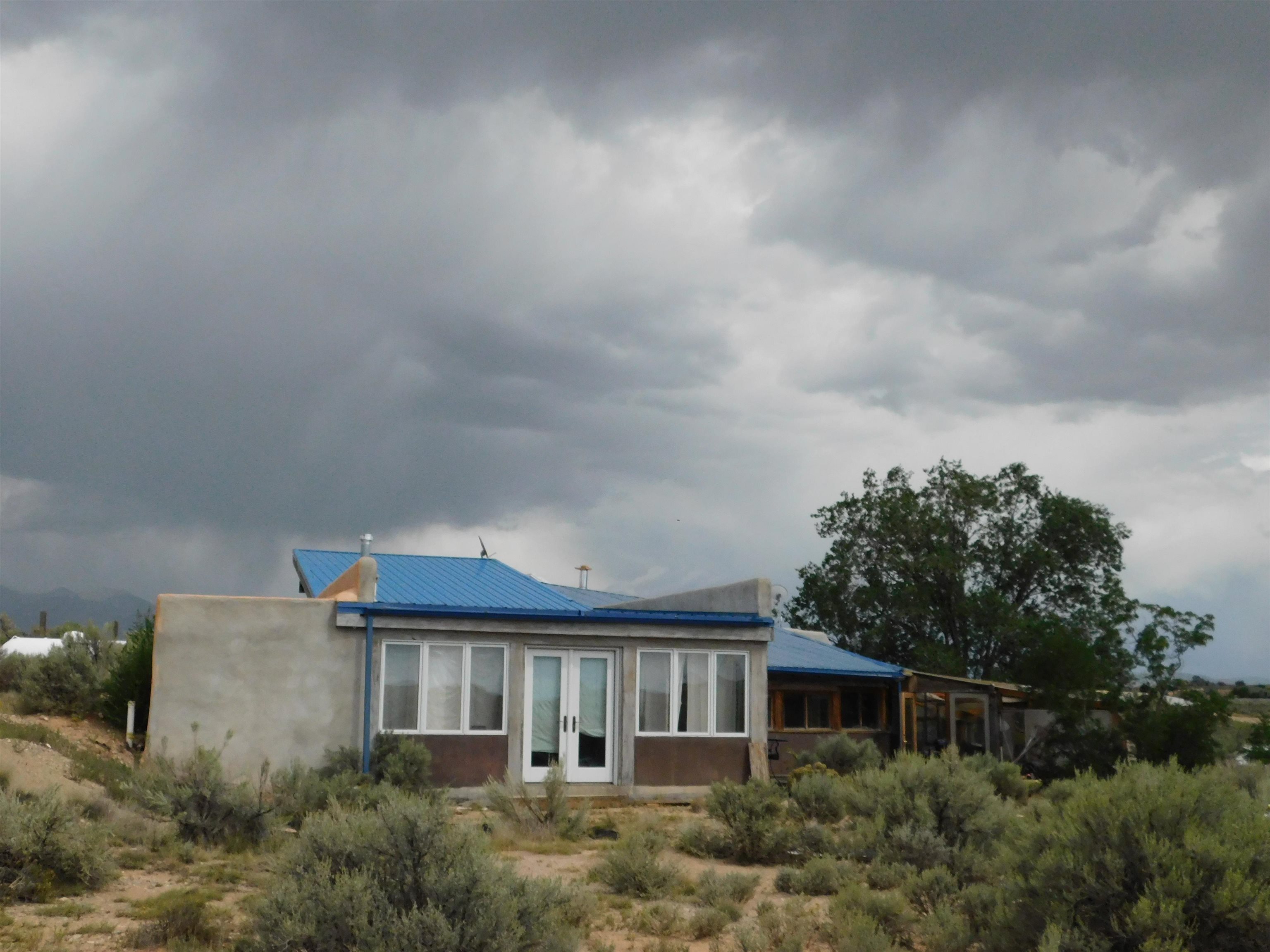 This authentic Taos home originated as an Earthship in 1995, hand-built with rammed earth tire walls on the north, west and east, and a wall of slanted glass on the south. Over time, it expanded with additional greenhouses, workshop, and a studio creating approximately 4000 square feet of interior space. Outdoor latilla fences, gardens, and mature trees create a welcoming atmosphere. Sustainable living guides the heart of the home. The home is a hybrid, using both an off-grid solar electric system This and electricity from Kit Carson Electric. Hardwire is in place for internet (TaosNet) and telephone landline. A water catchment system includes three cisterns with a total capacity of 6000 gallons; rain water is collected from the roofs and gray water is collected separately from the bathroom sink and shower. A new three-bedroom-capacity septic system was placed in spring of 2025, at a cost of $15,800. (See associated document.) Enter the home from the south through the West Greenhouse. This light-filled room has an organic close-to-the-earth feel with outdoor carpet on the ground and translucent ceiling above. To the right is the South Greenhouse with a built-in planter and shelves for more plants--an ideal sitting room to soak in warmth of the sun on cold winter days. Through the West Green House, to the north, are glass doors to an outdoor area and a wide hallway leading to the studio. A metal screen door with locking wood door at the front of the hall leads into the Earthship. Earthship: Through a mudroom with a freestanding closet system, you step on to the flagstone floor of the Earthship and into open area large enough for a family sized dining table and chairs. The room continues along the bank of windows with built-in planters below. To the left, step up to the spacious open kitchen with granite countertops, open shelving, an island with stove, and more open shelving. To the north of the planters is the sunken living room with a wood stove and high ceiling. Behind the living room is a small room under a loft that could be used as an office, library, walk-in closet. Up the open staircase is the large sleeping loft with skylights to let in fresh air and light. Back on the ground floor, at the end of the wall of windows, step up into a large bathroom area with a mirrored closet, vanity sink, walk-in shower, and hot tub and the toilet is in its own little room next to the vanity. Hallway: Down the hallway, before reaching the studio, is a door to the workshop with ample storage space and the solar voltaic components. The wide hall has windows on the top half of the western wall. Studio: At the end of the hallway, also with an entrance from the outside, is a 1200 square foot studio with radiant floor heat. The rectangular room has a vaulted ceiling with a loft at the eastern end. High windows let in northern light. Within the studio is half-bathroom with shower, sink, toilet, and washer hook-up. At the northern end of the studio is a cool storage room and the utility closet that houses the propane radiant floor heating system and on-demand water heater. Additional information: Square footage of the property should be regarded as estimated. Buyer is advised to take measurements and conduct inspection(s) of the home and its systems to assure accuracy and condition. There is no domestic well on this property; neighboring wells are reported to be 400-450' deep. The current owners augment their drinking water by importing water during dry years and use a Berkey filter for drinking and cooking water. The property survey was updated in the spring of 2025 (see documents). Broker and Brokerage take no responsibility with regard to the size or condition of the property.