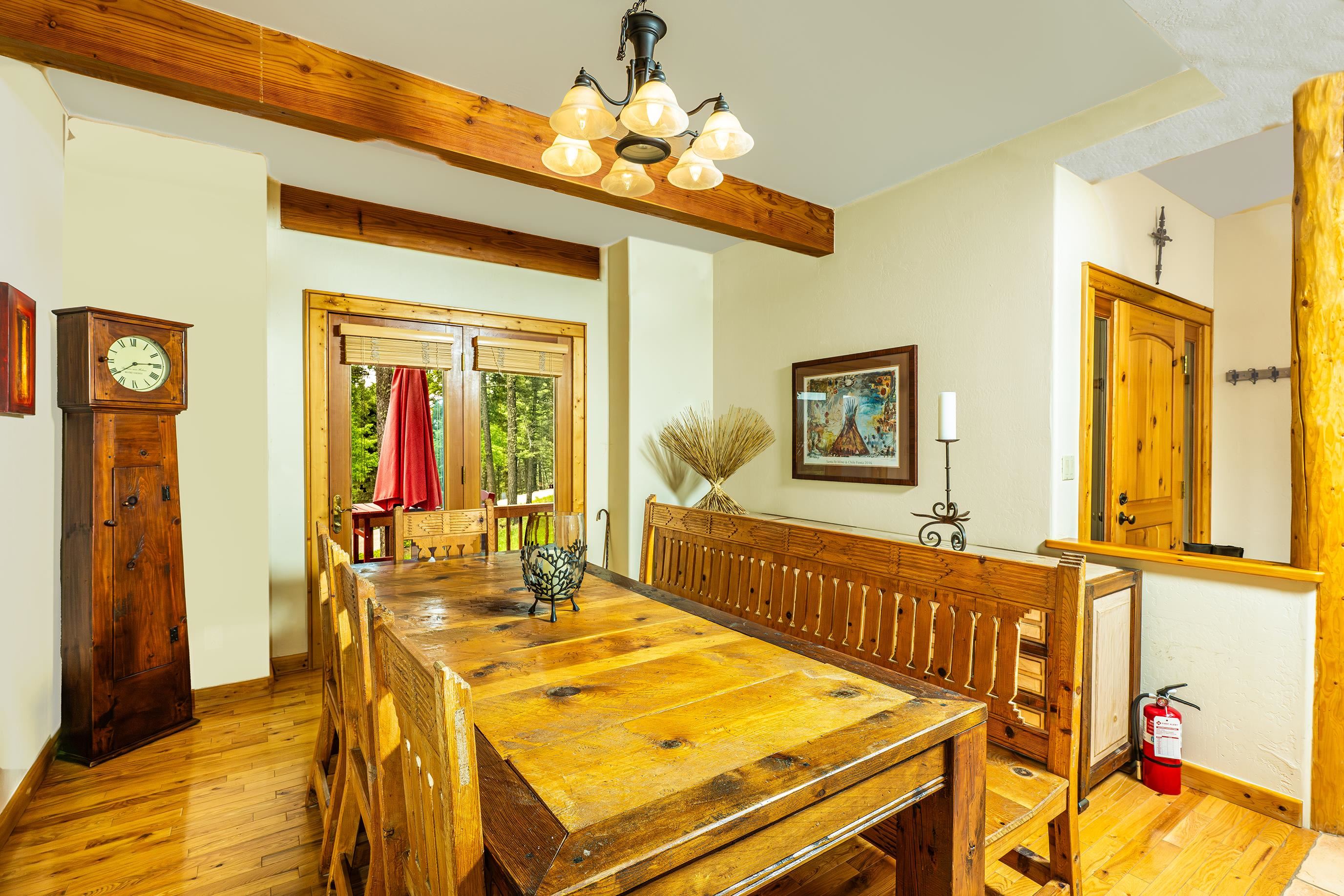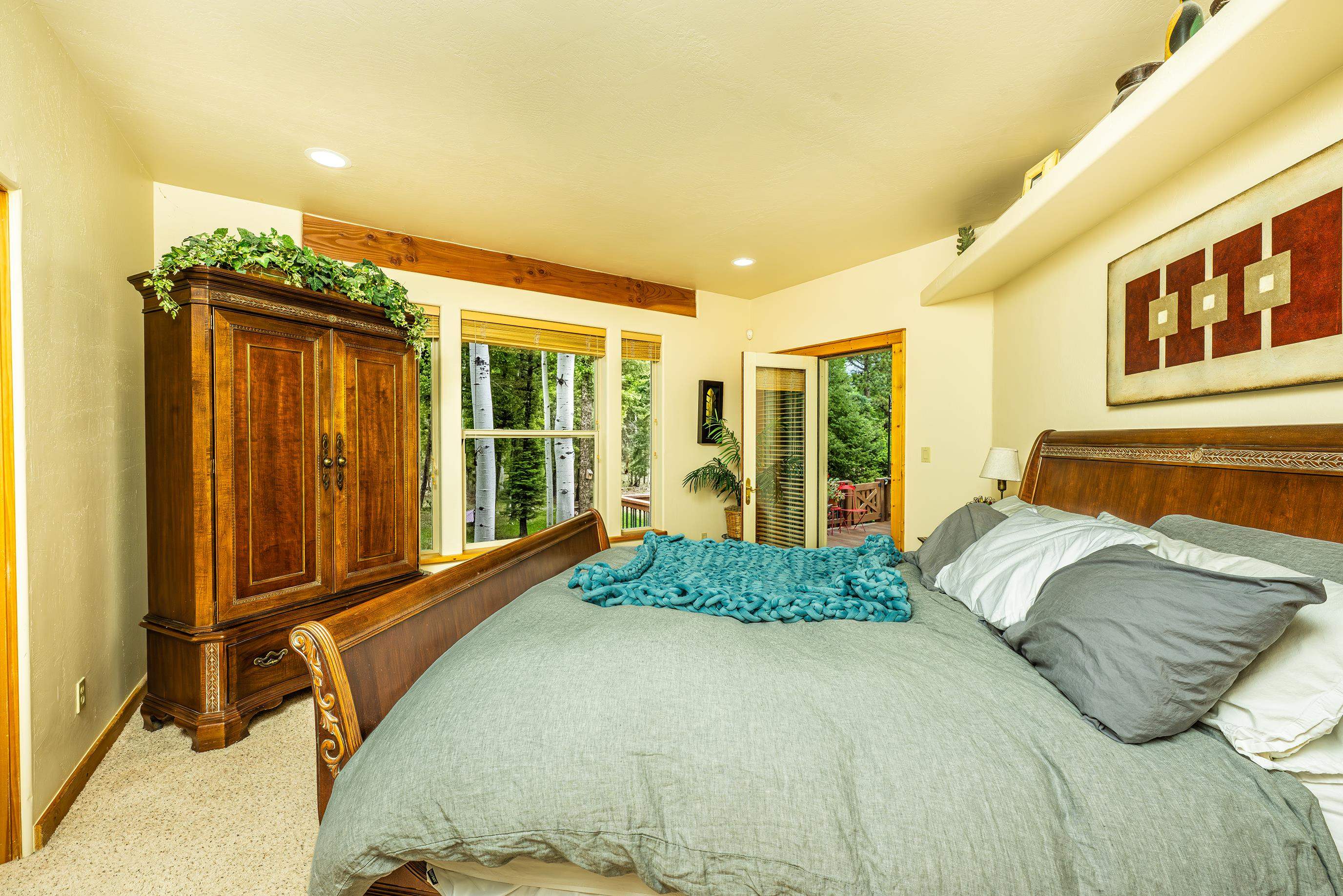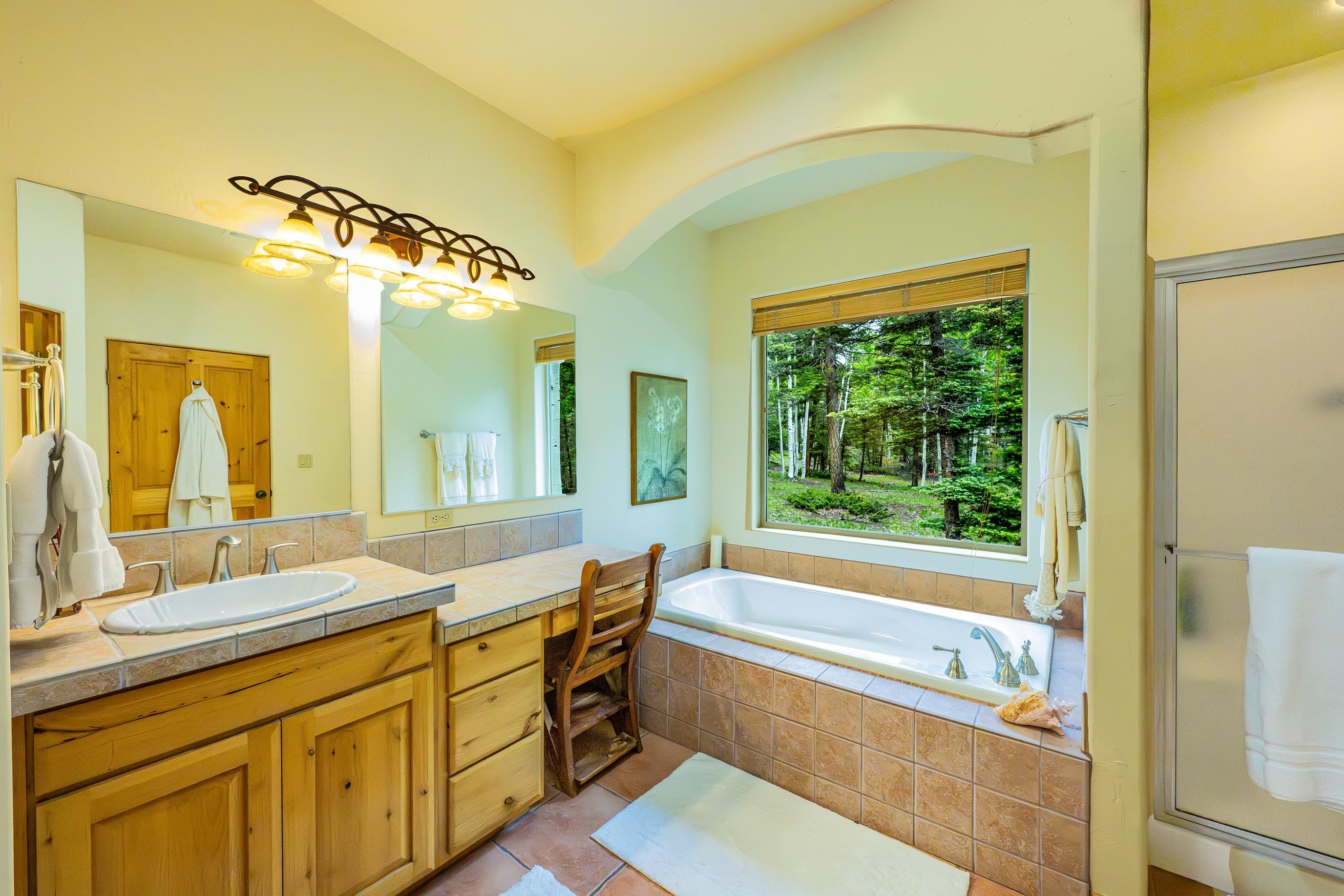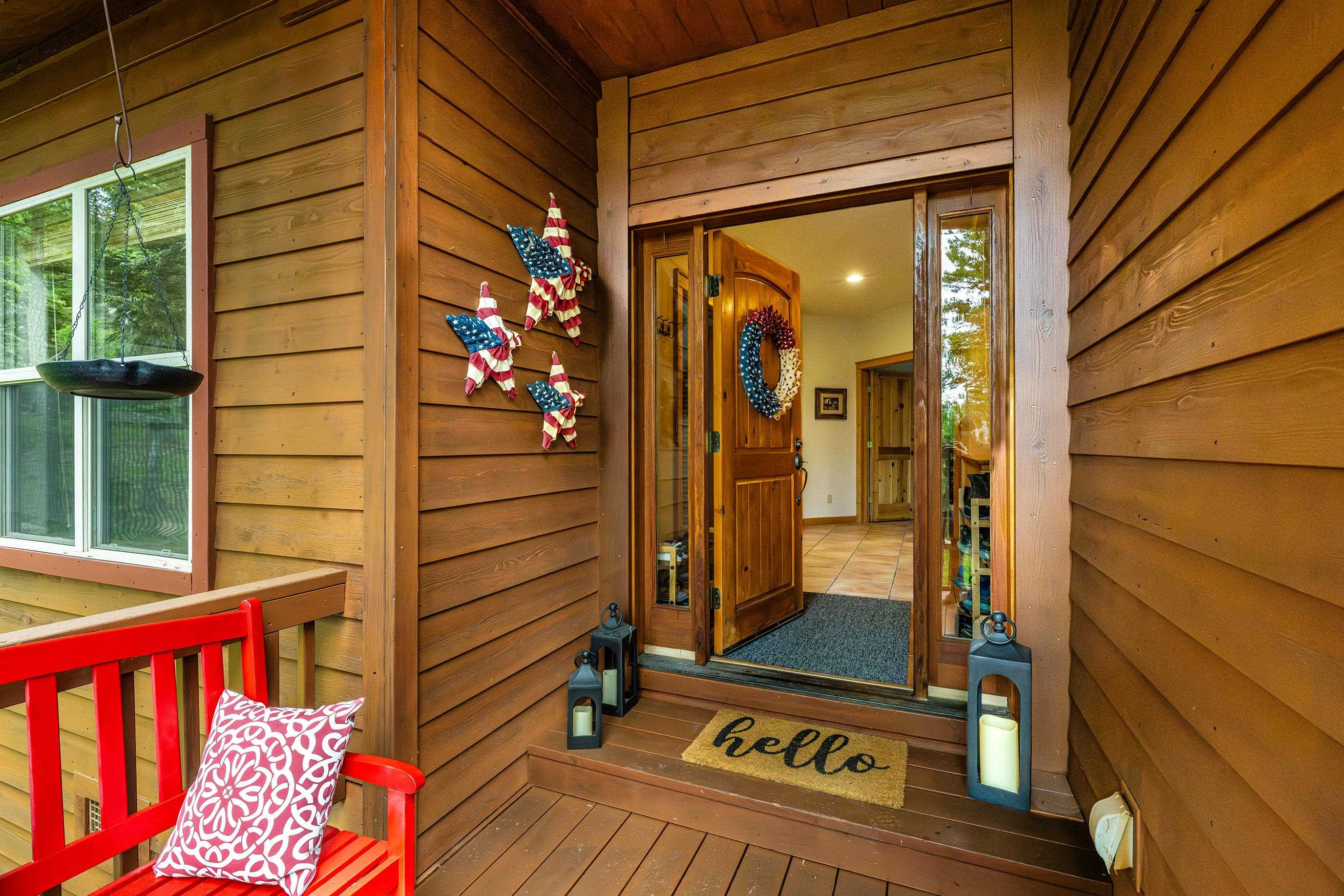 Sophisticated Southwest Retreat. Step into timeless elegance with this beautifully appointed home. Rich wood floors and stylish tile flow seamlessly throughout, creating a warm and inviting ambiance. Well-designed kitchen, featuring quality finishes and ample counter space, perfect for the culinary enthusiast. Enjoy casual meals in the sunny breakfast area or quick bites at the convenient breakfast bar. For special gatherings, the formal dining room provides the ideal setting for large family dinners.The spacious living room is a showstopper, anchored by a grand Southwest-style fireplace that offers both beauty and warmth. The luxurious master suite is a private haven, complete with access to the deck area, a generous walk-in closet, and a spa like jetted jacuzzi tub. A dedicated office space provides a quiet area for work or study, while a separate workout room supports your active lifestyle. Step outside into your personal oasis--an amazing backyard featuring lush green grass, a custom horseshoe pit, a comfortable seating area with a firepit, and an impressive outdoor living deck space equipped with a TV, ideal for entertaining and watching your favorite sports under the stars. Additional features include a spacious two-car garage, a large laundry room with a utility sink for added convenience, a front deck, and a 9 hole frisbee golf course. This home offers the perfect blend of sophisticated design and laid-back Southwest living.