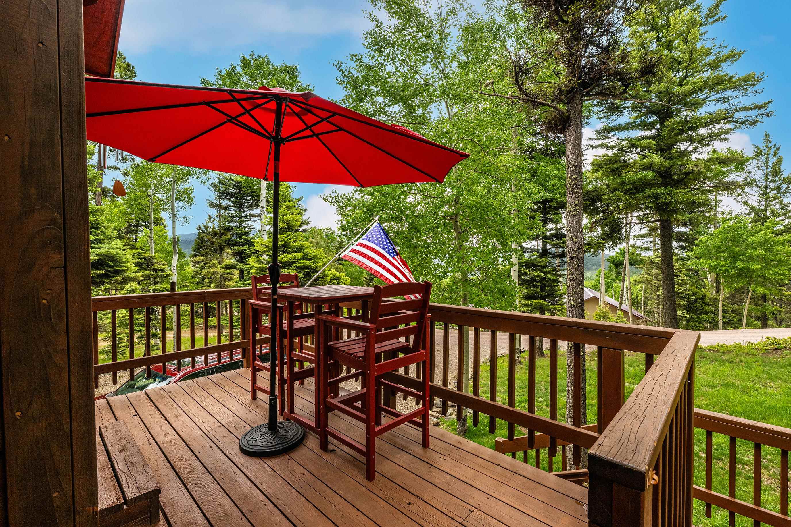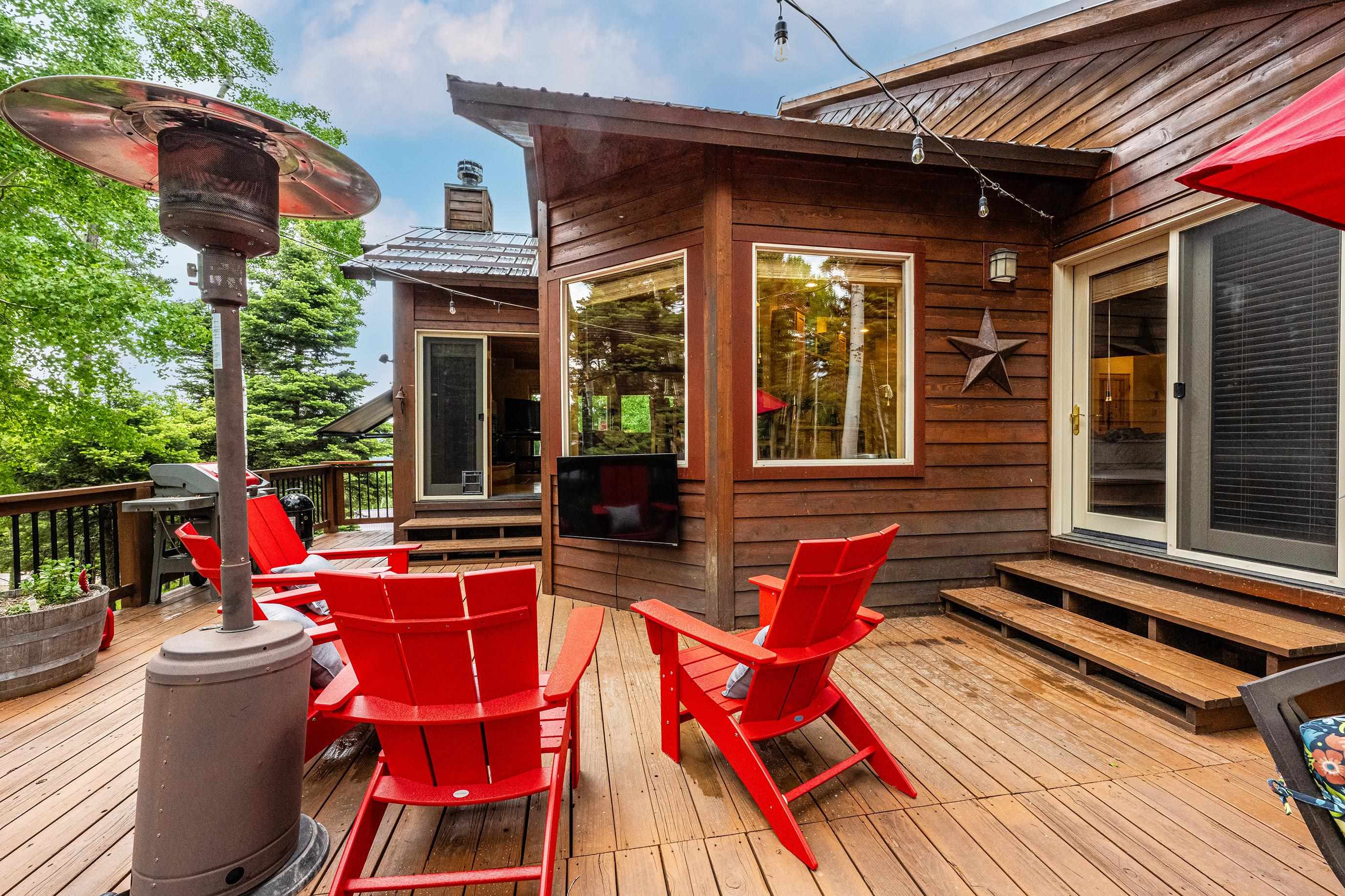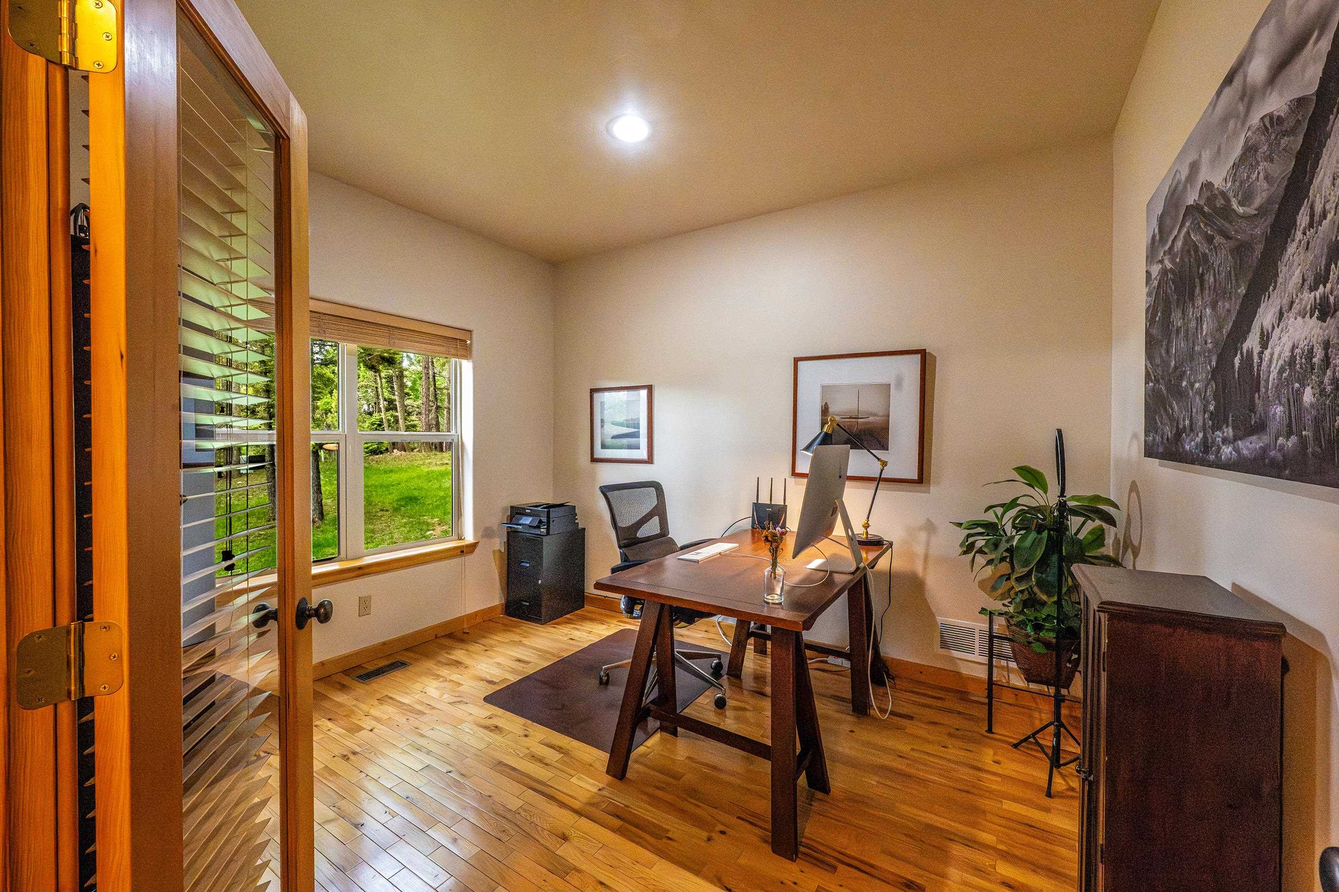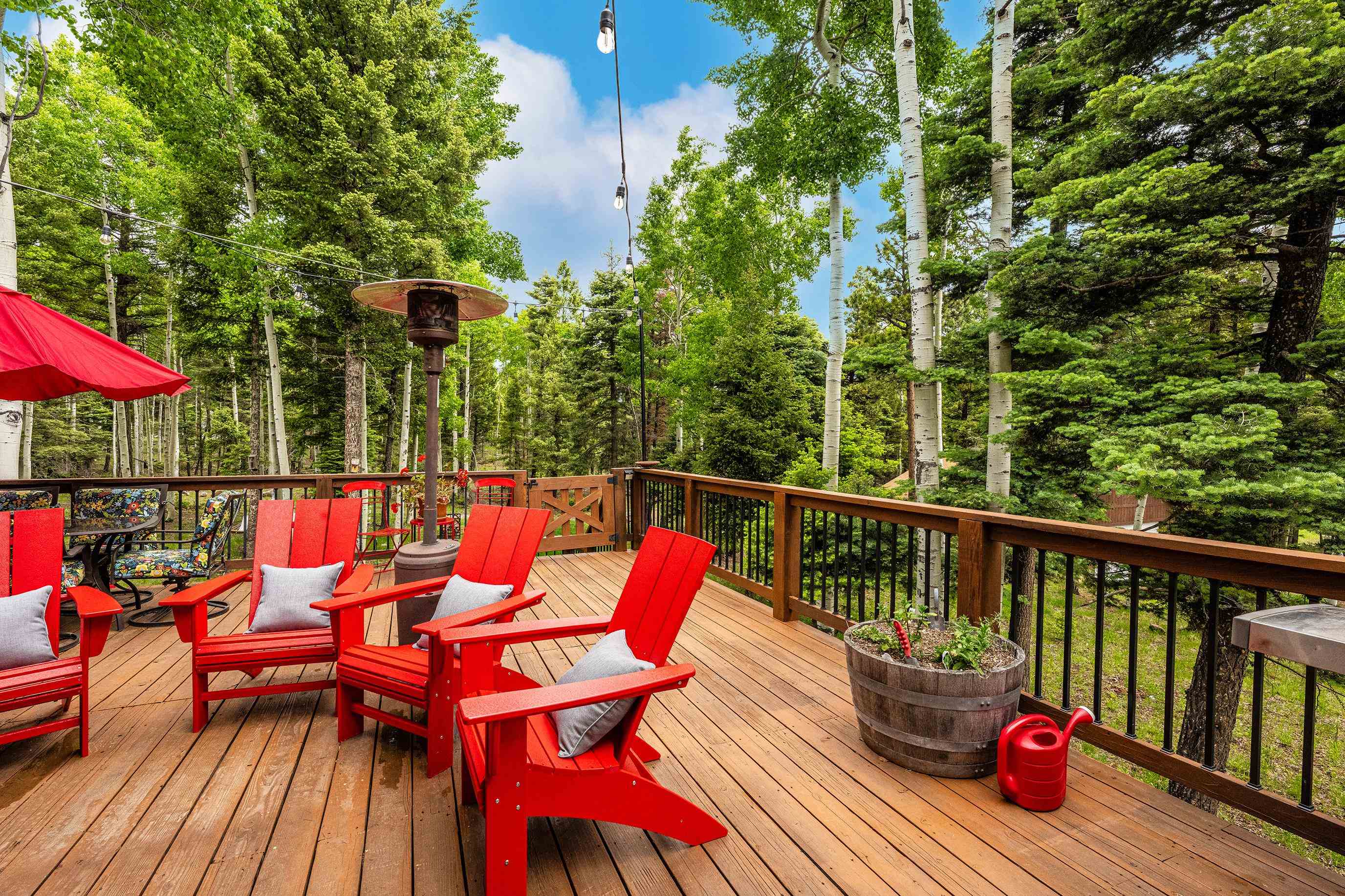 Sophisticated Southwest Retreat. Step into timeless elegance with this beautifully appointed home. Rich wood floors and stylish tile flow seamlessly throughout, creating a warm and inviting ambiance. Well-designed kitchen, featuring quality finishes and ample counter space, perfect for the culinary enthusiast. Enjoy casual meals in the sunny breakfast area or quick bites at the convenient breakfast bar. For special gatherings, the formal dining room provides the ideal setting for large family dinners.The spacious living room is a showstopper, anchored by a grand Southwest-style fireplace that offers both beauty and warmth. The luxurious master suite is a private haven, complete with access to the deck area, a generous walk-in closet, and a spa like jetted jacuzzi tub. A dedicated office space provides a quiet area for work or study, while a separate workout room supports your active lifestyle. Step outside into your personal oasis--an amazing backyard featuring lush green grass, a custom horseshoe pit, a comfortable seating area with a firepit, and an impressive outdoor living deck space equipped with a TV, ideal for entertaining and watching your favorite sports under the stars. Additional features include a spacious two-car garage, a large laundry room with a utility sink for added convenience, a front deck, and a 9 hole frisbee golf course. This home offers the perfect blend of sophisticated design and laid-back Southwest living.